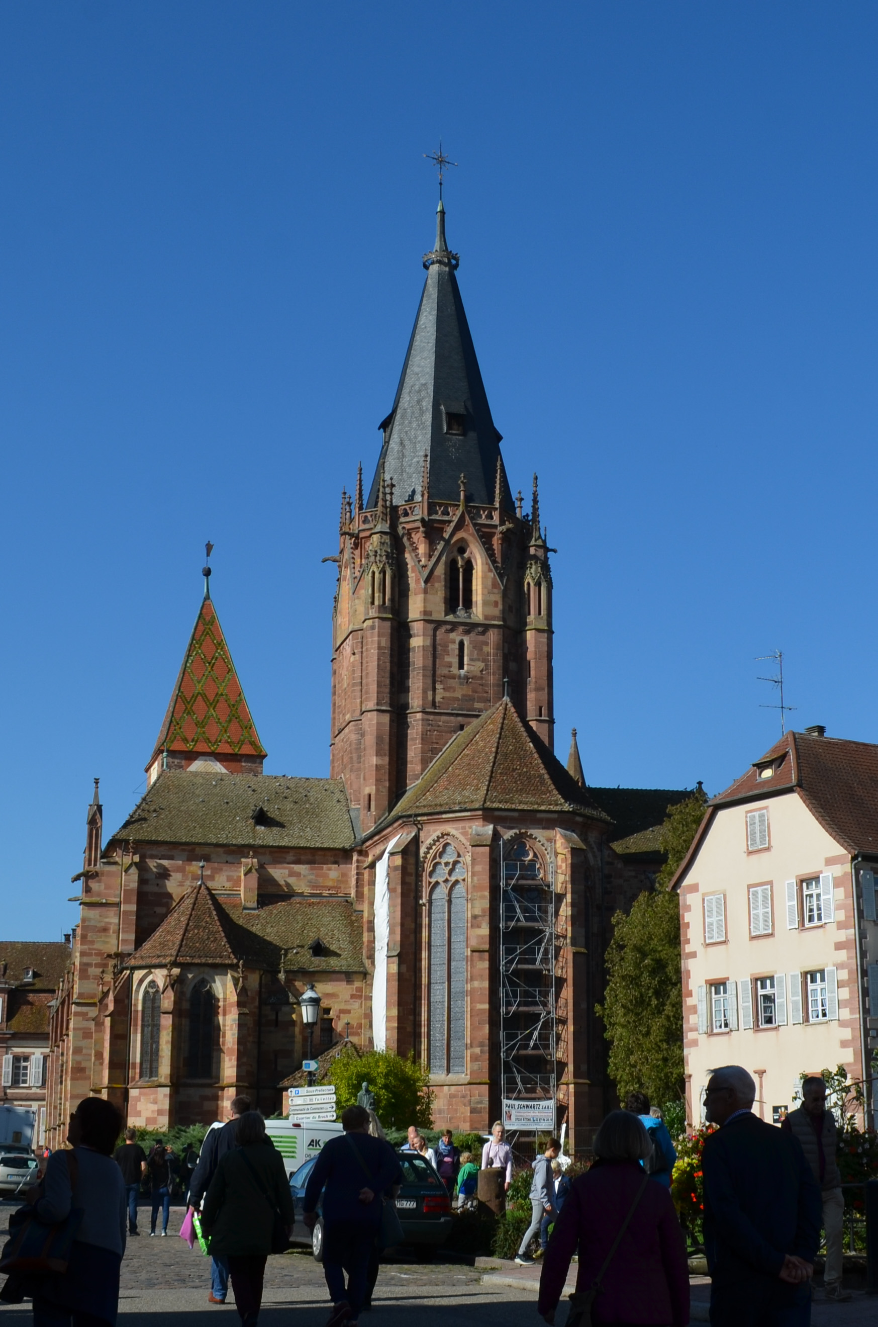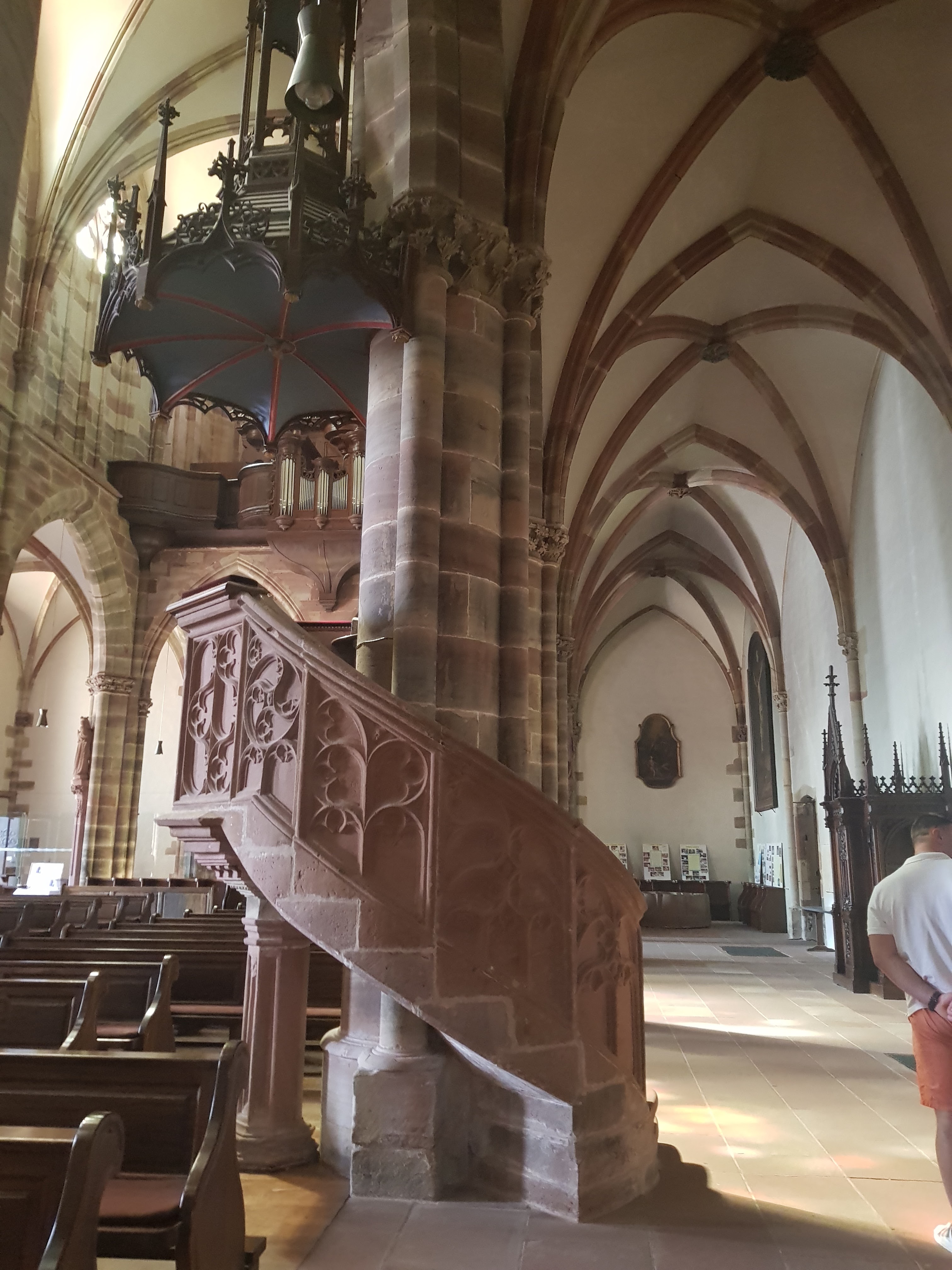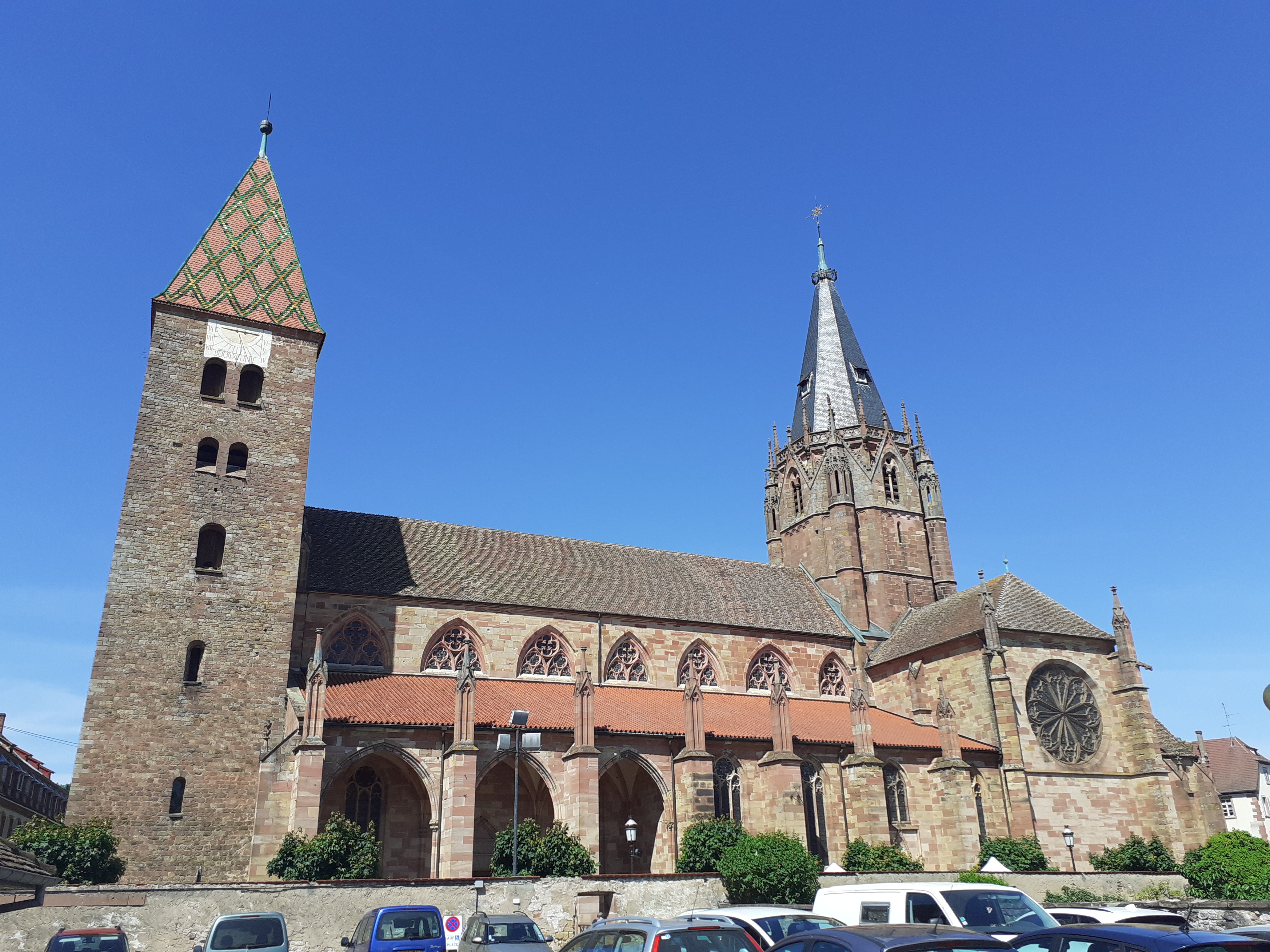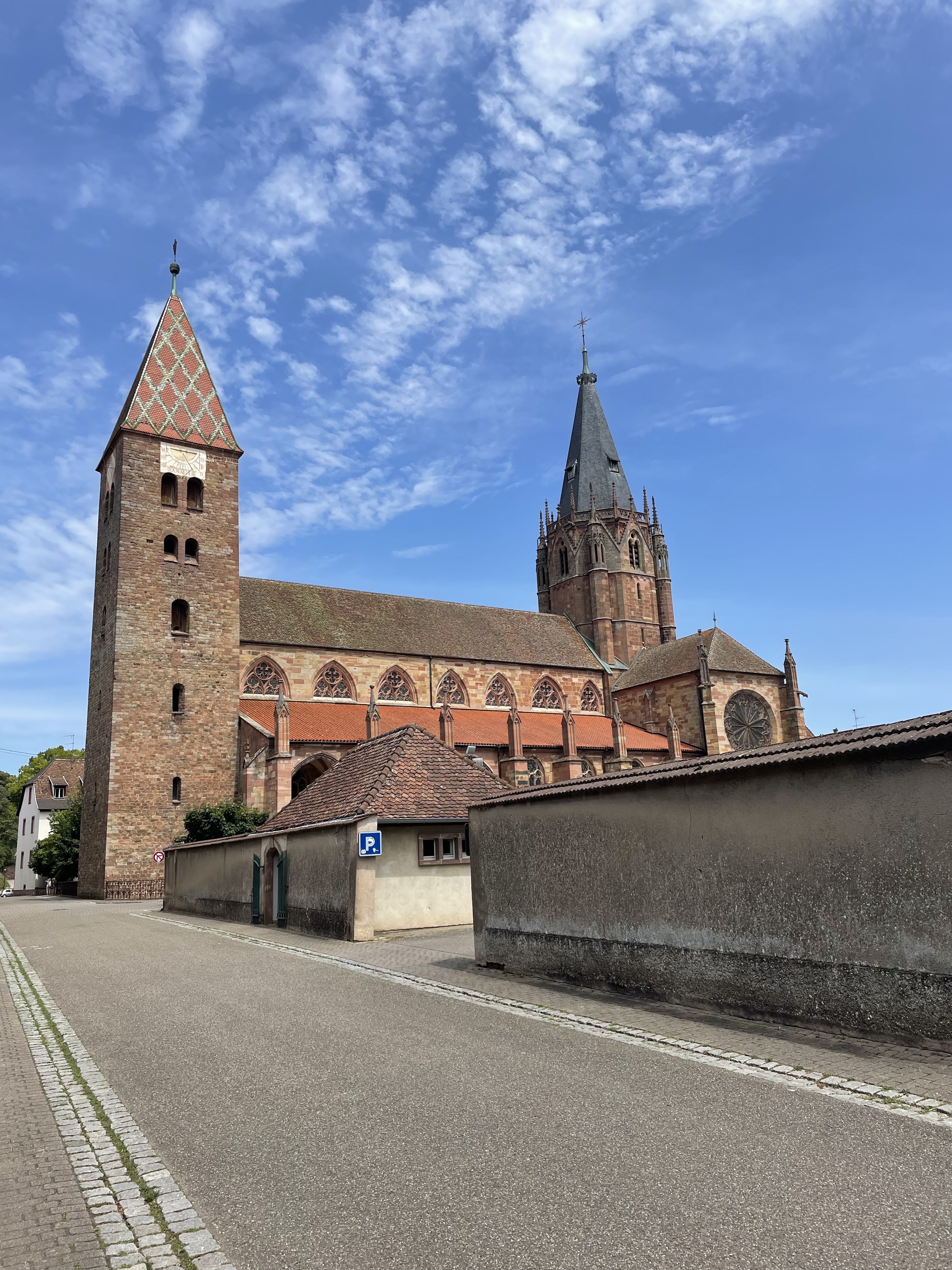 La deuxième église d'Alsace par sa superficie. Ensemble remanié au fil des siècles comme souvent mais qui reste harmonieux. Vaut le détour au moins pour la fresque monumentale de Saint-Christophe : une des plus grandes existantes au ma connaissance, 11 métrés de haut. Le cloitre inachevé mérite un coup d'oeil.