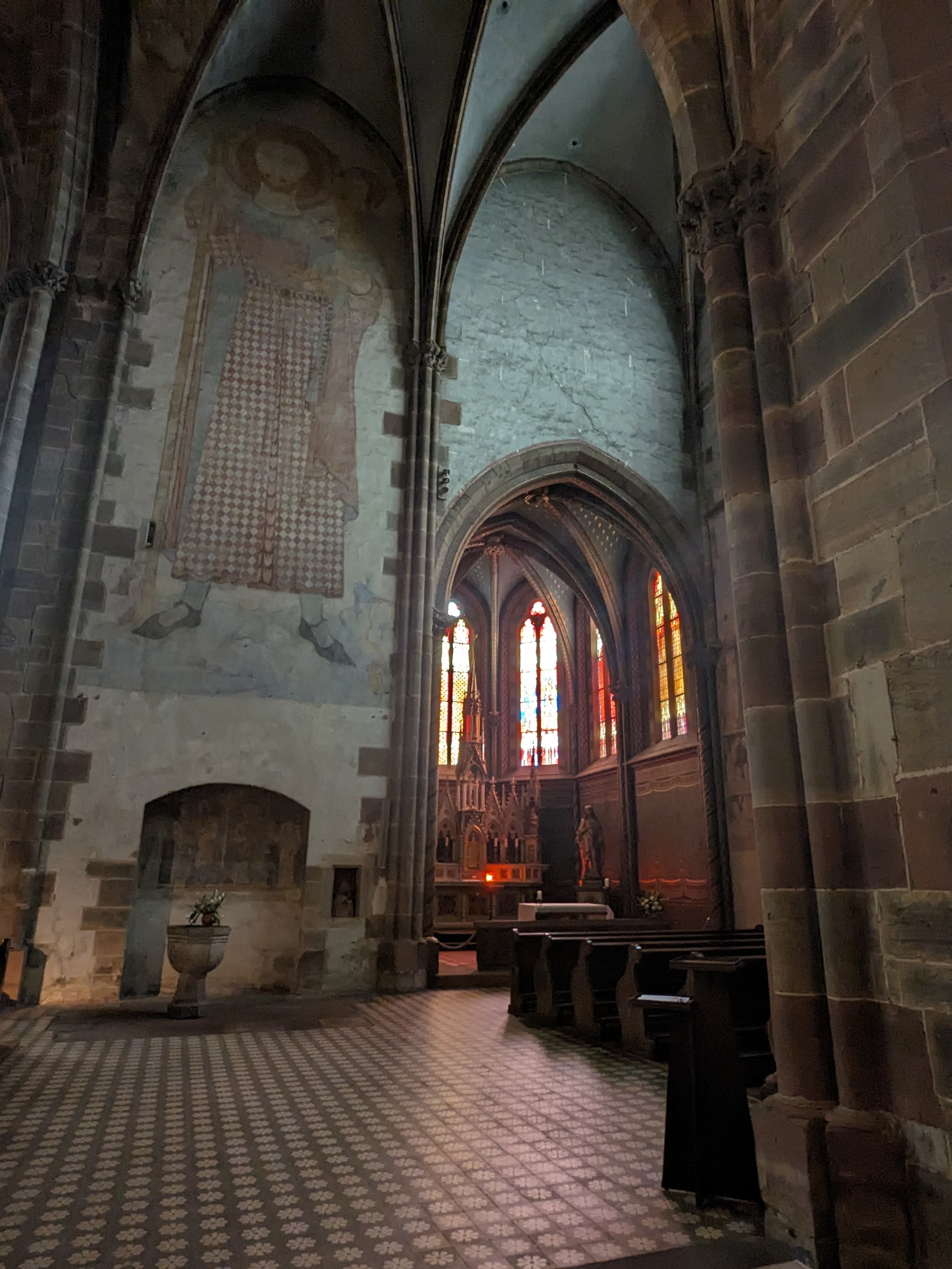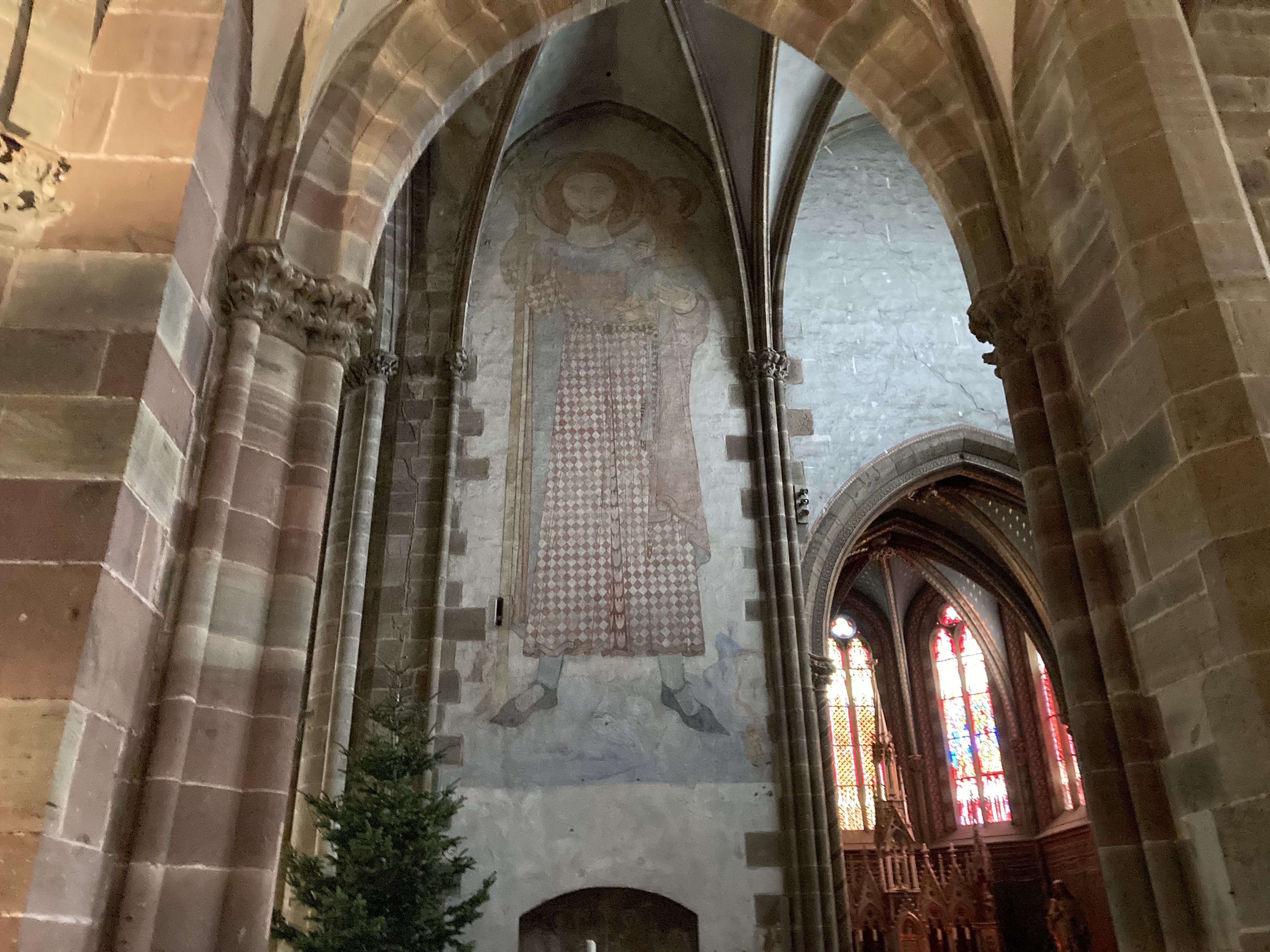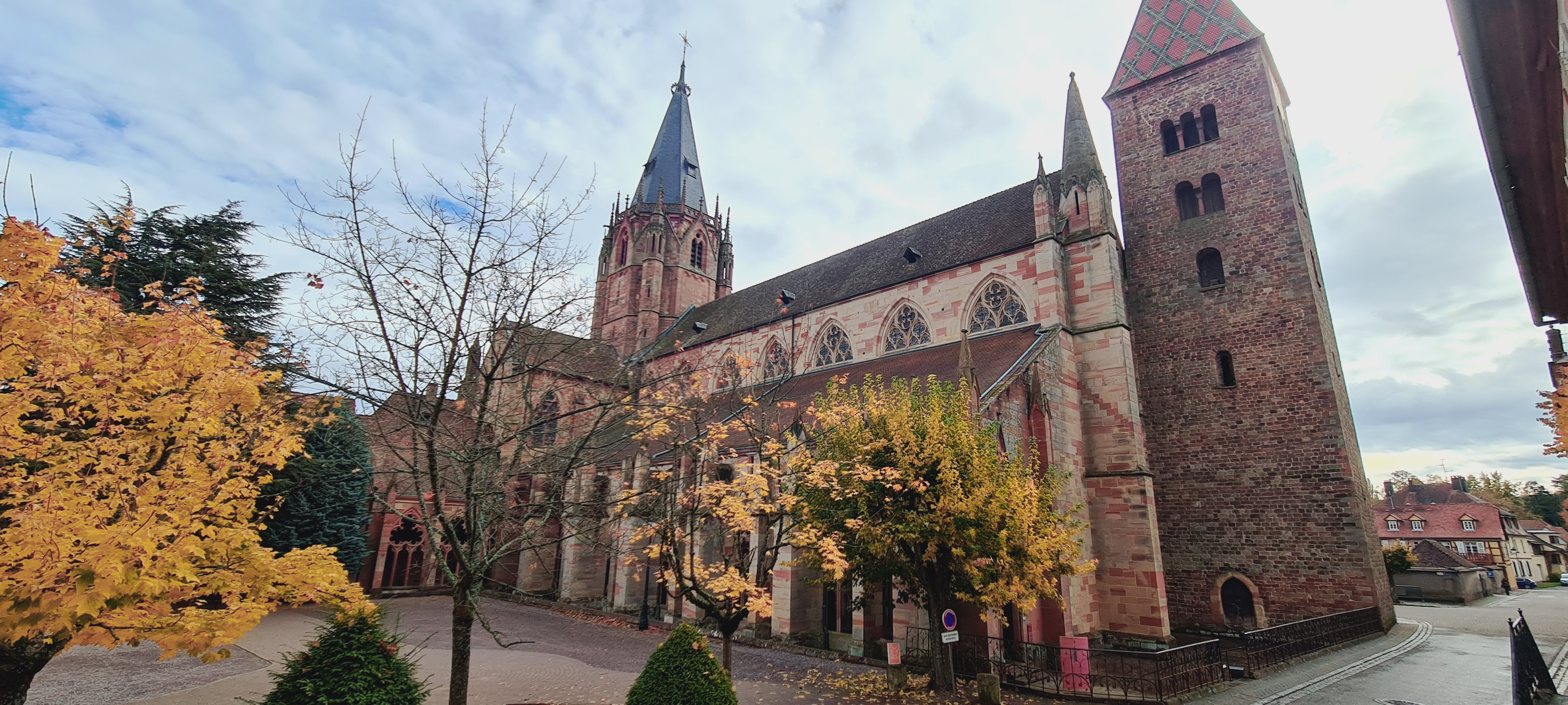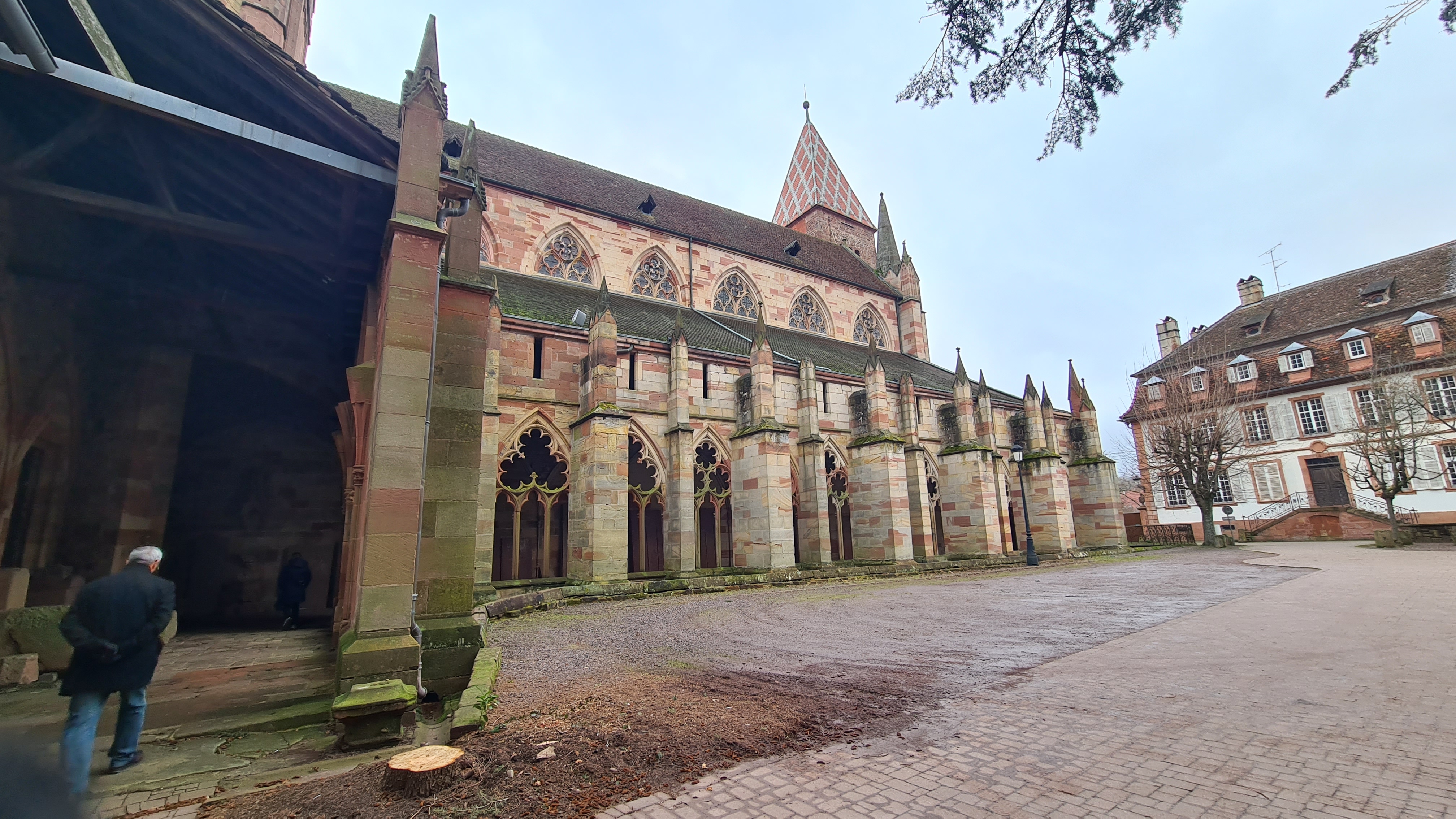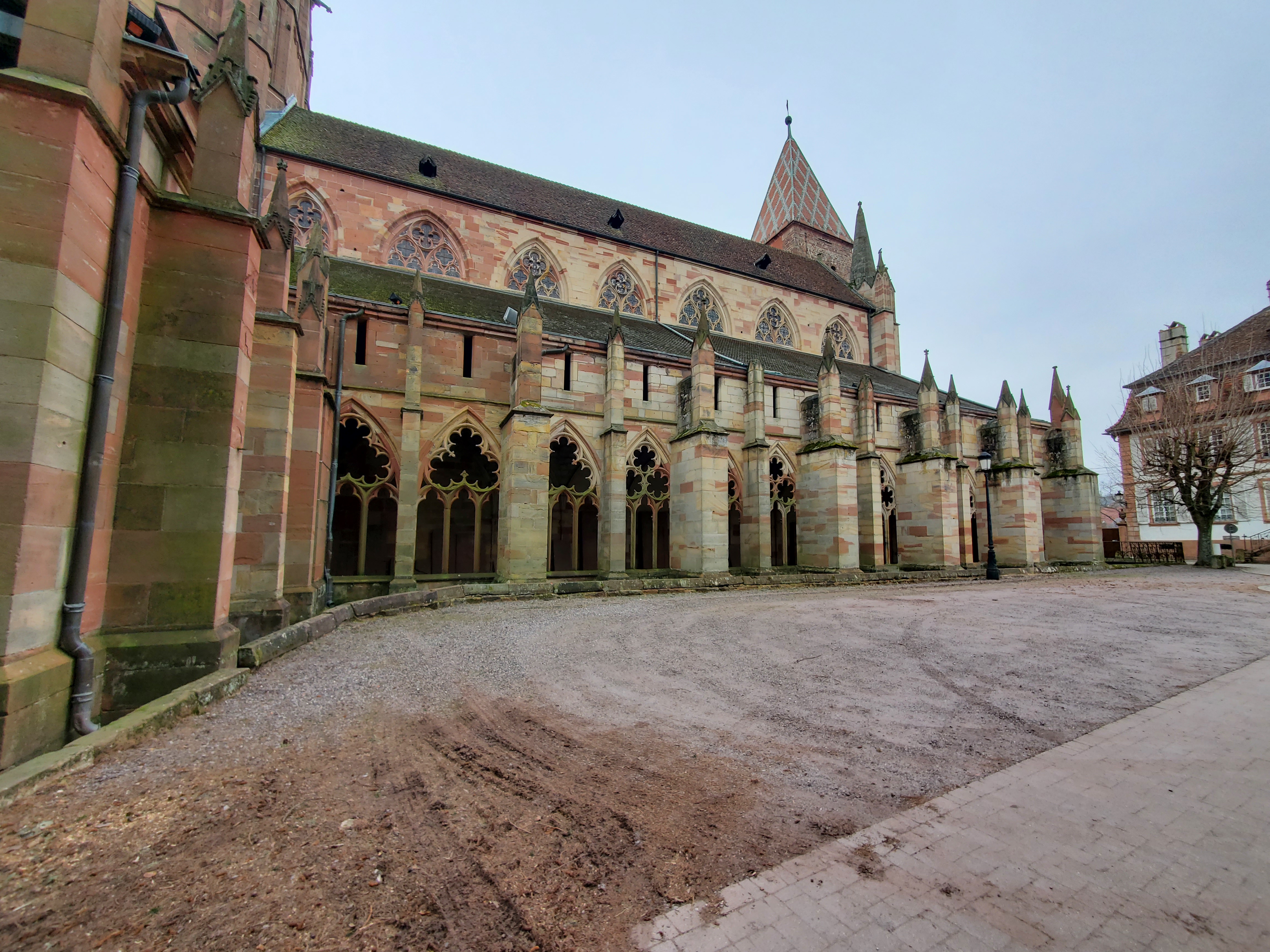 La deuxième église d'Alsace par sa superficie. Ensemble remanié au fil des siècles comme souvent mais qui reste harmonieux. Vaut le détour au moins pour la fresque monumentale de Saint-Christophe : une des plus grandes existantes au ma connaissance, 11 métrés de haut. Le cloitre inachevé mérite un coup d'oeil.