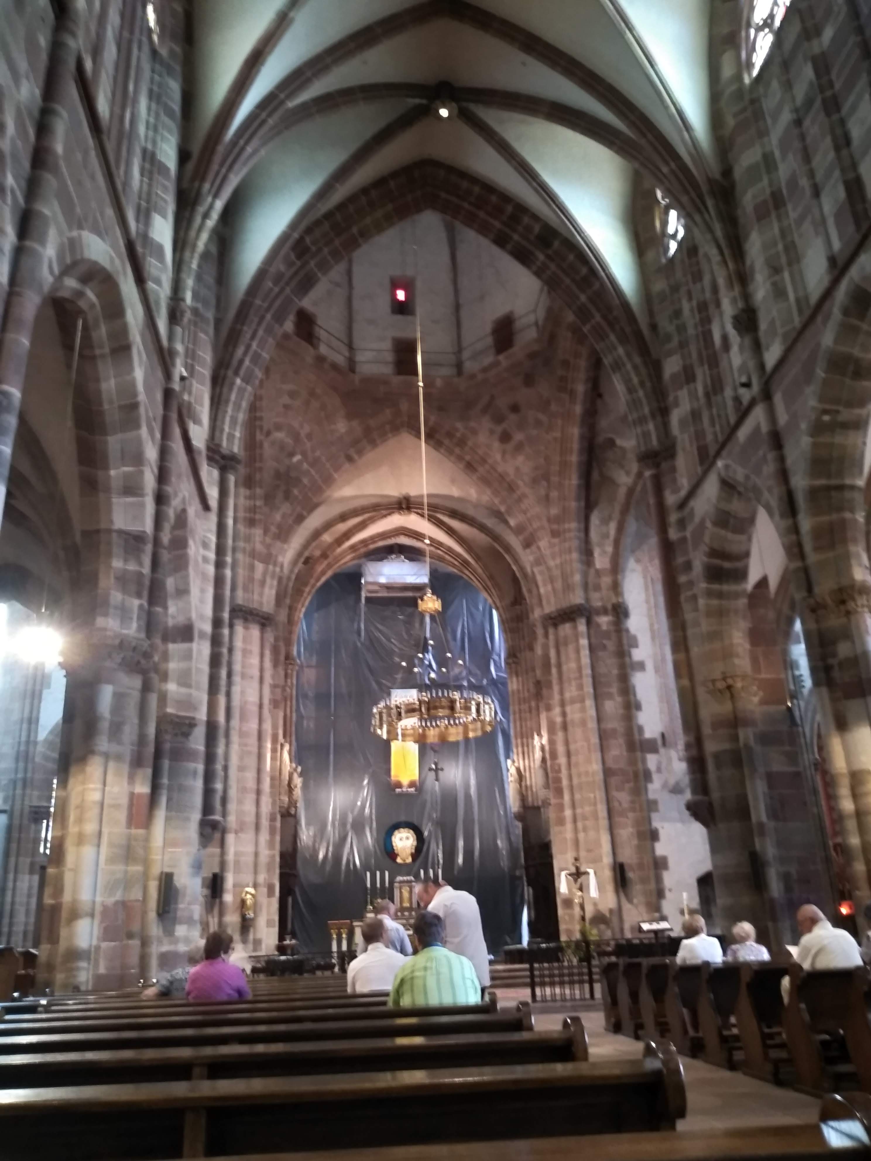 Nous sommes venus ici plusieurs fois et malheureusement nous ne sommes jamais arrivés à la grande église. Et puis aujourd’hui, le moment est venu. Actuellement (2019), les fenêtres sont exposées. Des parties de l'église sont donc bouclées ou « emballées »
