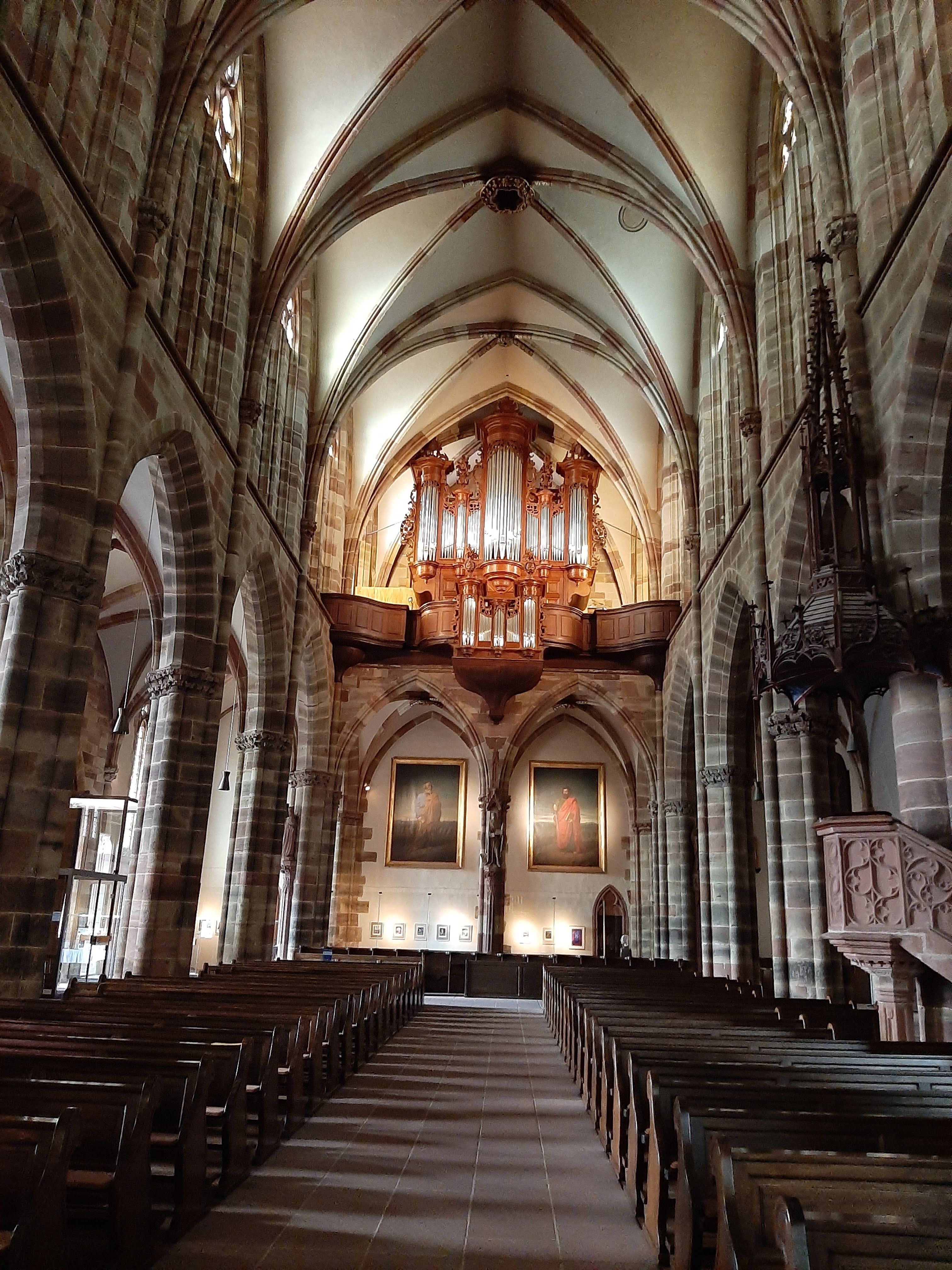L'église de l'ancienne abbaye bénédictine est située à Wissembourg, en France. A noter : l'orgue Dubois, accordé trois demi-tons plus bas, a été en grande partie restauré dans son état d'origine en 2010-2012. Les entendre jouer est un régal qui m'a été accordé lors d'une tournée privée de l'organiste. Le dialogue joué entre l'évêque et l'orgue, qui retentit habituellement lors de la consécration de l'orgue, est merveilleux !