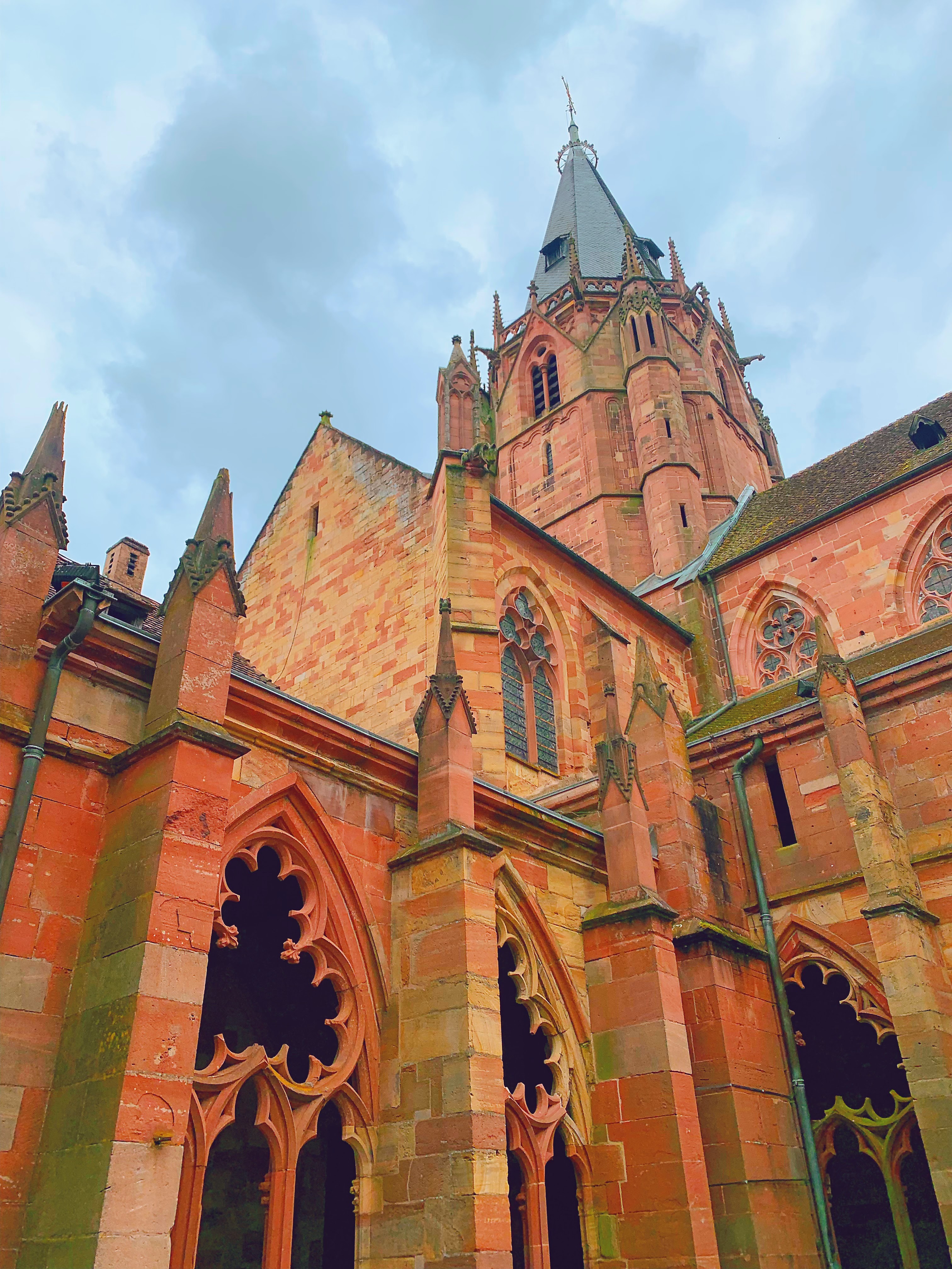 Grande cathédrale au coeur de Wissembourg. Il reste encore une petite partie du cloître du monastère qui peut être visitée.
