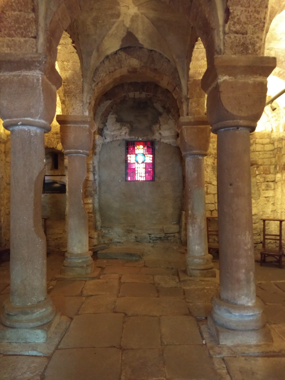 Belle église ancienne avec une petite crypte.