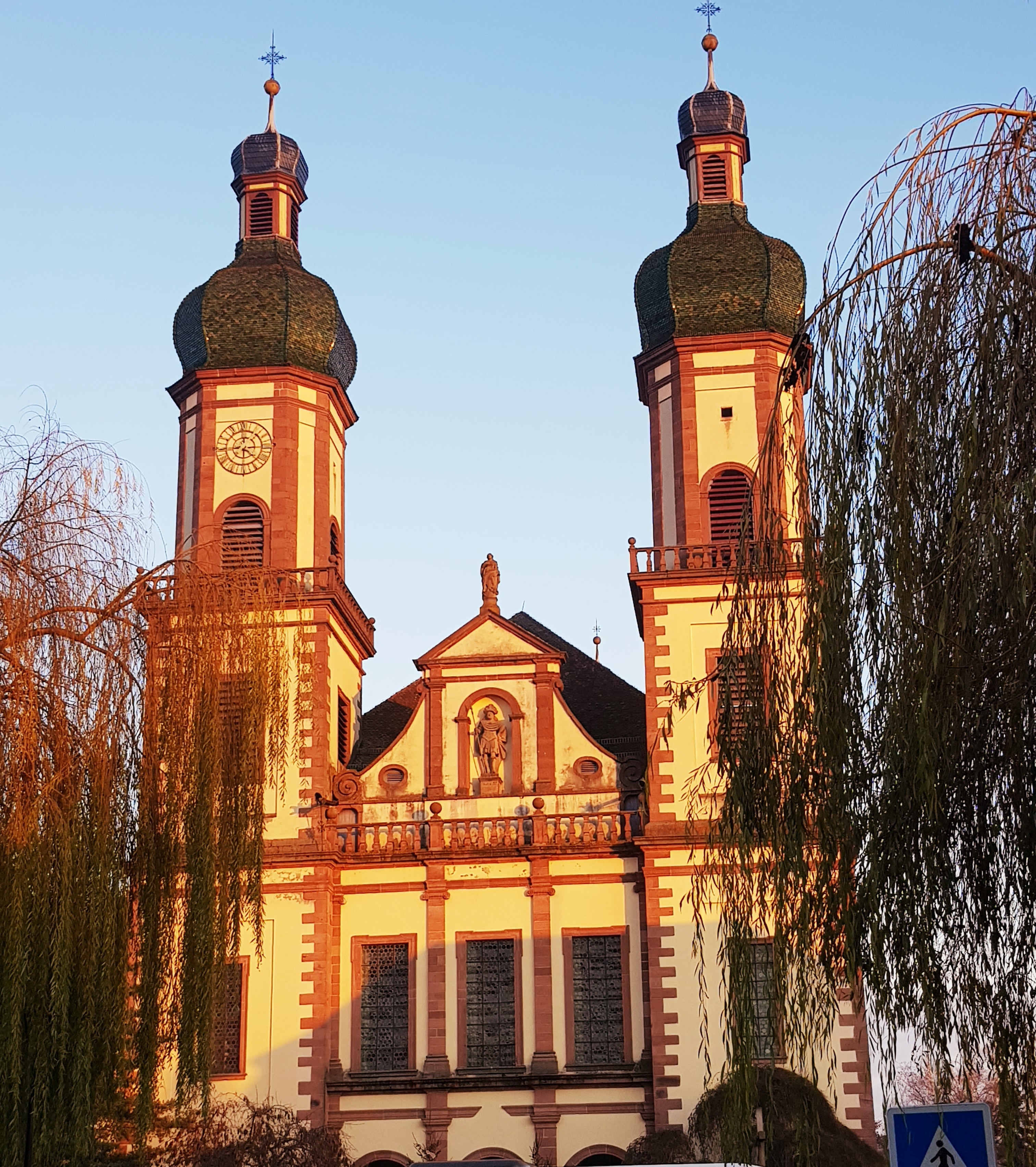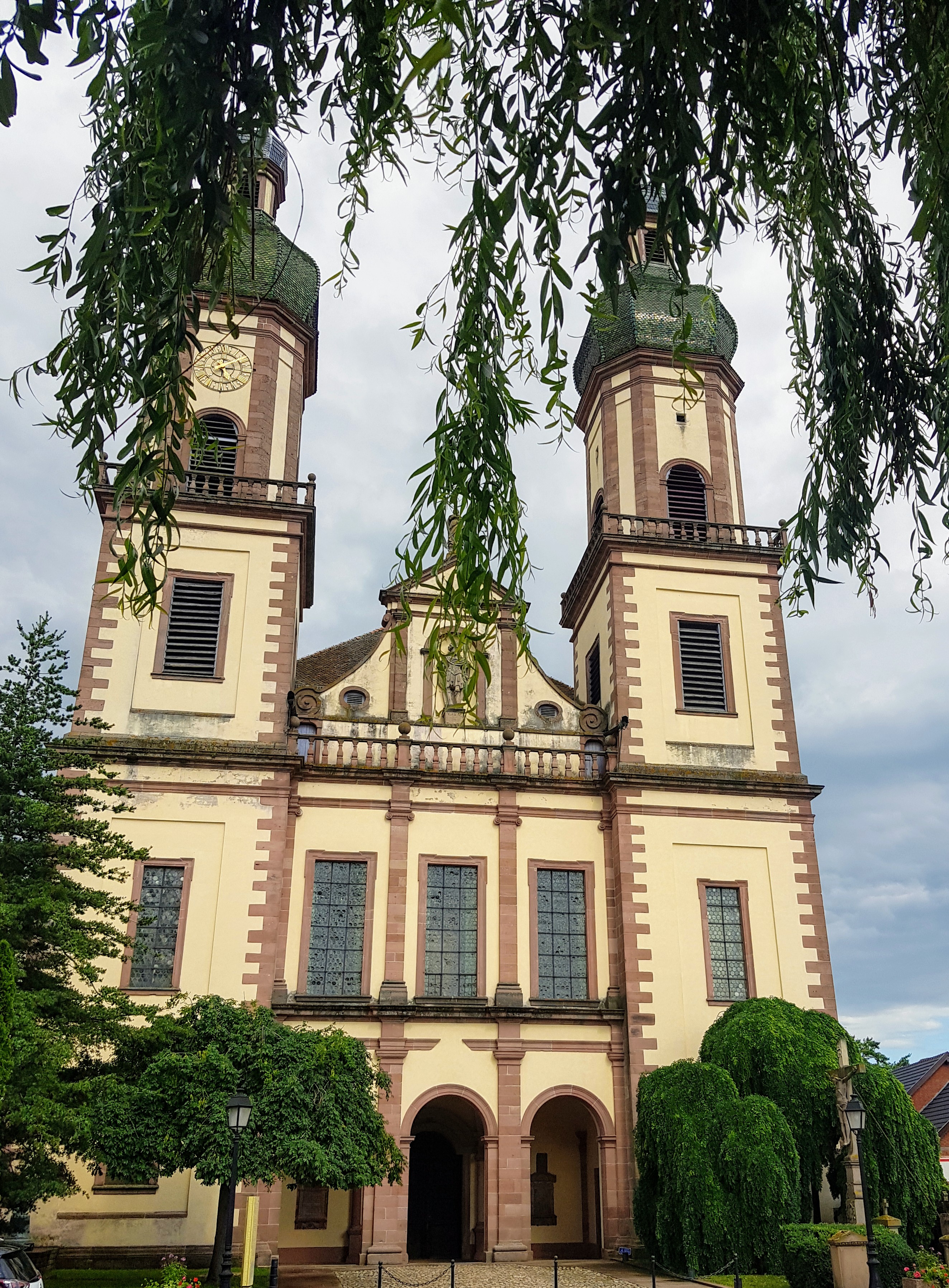 Superbe église abbatiale de style baroque située dans un charmant petit village du Ried alsacien à quelques kilomètres de Sélestat.