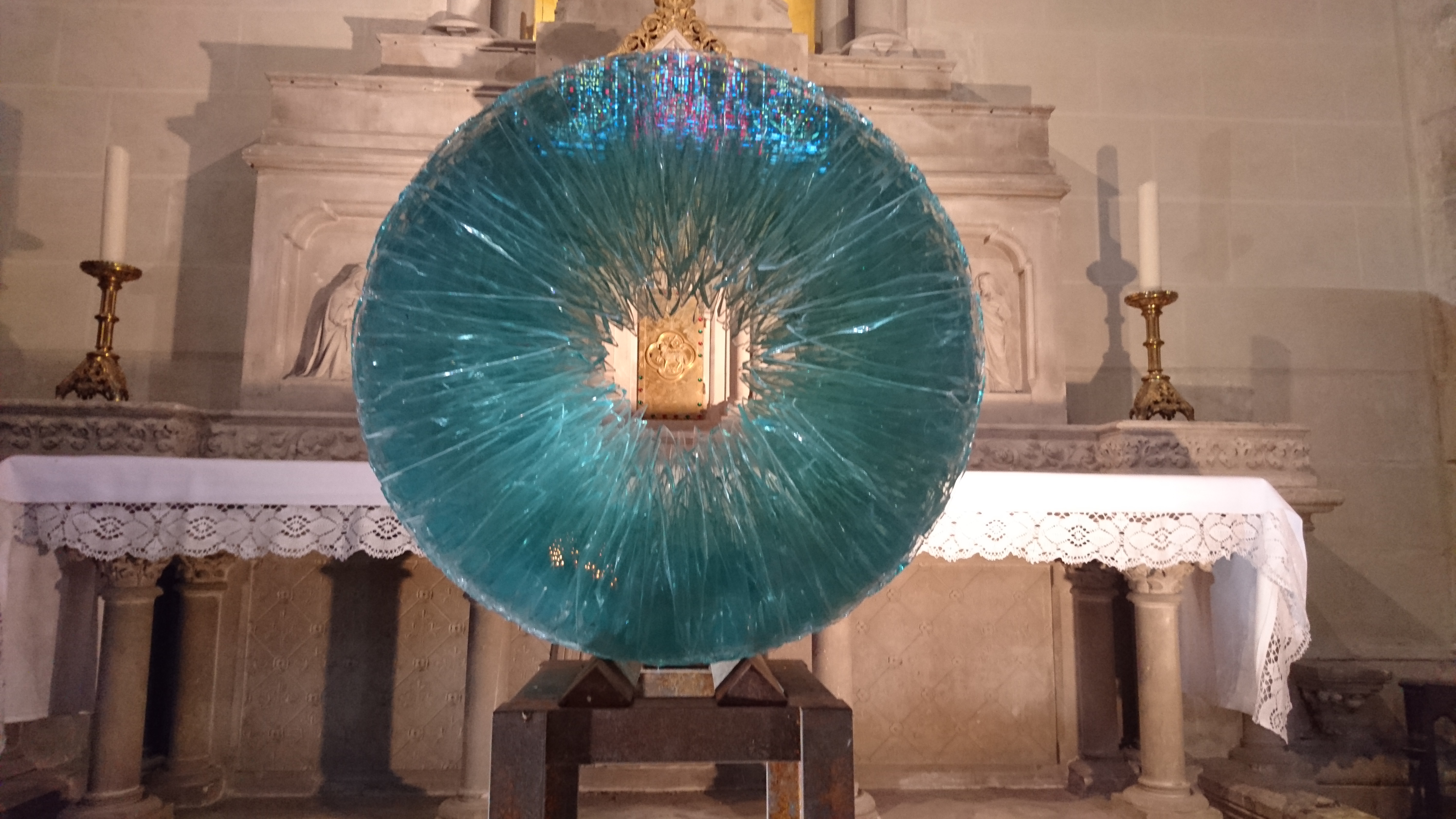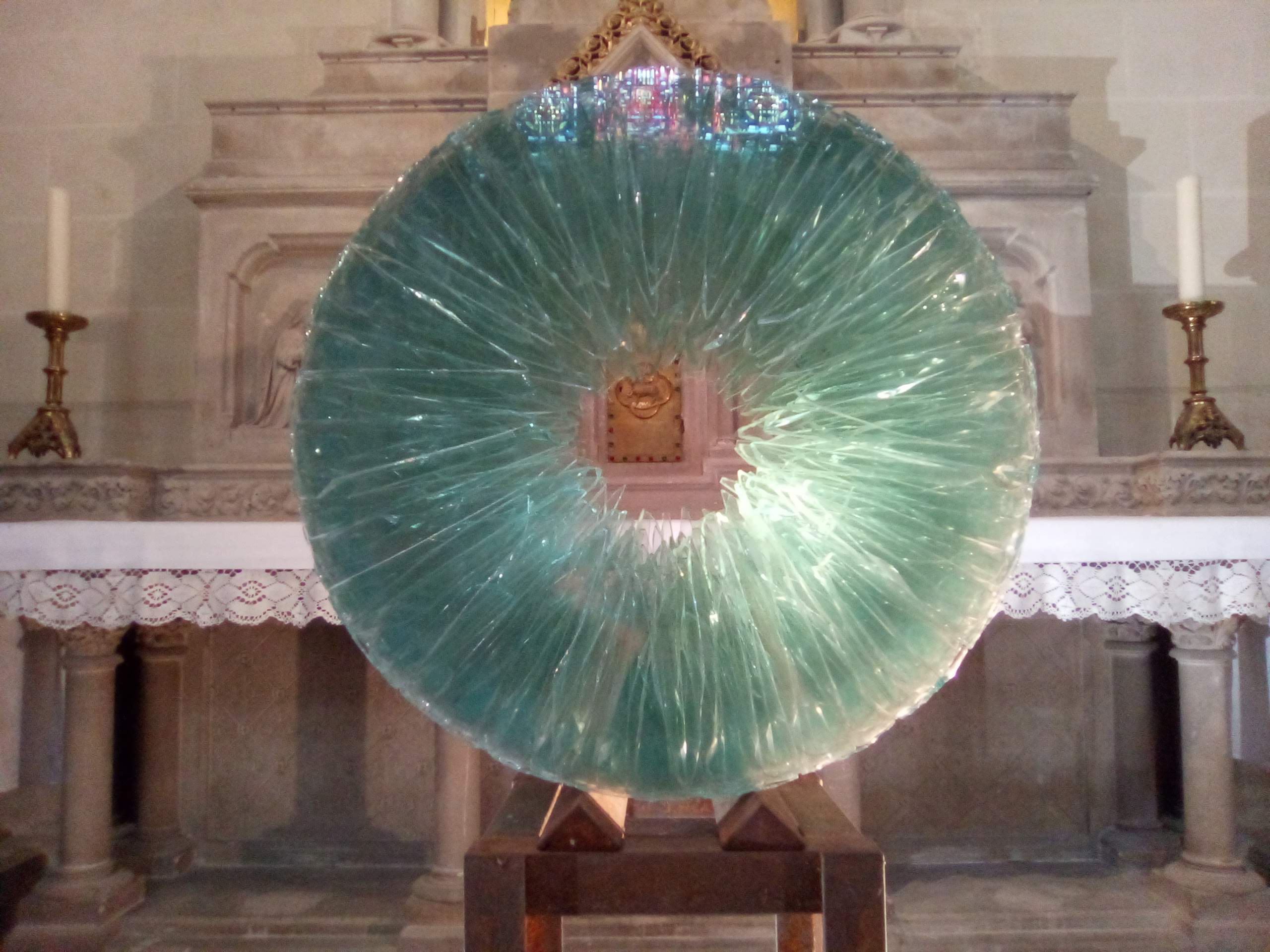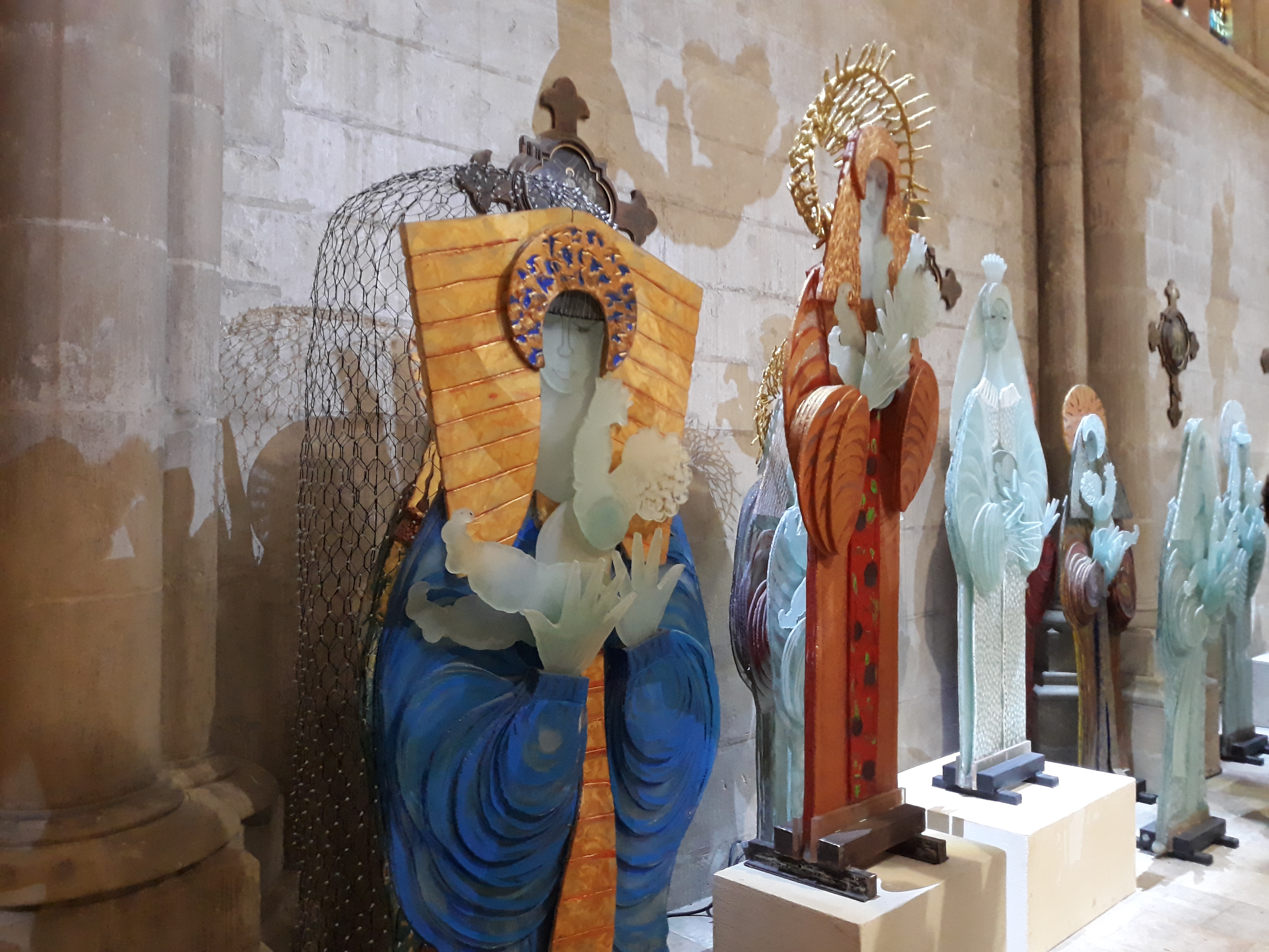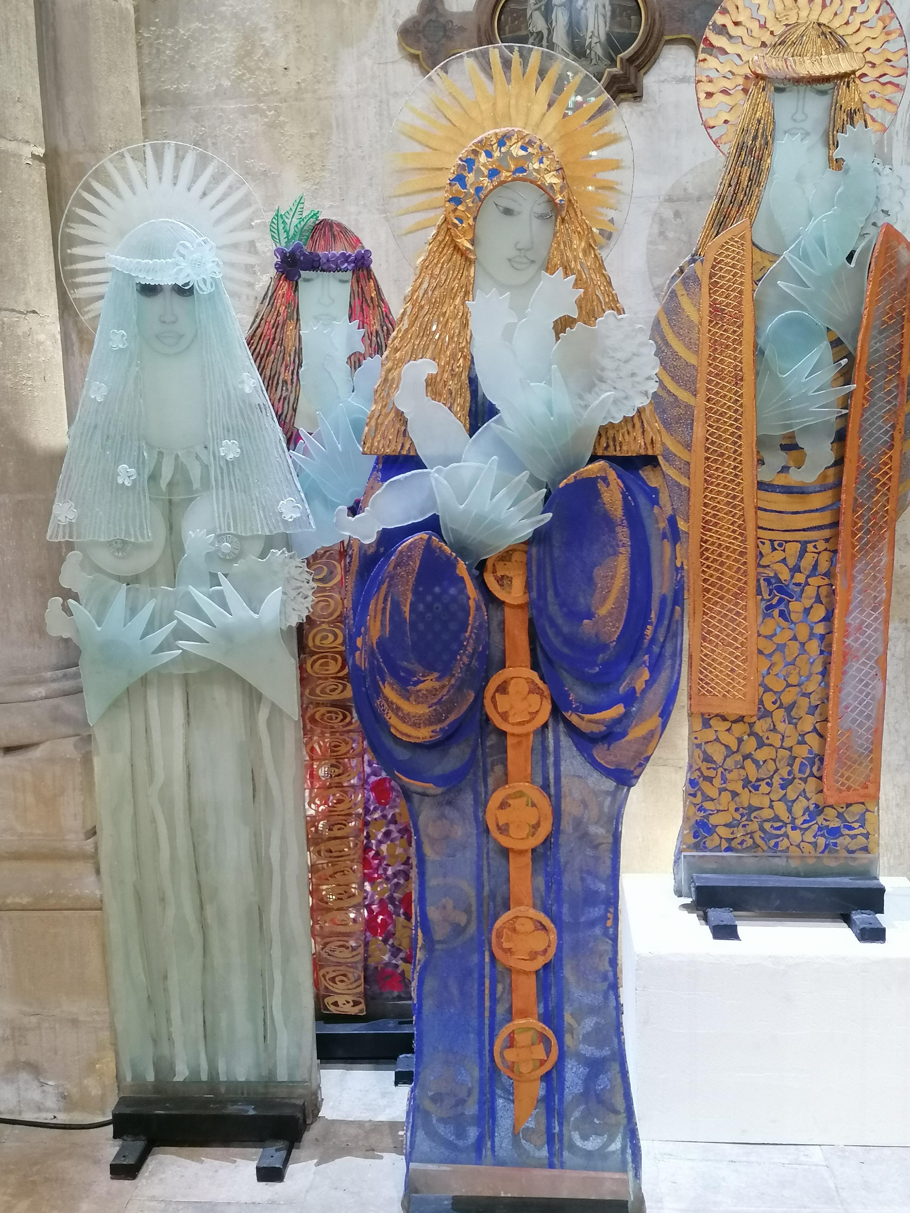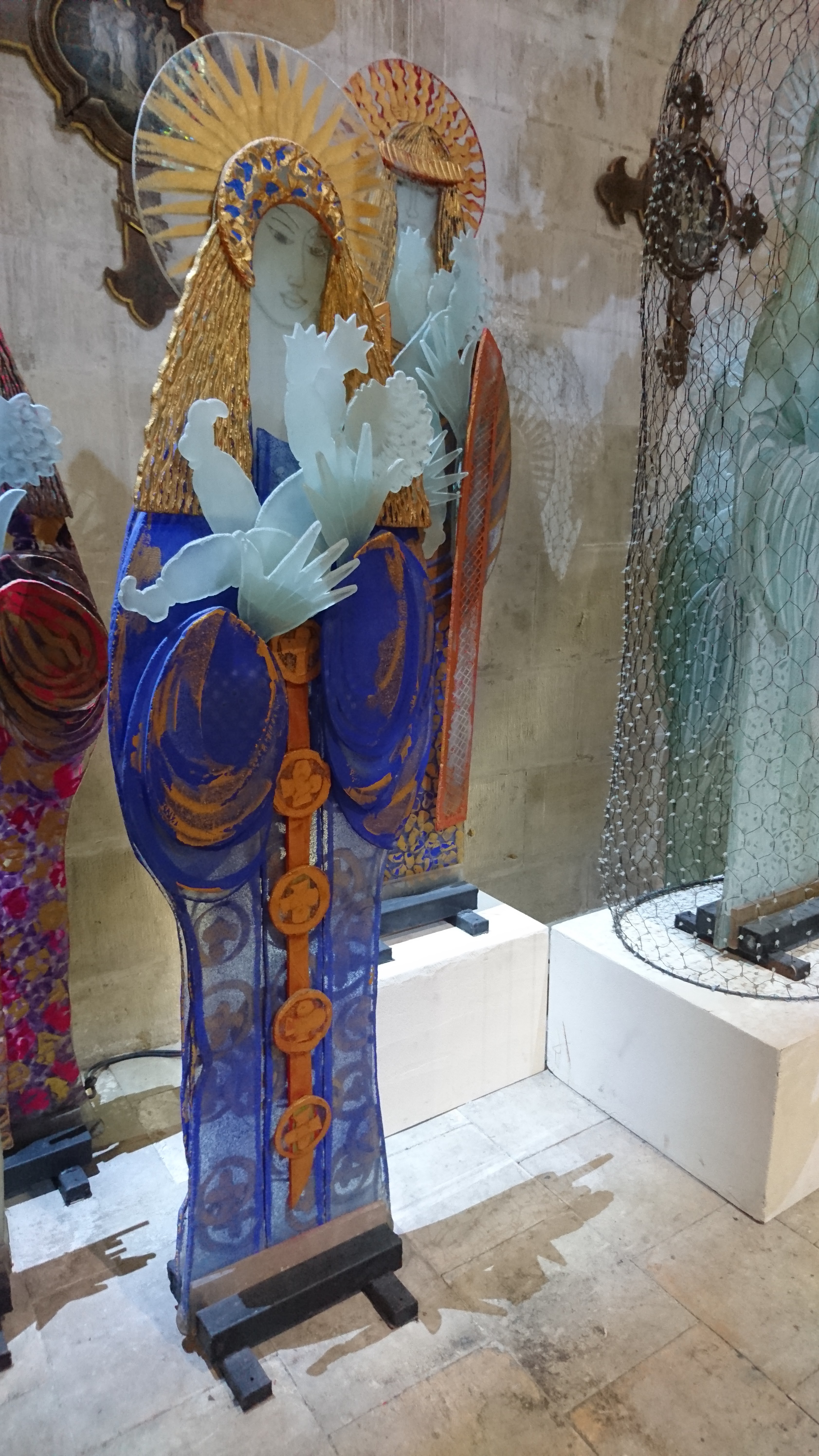 Cette exposition a l intérieur de l église magnifique cette verrerie on en prend plein les yeux