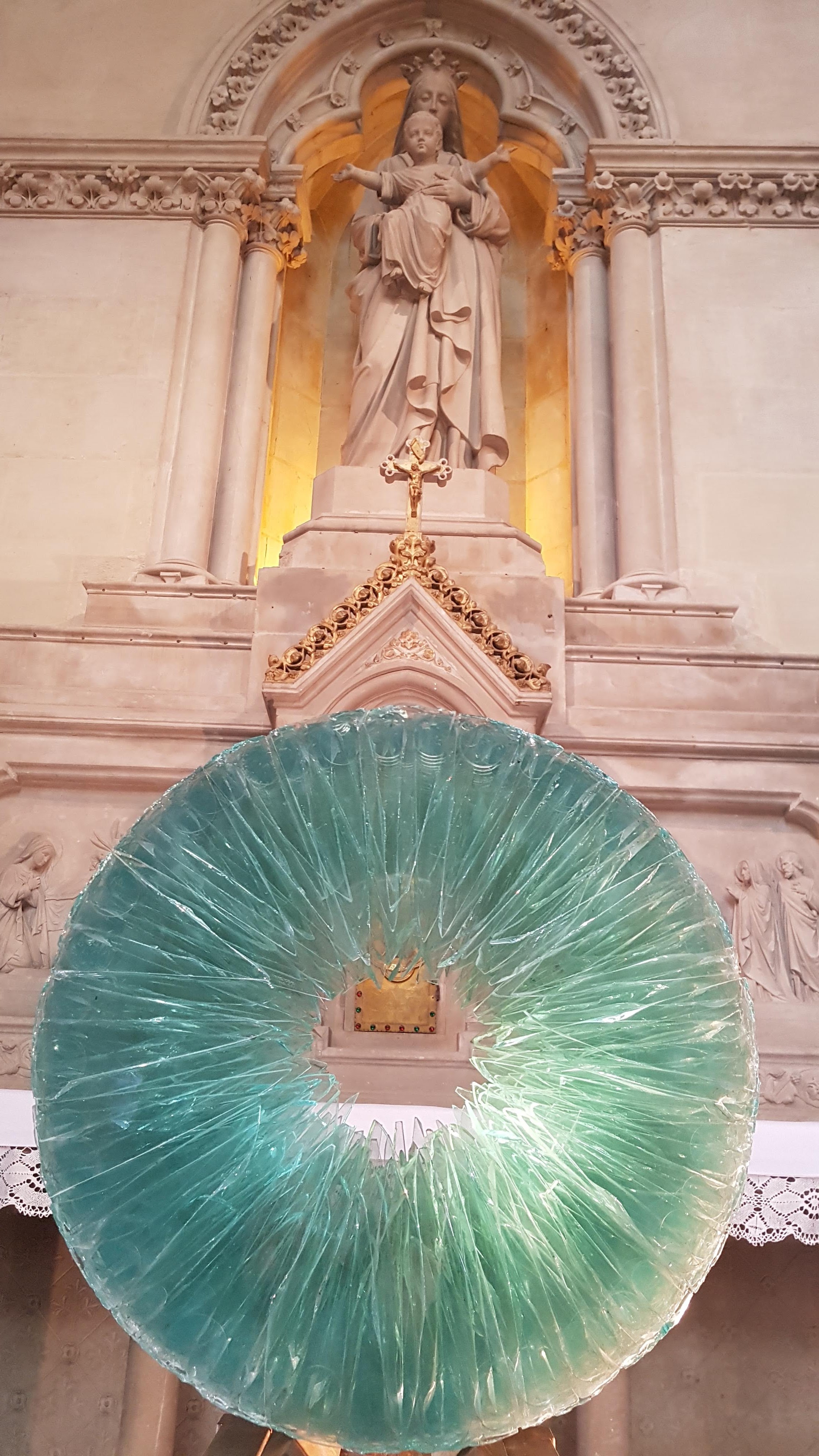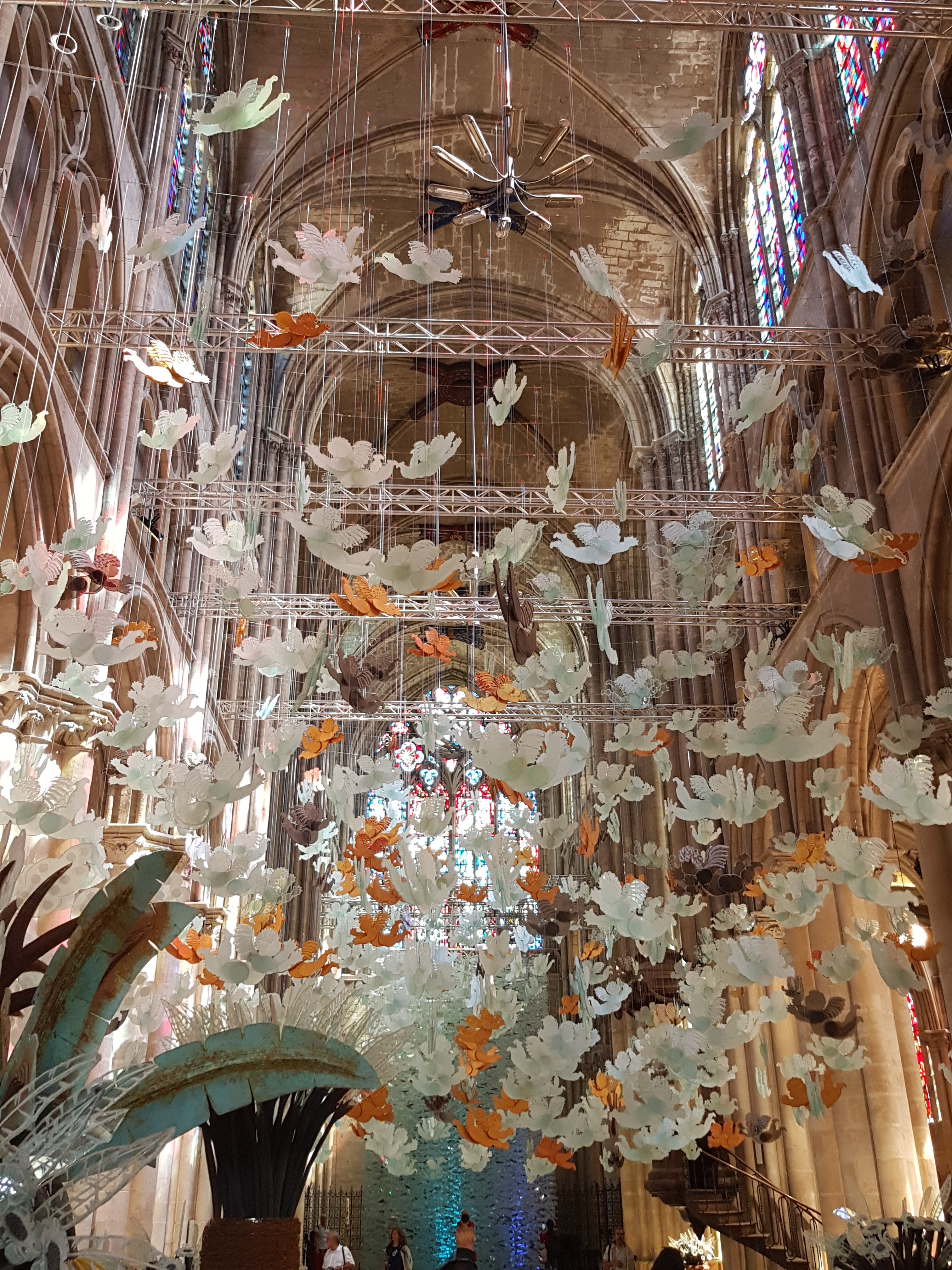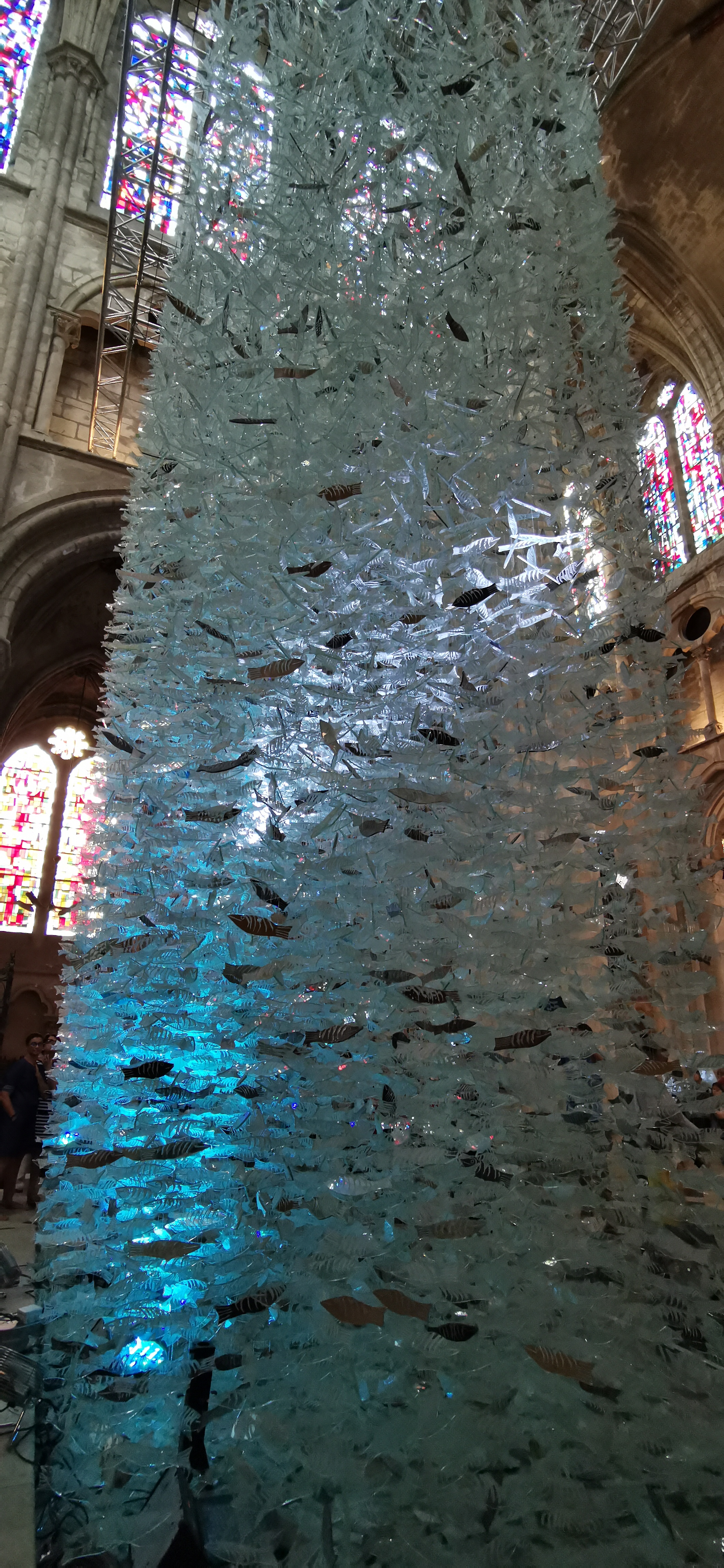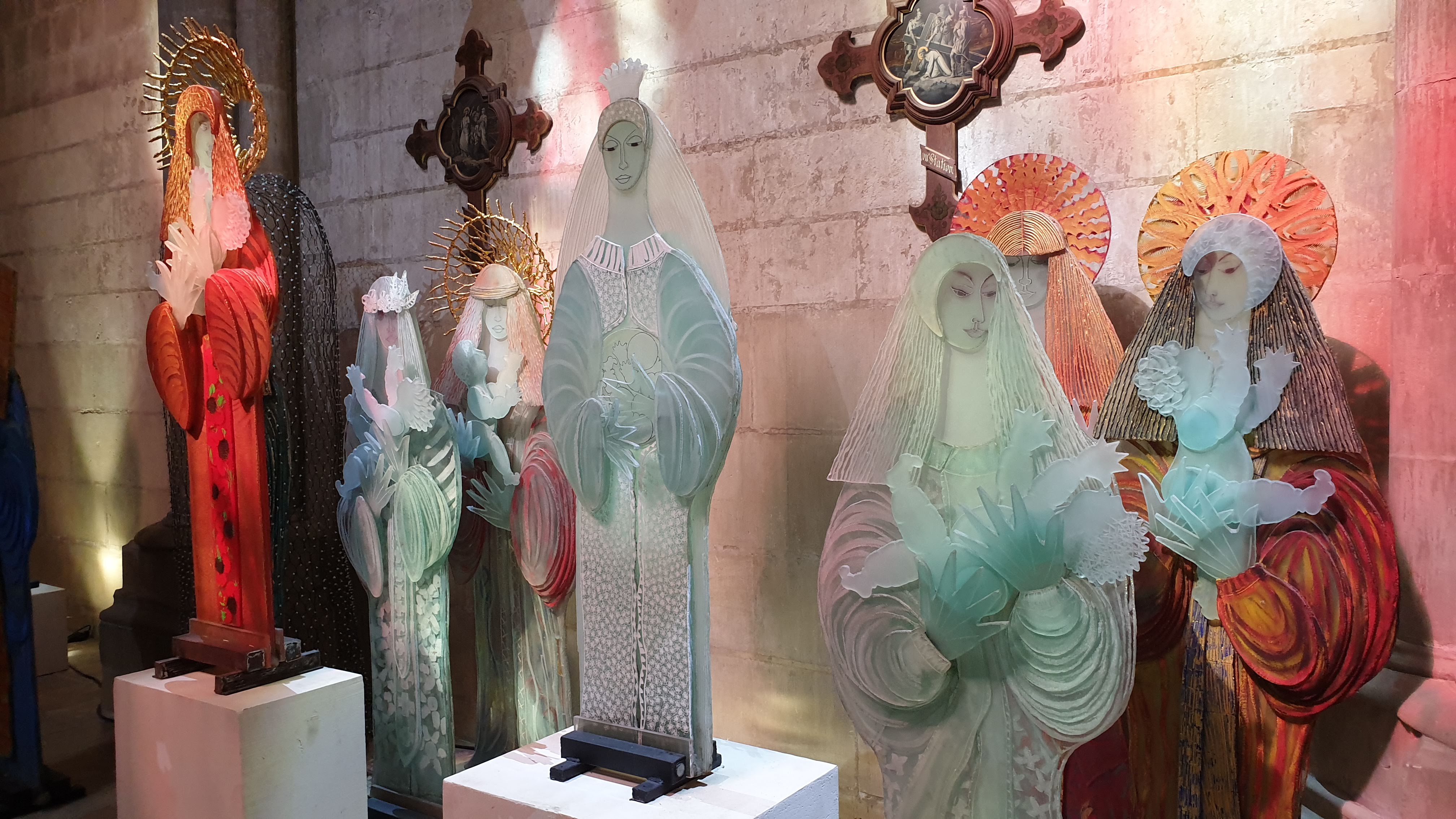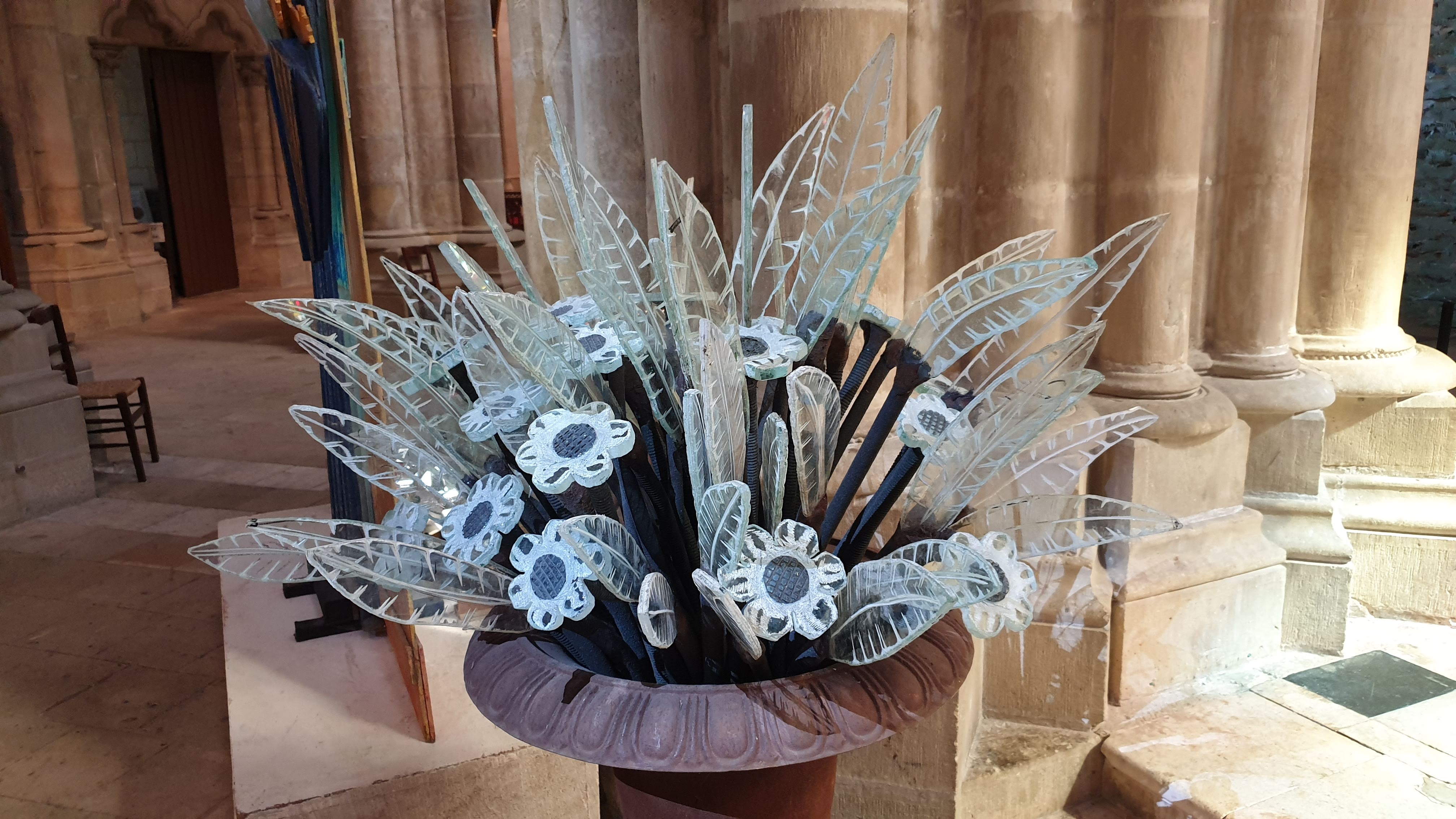 Cette exposition a l intérieur de l église magnifique cette verrerie on en prend plein les yeux