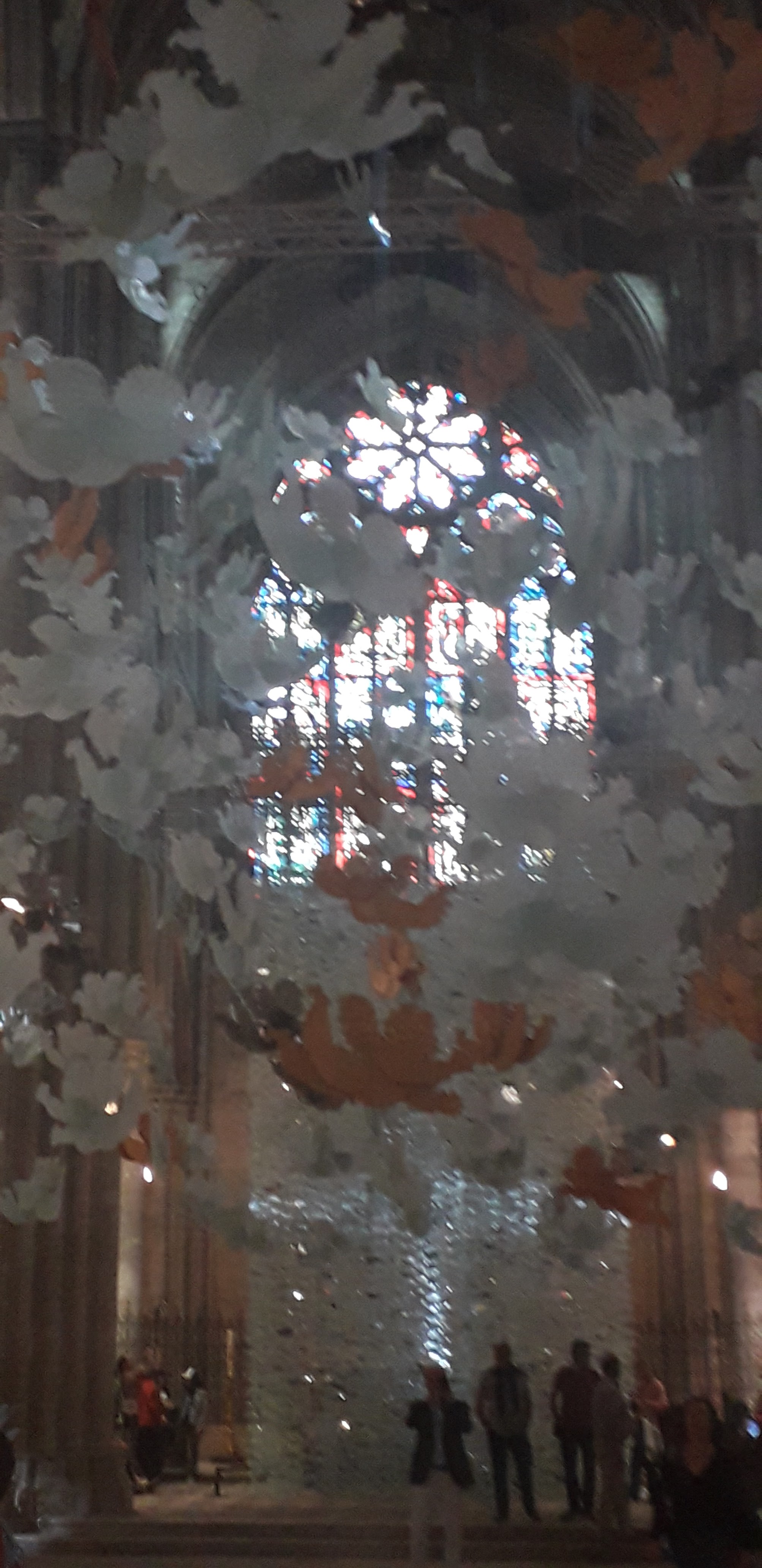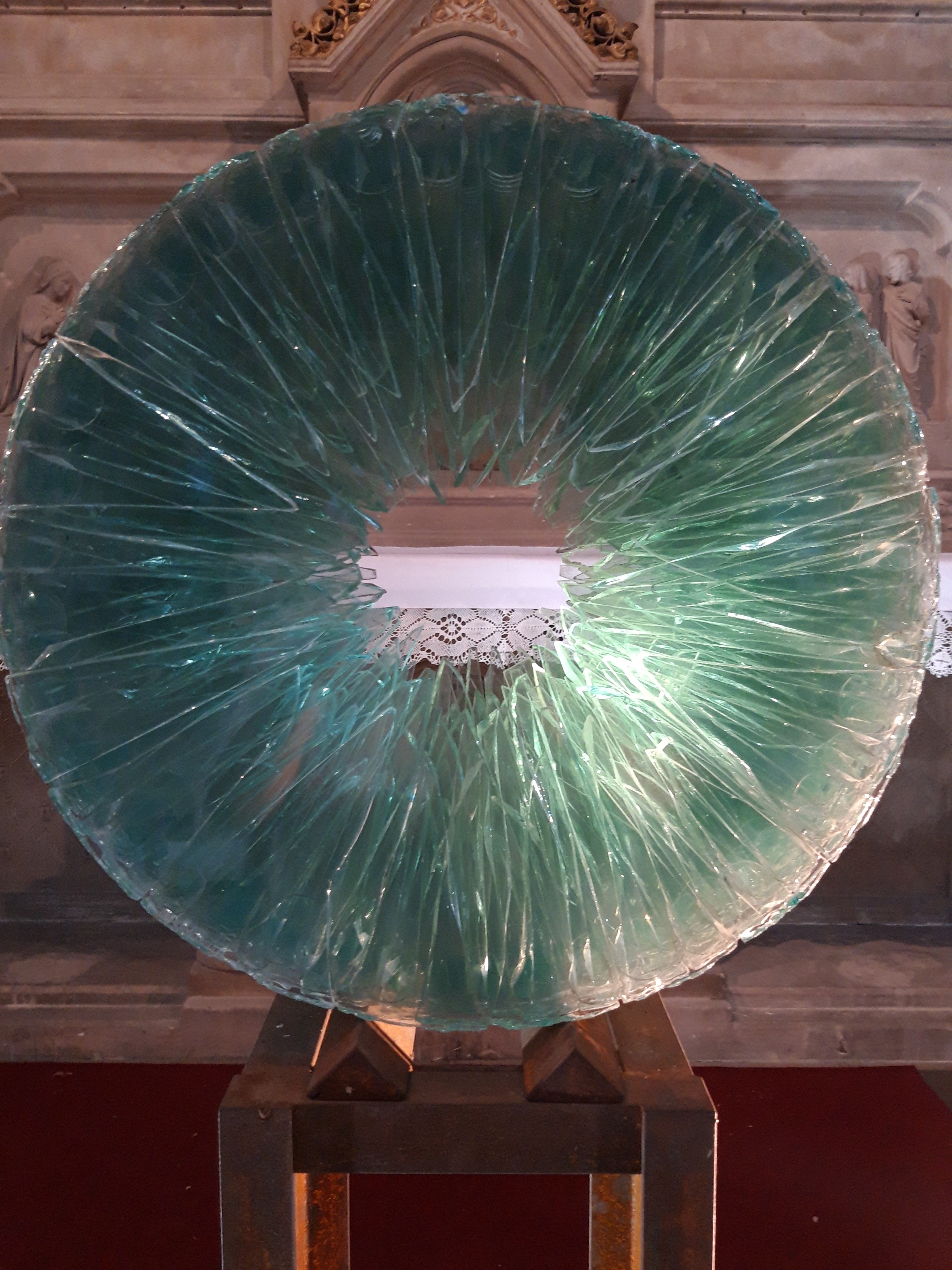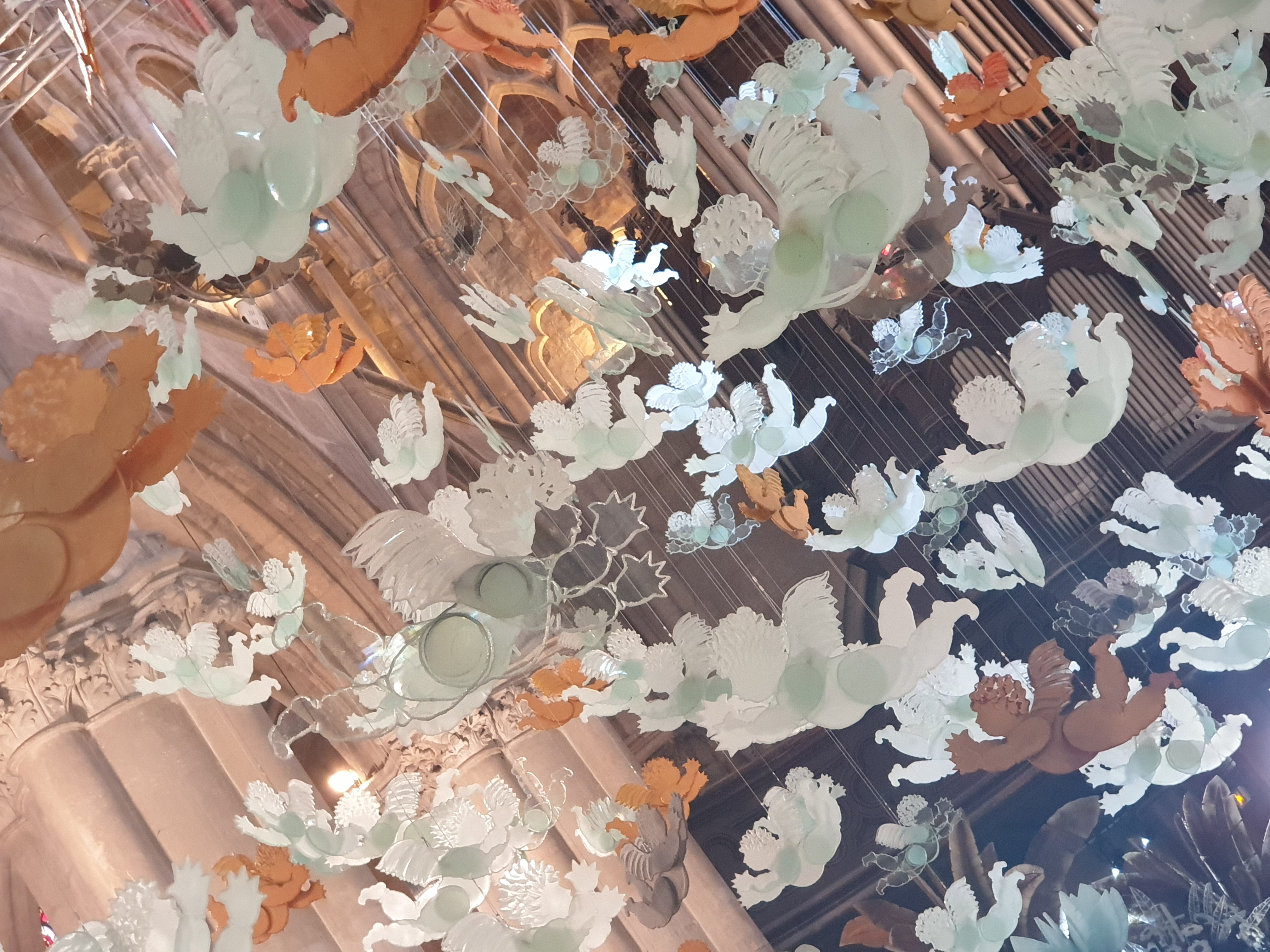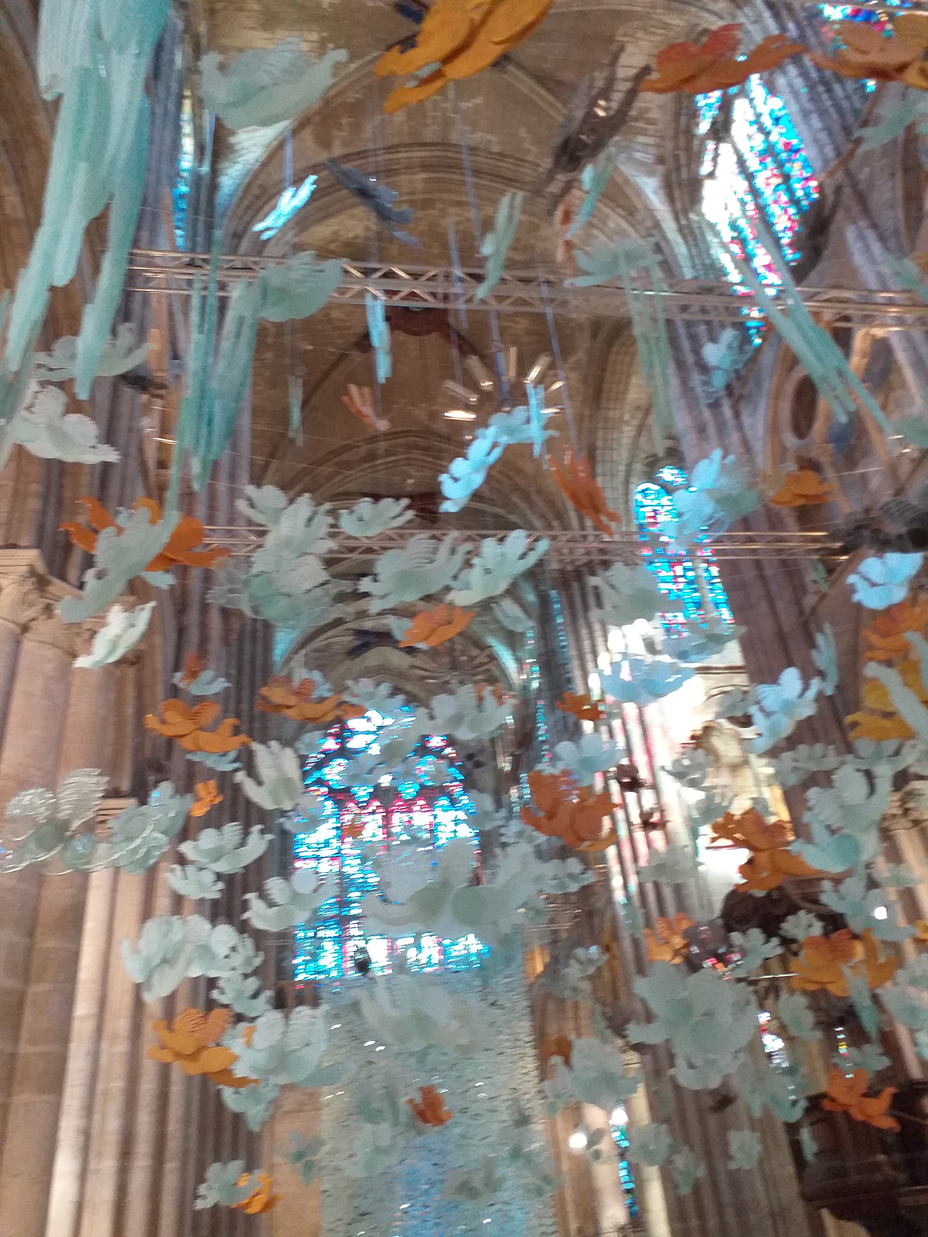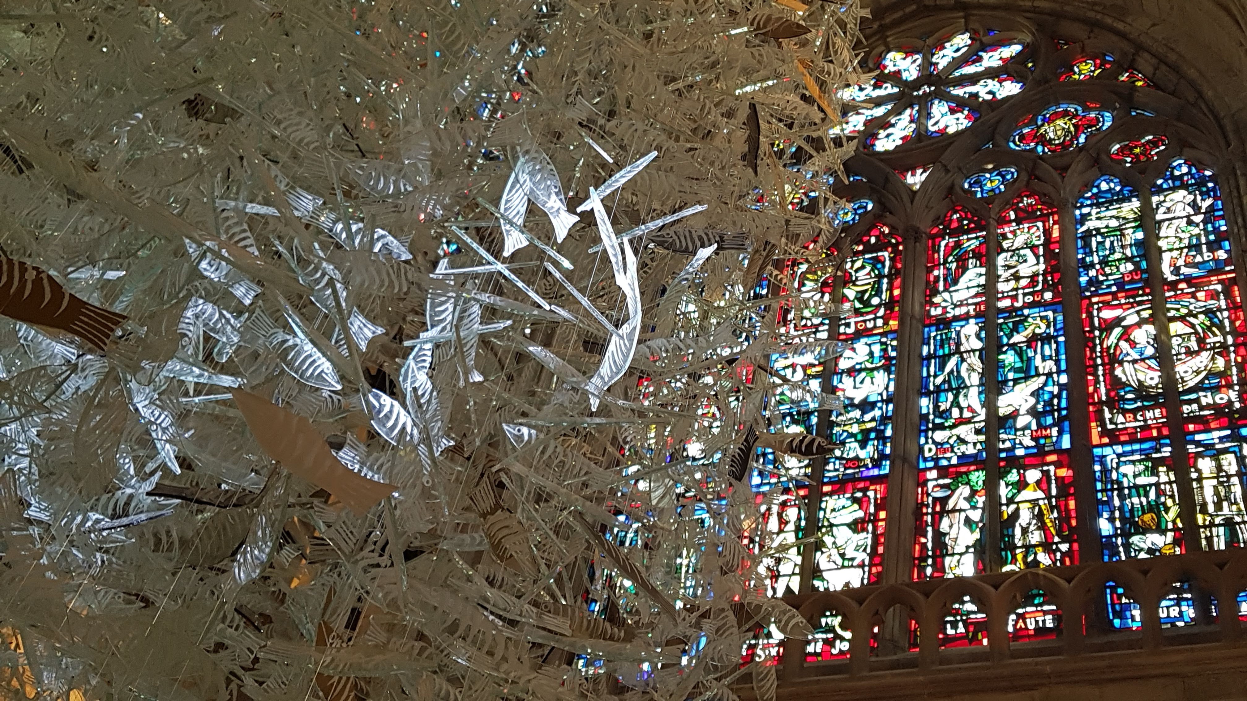 Cette exposition a l intérieur de l église magnifique cette verrerie on en prend plein les yeux
