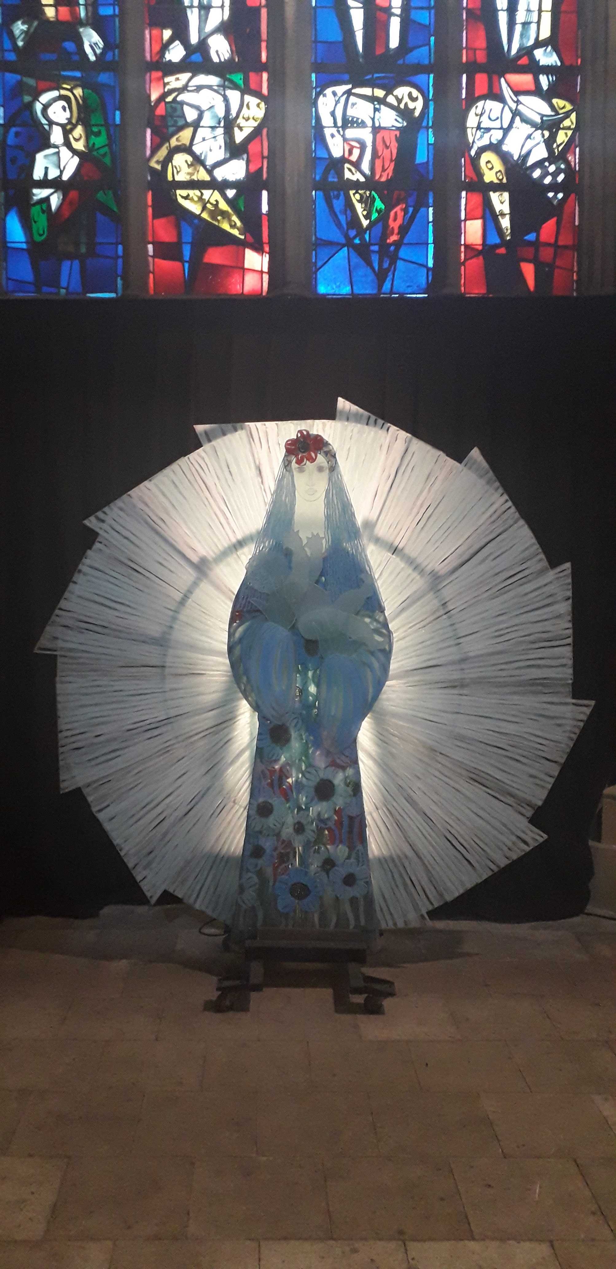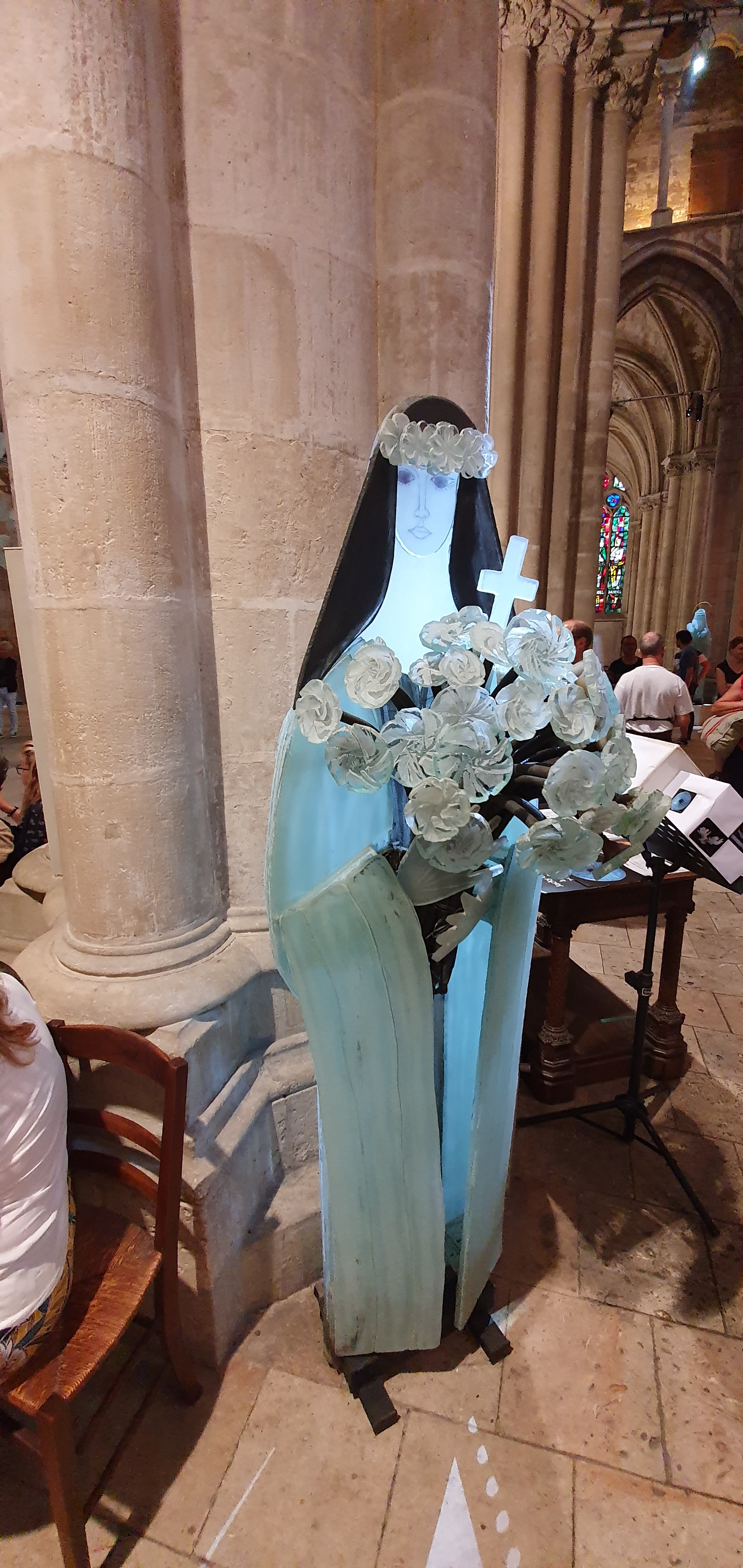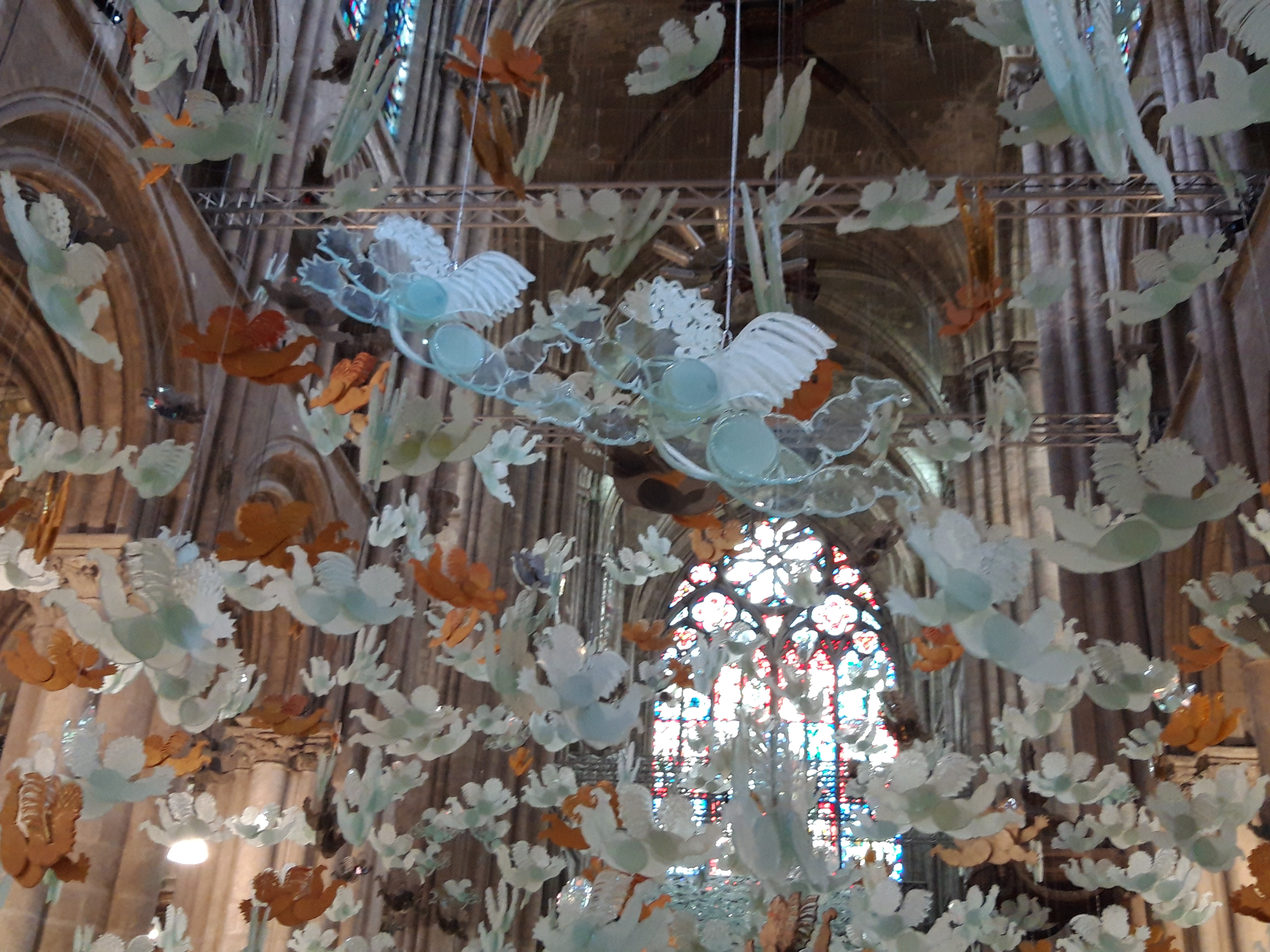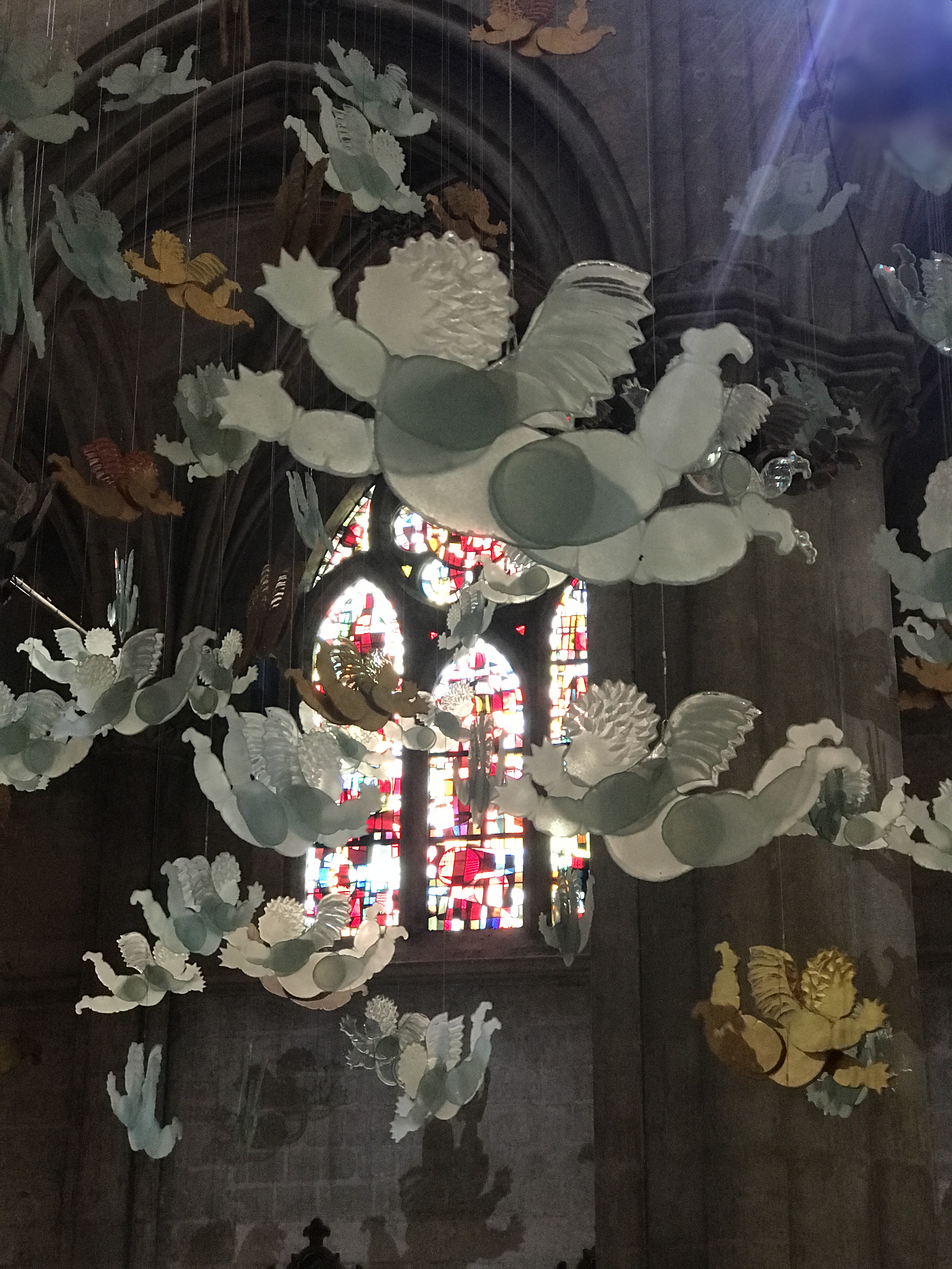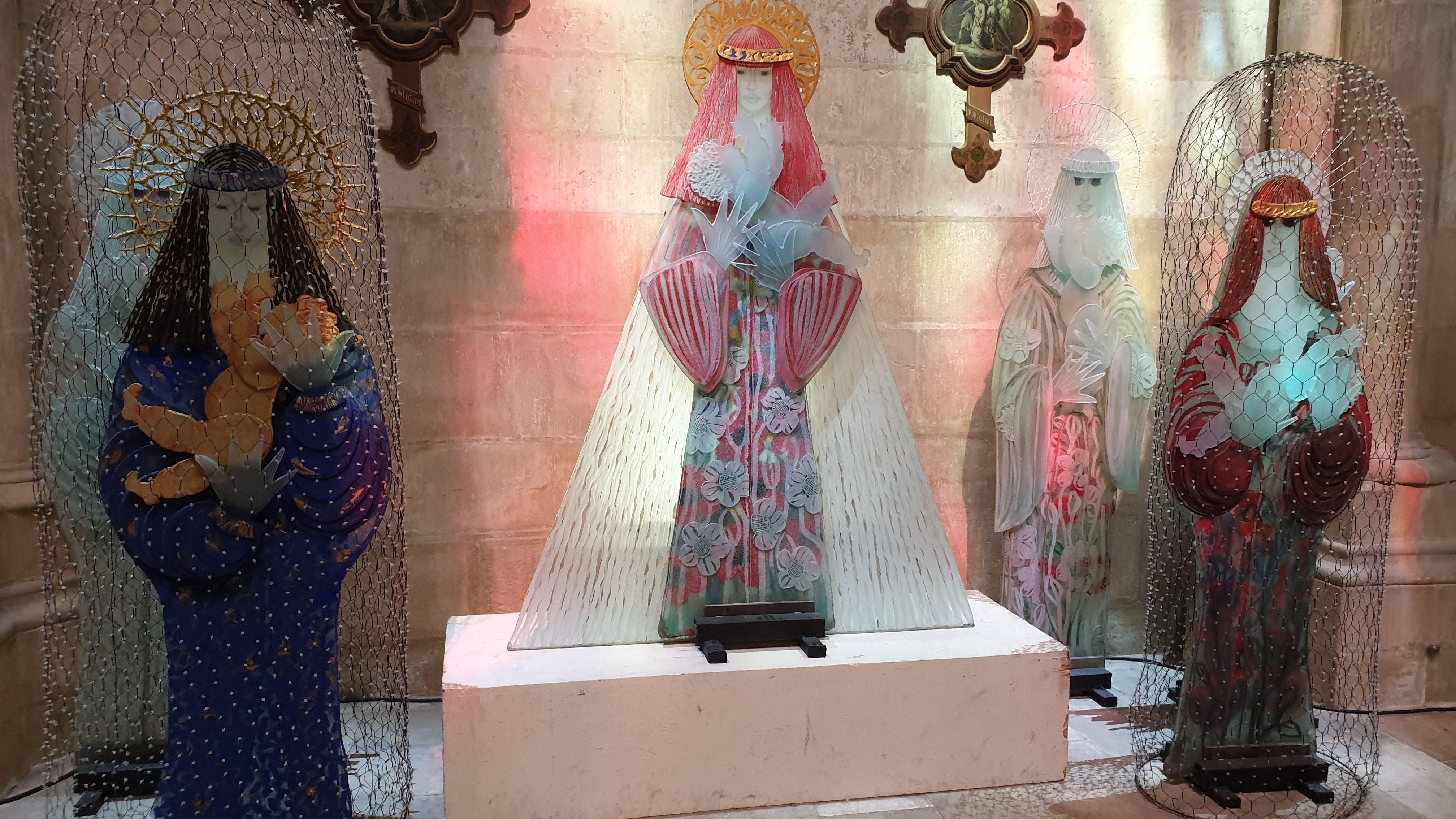 Cette exposition a l intérieur de l église magnifique cette verrerie on en prend plein les yeux