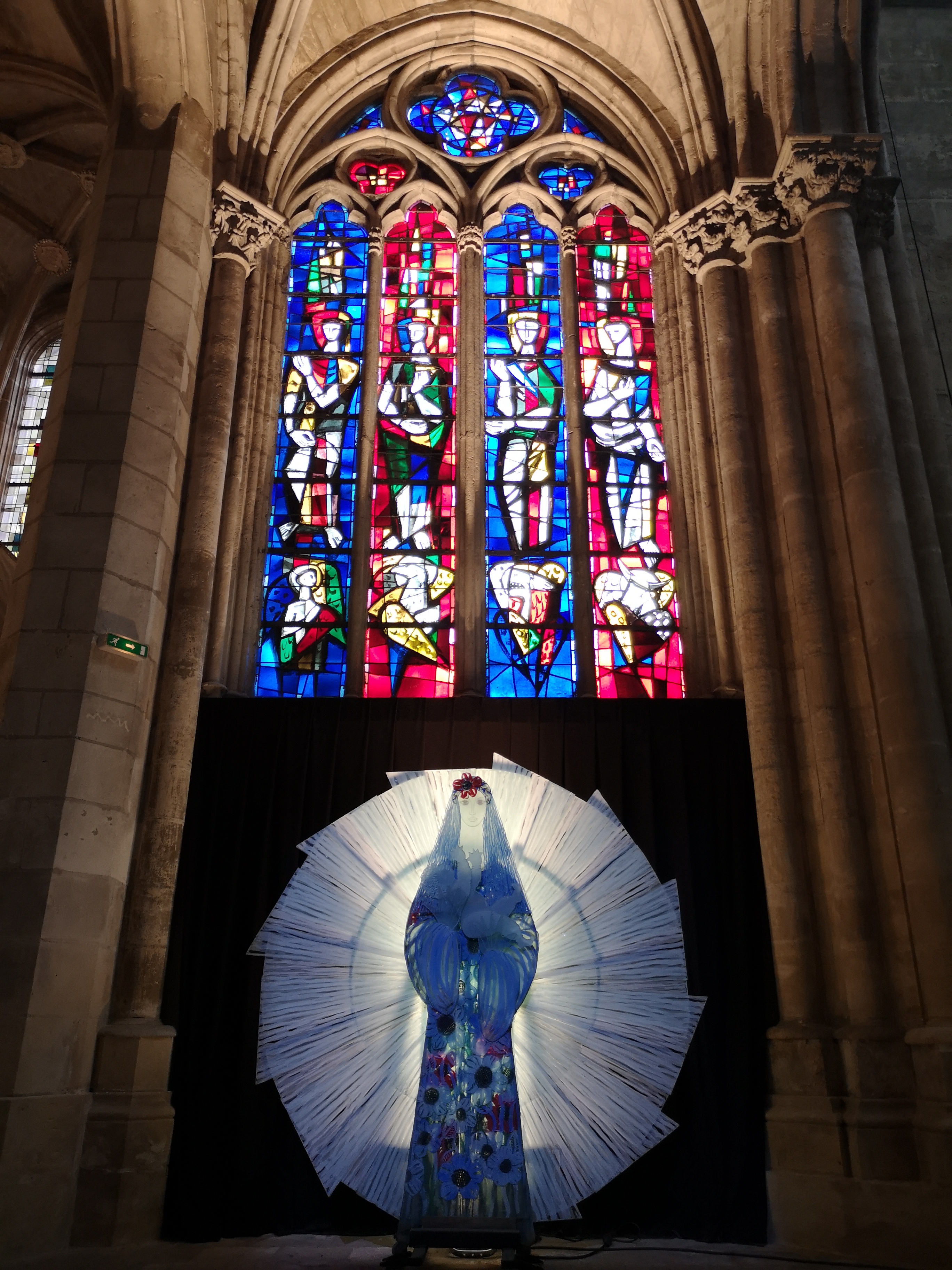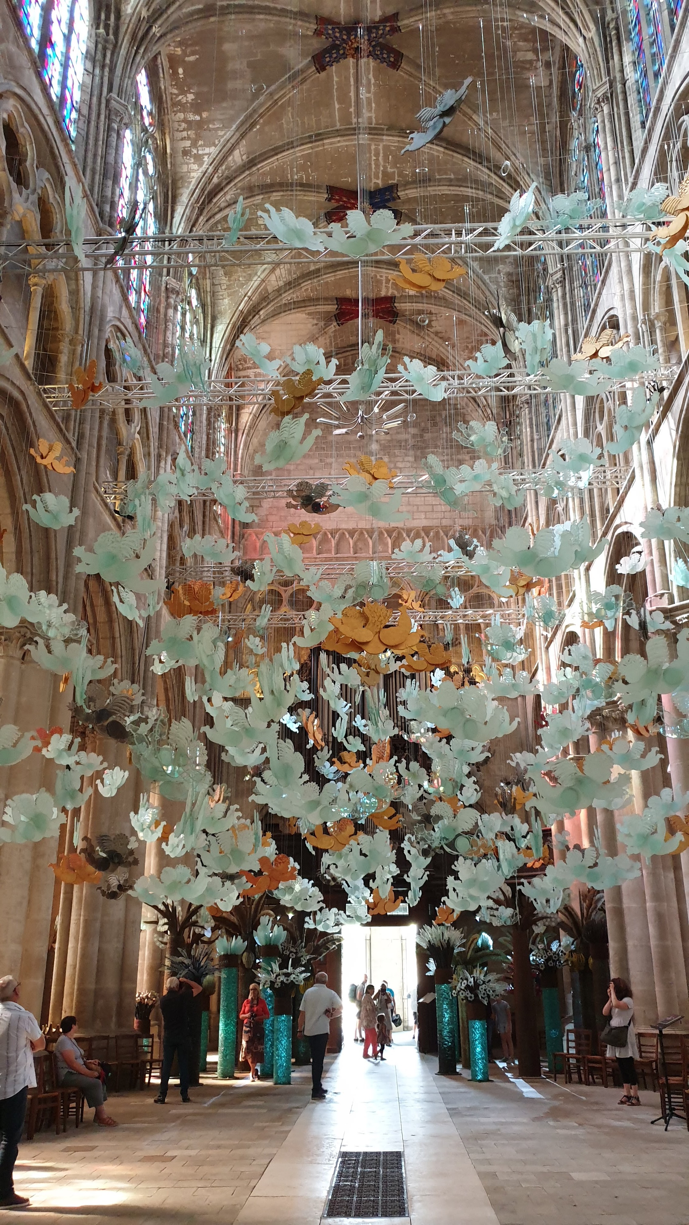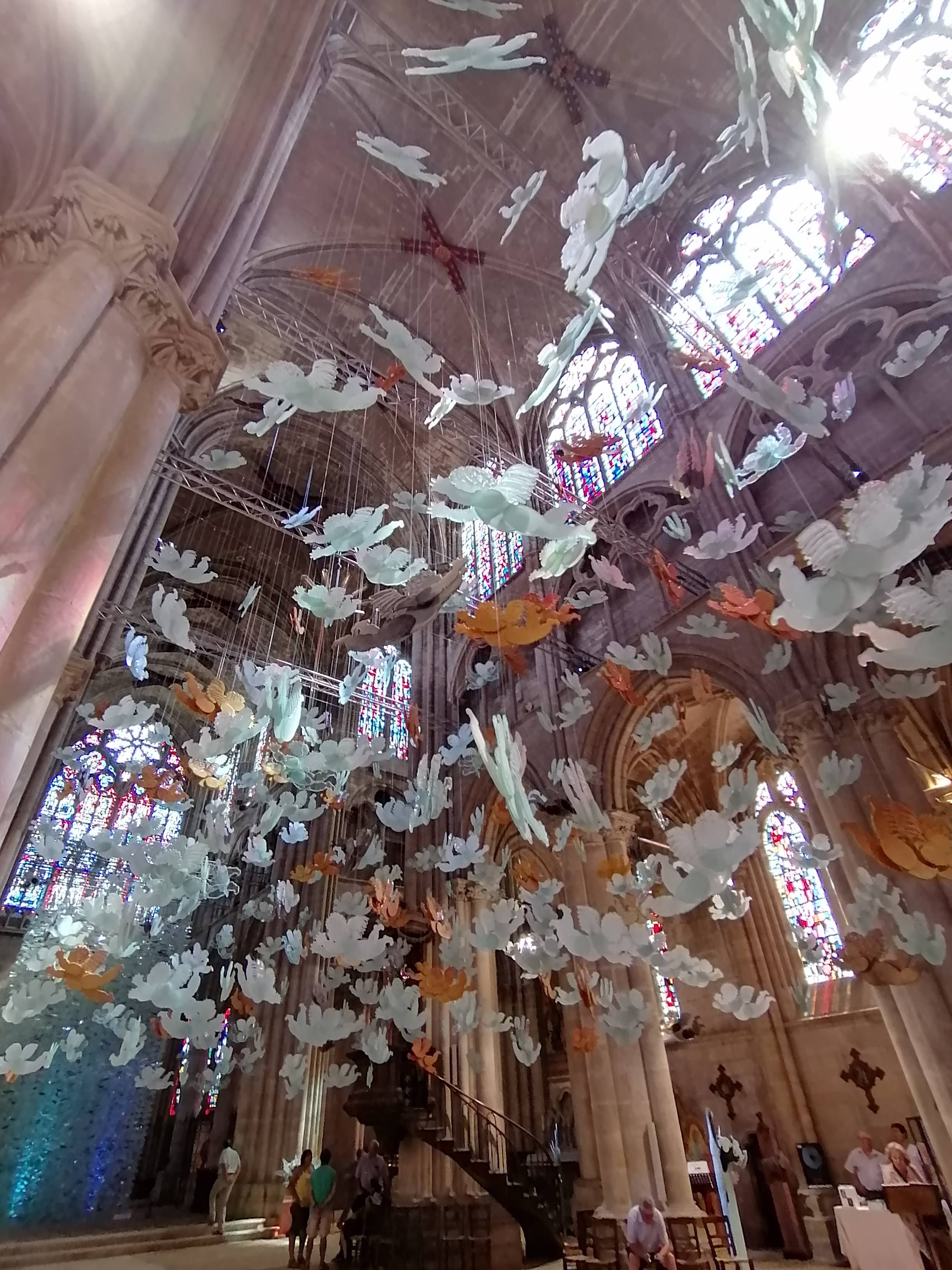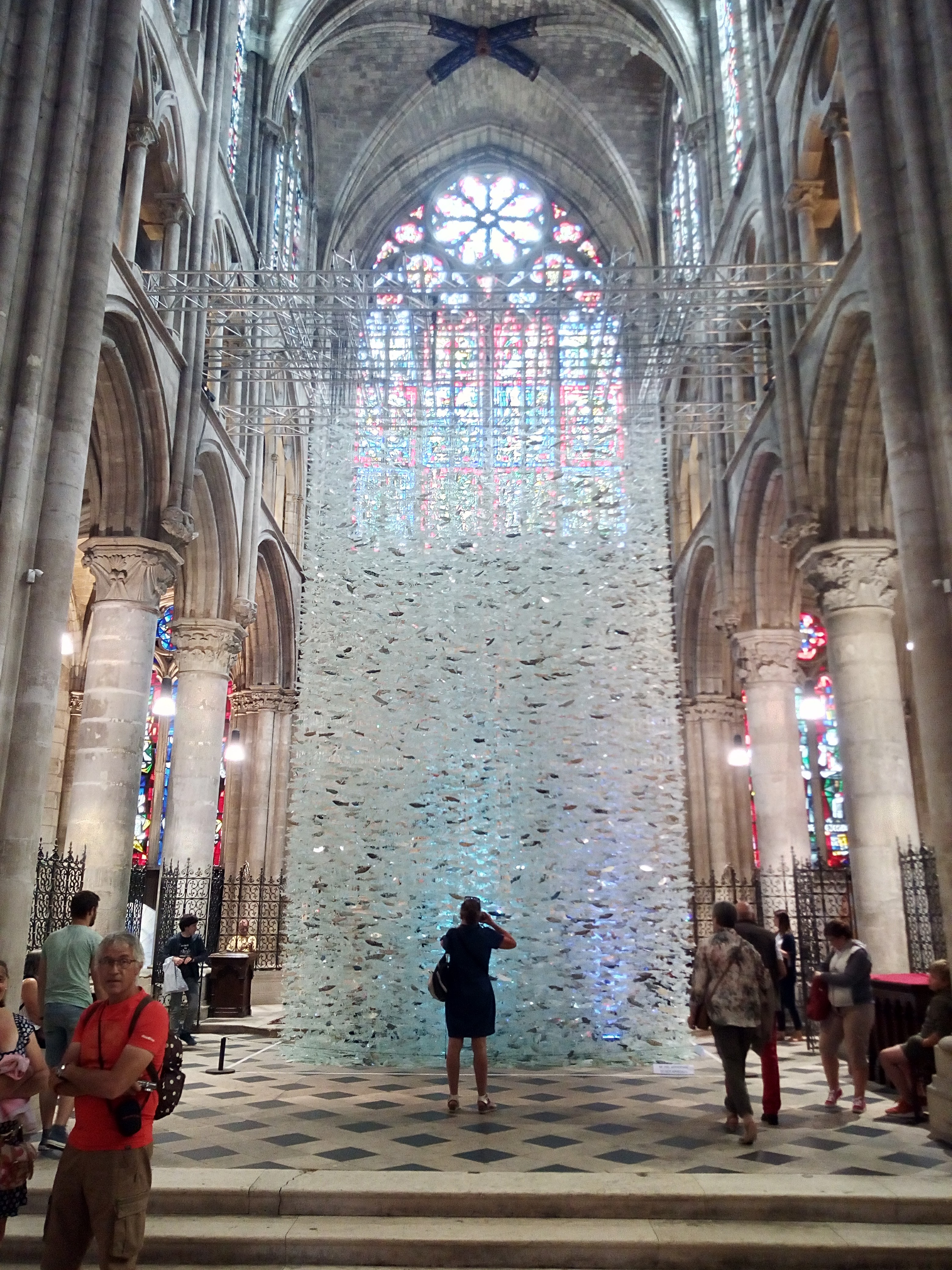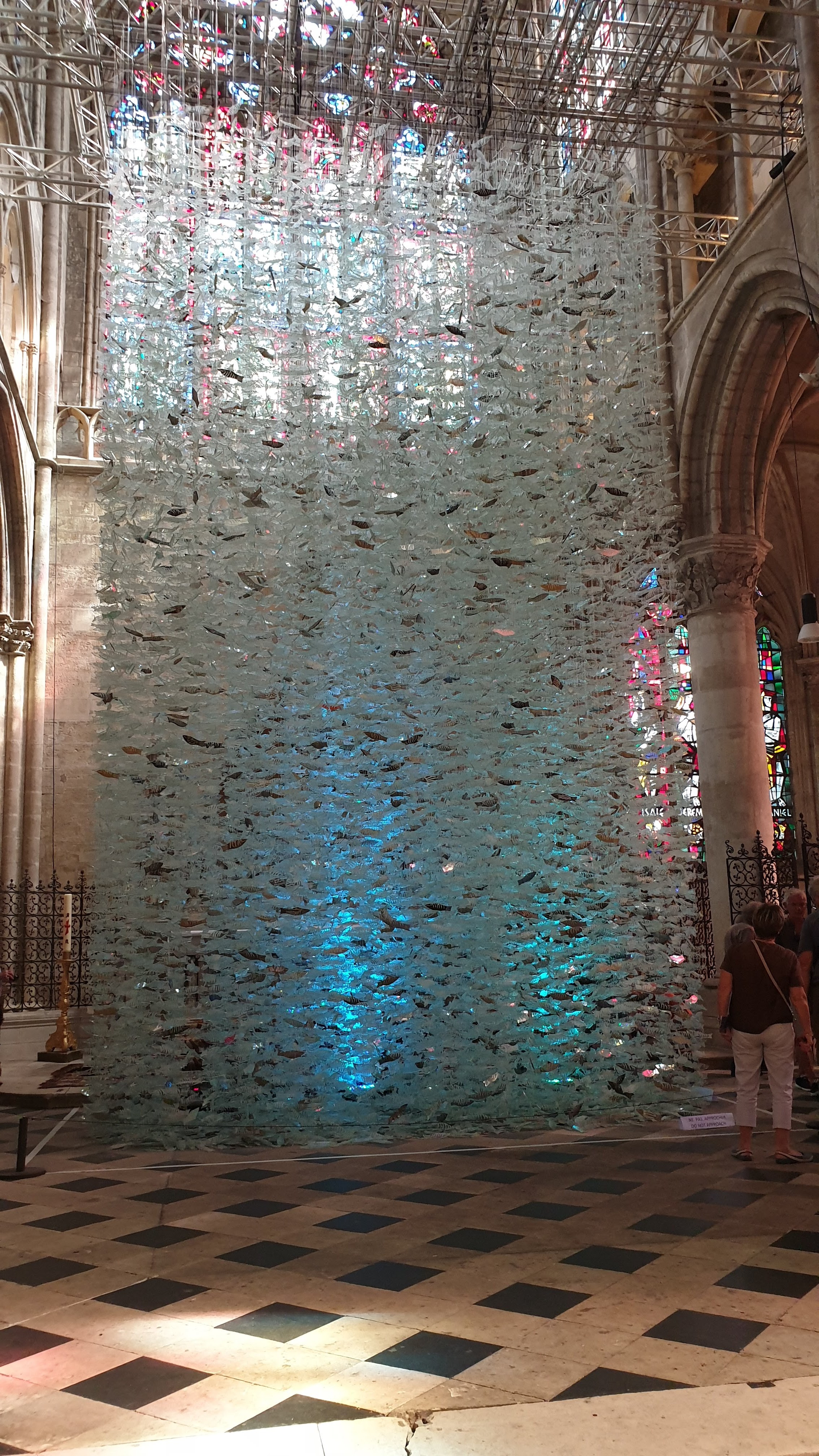 Cette exposition a l intérieur de l église magnifique cette verrerie on en prend plein les yeux