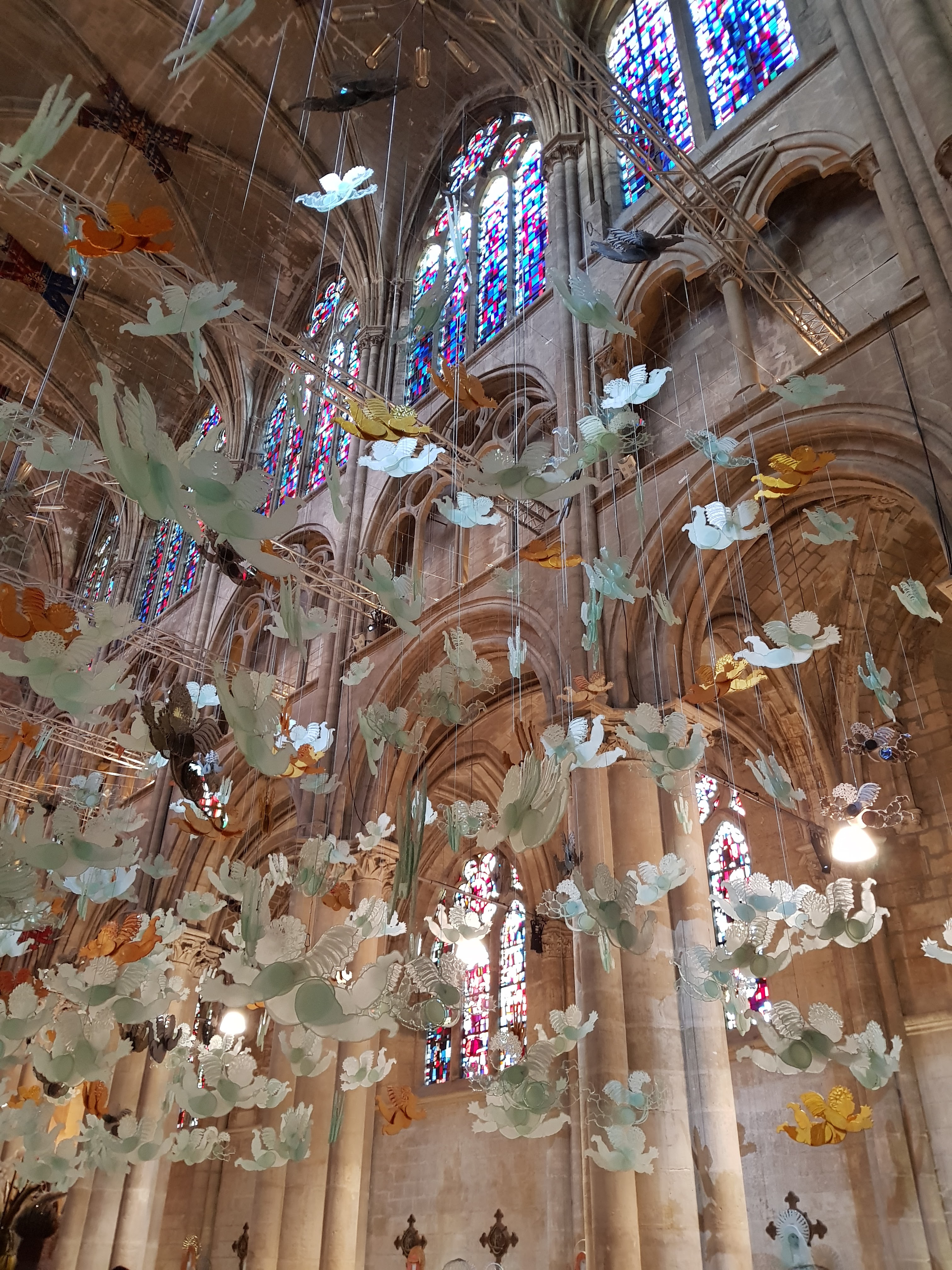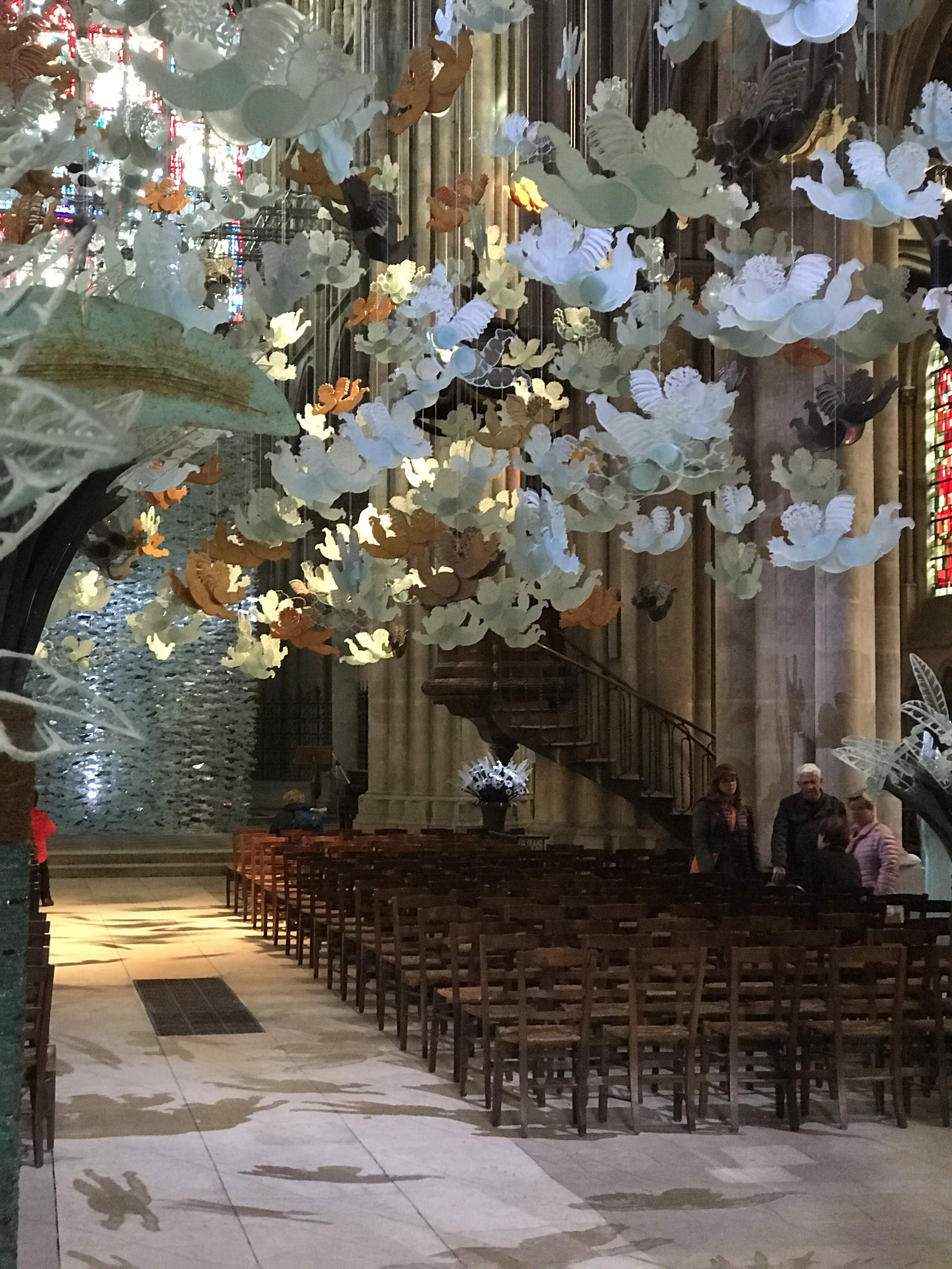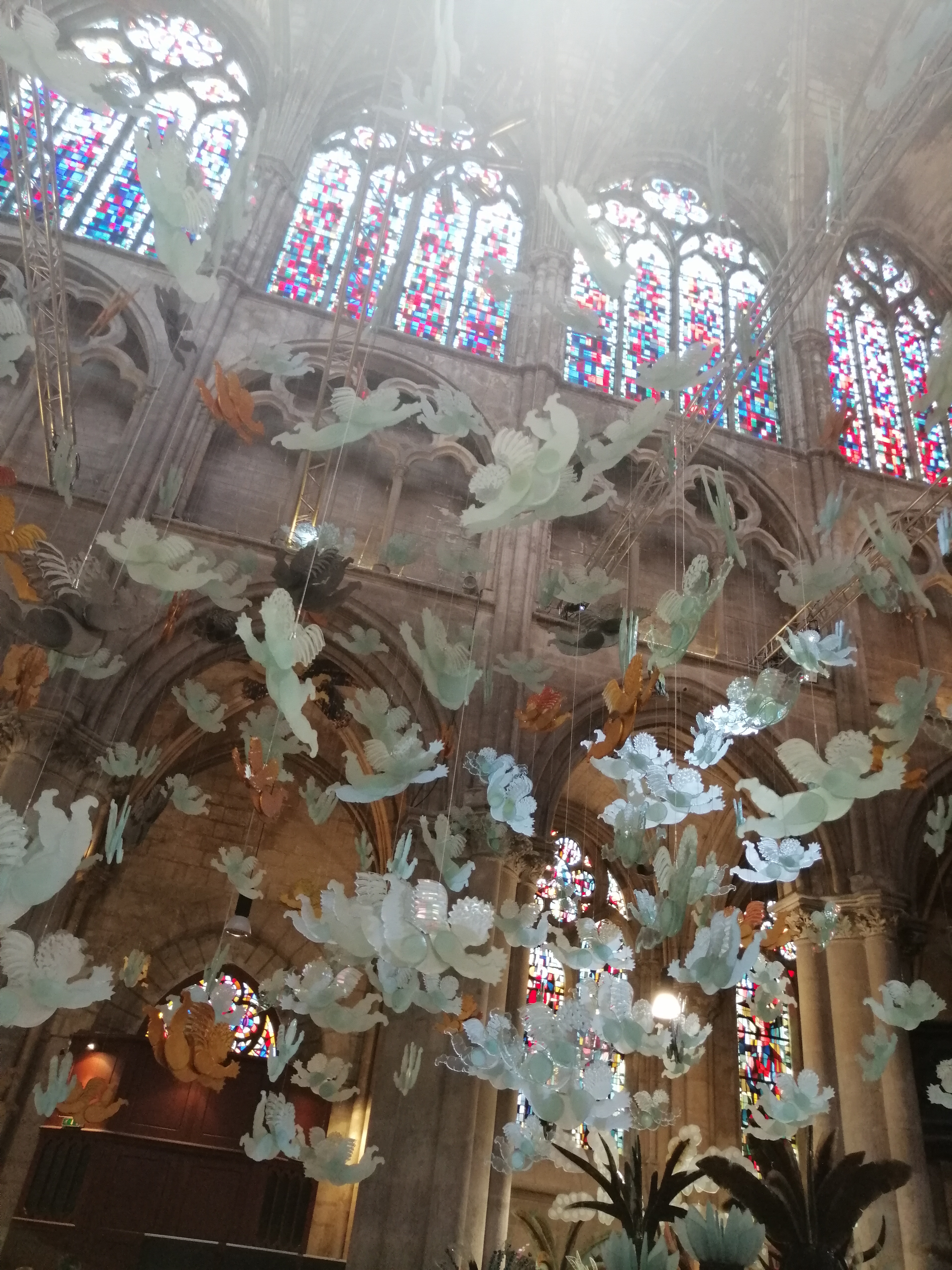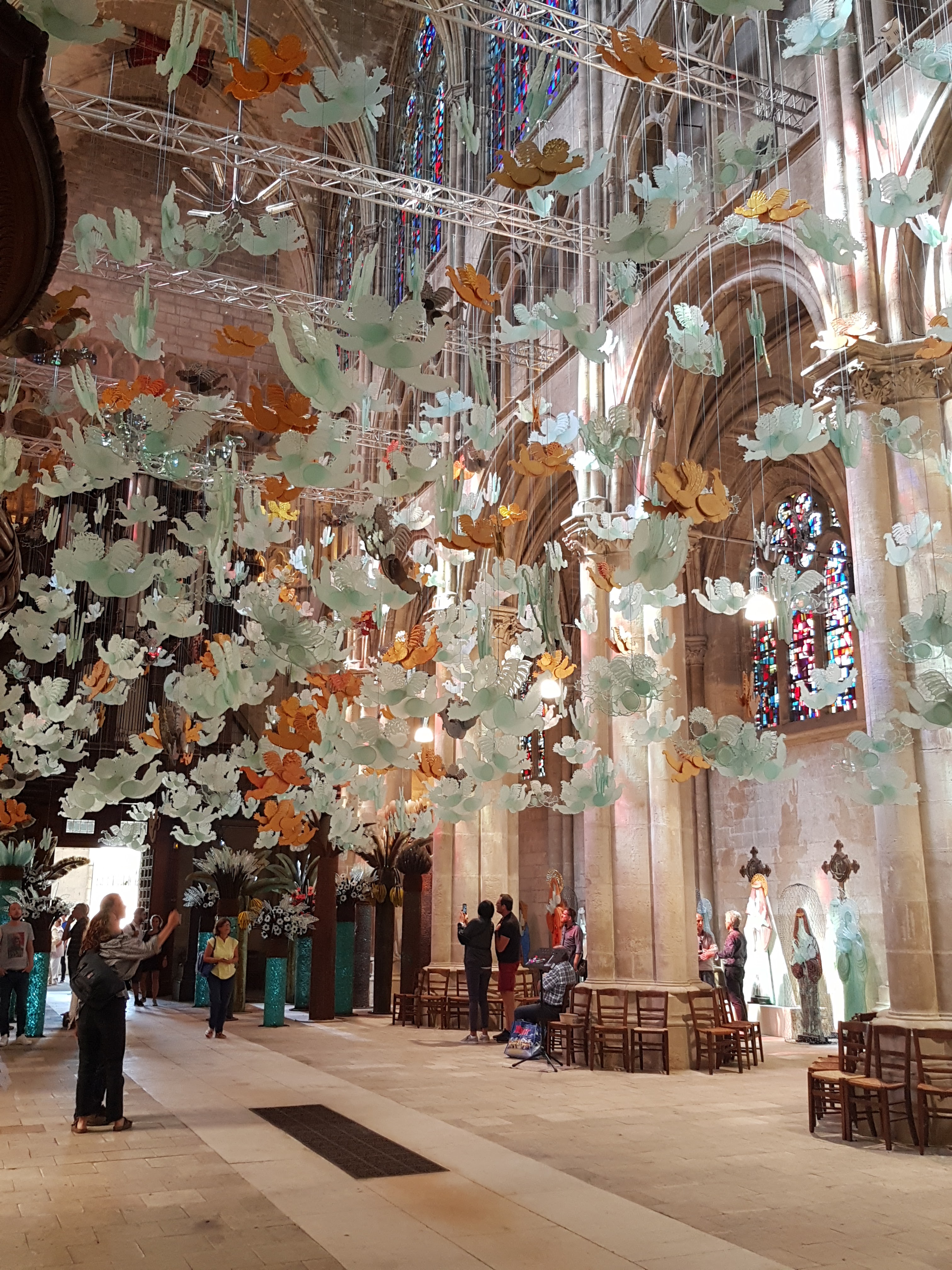 Cette exposition a l intérieur de l église magnifique cette verrerie on en prend plein les yeux