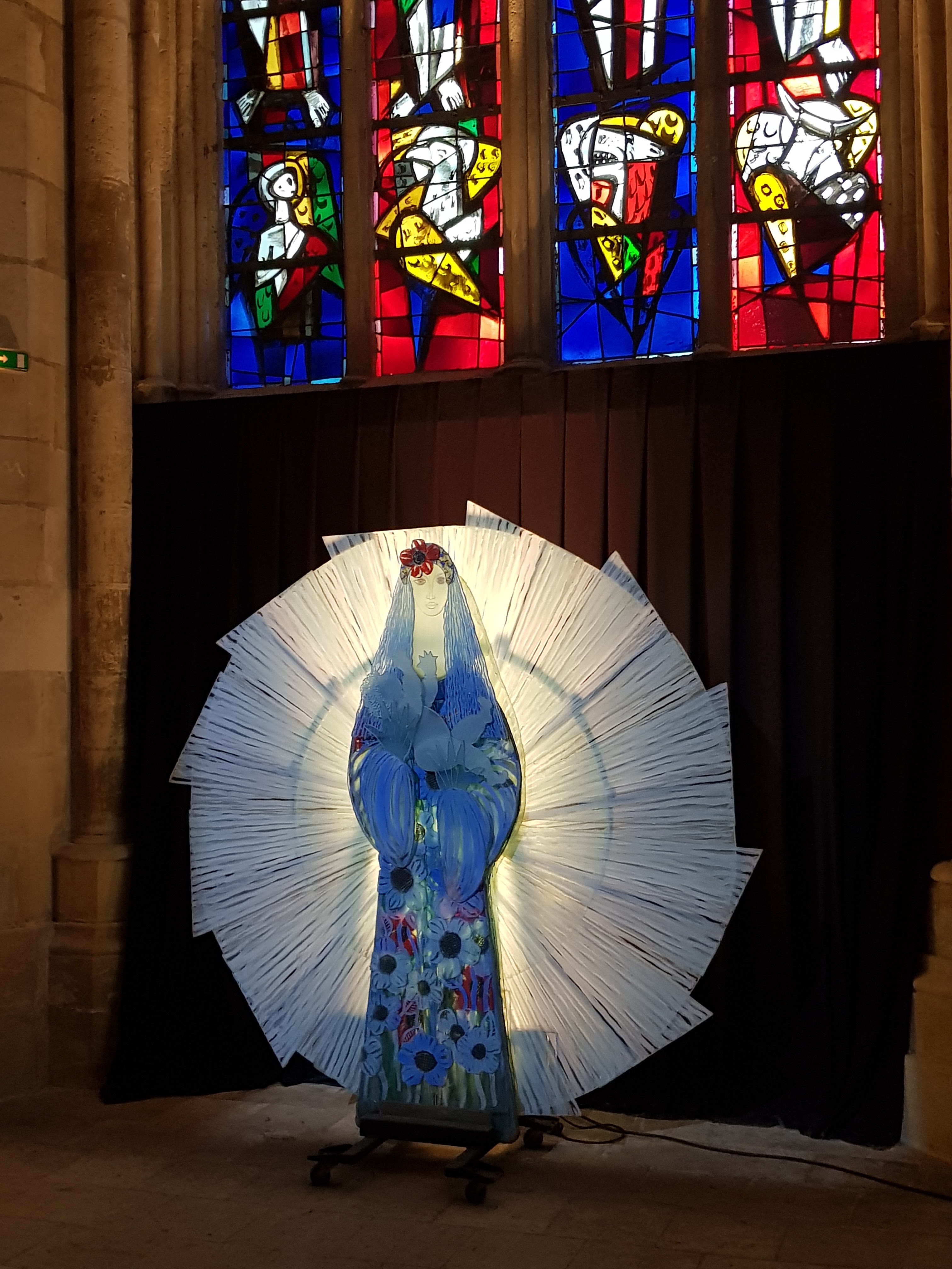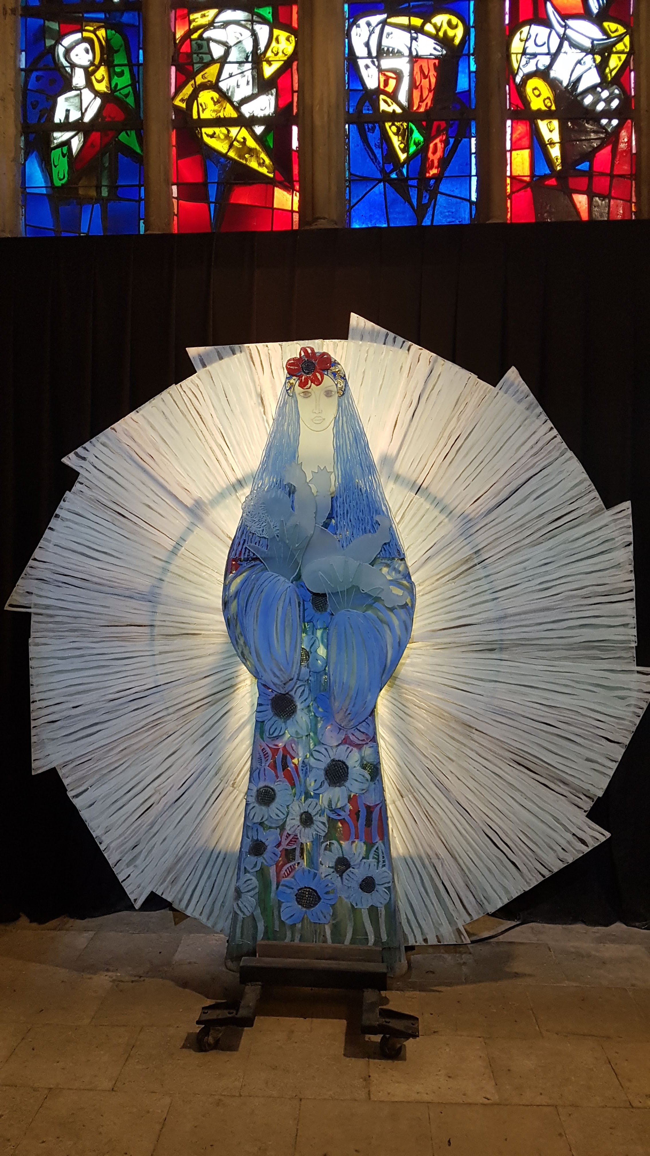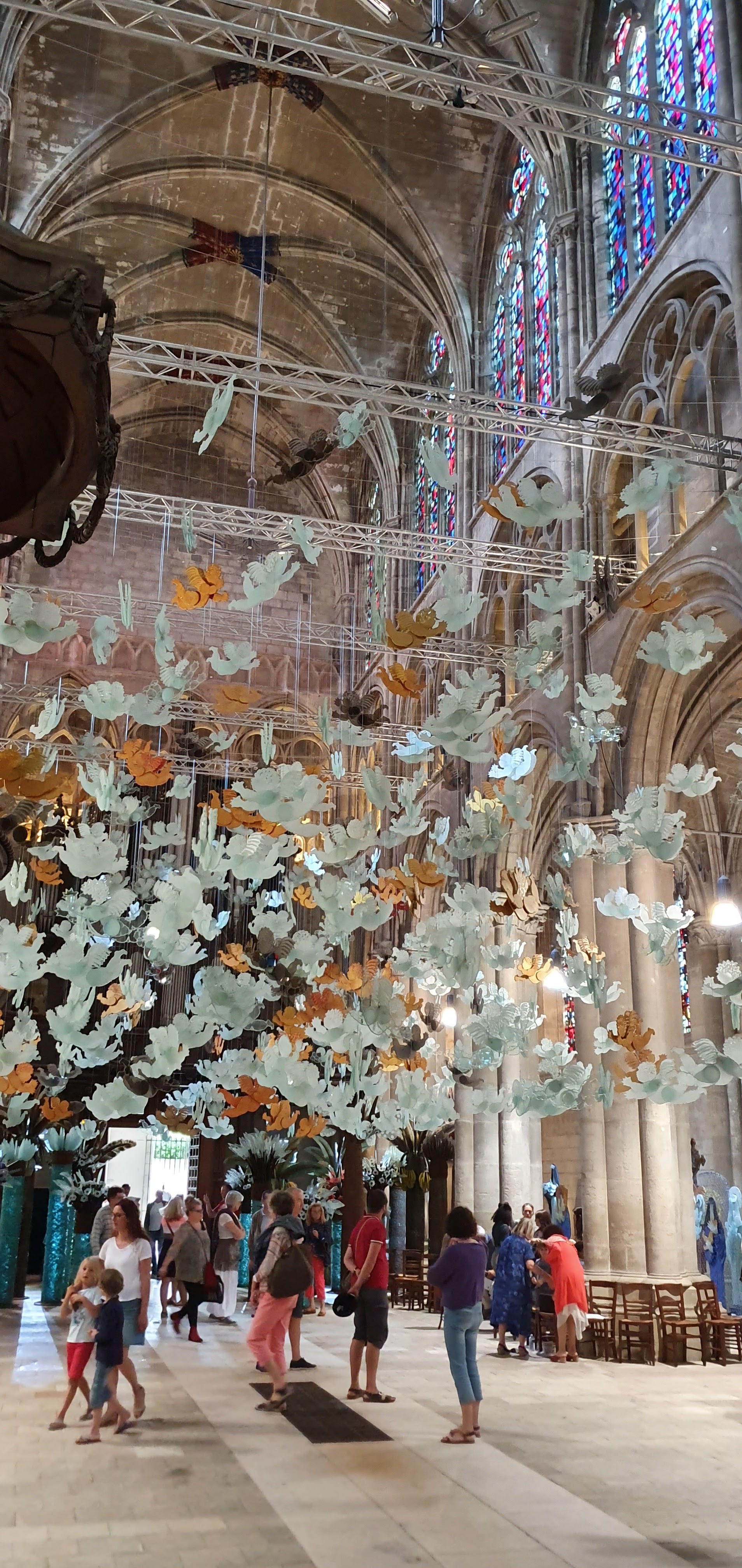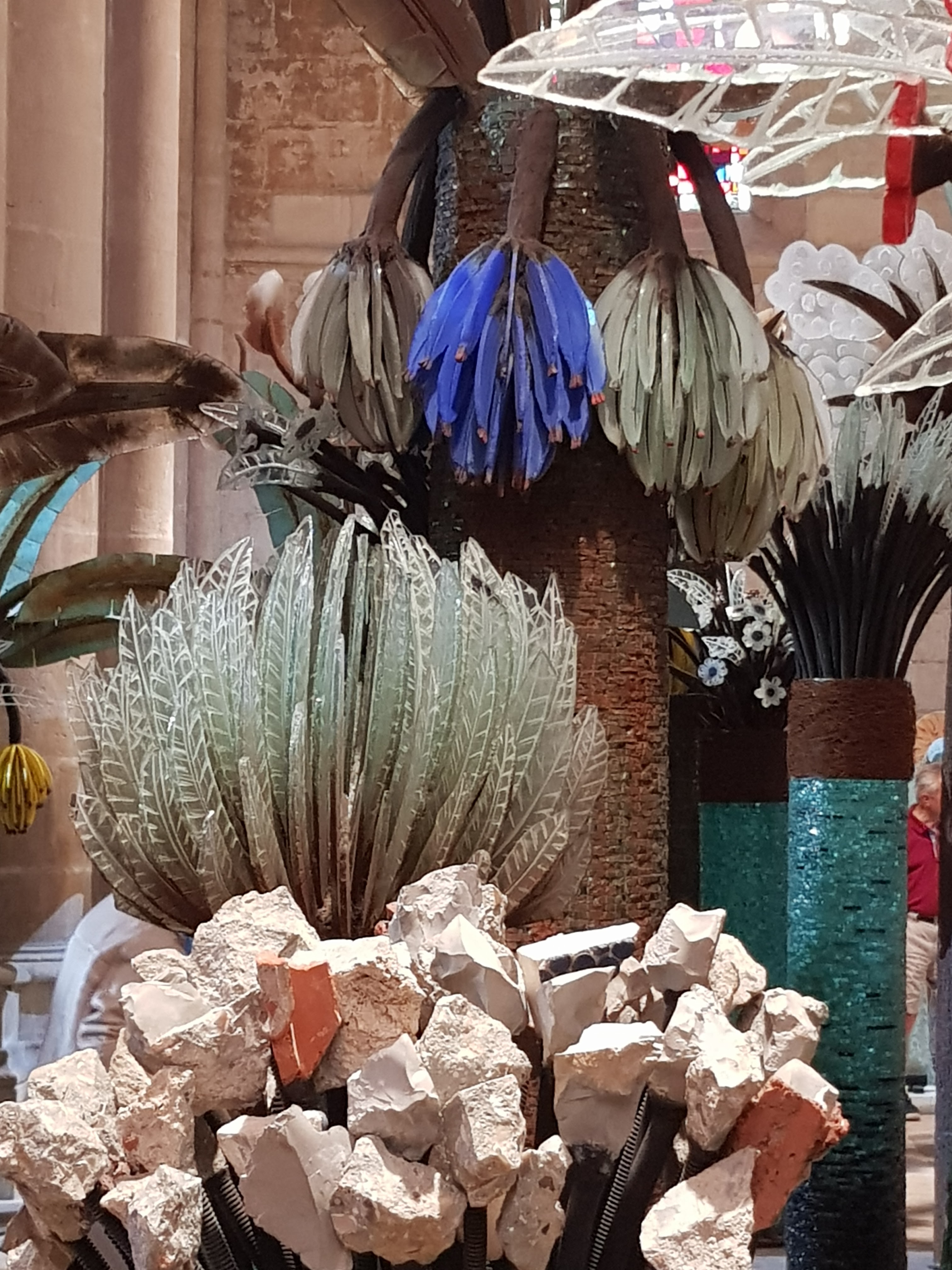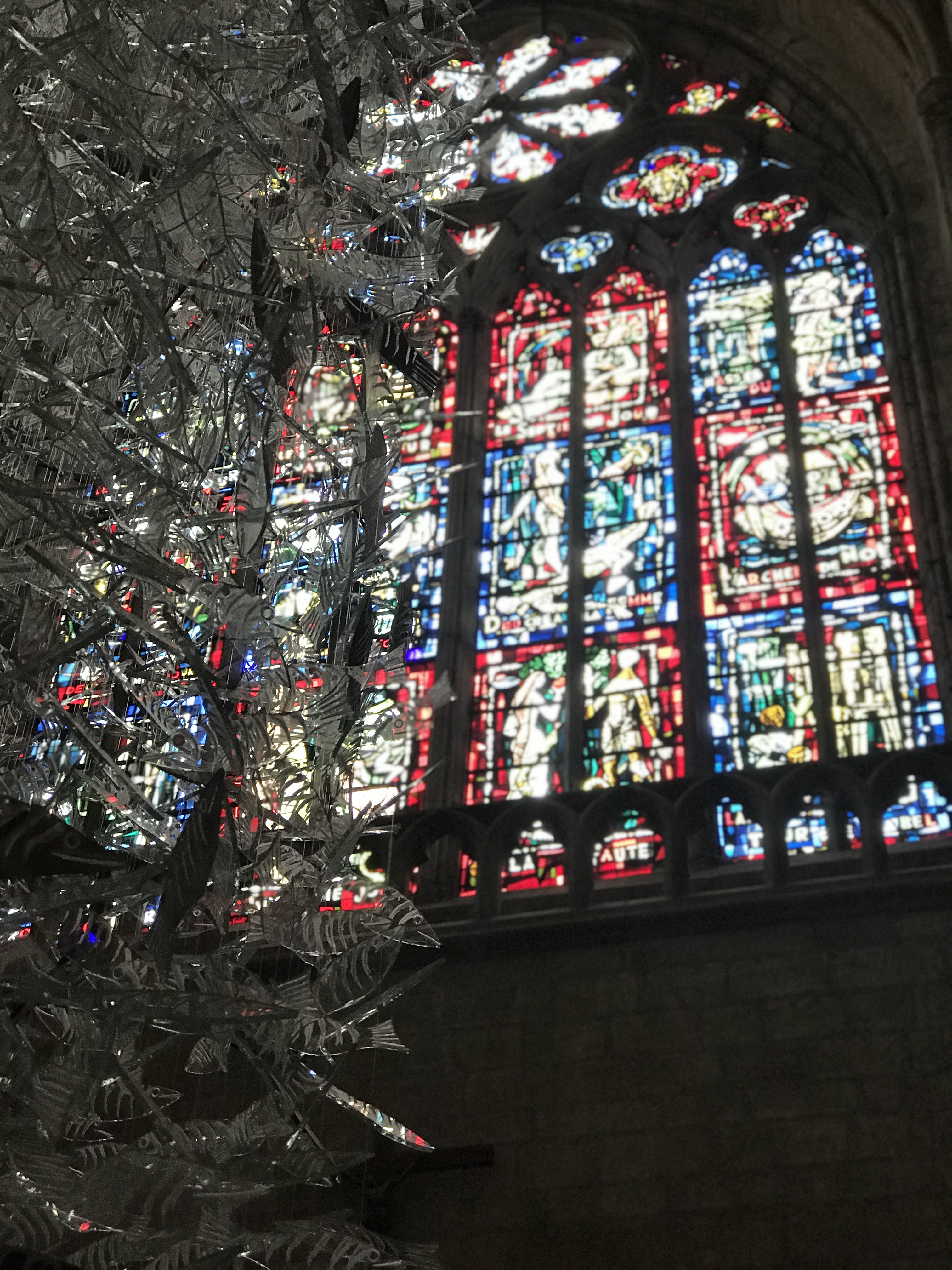 Cette exposition a l intérieur de l église magnifique cette verrerie on en prend plein les yeux