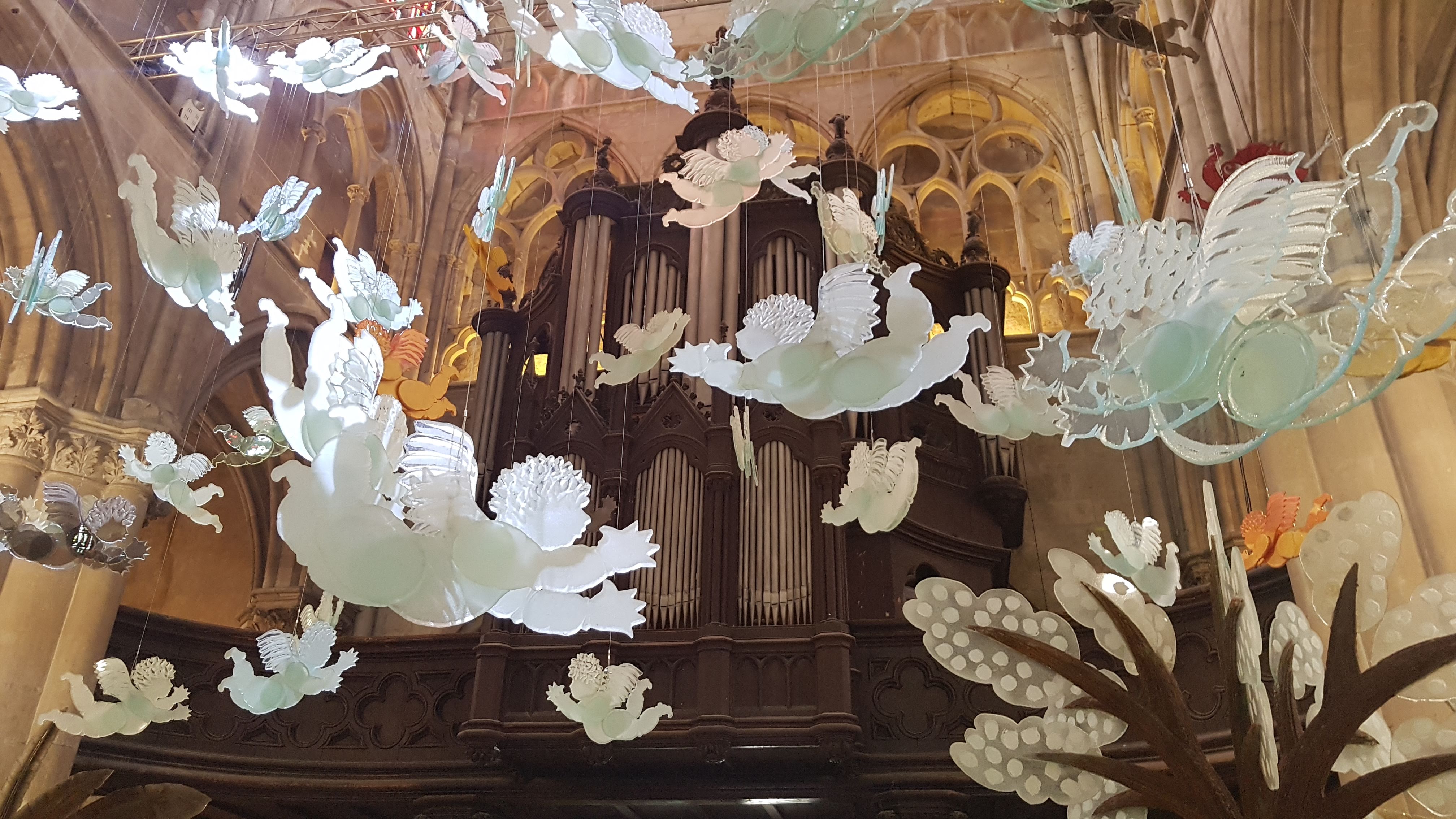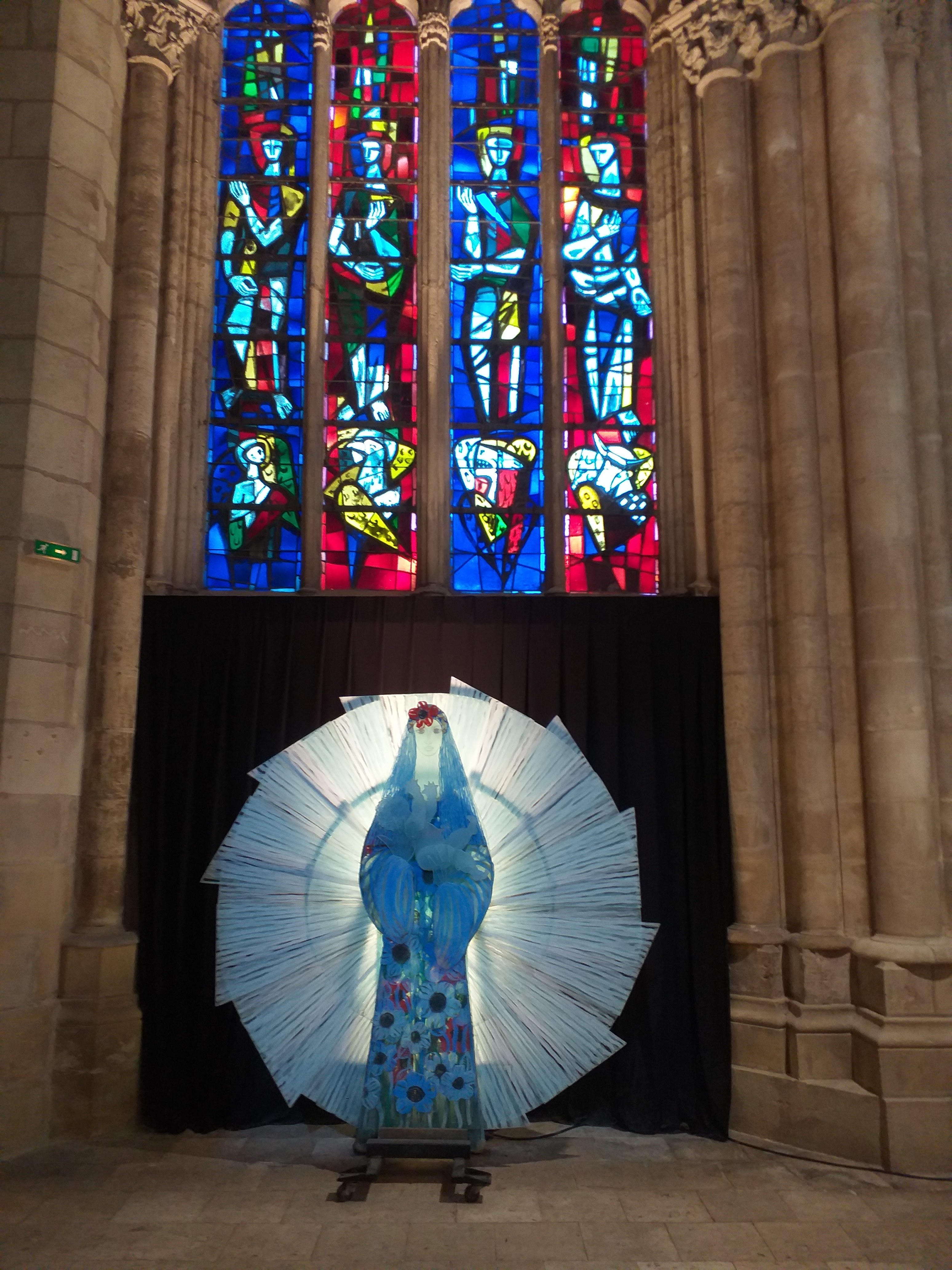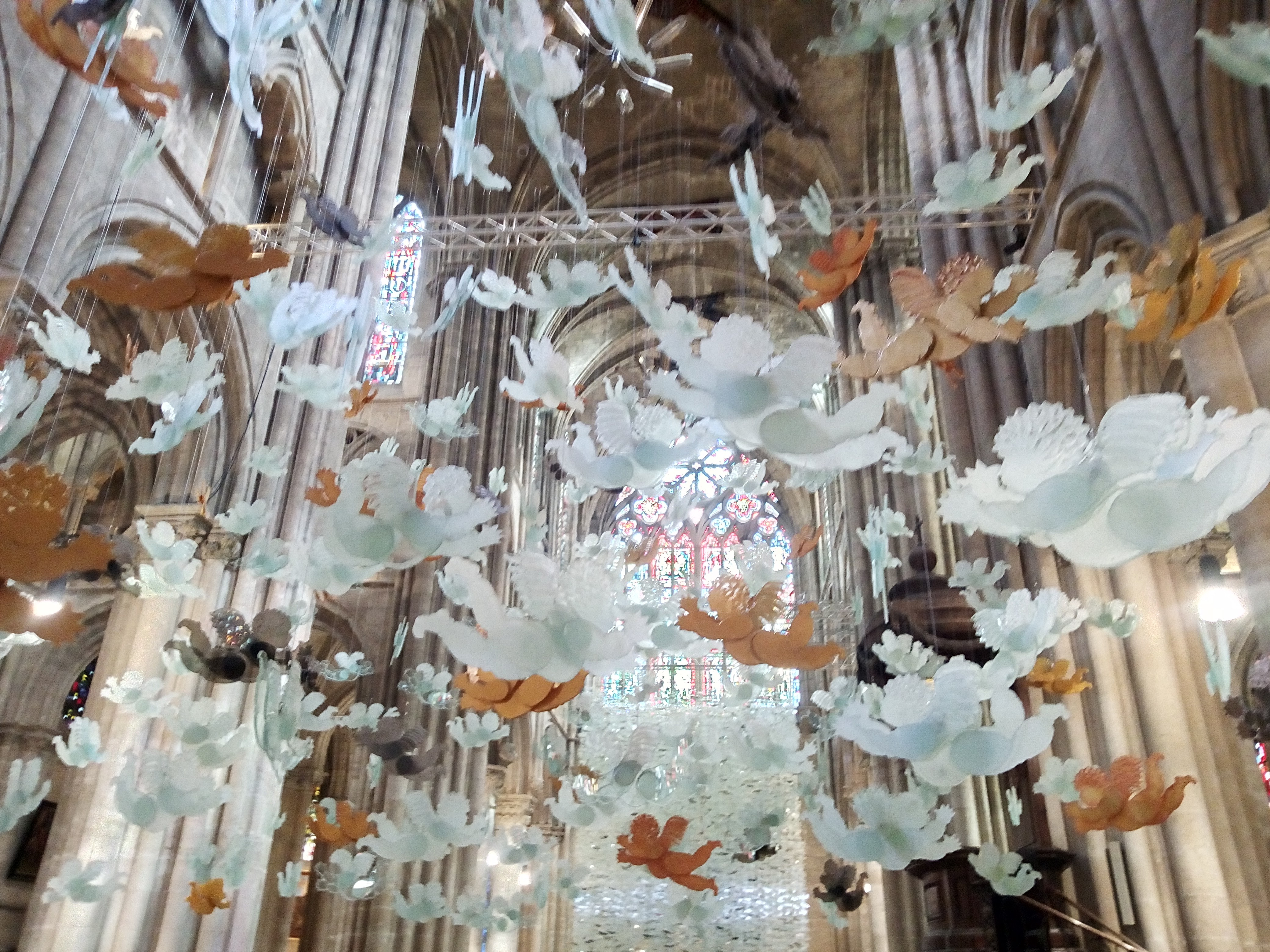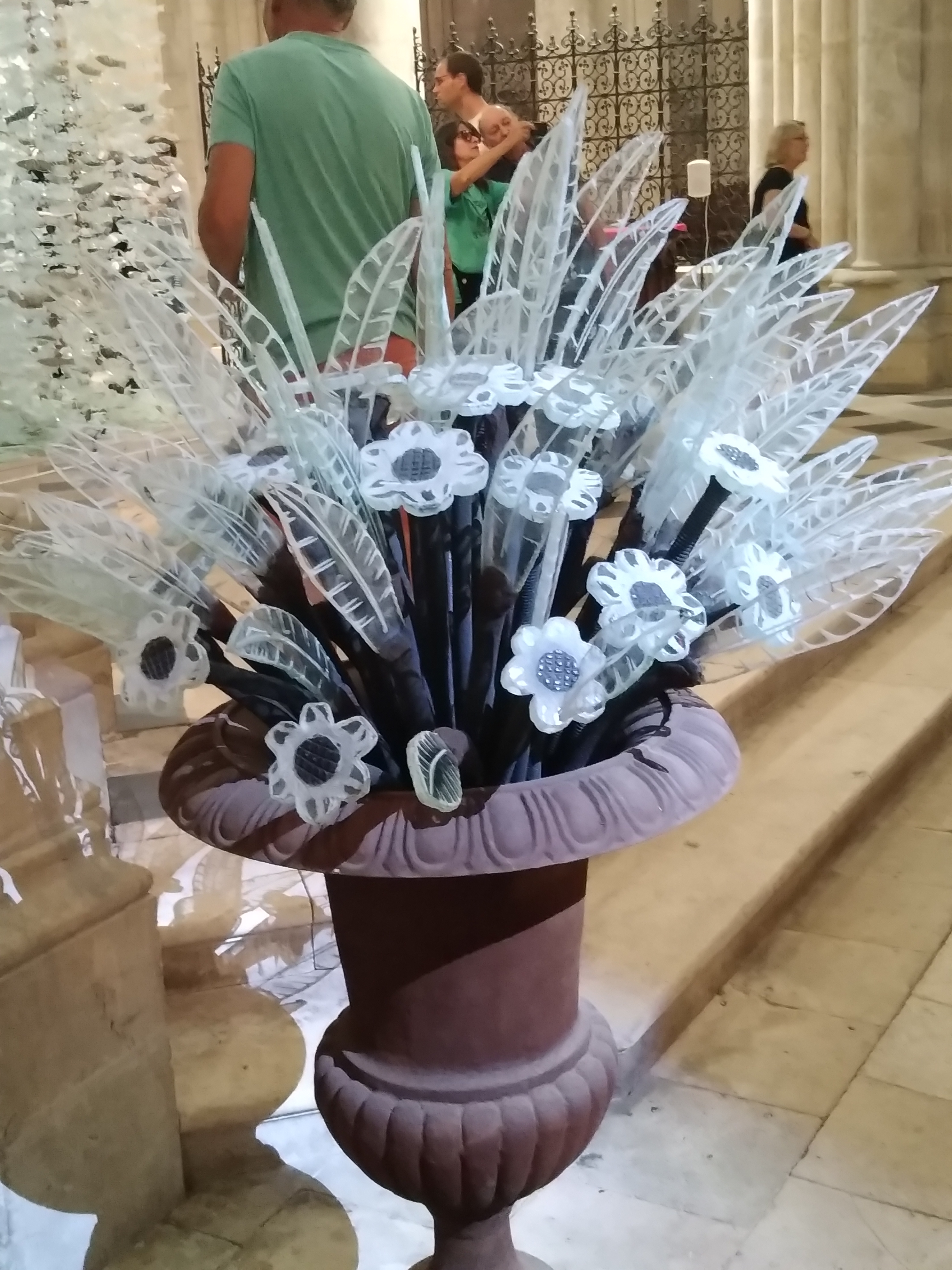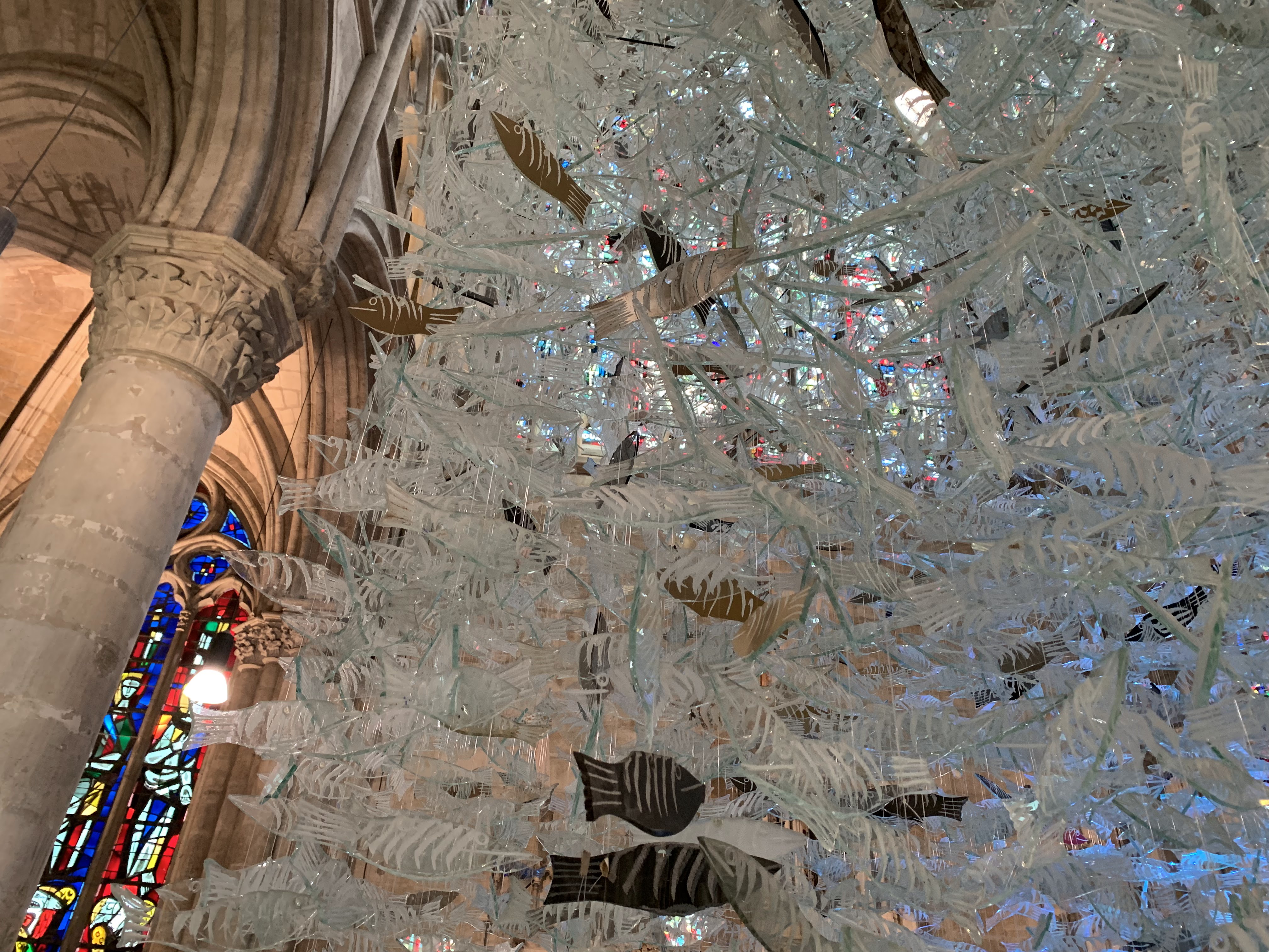 Cette exposition a l intérieur de l église magnifique cette verrerie on en prend plein les yeux