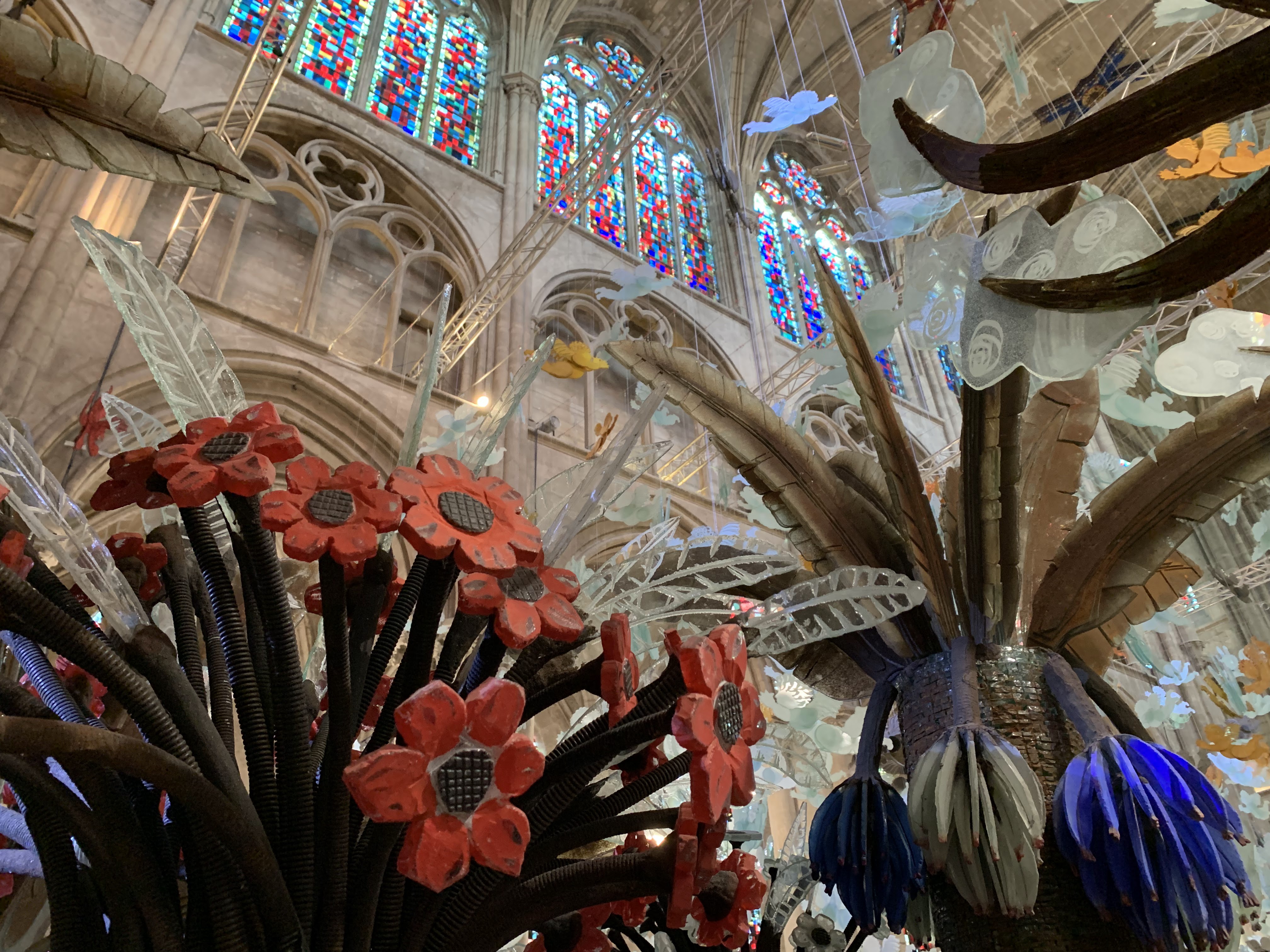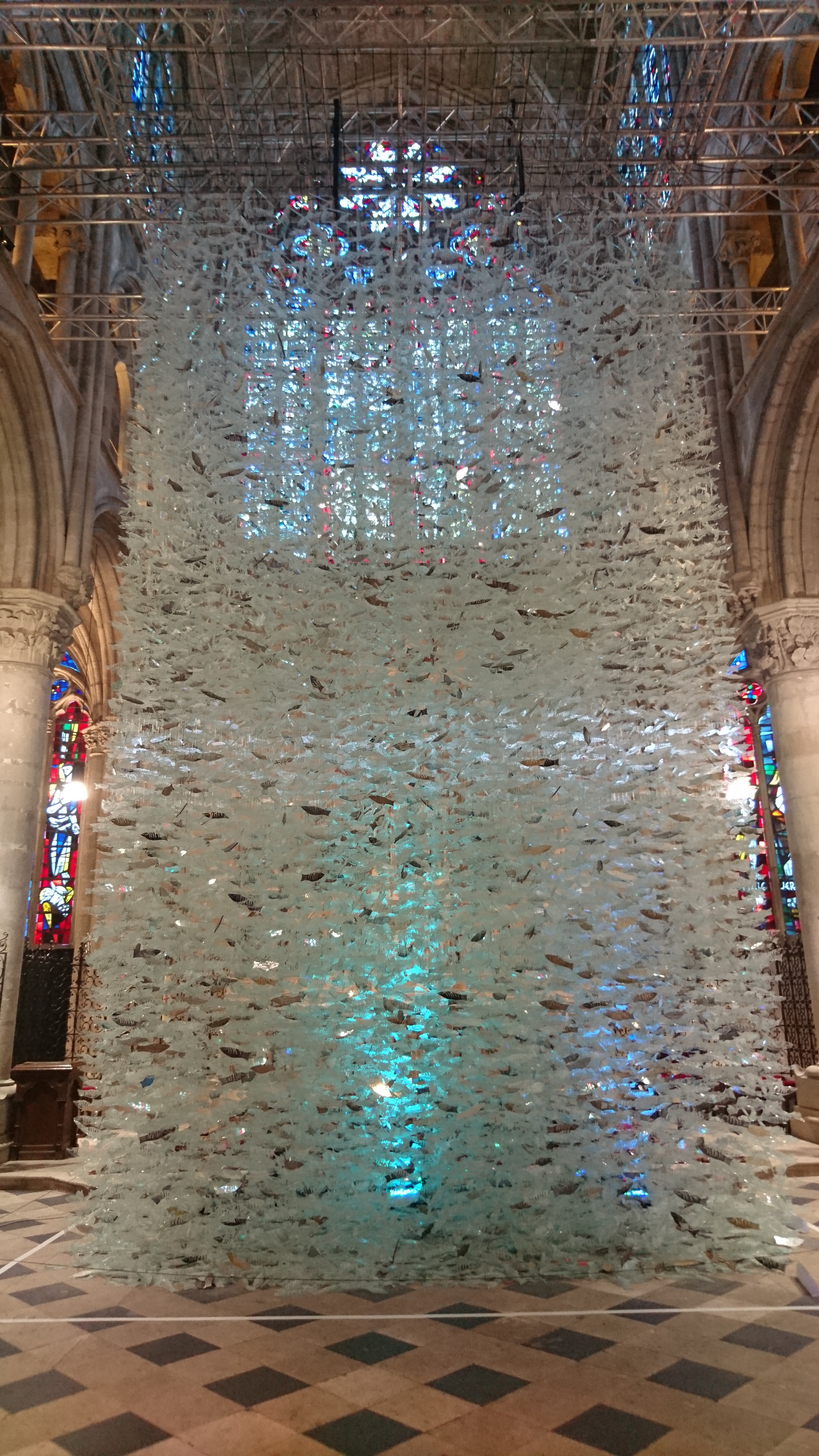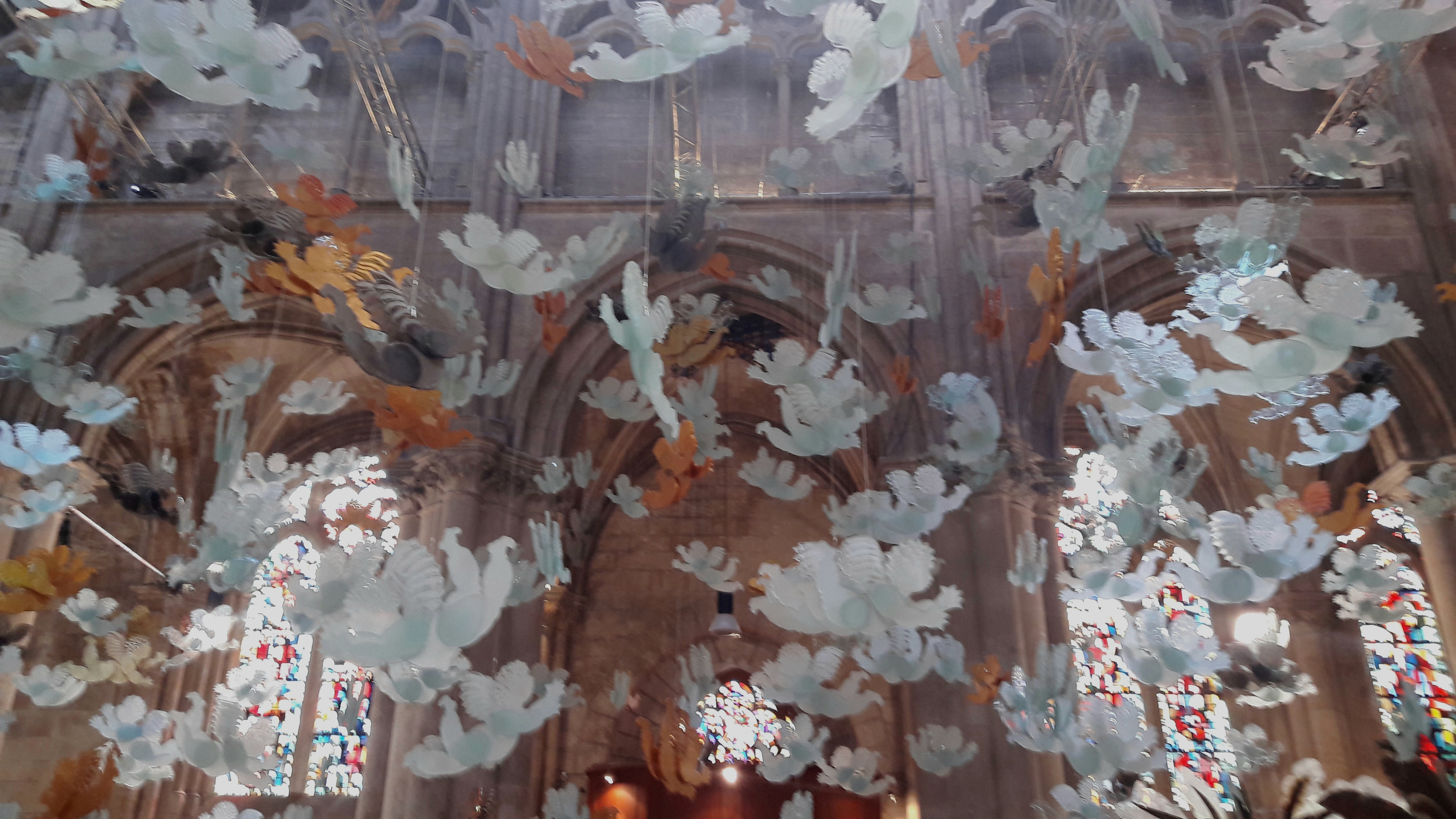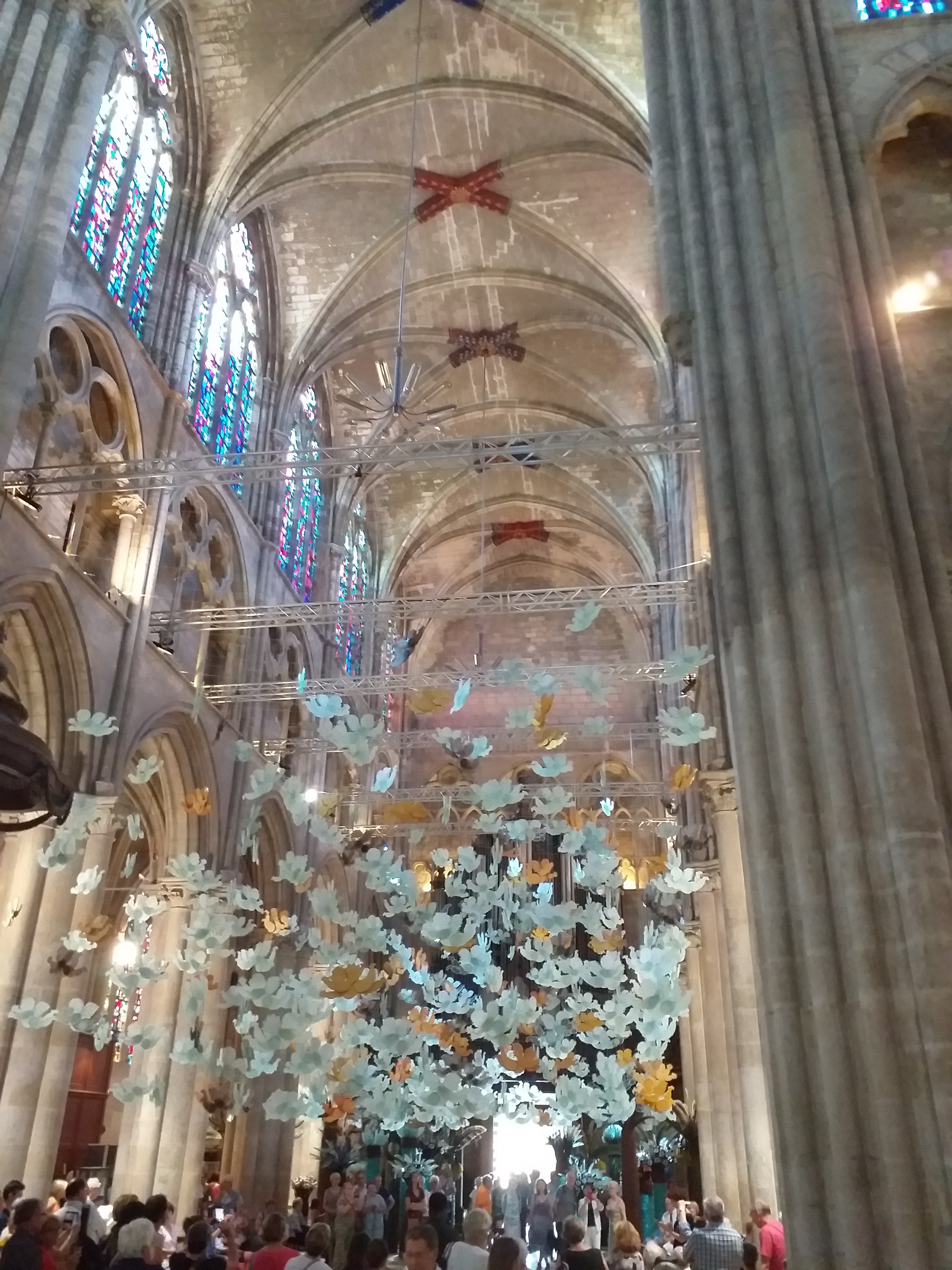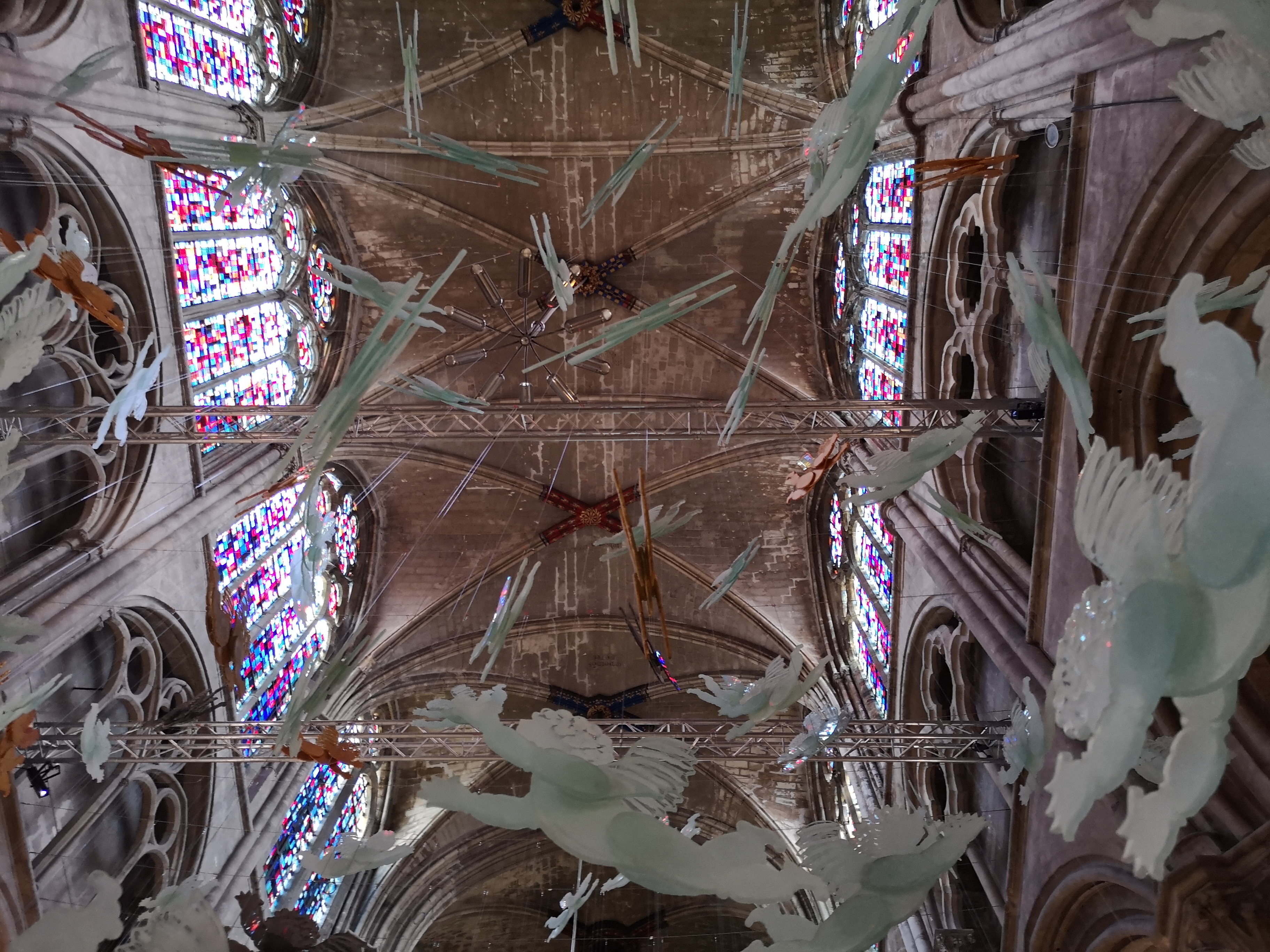 Cette exposition a l intérieur de l église magnifique cette verrerie on en prend plein les yeux