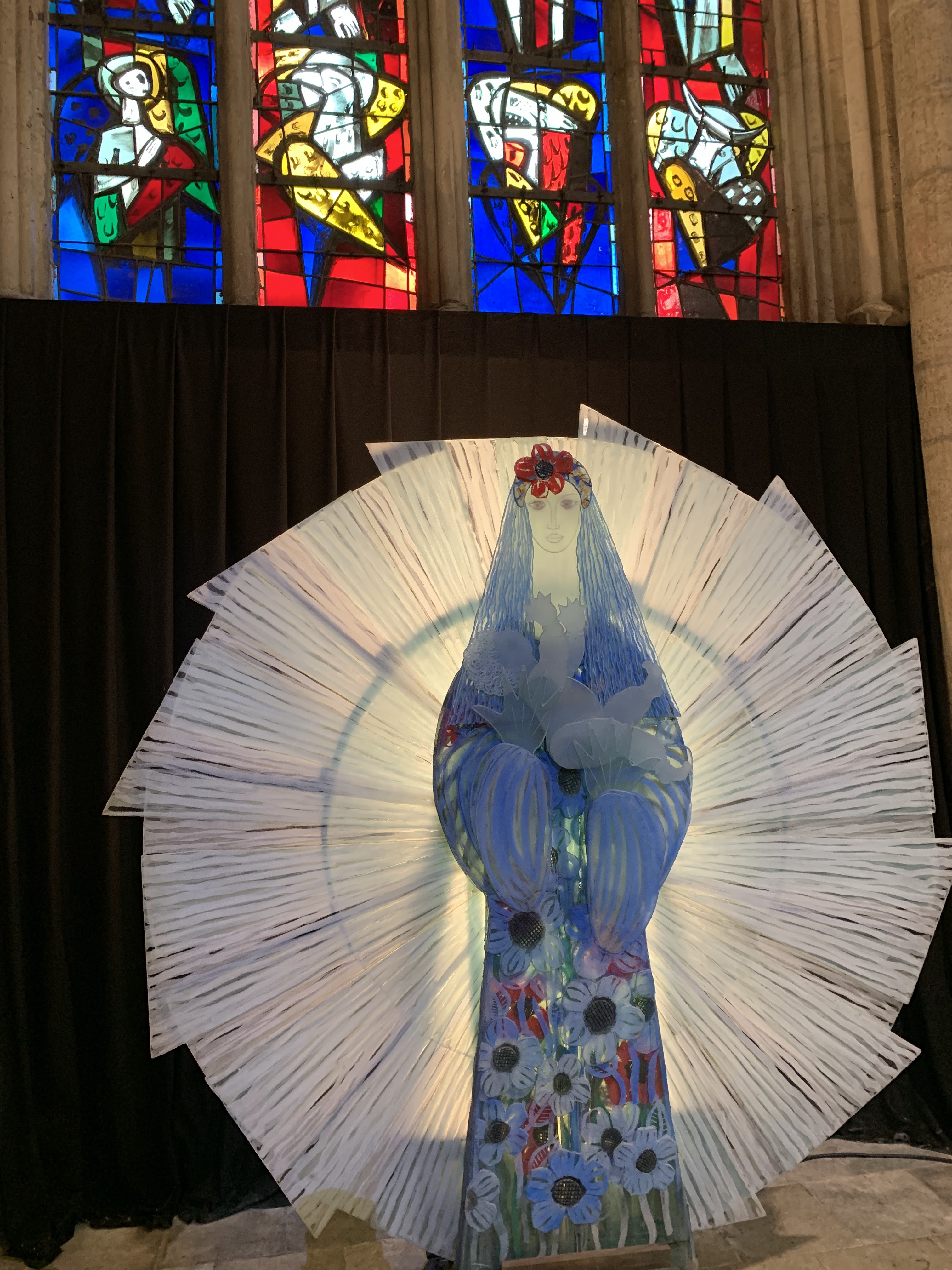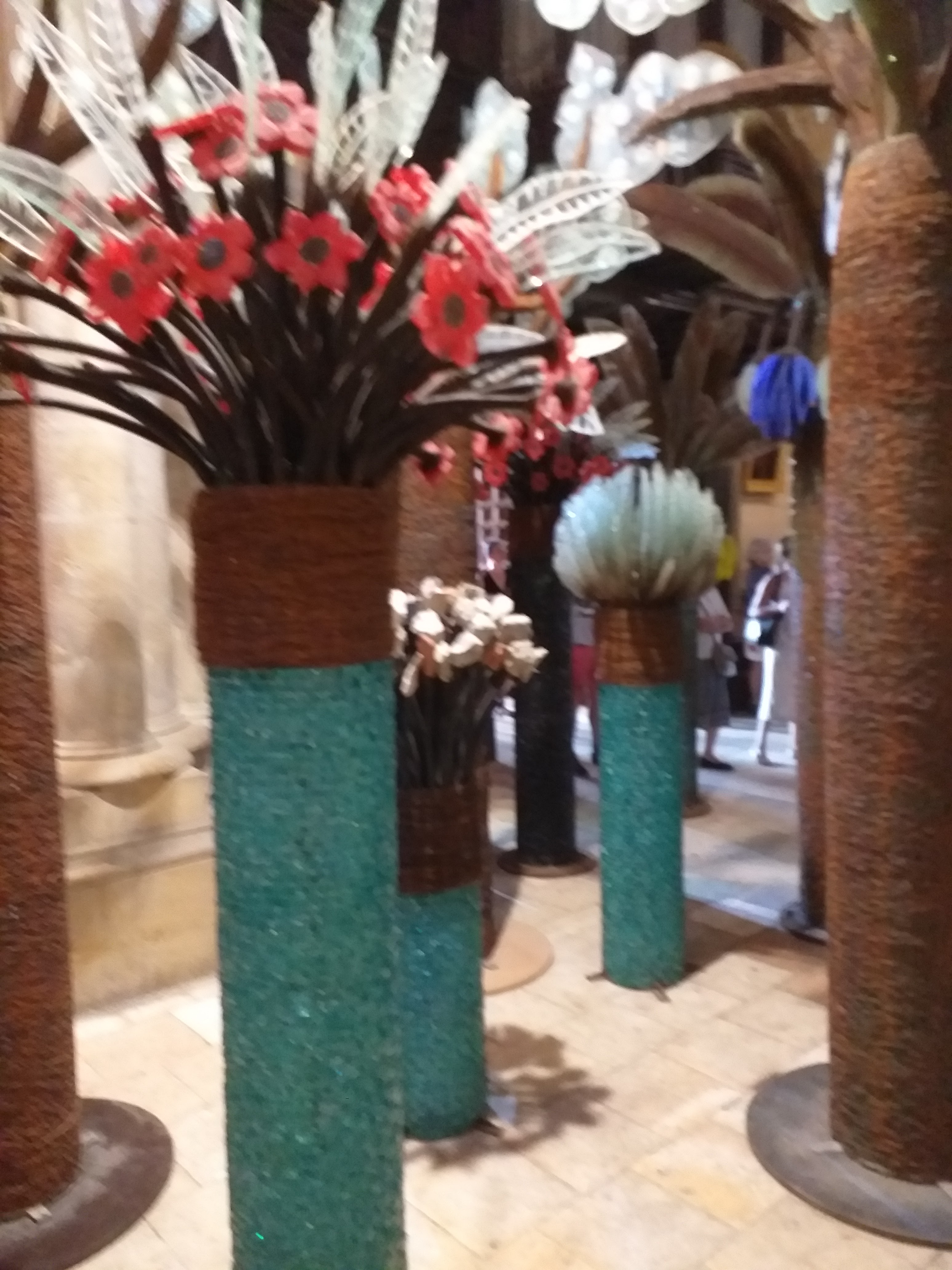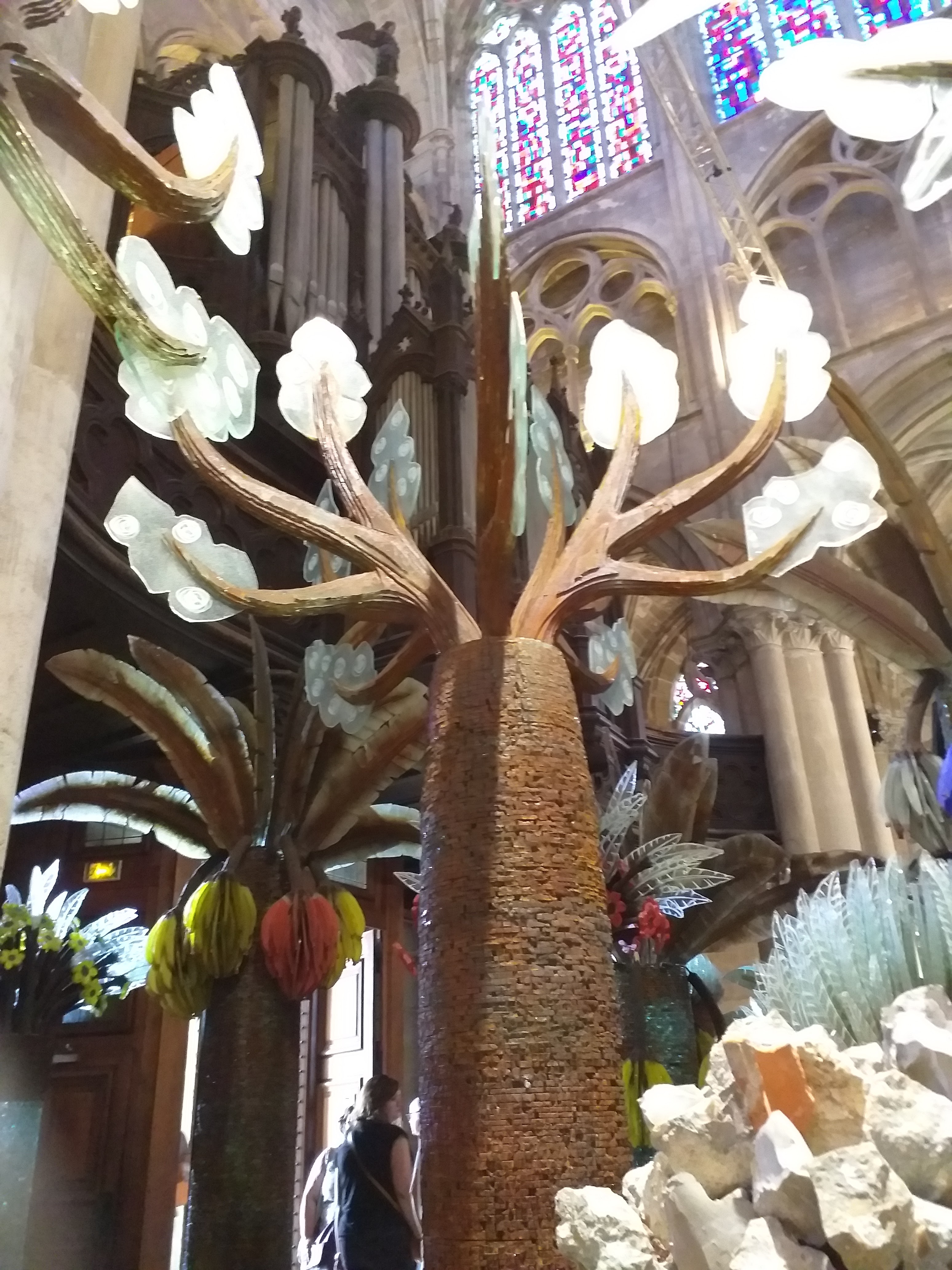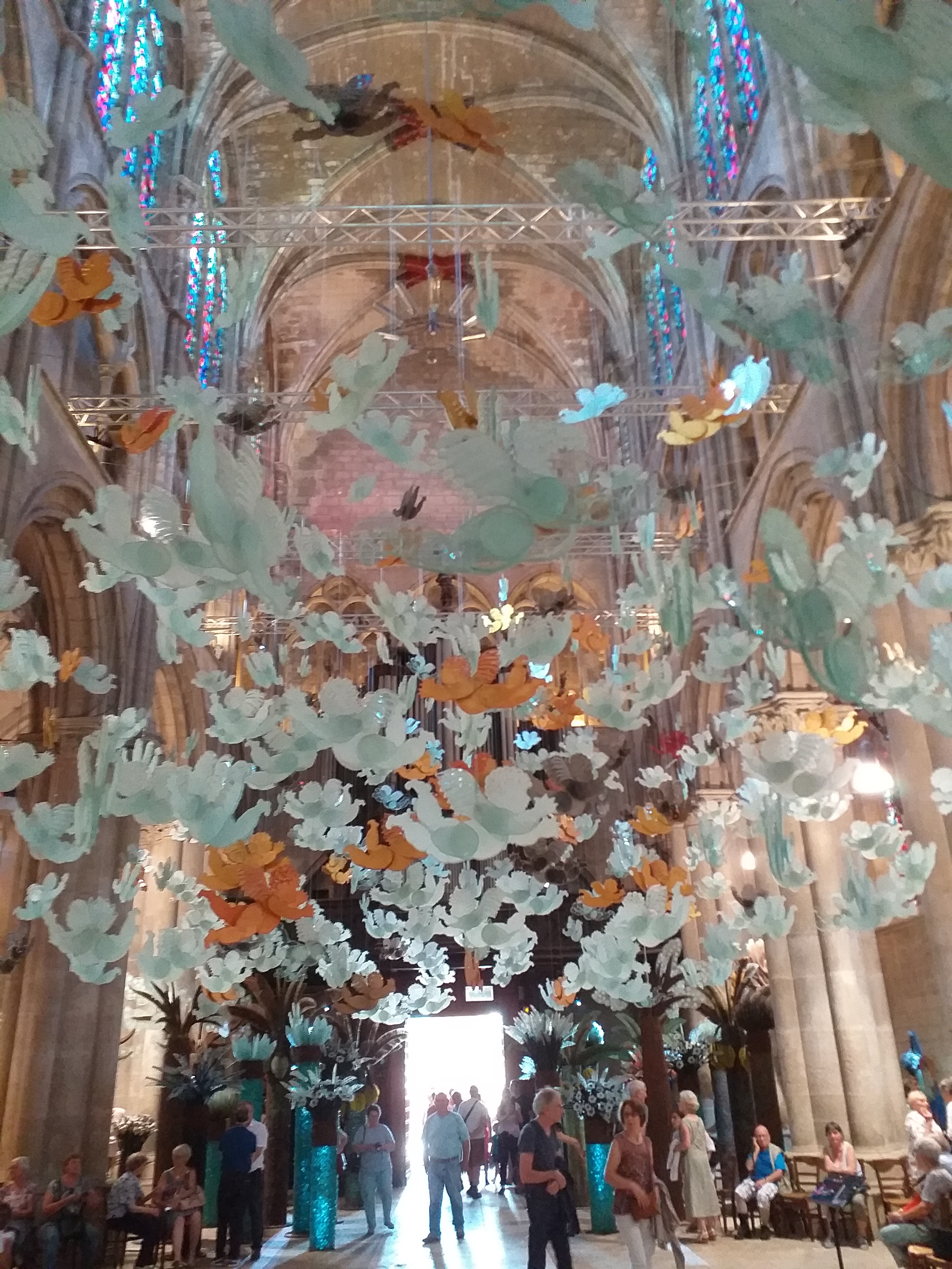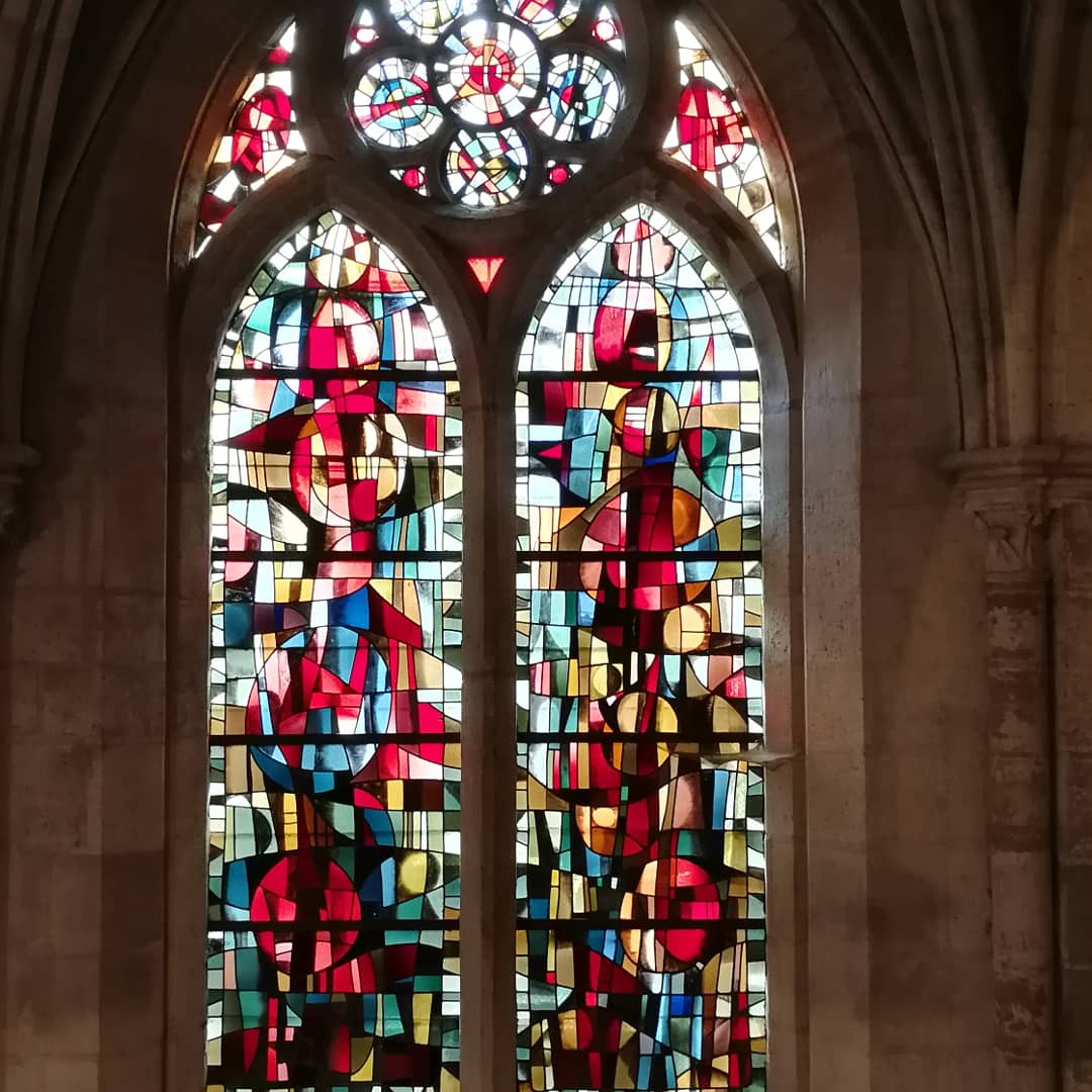 Cette exposition a l intérieur de l église magnifique cette verrerie on en prend plein les yeux