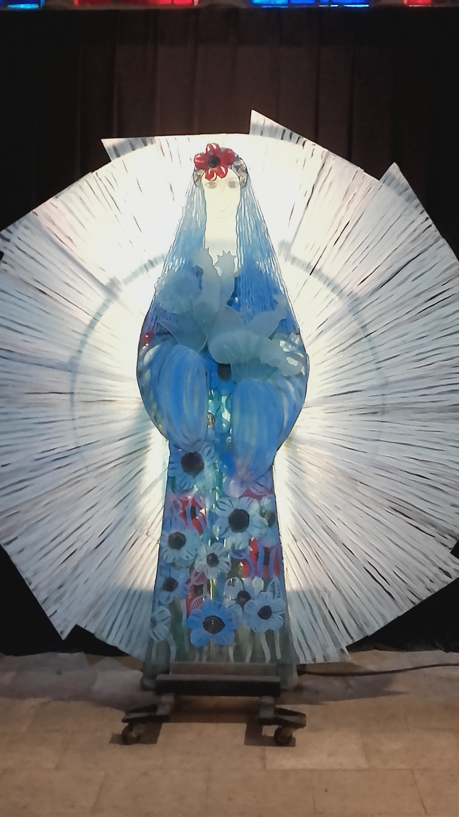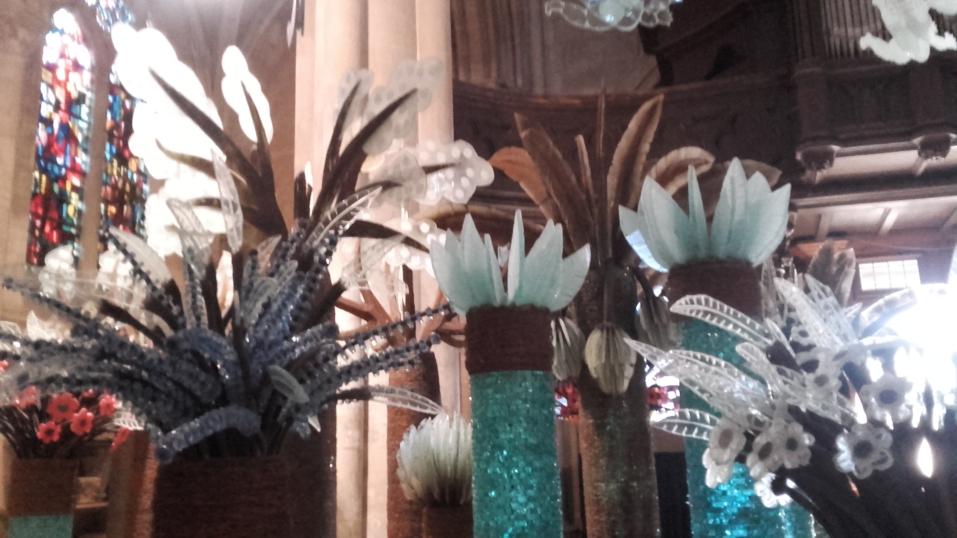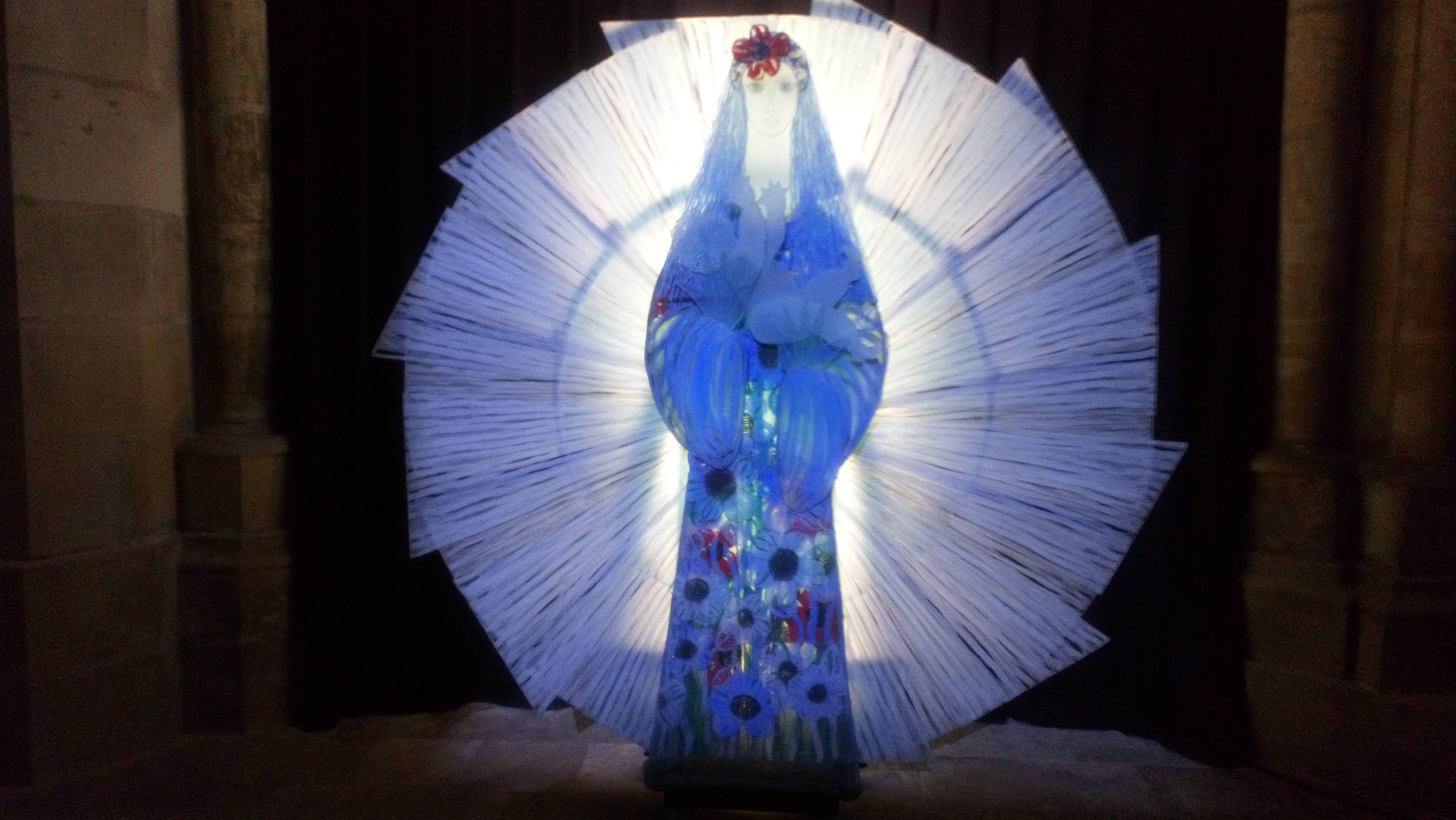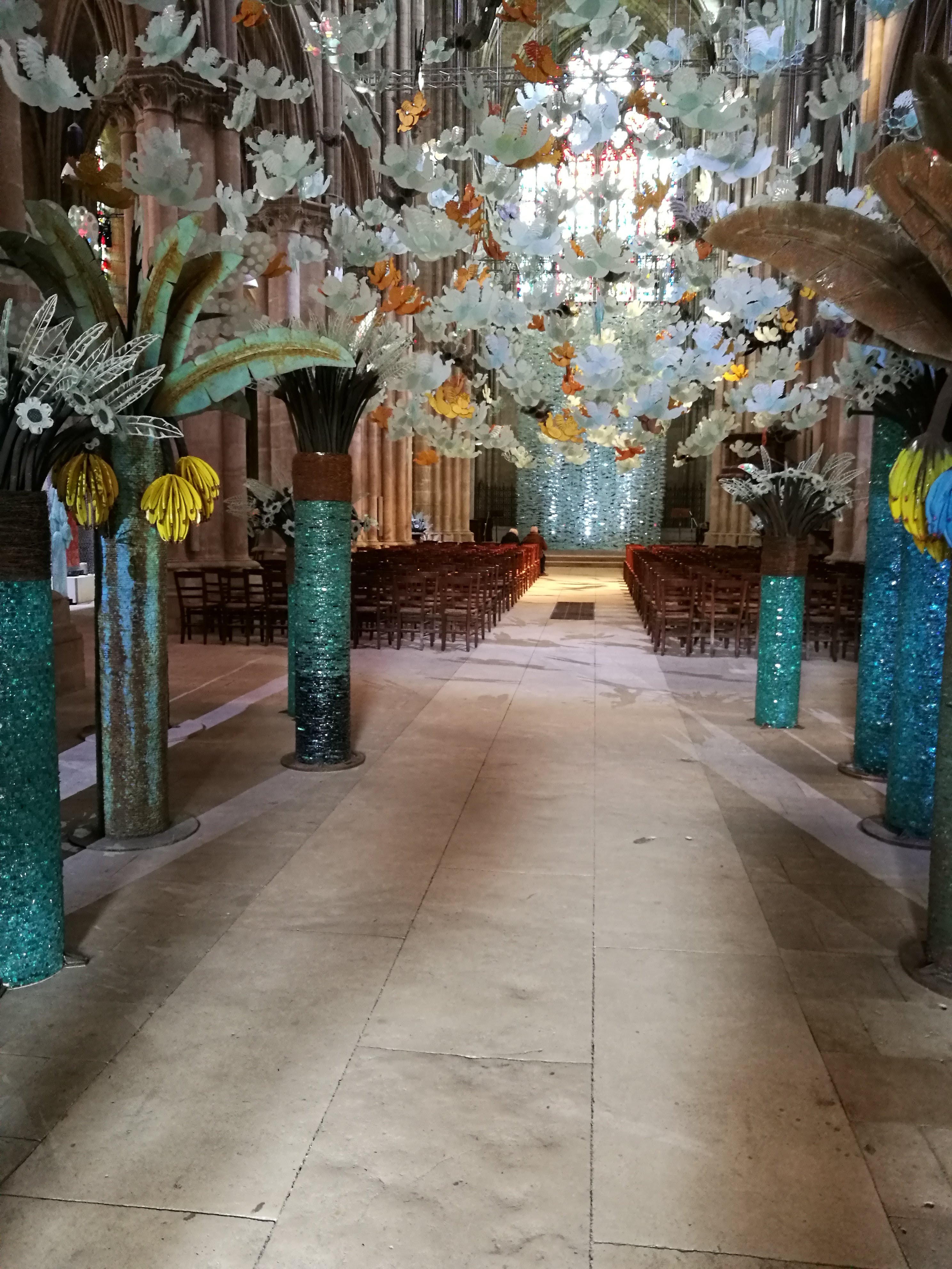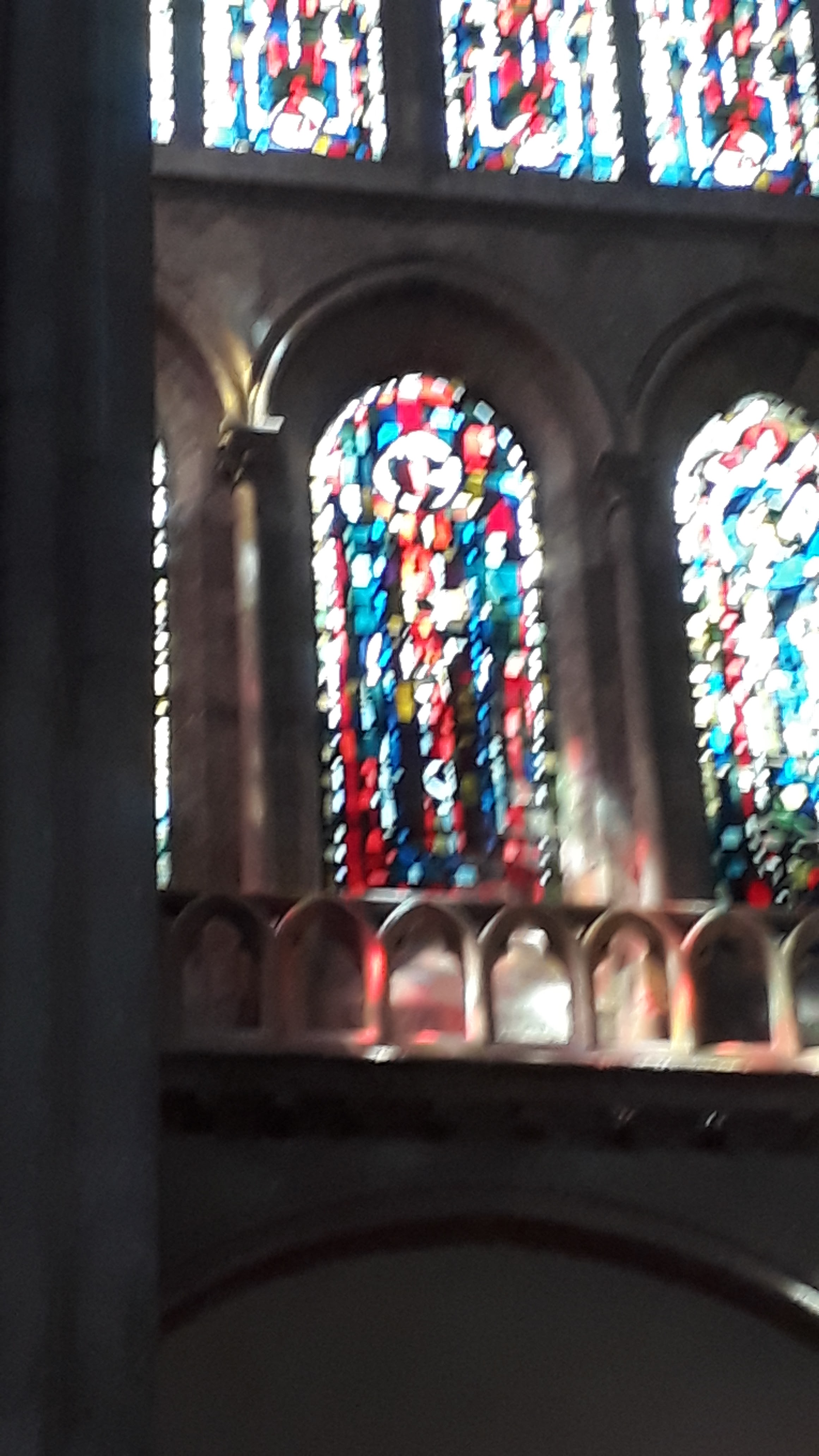 Cette exposition a l intérieur de l église magnifique cette verrerie on en prend plein les yeux