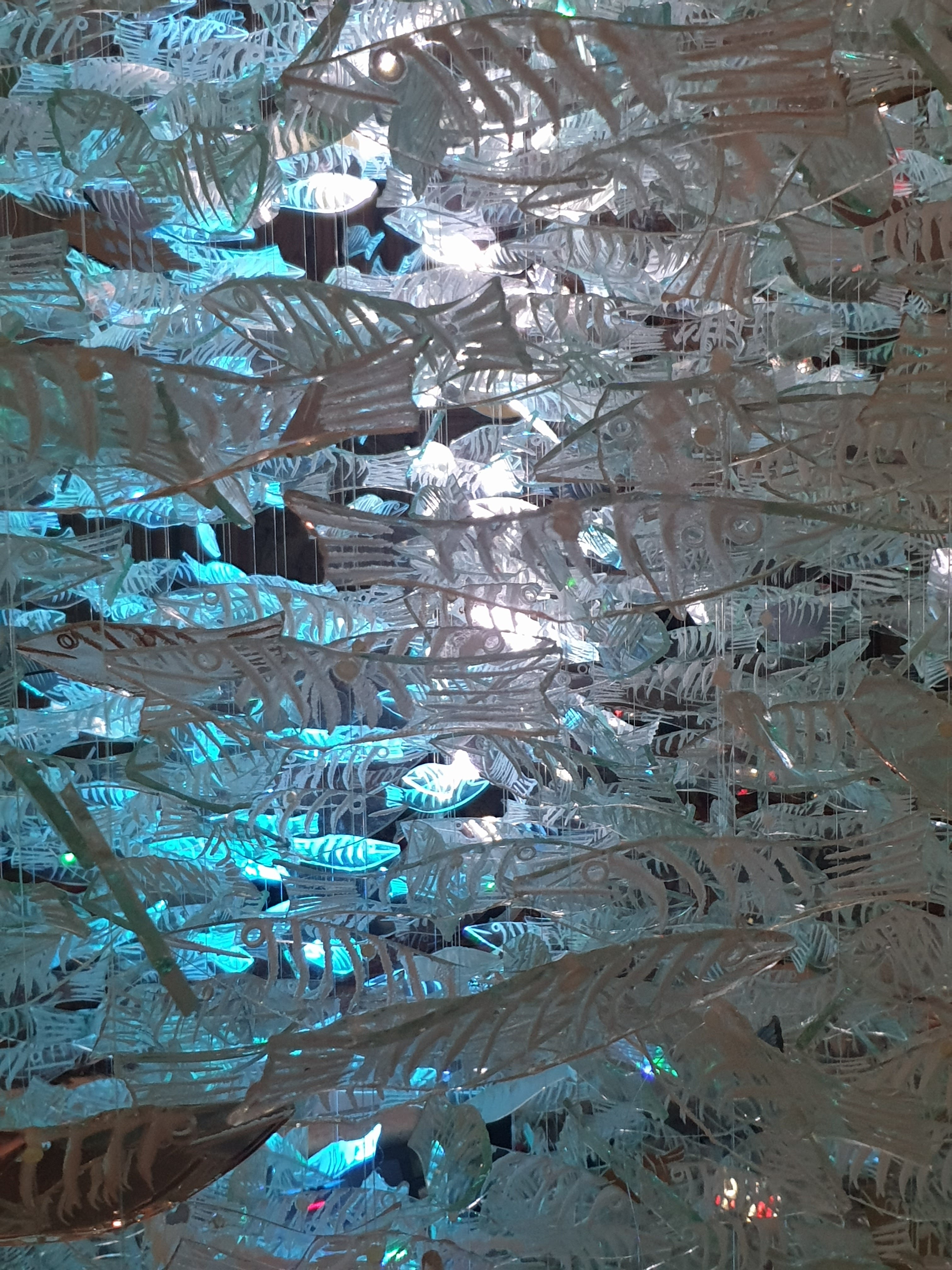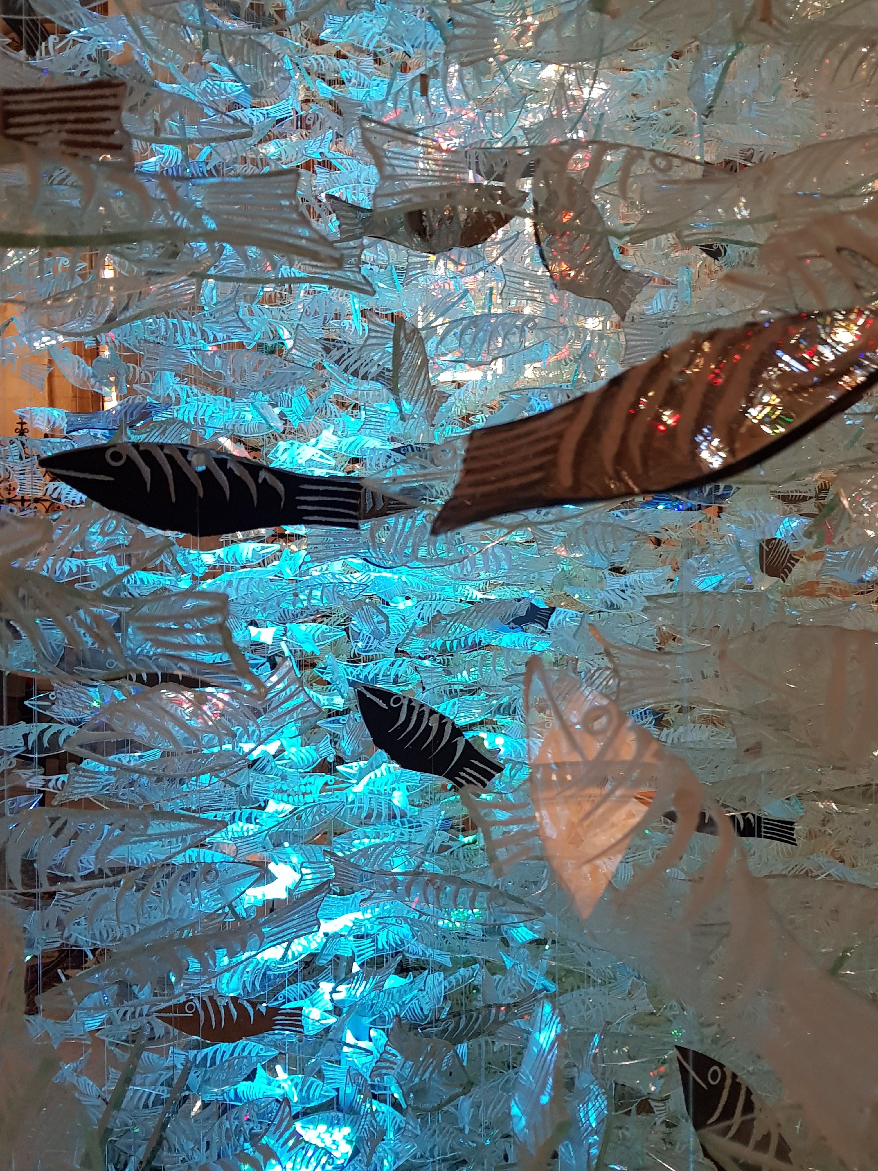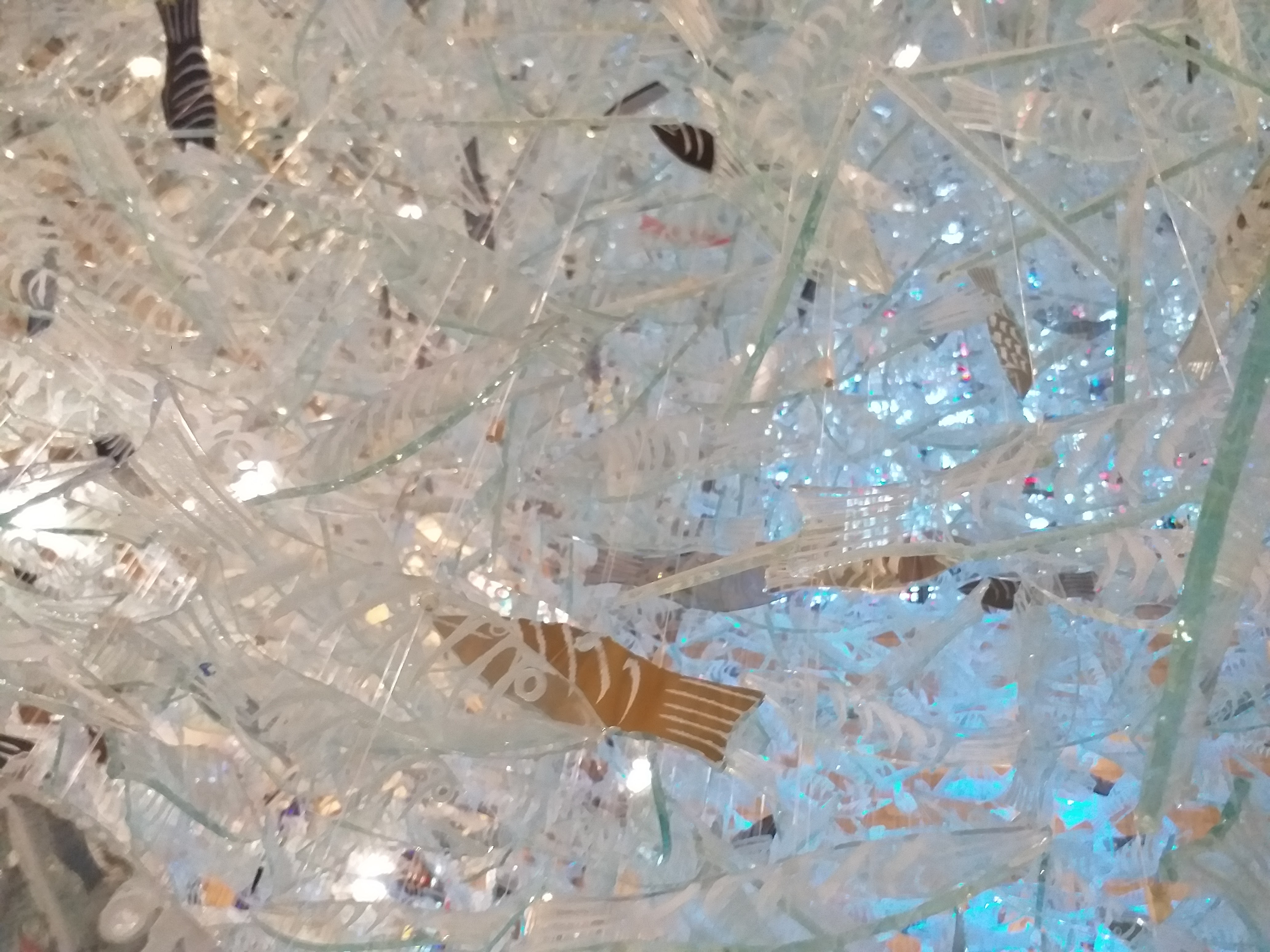 Cette exposition de Marcoville Lumières célestes était vraiment magnifique et tout en poésie... plus de 600 anges, 30 000 poissons, des Vierges à l'enfant, des arbres et des fleurs... Une merveilleuse représentation du Paradis... Et le tout en matériaux recyclés (du verre industriel). Il a fallut plus de 10 ans à l'artiste pour réaliser cette oeuvre magnifique et féérique...