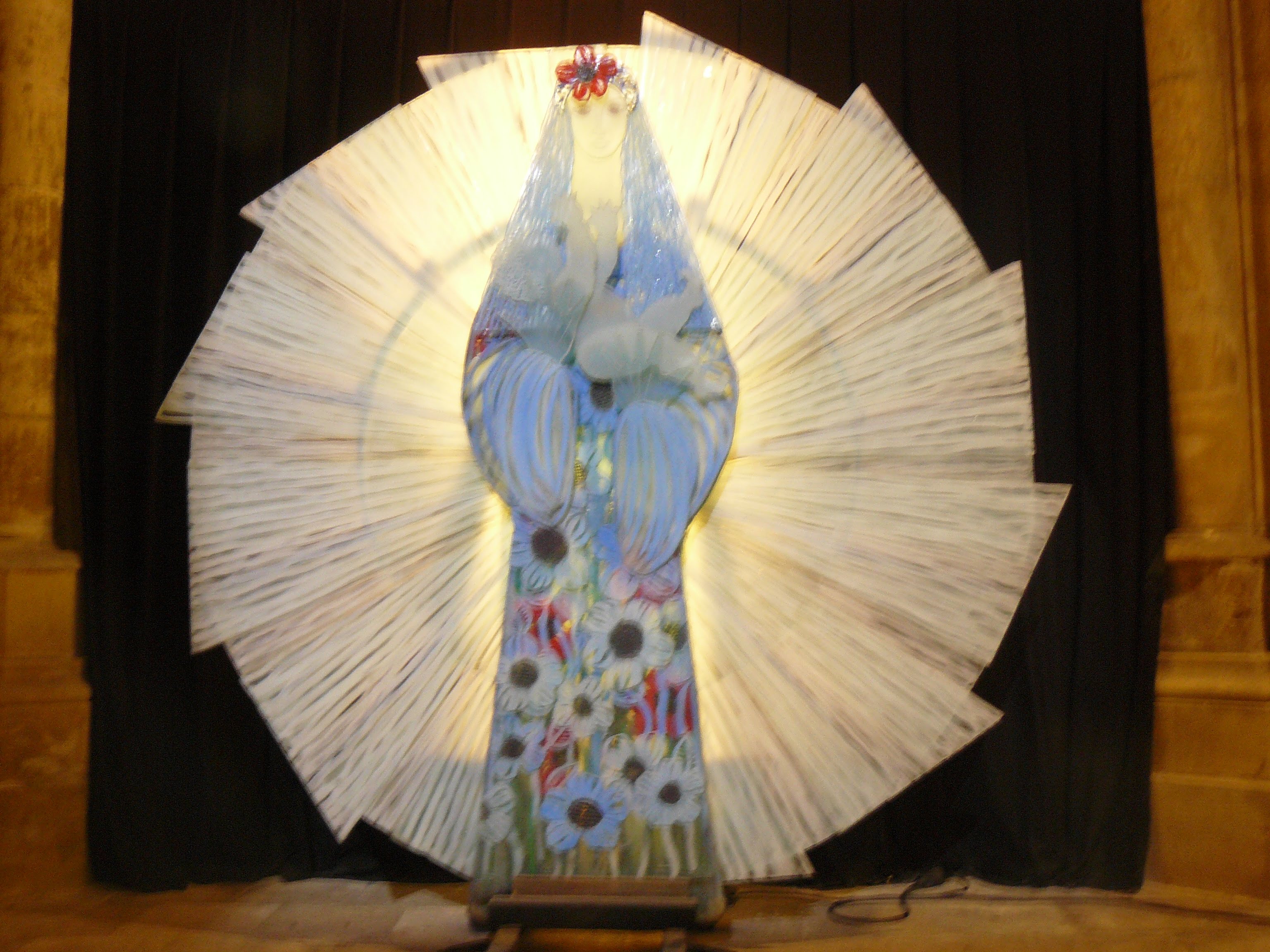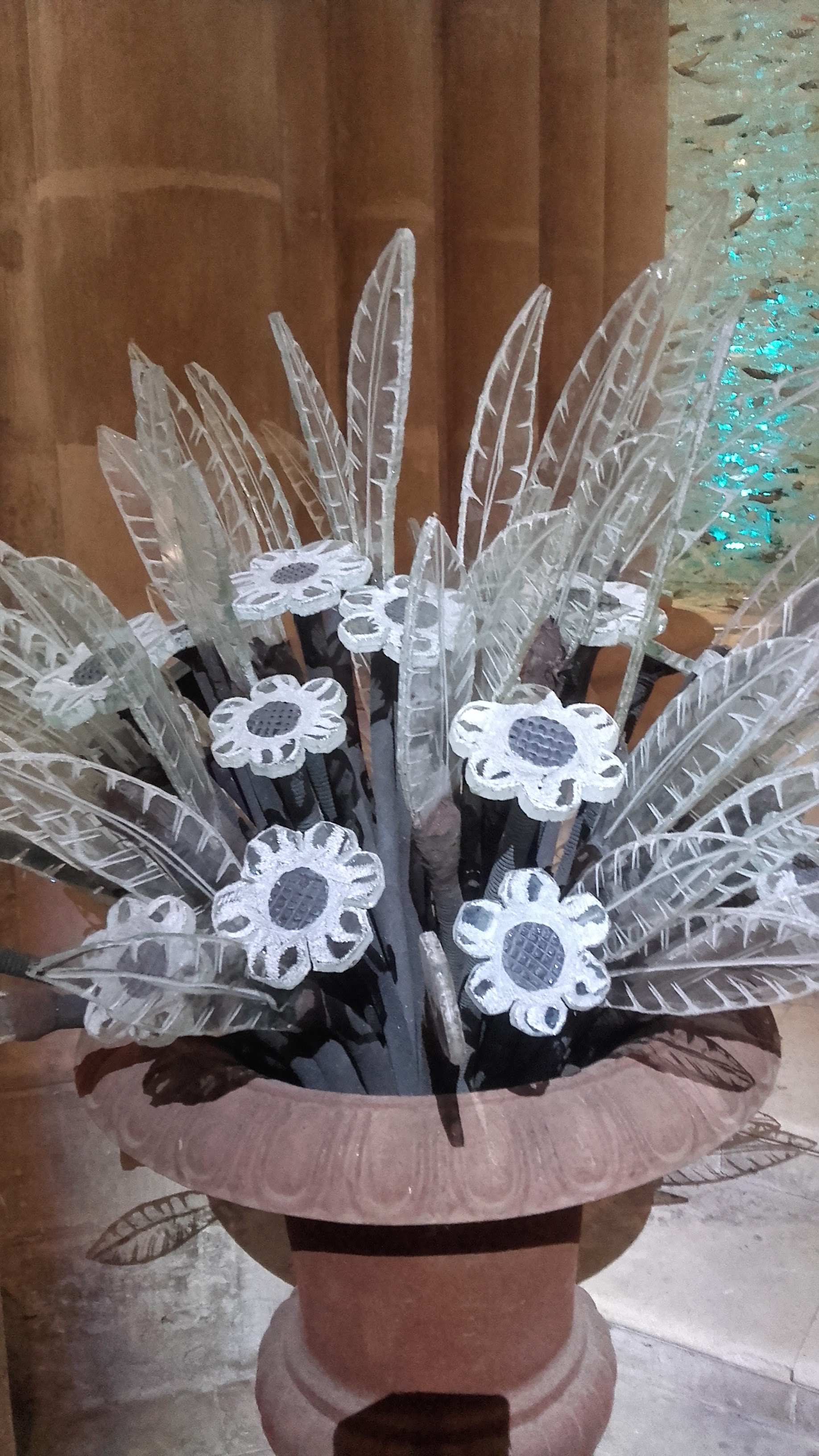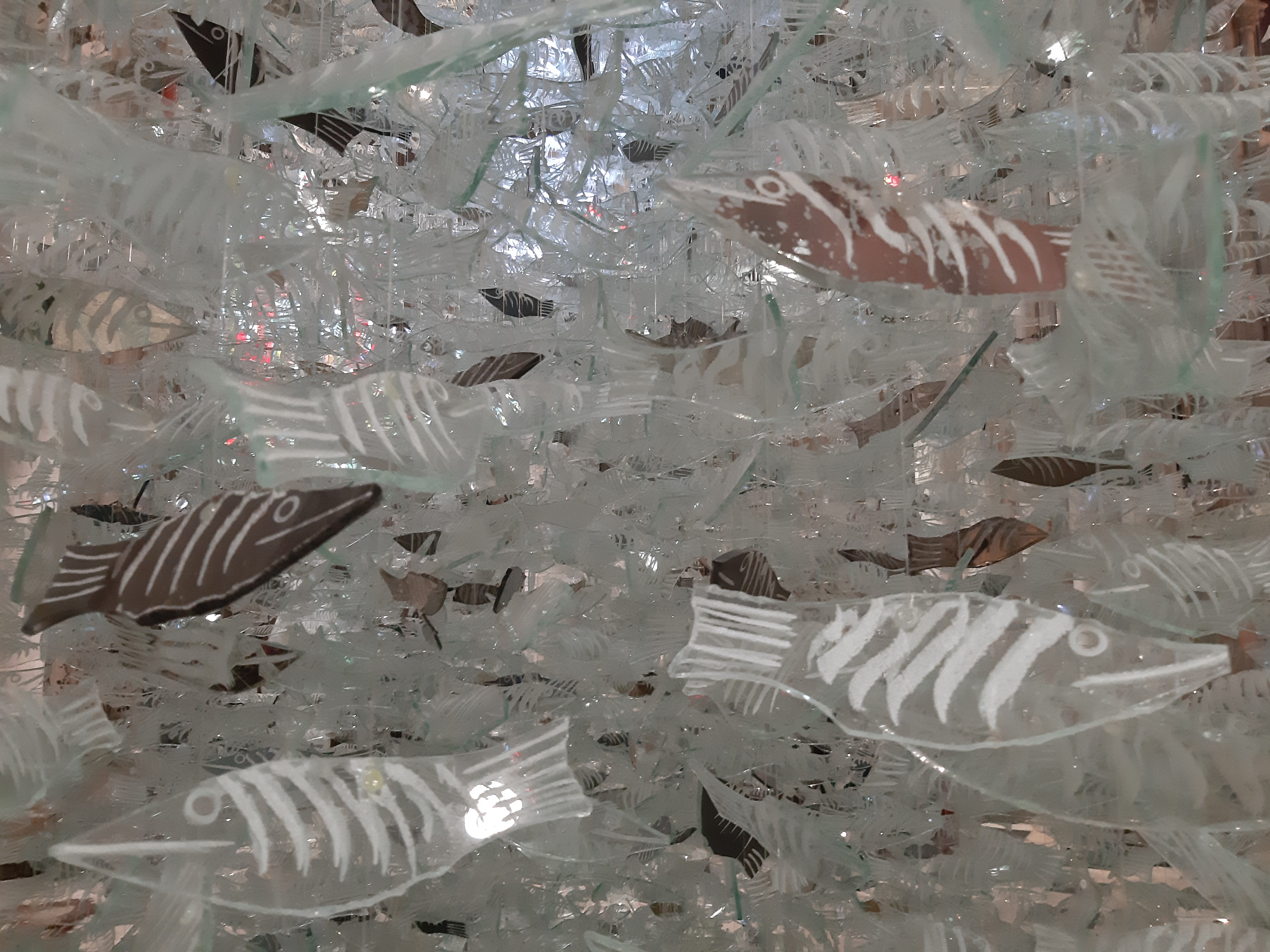 Cette exposition de Marcoville Lumières célestes était vraiment magnifique et tout en poésie... plus de 600 anges, 30 000 poissons, des Vierges à l'enfant, des arbres et des fleurs... Une merveilleuse représentation du Paradis... Et le tout en matériaux recyclés (du verre industriel). Il a fallut plus de 10 ans à l'artiste pour réaliser cette oeuvre magnifique et féérique...
