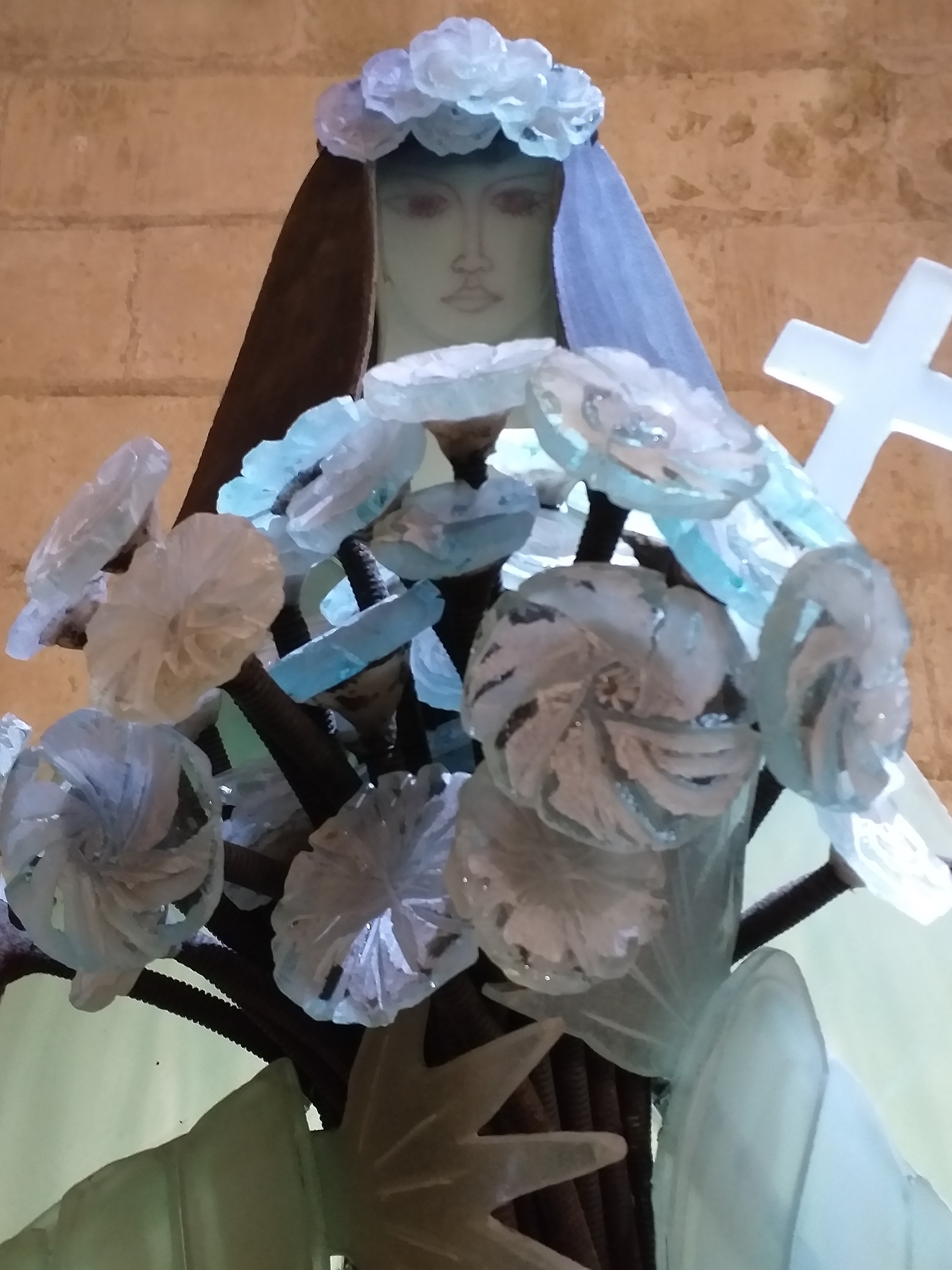 Je suis rentrée à St Julien pour la première fois en juin ayant entendu parler de l'exposition lumières Célestes du sculpteur verrier Marco VILLE Vraiment magnifique, si bien que j'y suis retournée plusieurs fois à différentes heures de la journée, à chaque fois ce fut une nouvelle approche, de part la lumière du soleil à travers les vitraux, et se reflétant sur les sculptures. Merci à vous pour cette belle expo. 👍🤗