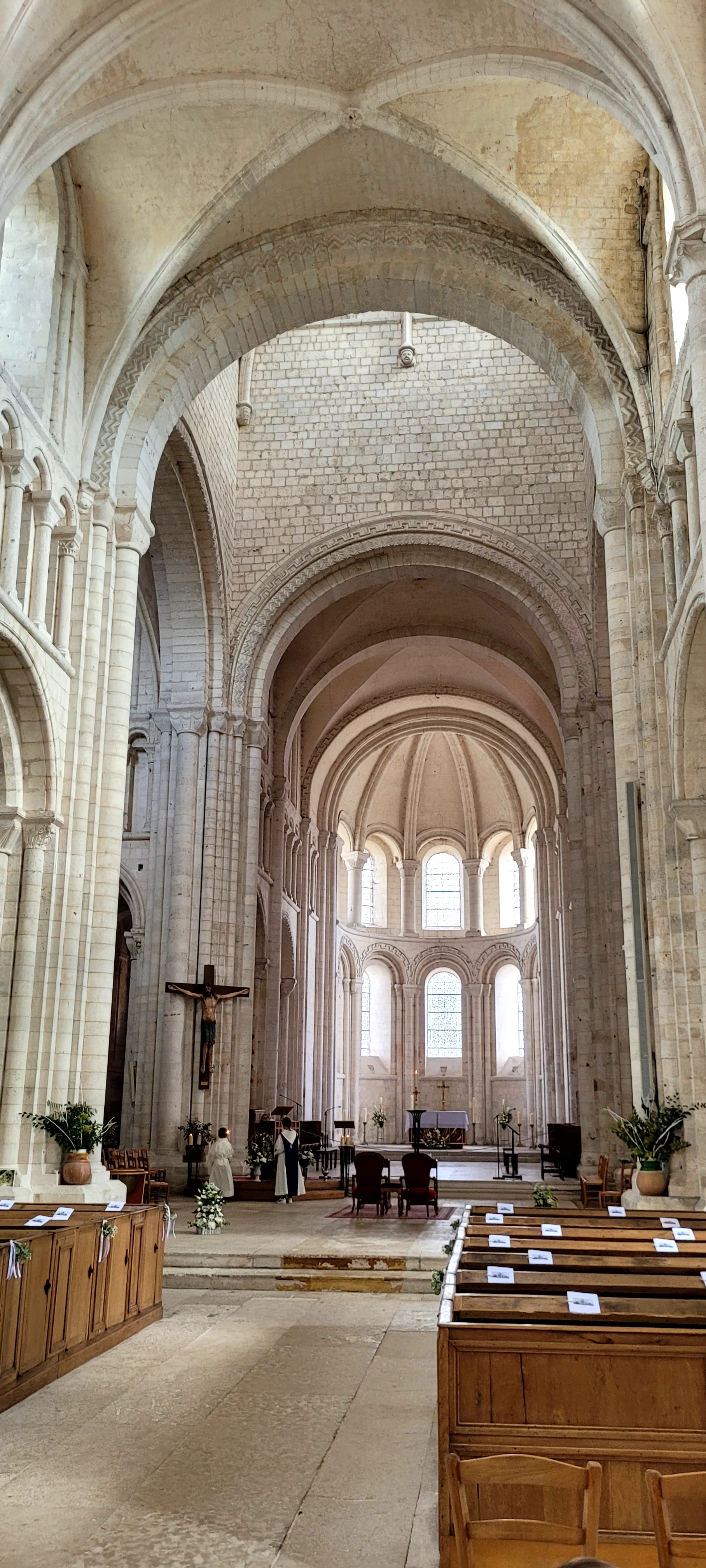 Très belle abbaye mais j'en garde un goût amer après mon mariage qui ne s'est pas passé comme prévu à cause du curé. Nous ne faisons pas partie de cette paroisse mais avons demandé s'il était possible que l'on s'y marie avec notre prêtre avec qui nous avons fait notre préparation ce qui a été validé. Le J-J, quelle fut notre surprise de voir qu'en plus de notre prêtre, monsieur le curé était également là et a refusé nos musiques d'entrée sur le parvis (bien que la cérémonie ait été validé par notre prêtre), également indiqué à notre photographe que s'il montait 1 seule marche du cœur il stopperait la cérémonie (sans oublié les petites réflexion masquées sous un grand sourire à plusieurs reprises), nous nous sommes également fait prendre nos livrets de messes (différents des autres avec celui de notre prêtre) par ce même curé ainsi qu'une autre personne. Heureusement que mon mari avec gardé son téléphone avec lui afin que nous puissions lire notre prière des époux !! On nous a également pressé le pas par la suite (car forcément nous n'avons pas commencé à l'heure la cérémonie avec tout ça) et mon mari ne m'a donc pas vu remonter l'allée au bras de mon père car je marchais littéralement 3-4m derrière lui et qu'il m'a vu une fois arrivé en se retournant.. Je veux bien que ce soit son Eglise, mais si on accepte que quelqu'un d'autre fasse la célébration alors on accepte ce qui a été vu/validé et on ne met pas les gens face au mur au moment du mariage. Ca nous a tout gâché, enfin pour ma part. Après on s'étonne que les jeunes ne veulent plus se marier à l'Eglise. Ok on ne se marie pas à l'Eglise pour des musiques mais là.. ça commençait à faire beaucoup à 2min de notre mariage.. Heureusement personne ne s'est rendu compte de rien car notre prêtre a été top ! et tout le monde a apprécié la célébration. Je me faisais une joie de me marier à l'Eglise, de réaliser mon rêve de petite fille au bras de mon père (qui ne rentre habituellement jamais dans une Eglise et qui avait également fait cet effort pour moi, lui aussi a été très déçu et énervé pour moi -alors qu'il ne s'énerve jamais-) pour qu'il m'emmène vers l'homme que j'aime et avec qui je promets de faire ma vie..