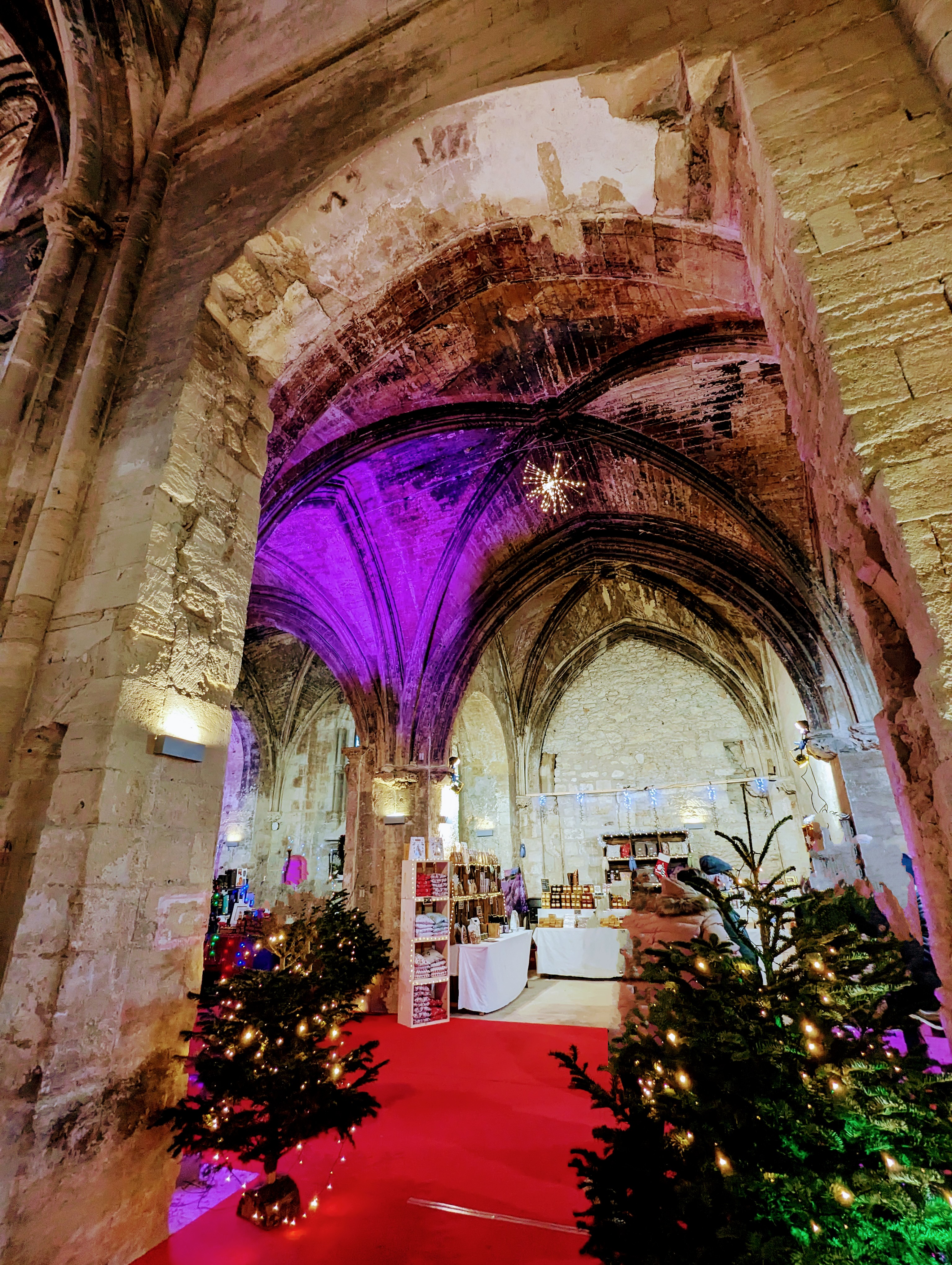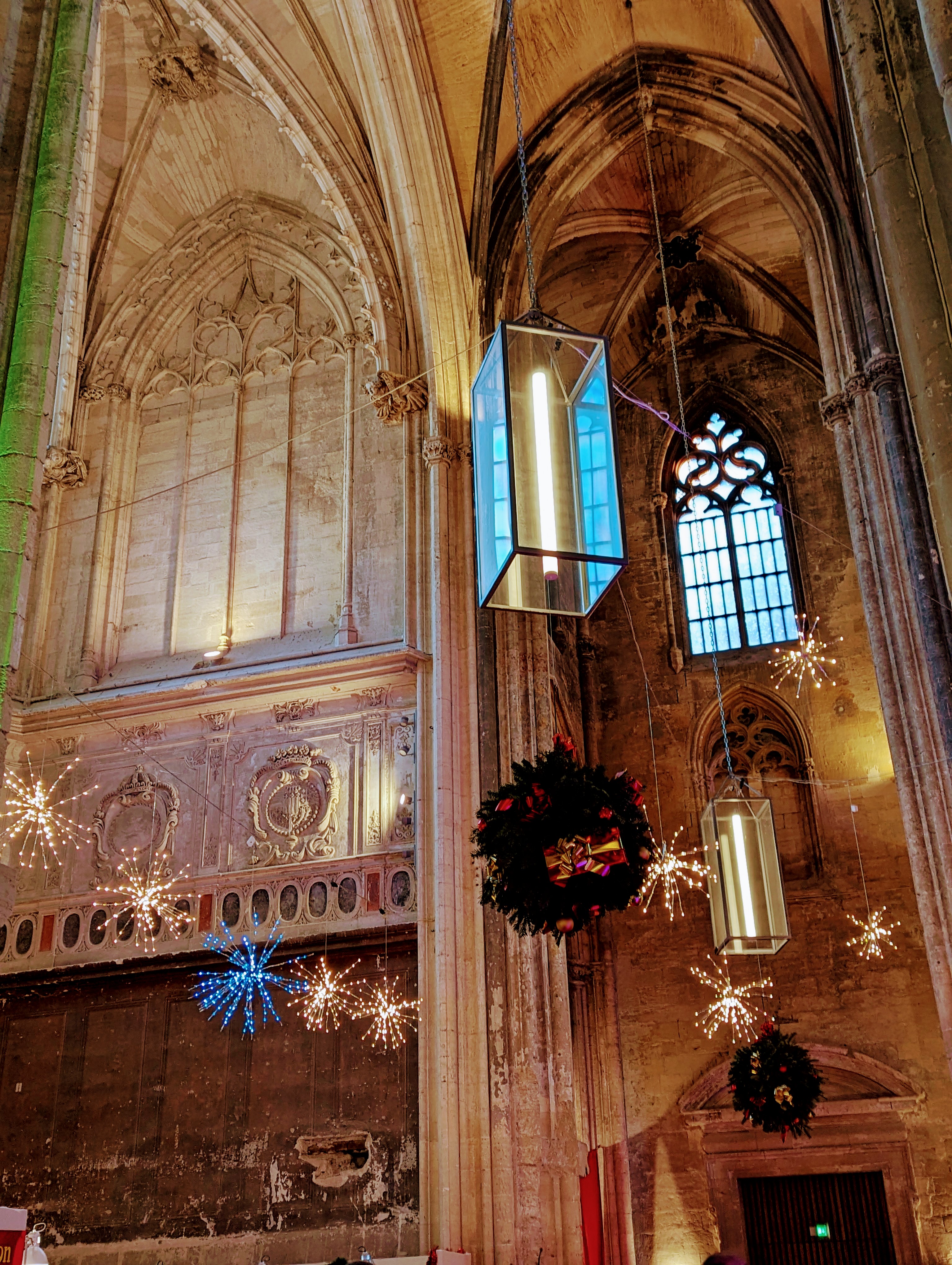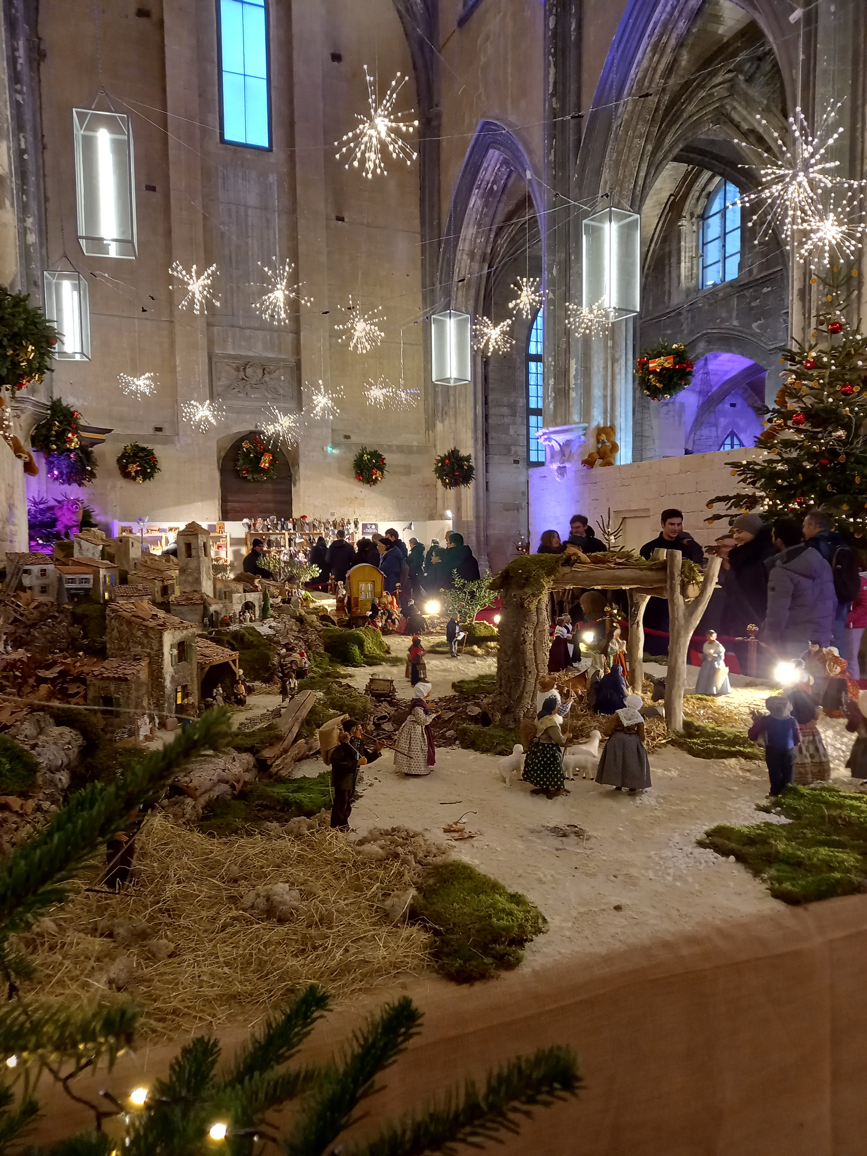 En fait cette église est désacralisée. Je l'ai parcourue le dimanche 10 décembre. Elle est en ce moment superbement décorée à l'occasion des fêtes de fin d'année. Il y a aussi des commerçants vendeurs de santons, de produits d'Occitanie (calissons, nougats, miel, chocolats...). L'architecture intérieure est intéressante. Un bon moment à passer pour les grands et les petits.