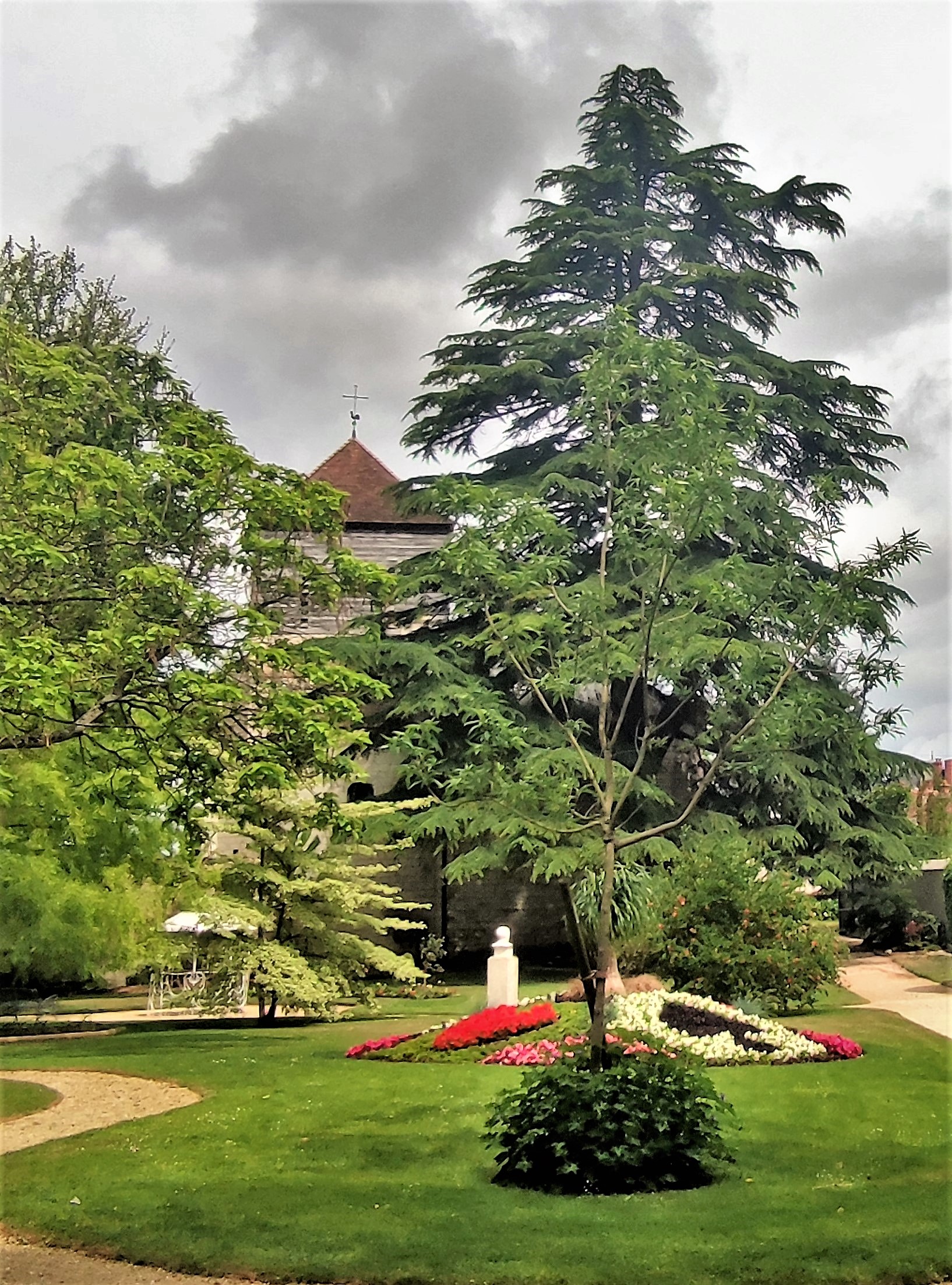 Très beau parc botanique autour de cette église, très bien entretenu.