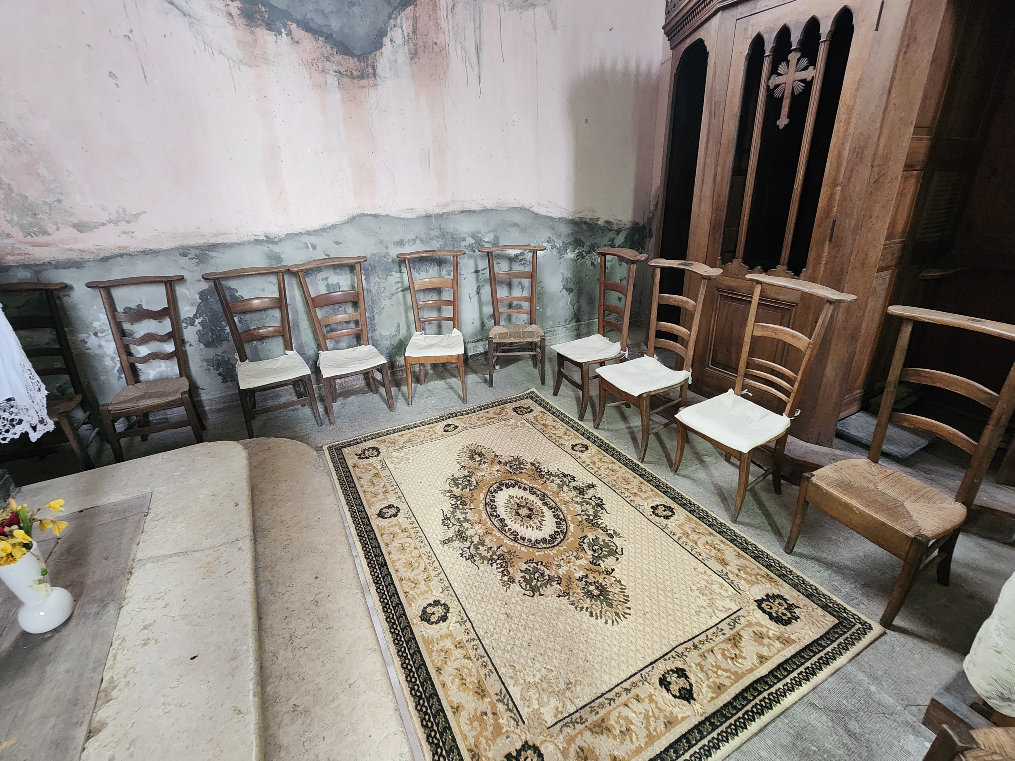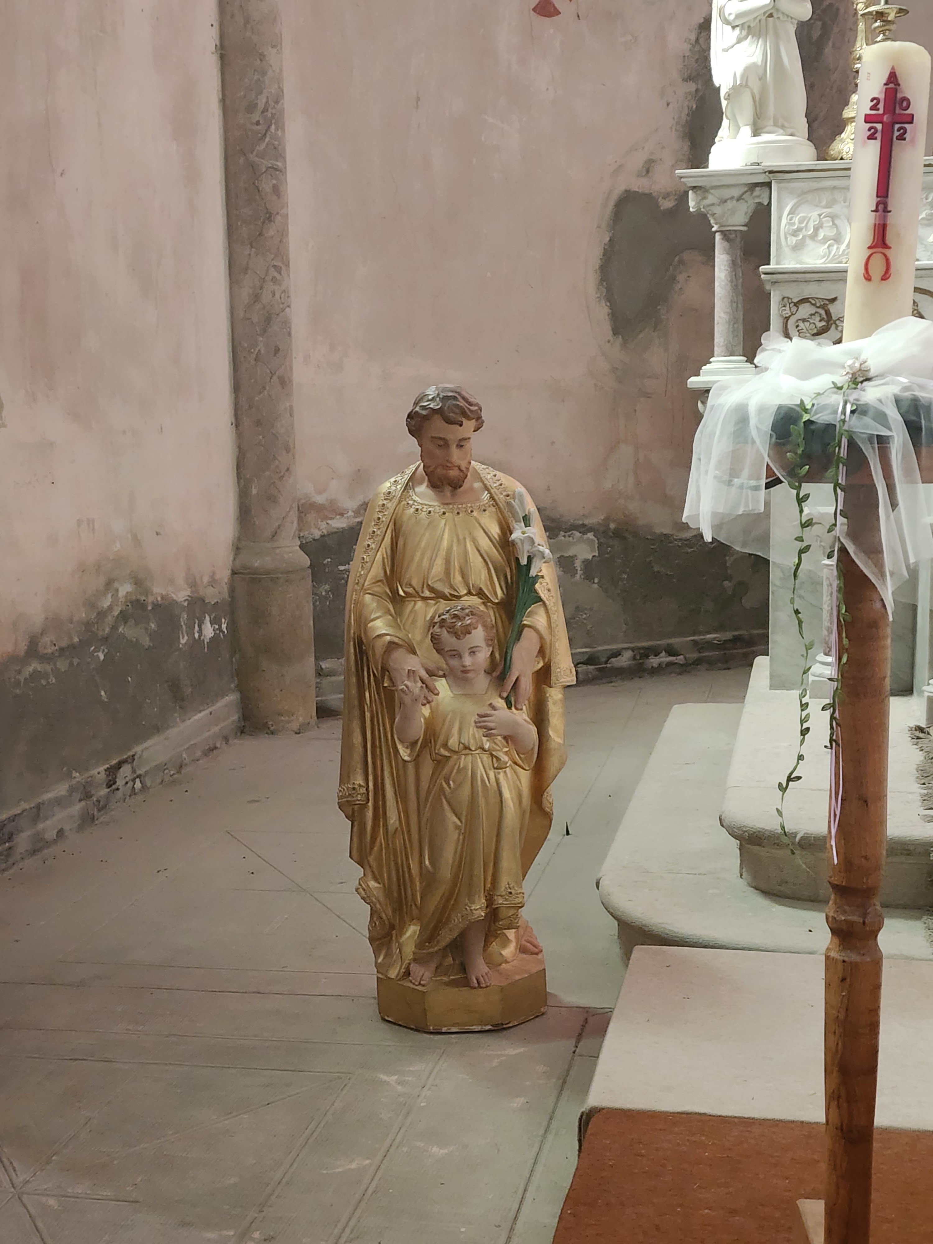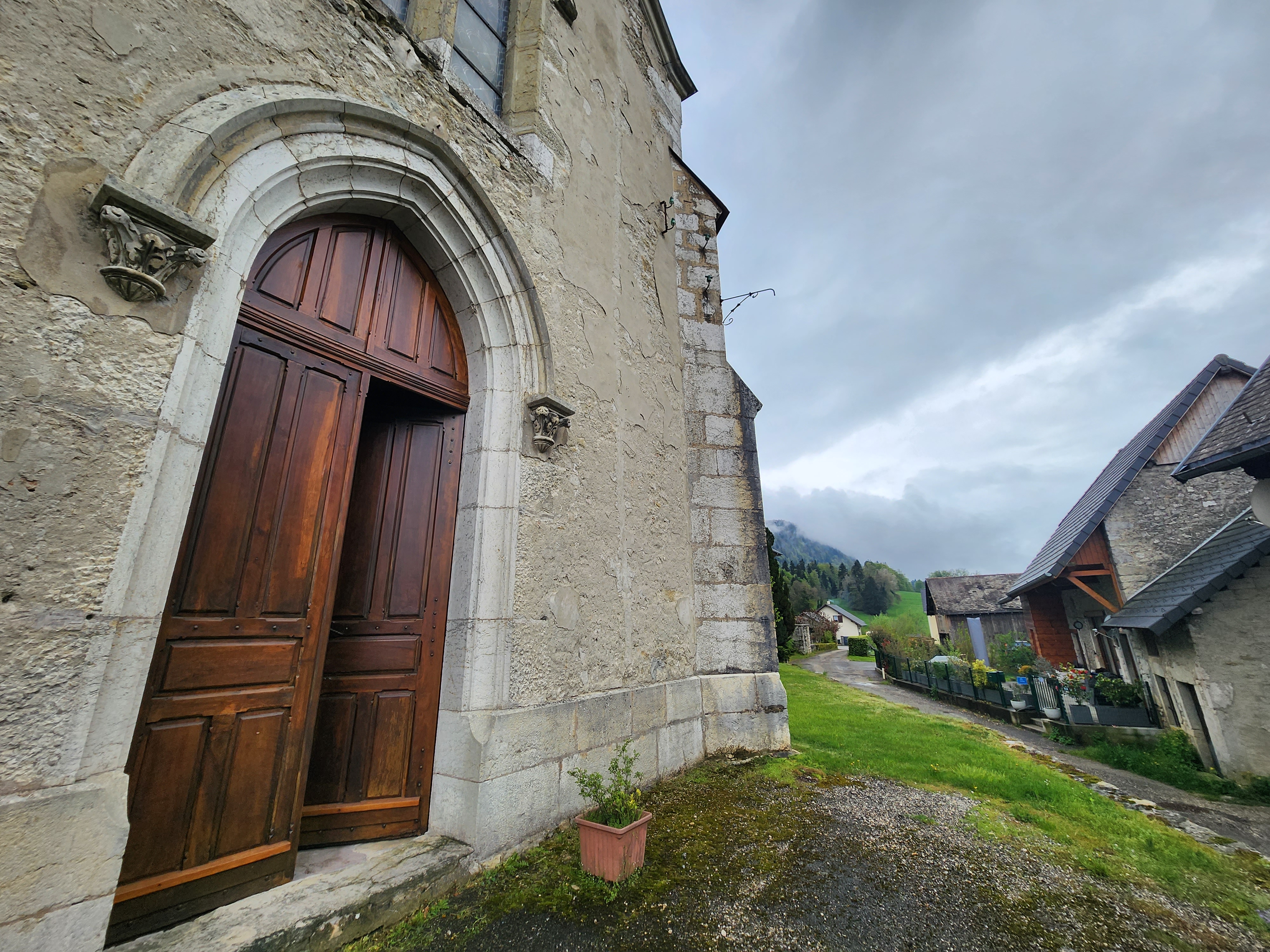 Situé dans une ville très calme avec peu de monde à l'extérieur. Les seuls bruits que l'on pouvait entendre étaient le bruit de l'eau qui coulait dans les Alpes françaises. La porte latérale de l'église était ouverte et elle semble être en bois traditionnel. L'église est très vieille, délabrée et nécessite des réparations immédiates. Tout près du maître-autel, à gauche vous avez la statue de St Joseph et à droite la statue de Mère Marie (Lourdes). Vous pouvez déposer vos pétitions dans l’un ou l’autre coin des Saints. La statue de Saint Michel Archange est en métal et elle était la plus importante L'église a peut-être adopté saint Joseph comme saint patron car l'église possède quelques-unes de ses images. Digne d'une visite. Et les fidèles peuvent eux aussi passer un moment de calme.