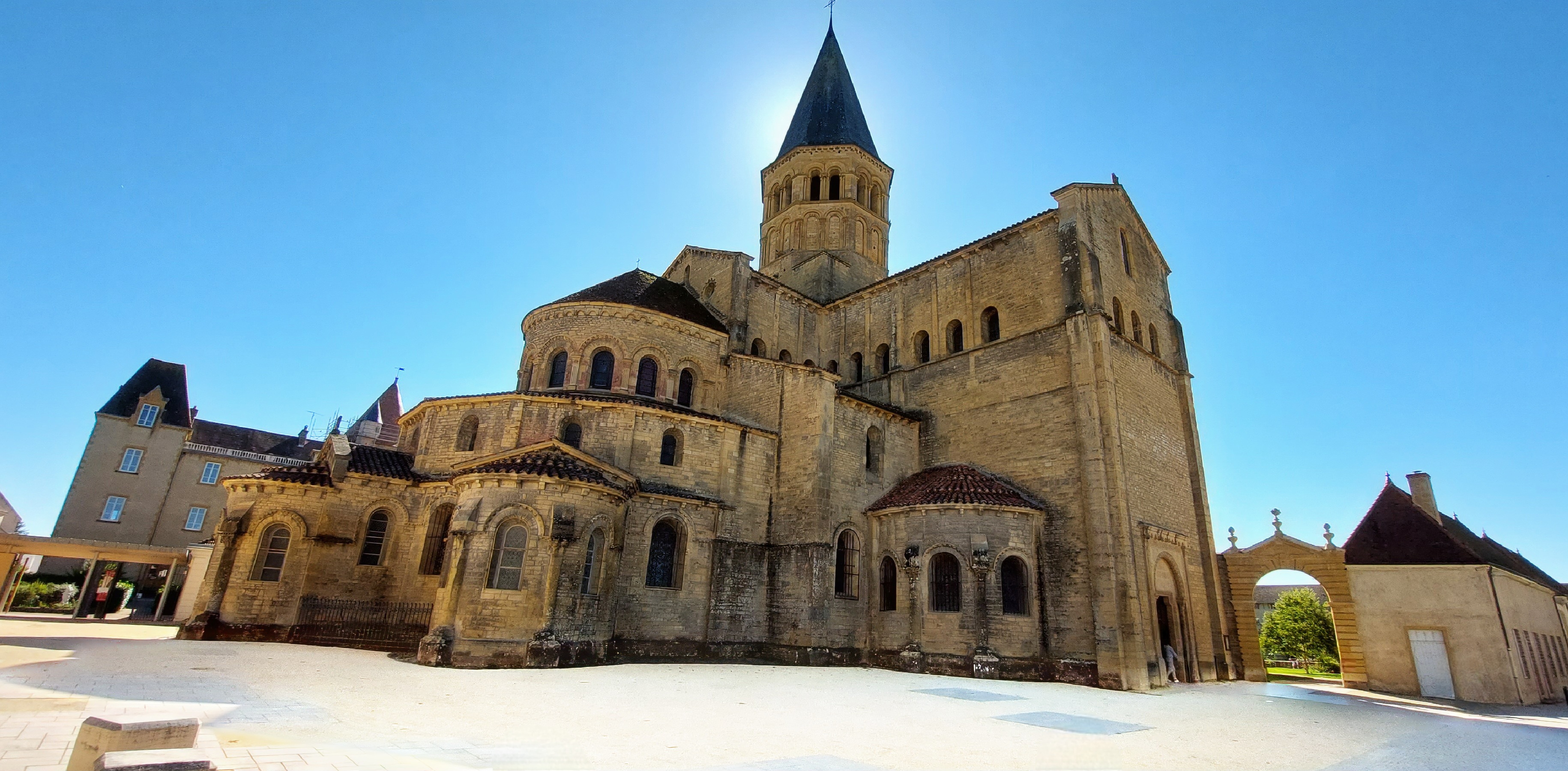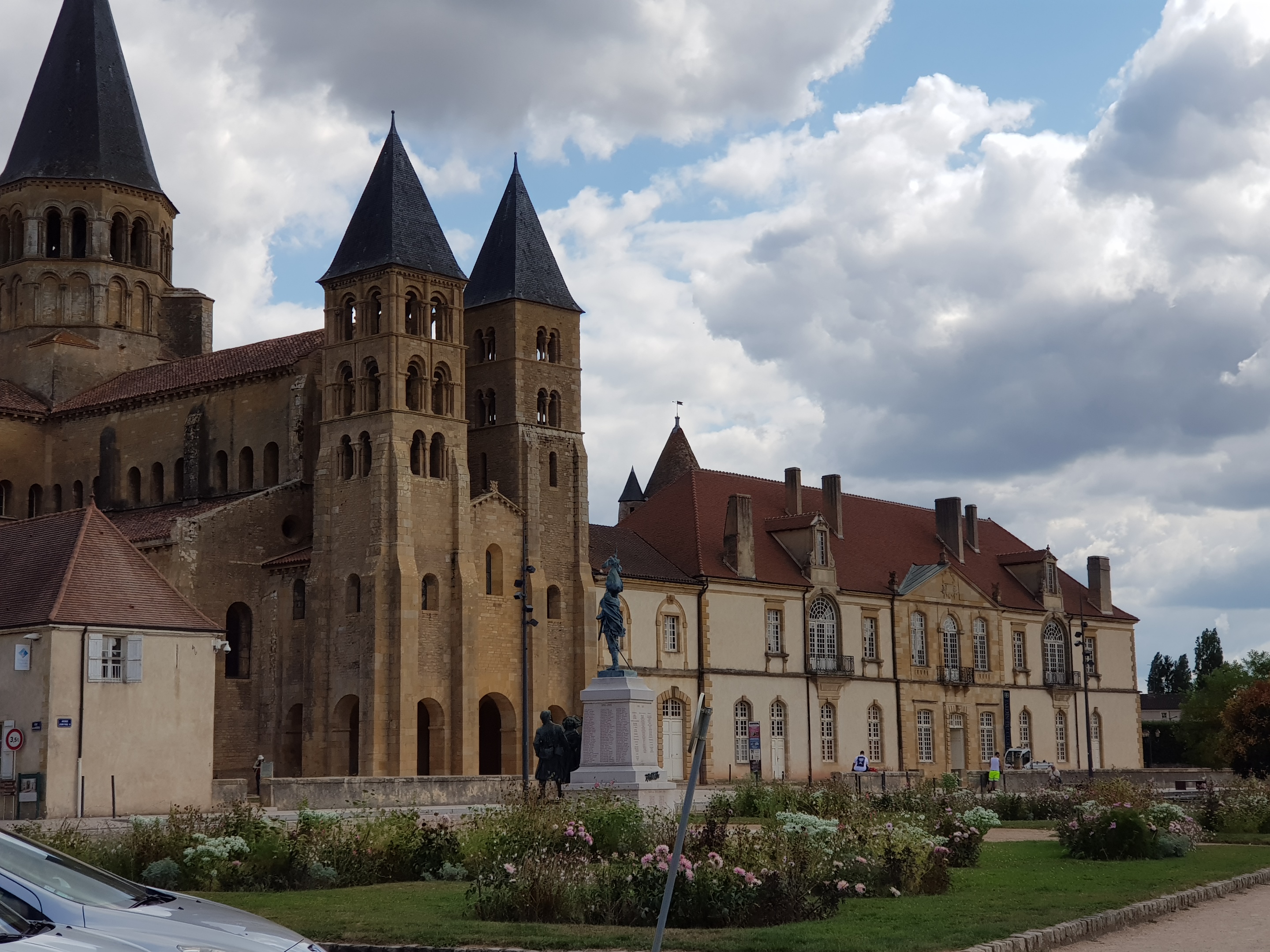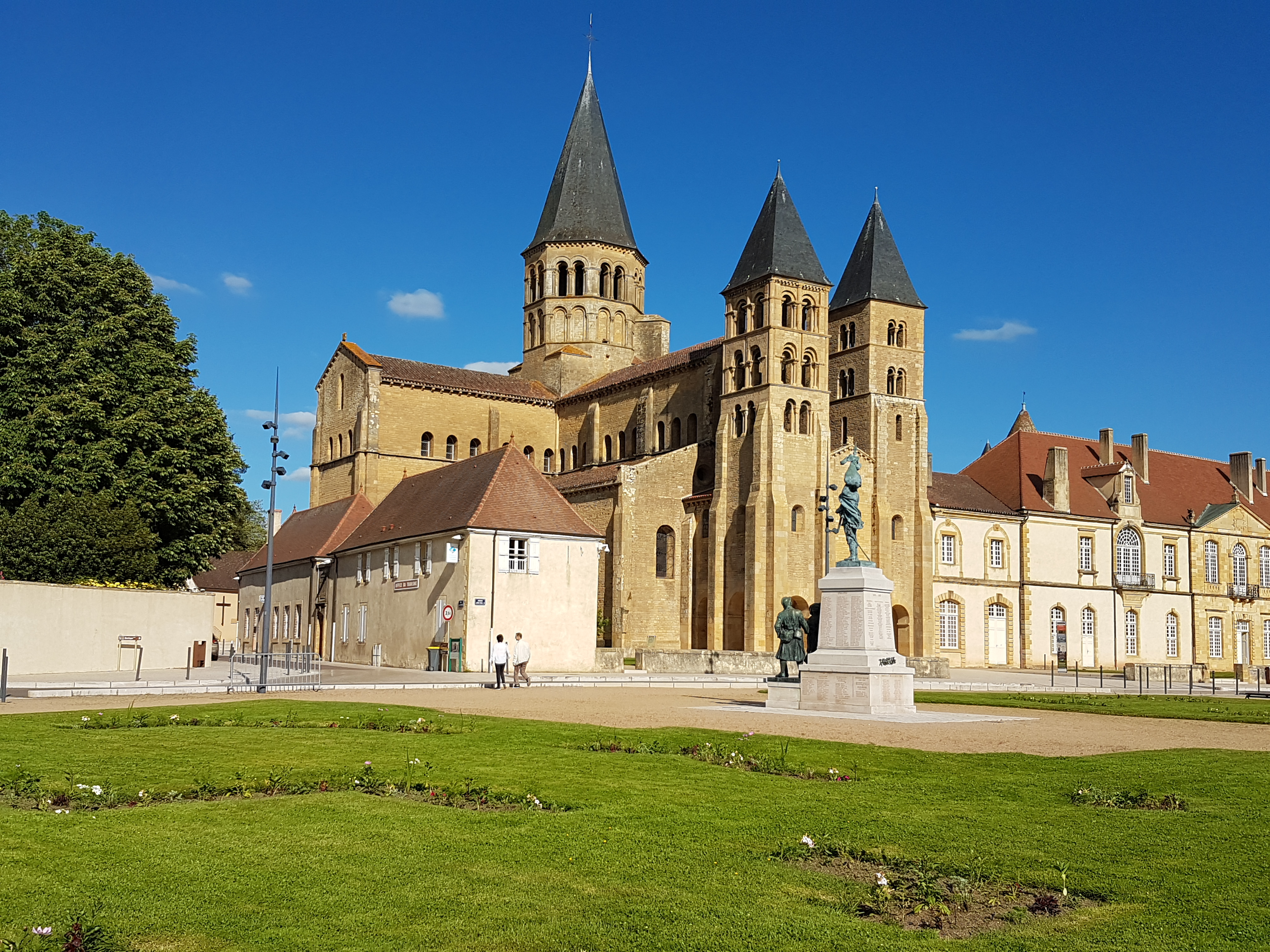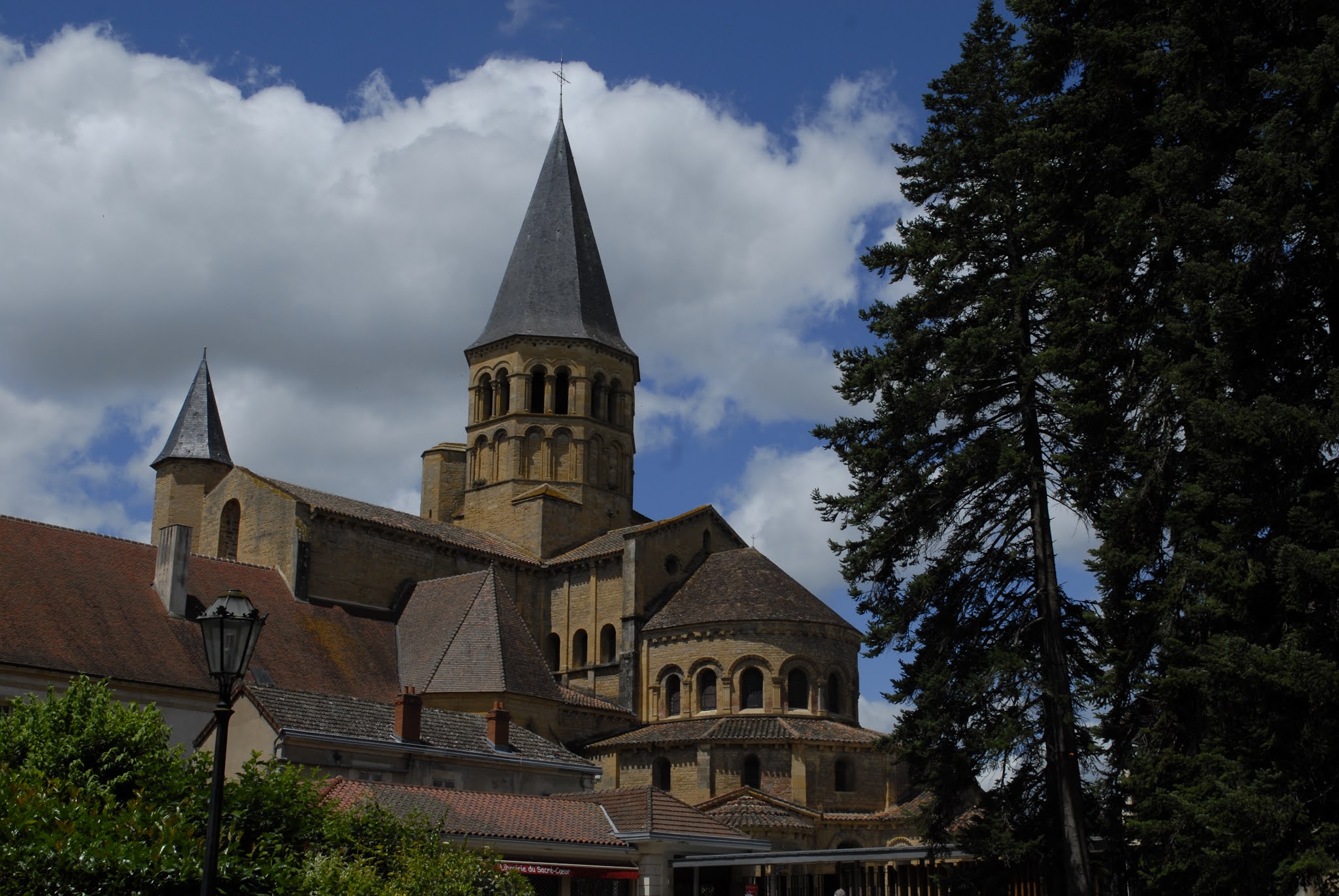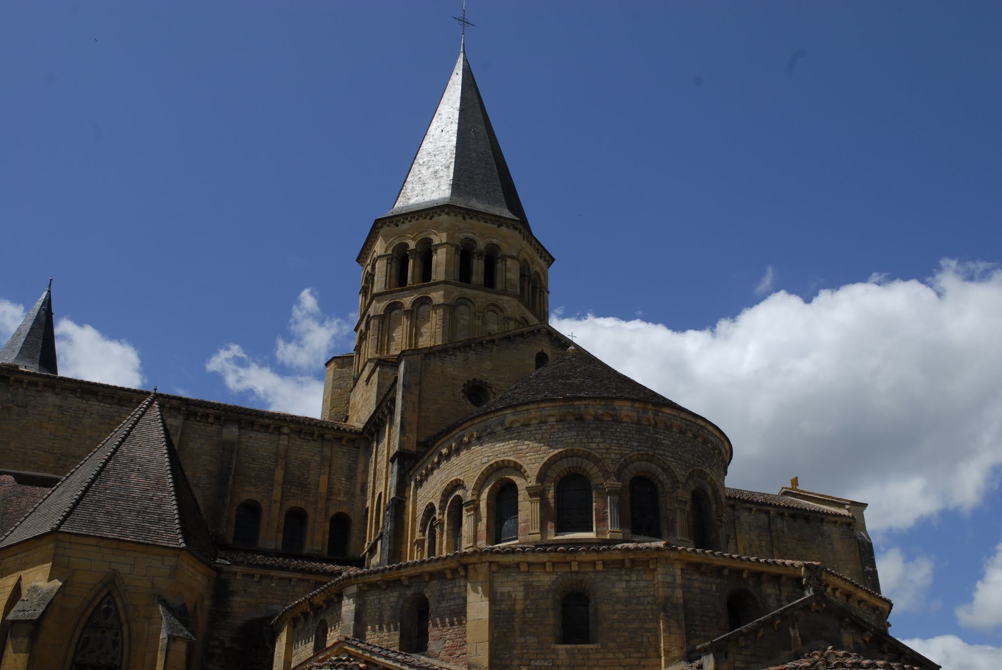 Je pense de loin le lieu le plus touristique de la région. La basilique romane de Paray-le-Monial, placée sous le vocable du Sacré-Cœur depuis 1875, donne une image complète, bien que de dimensions réduites, de ce que fut Cluny : trois nefs contre cinq à Cluny, transept simple et non pas double, mais, de l'avant-nef à la cascade des toitures du chevet, étagées dans une subtile harmonie, en passant par les voûtes ordonnées de la même manière qu'à la grande abbatiale. Cette église du prieuré Notre-Dame de Paray-le-Monial fut lors de sa consécration en 977, placée sous le vocable du Saint-Sauveur, de la Vierge Marie et de saint Jean-Baptiste. Elle fait l’objet d’un classement au titre des monuments historiques depuis 1846.