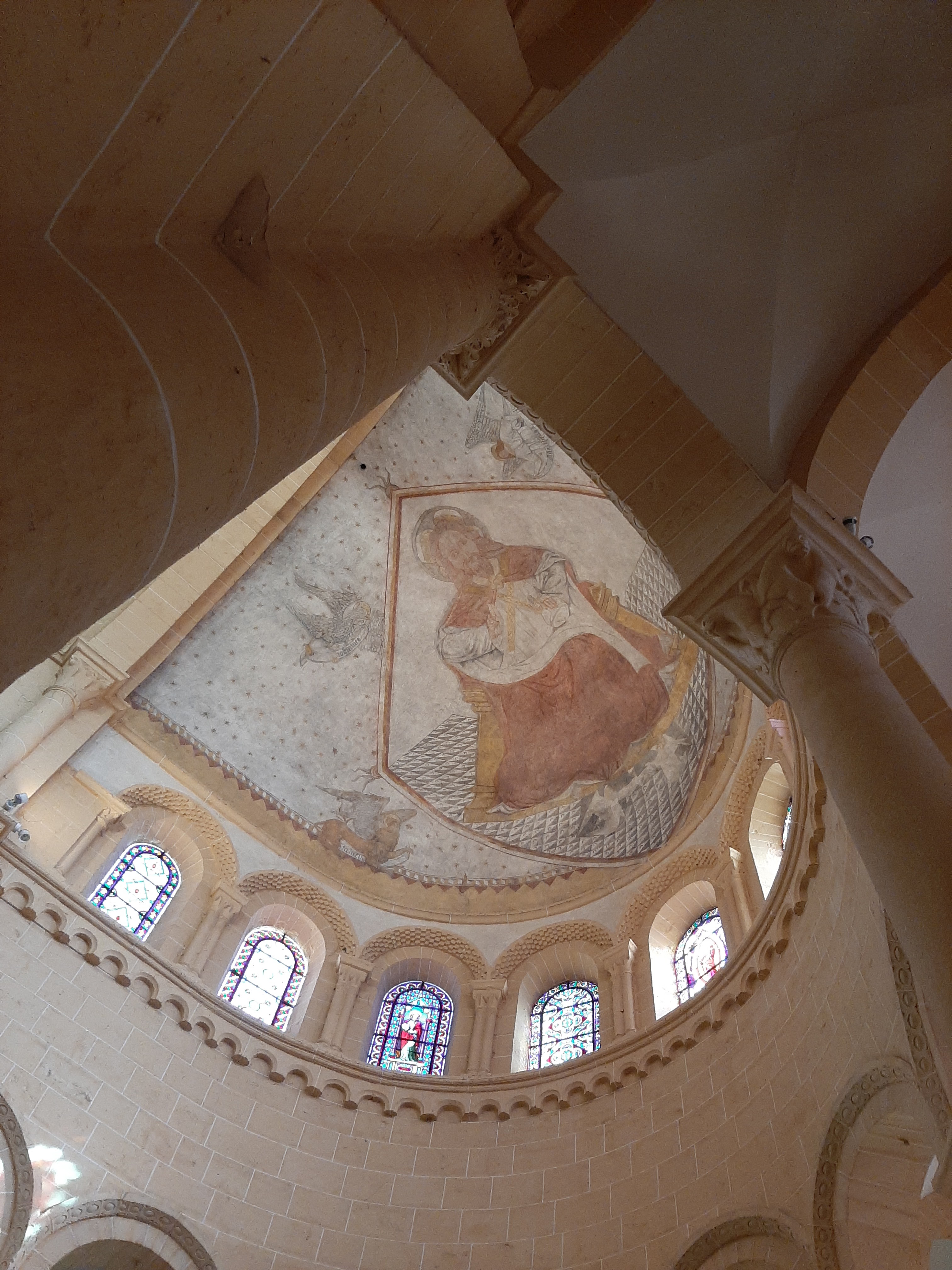 Les traits de peinture imitant la séparation des pierres sur les piliers ne sont pas du plus bel effet. La voûte de la coupole semble se dégrader. Un nettoyage du chevet ne serait pas superflu et rendrait toute sa majesté à ce superbe monument de style roman clunisien. Dommage de ne pas trouver un ouvrage sur l'architecture de cet édifice à l'intérieur de la basilique. Il est vrai que l'Office de Tourisme est à proximité.