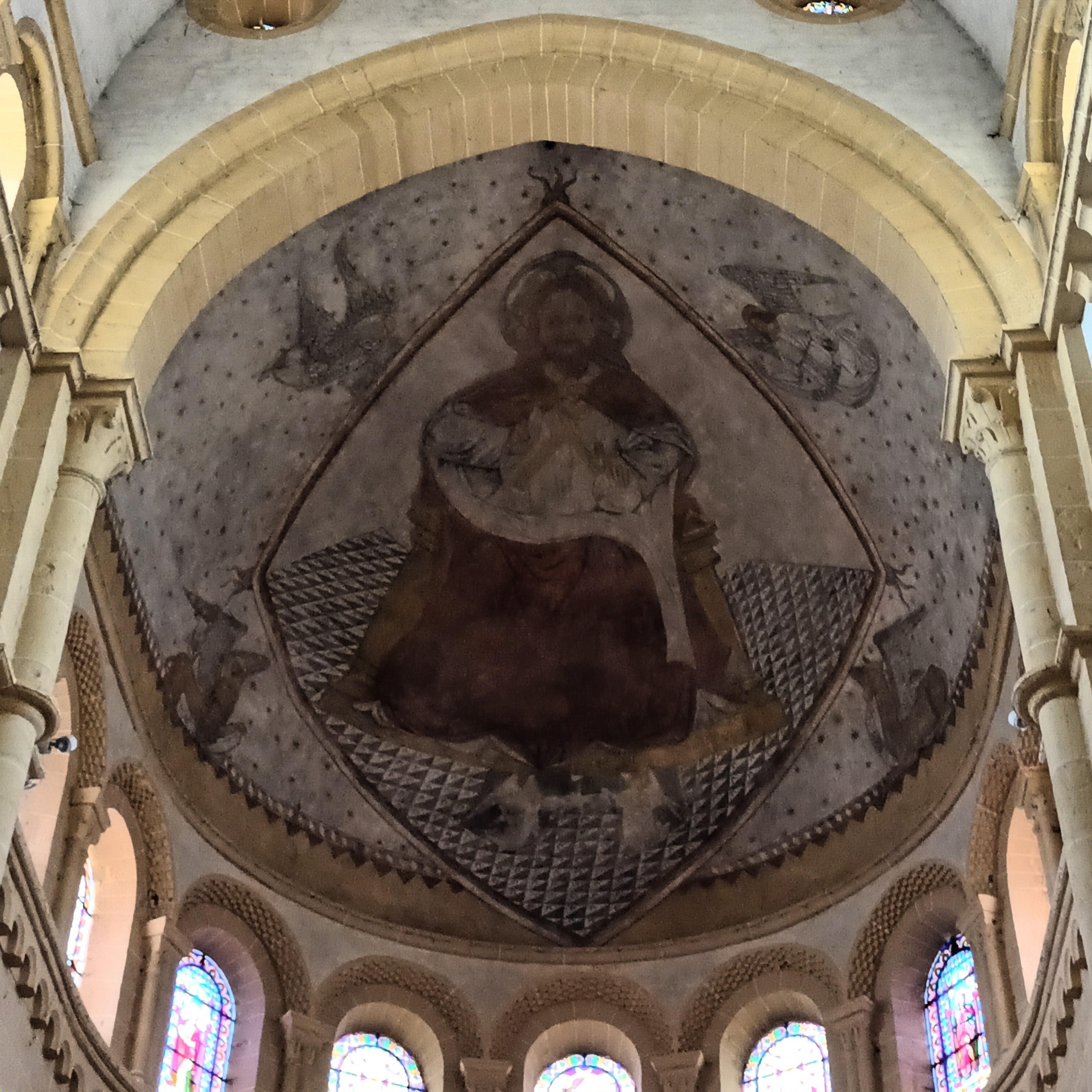 Jolie basilique romane restaurée au 19e siècle avec une représentation impressionnante et touchante du Christ peinte sur une des voûtes du chœur. Lieu de prière apaisant proche du cœur de Jésus.