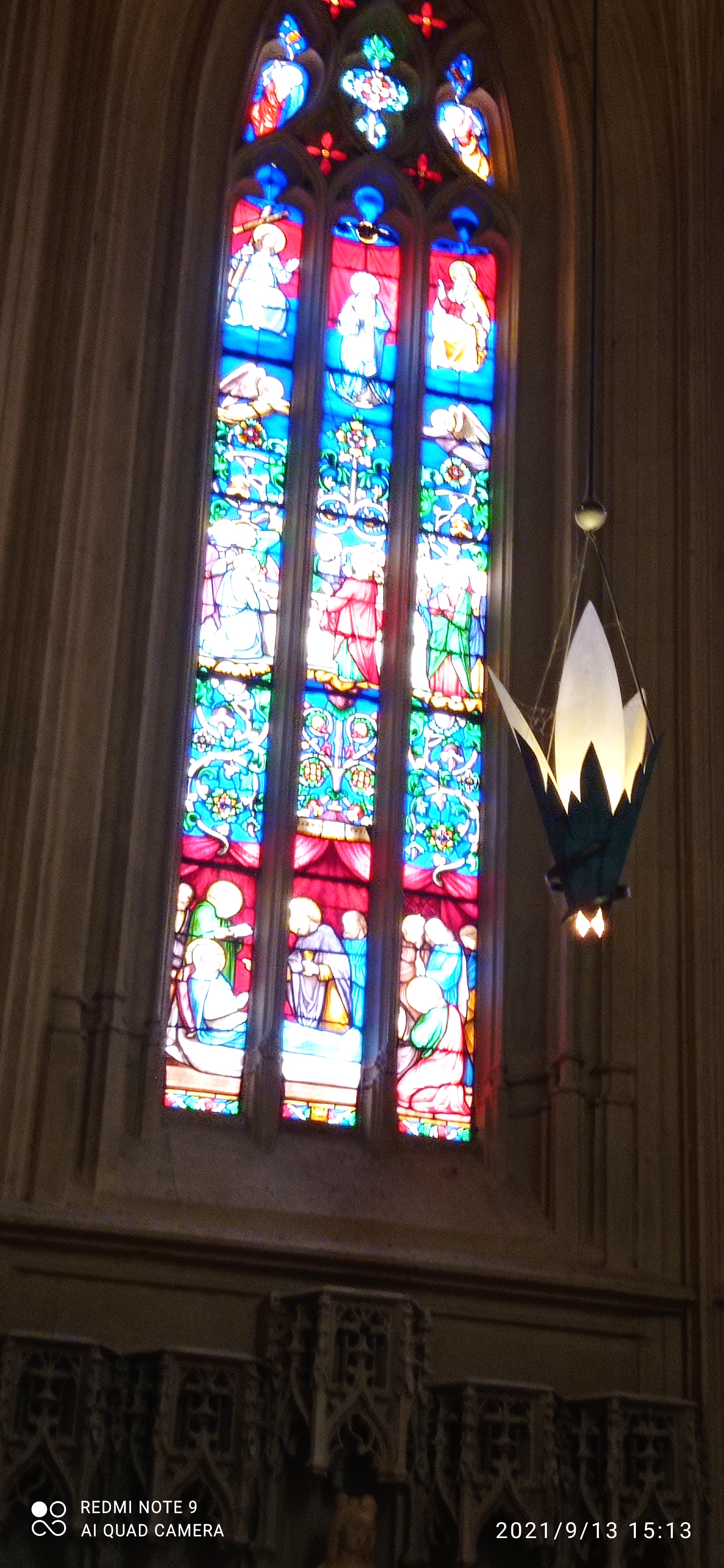 Magnifique basilique au bord de l'eau, splendide vitraux dans une charmante ville