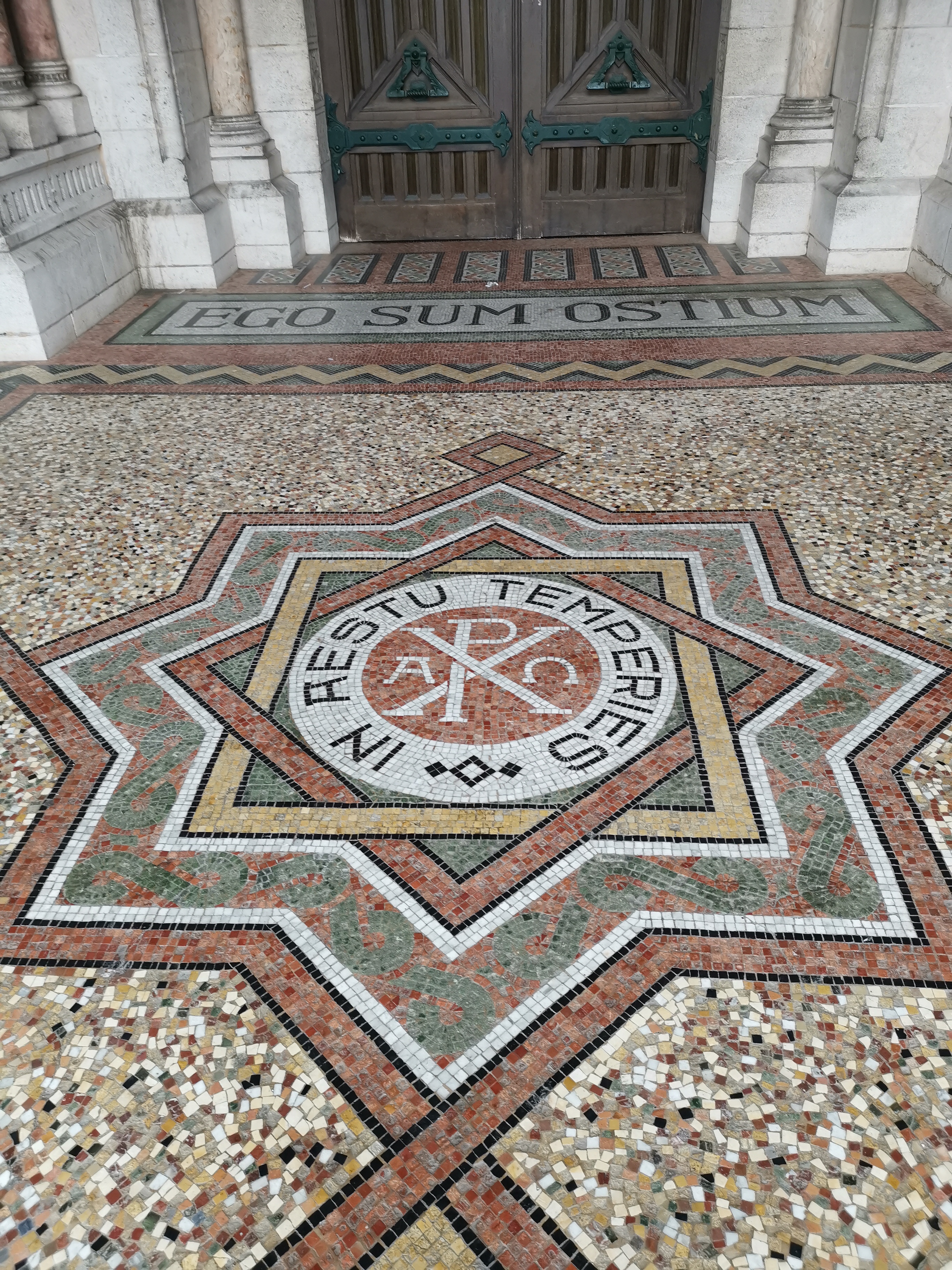 Très belle église avec un beau sol en mosaïque.