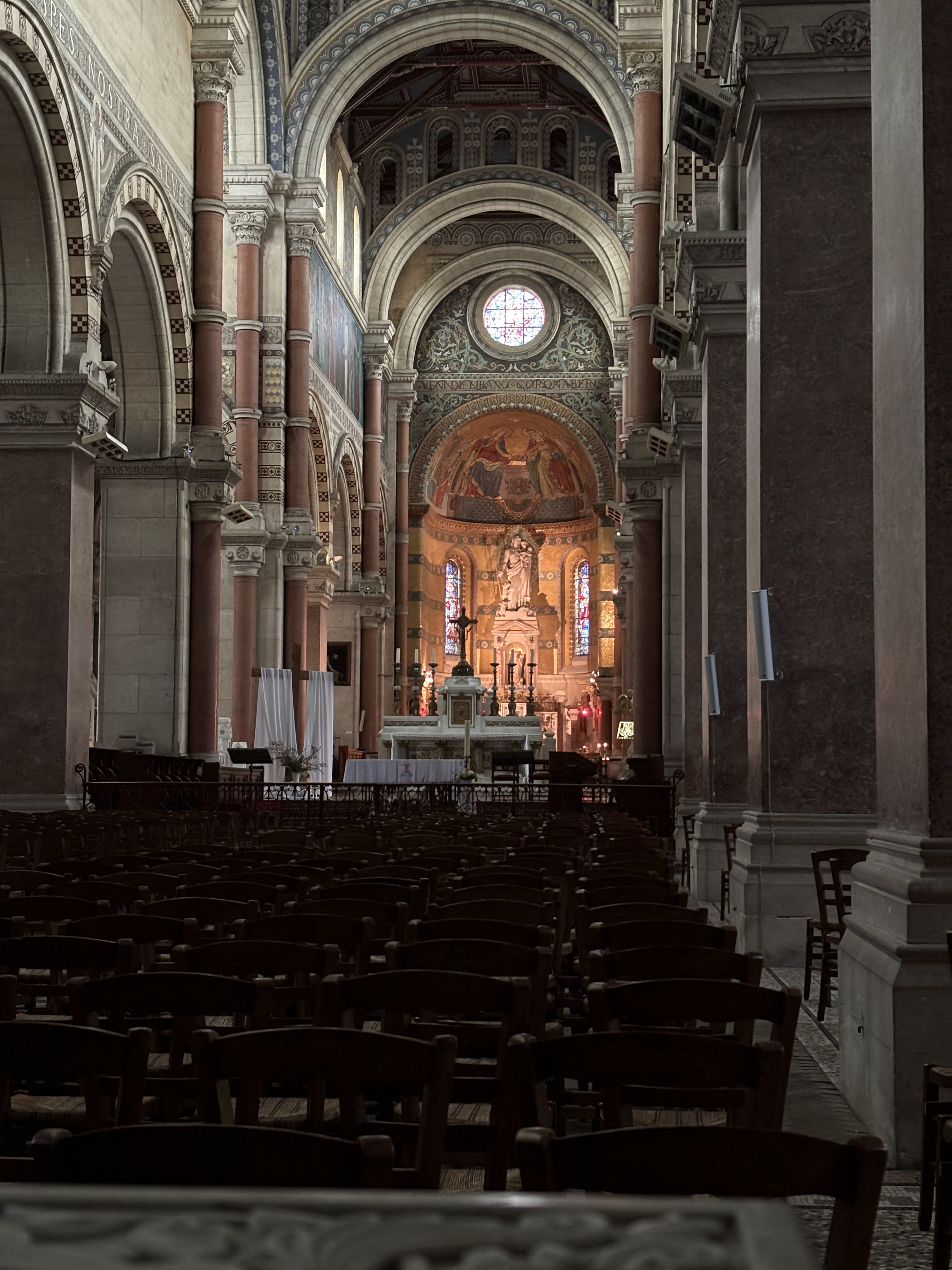 La basilique au dôme doré domine l'horizon vu de notre entrée du sud de Rouen, c'est un exotique donc très anti-gothique contre les délices architecturaux d'Amiens et de Rouen. C'est magnifique mais déplacé les arches de style oriental byzantin, son architecte noyé dans une myriade de styles entassés dans un seul chef-d'œuvre.