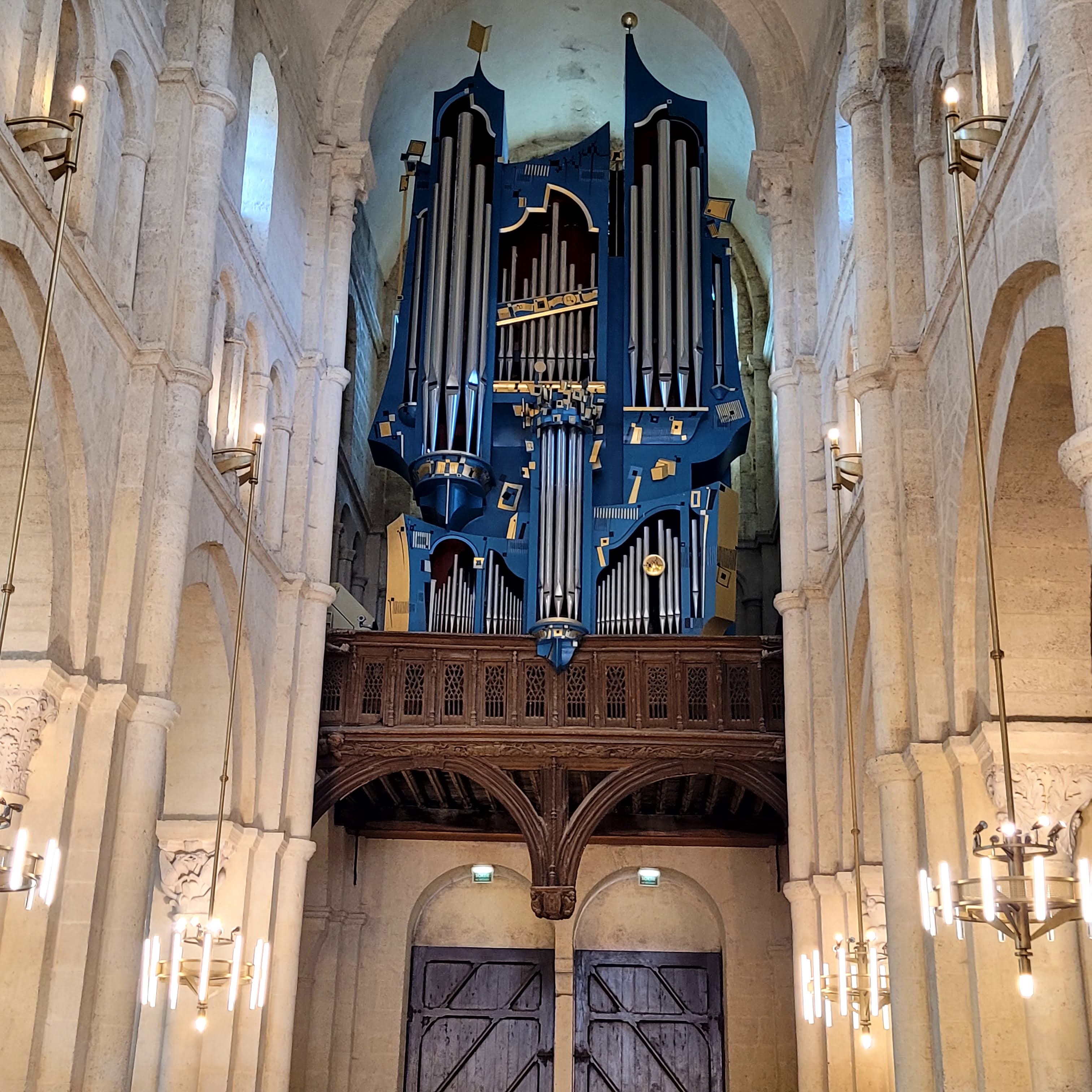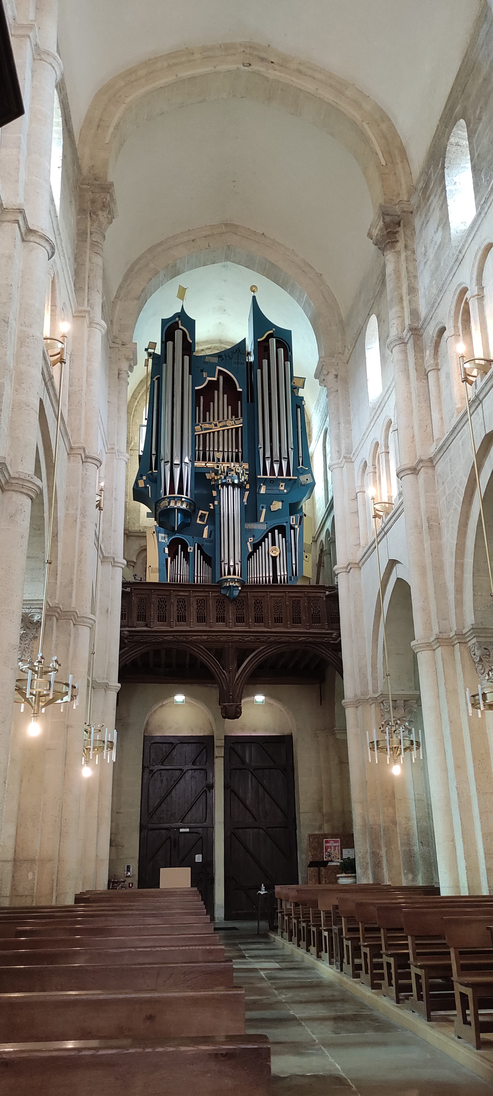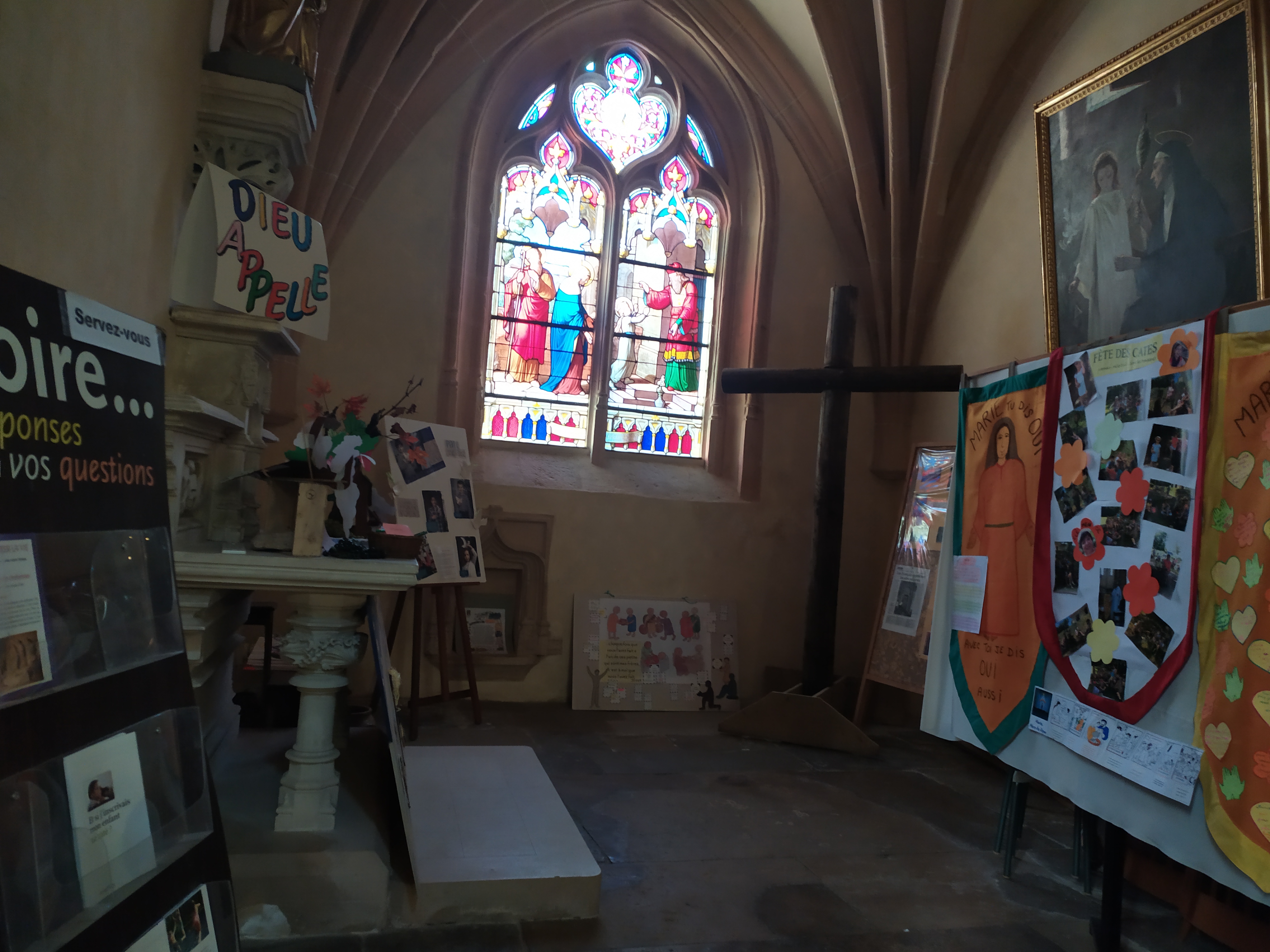 Bonjour. Belle église un magnifique orgue , une maquette de l église, des dessins des enfants, une petite salle sur le côté en entrant à gauche avec un film qui parle de l église., vitraux très beaux.