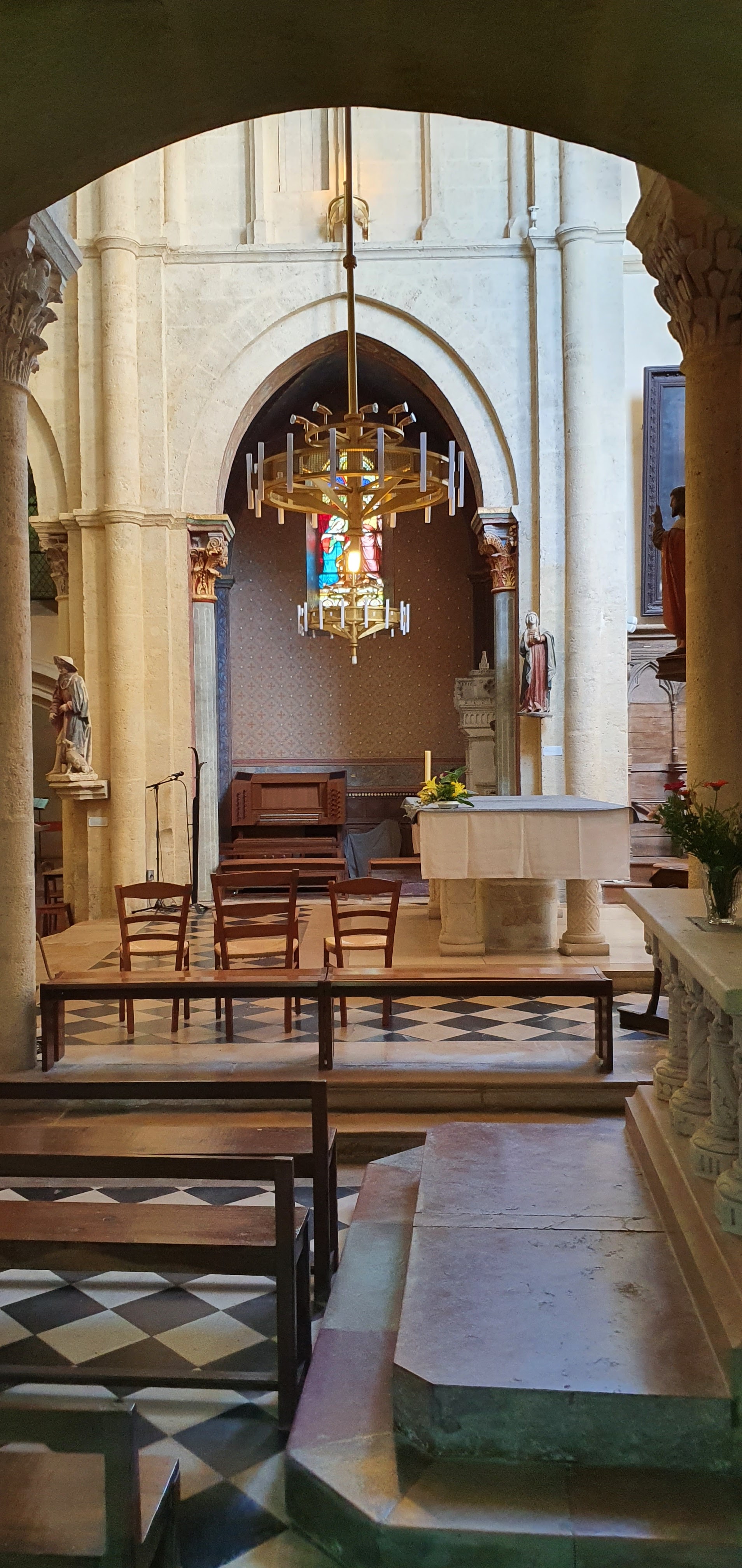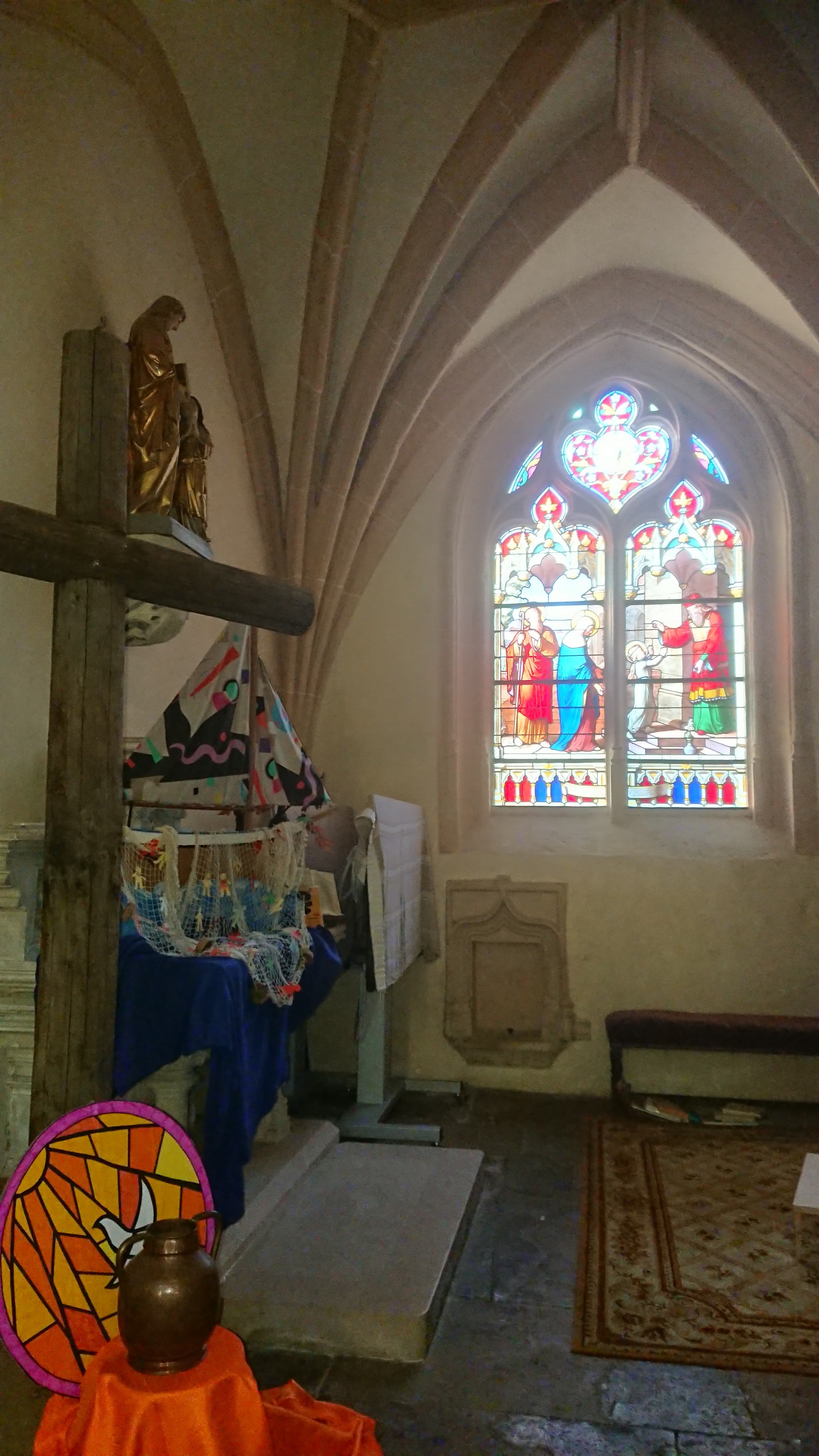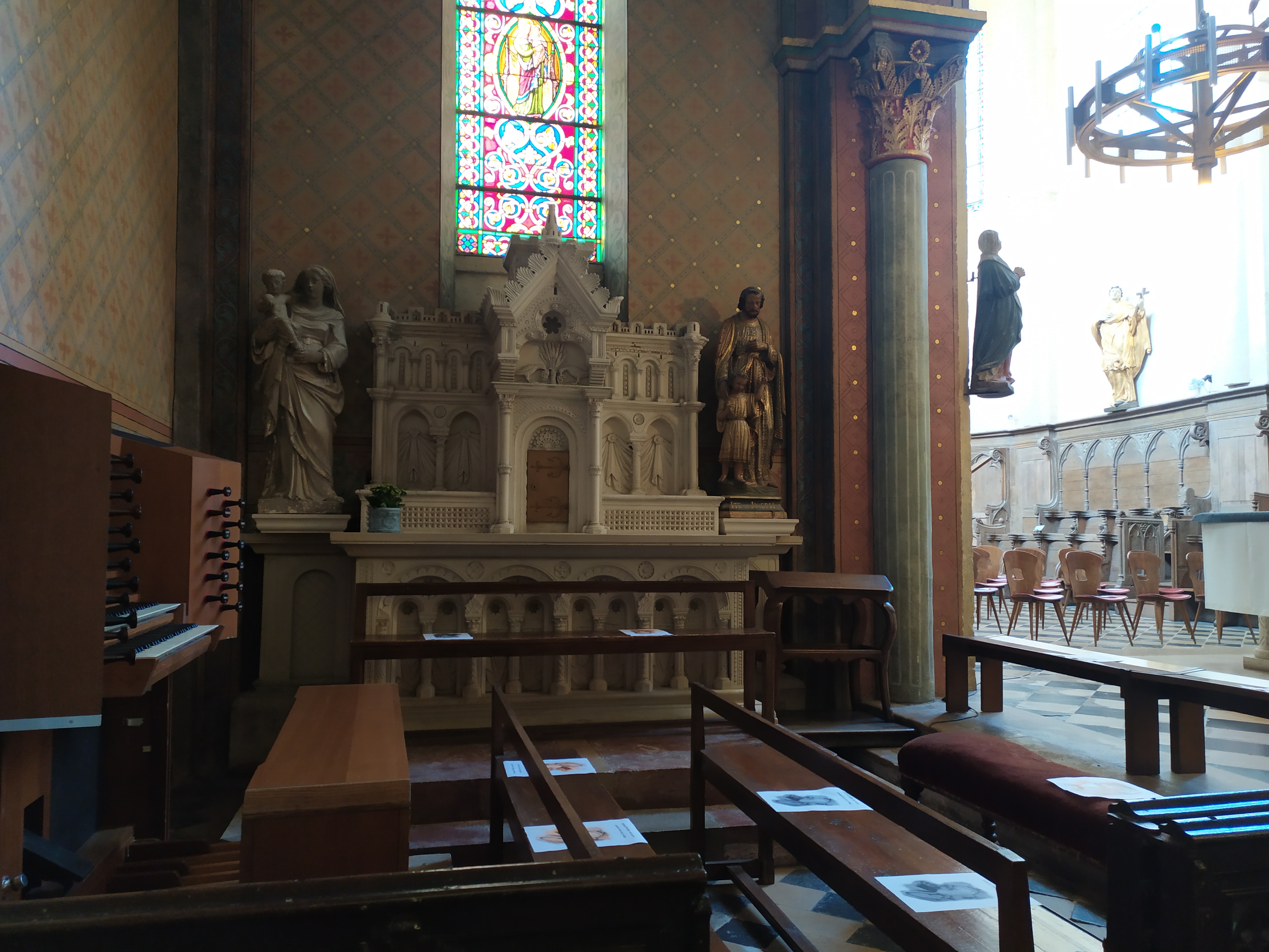 Bonjour. Belle église un magnifique orgue , une maquette de l église, des dessins des enfants, une petite salle sur le côté en entrant à gauche avec un film qui parle de l église., vitraux très beaux.