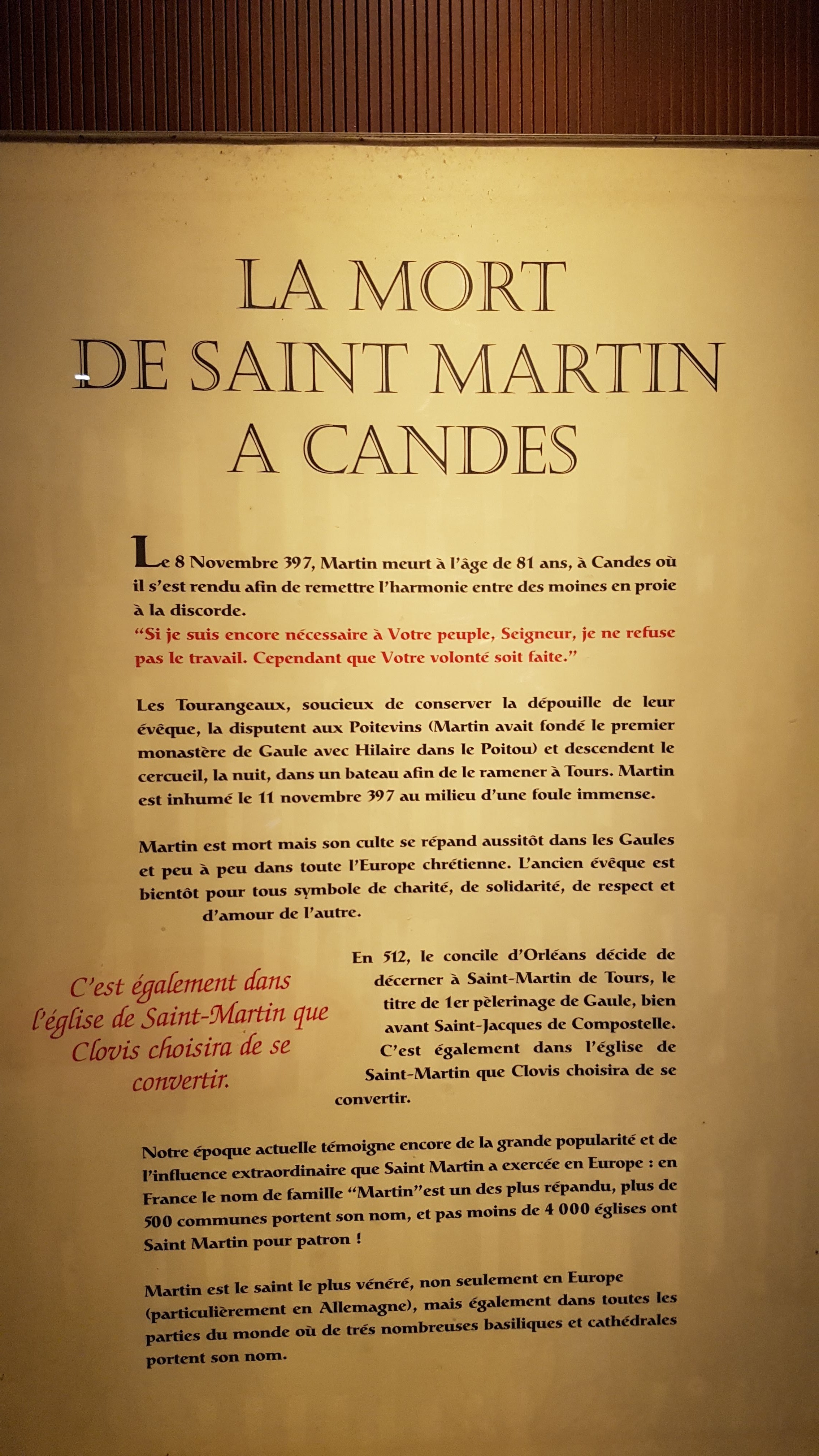 C'était agréable de voir le tombeau de Saint Martin. Je vous recommande d'y faire une visite si vous êtes à Tours.