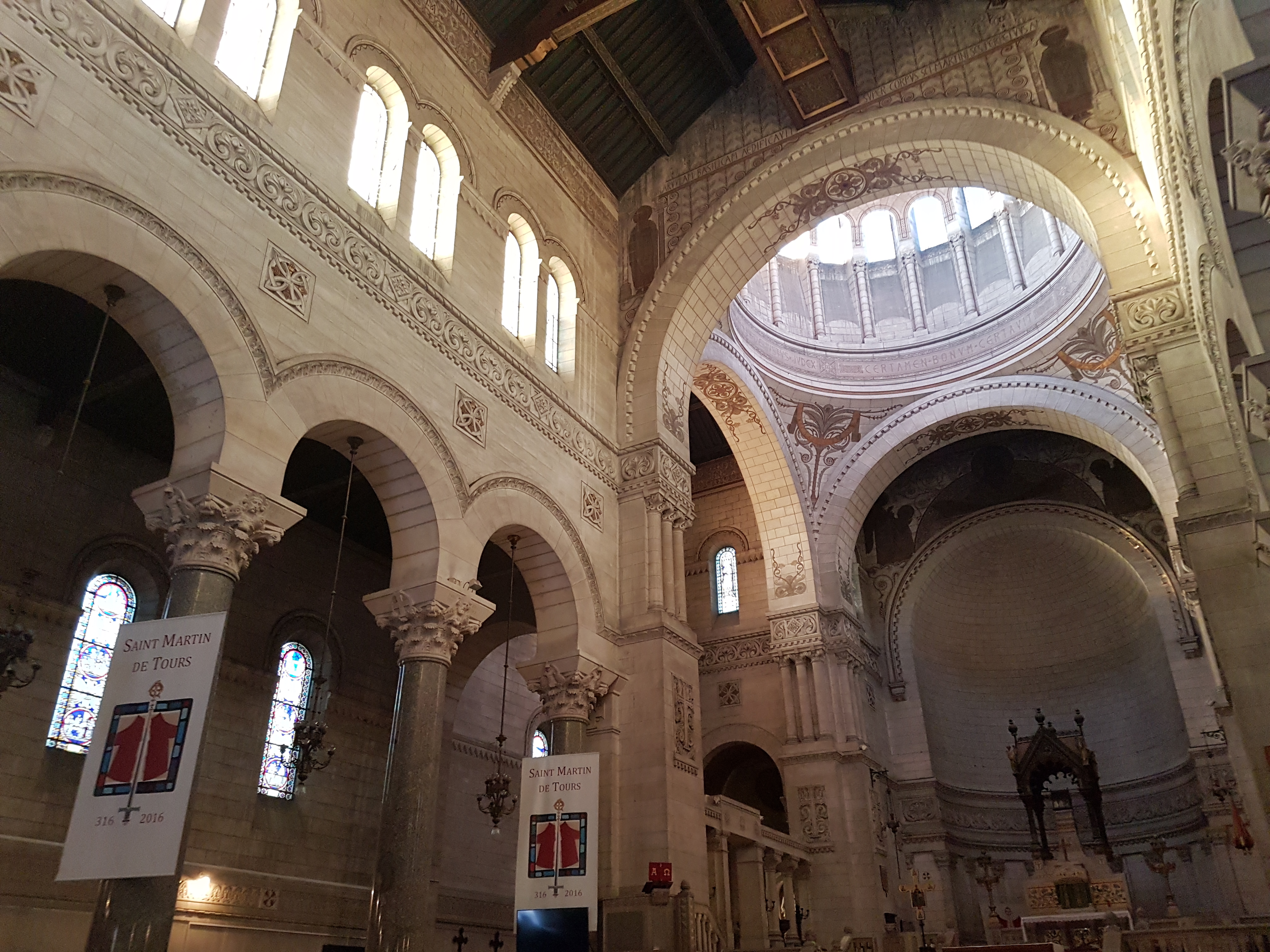 Encore une œuvre de notre architecte tourangeau Victor Laloux à qui l'on doit déjà l'hôtel de Ville, la façade de la gare de Tours et notamment l'ancienne gare de Paris devenu Le musée d'Orsay. La particularité de cette basilique néo byzantine et que son chœur se situe à l'endroit même de l'ancienne basilique Saint Martin d'ailleurs nous pouvons voir son reliquaire en descendant la dizaine de marches pour atteindre la crypte. Saint Martin a été descendu de son dôme puis replacé après une restauration complète de la statue et du dôme. L'intérieur représente un Christ tout en mosaïque. Un bel endroit.