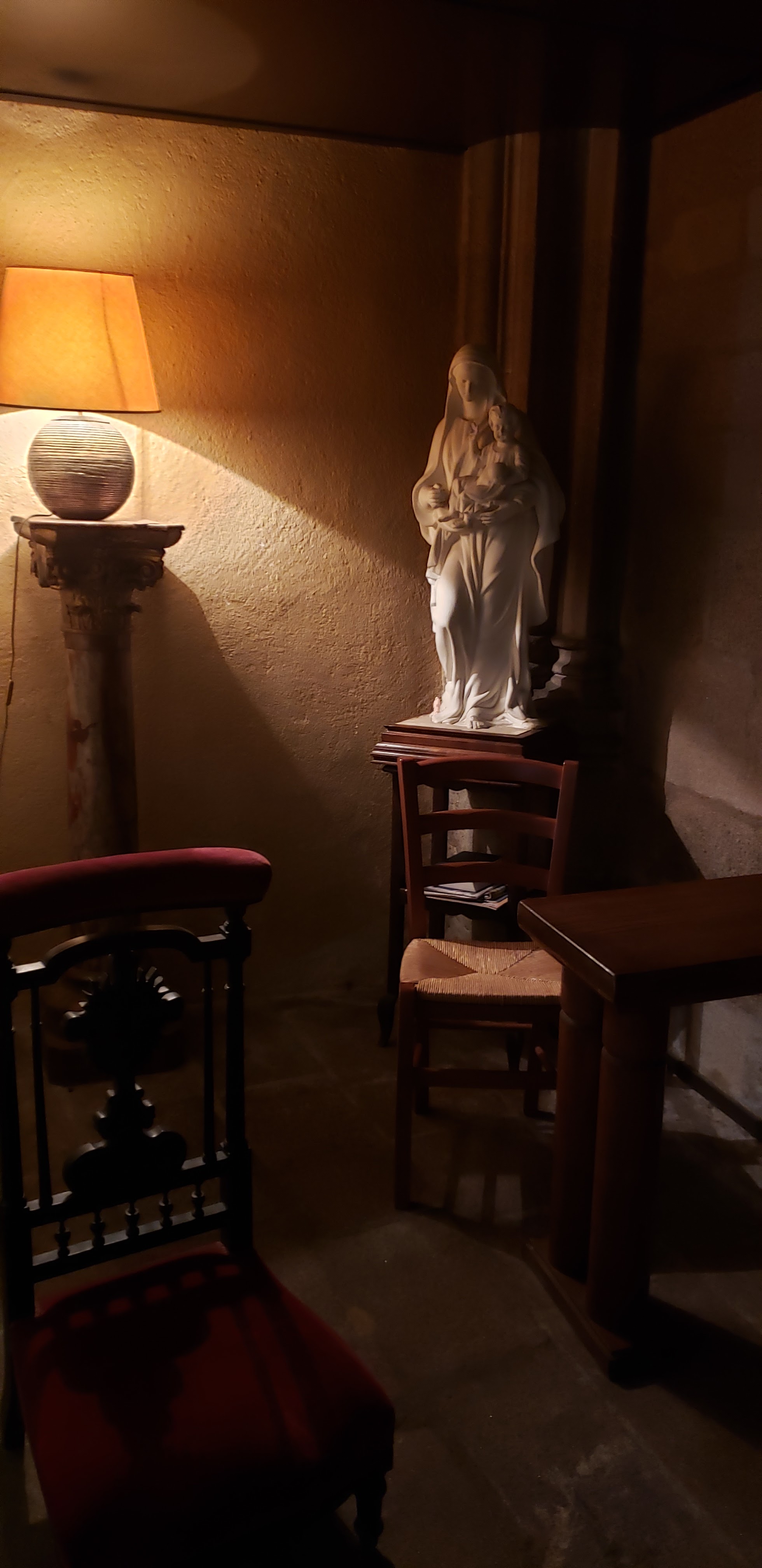 Endroit calme, apaisant, mis à part le bruit ou le devisagement d'autre personne et il est dommage que le prêtre ne sois pas souvent la