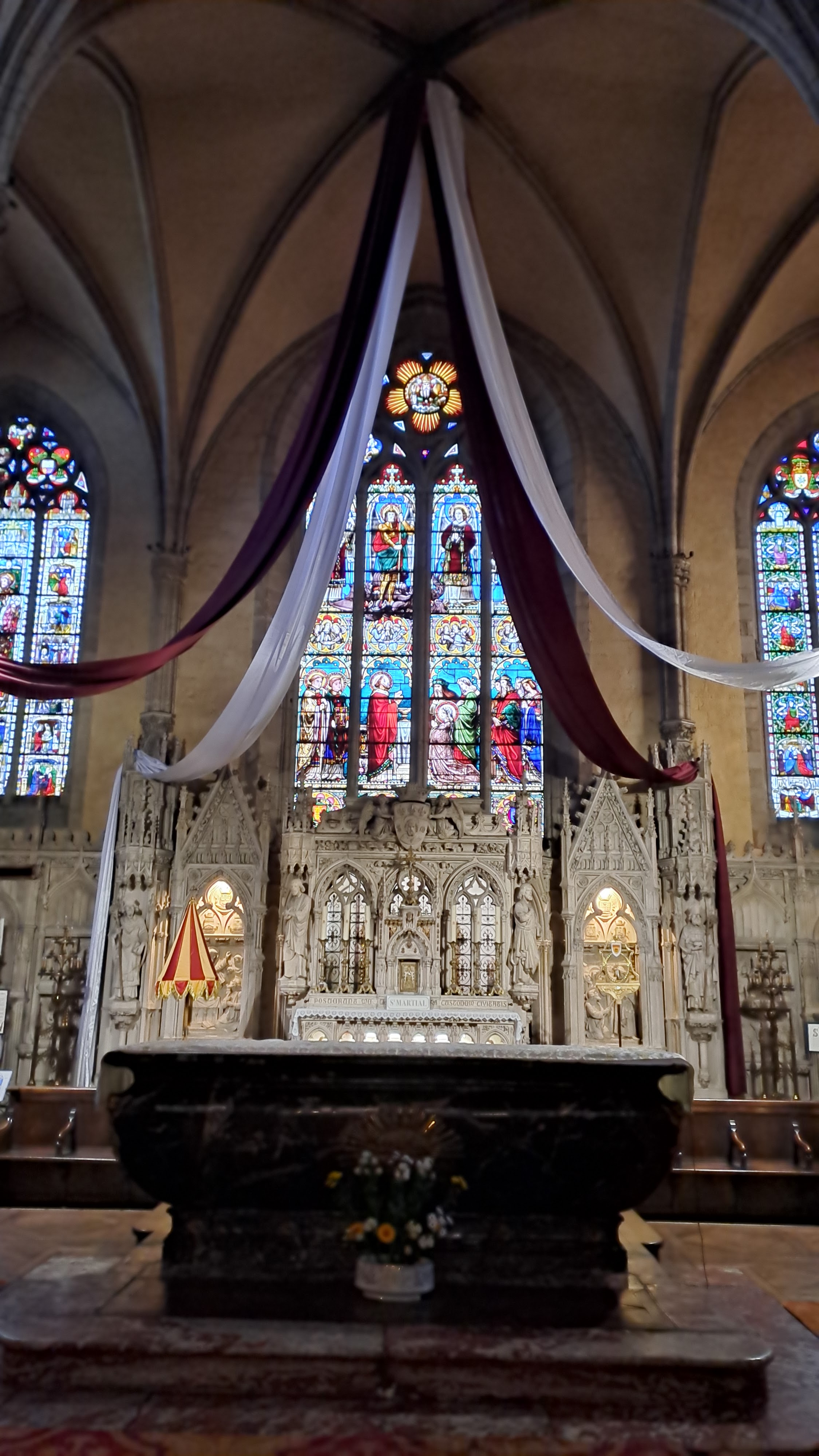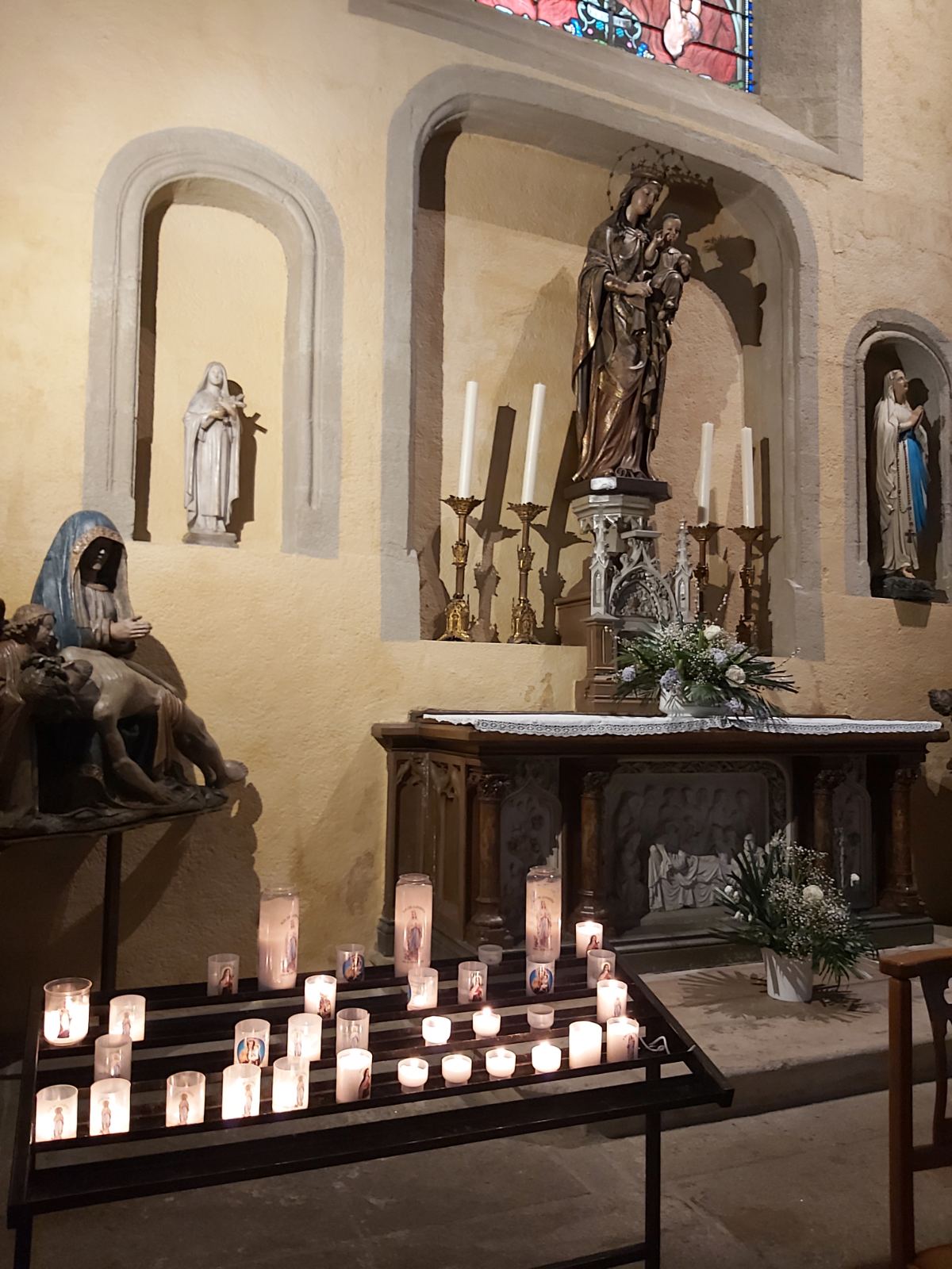 J ai beaucoup apprécié les vitraux, les reliques de 3 Saints dans un reliquaire sculpté magnifique