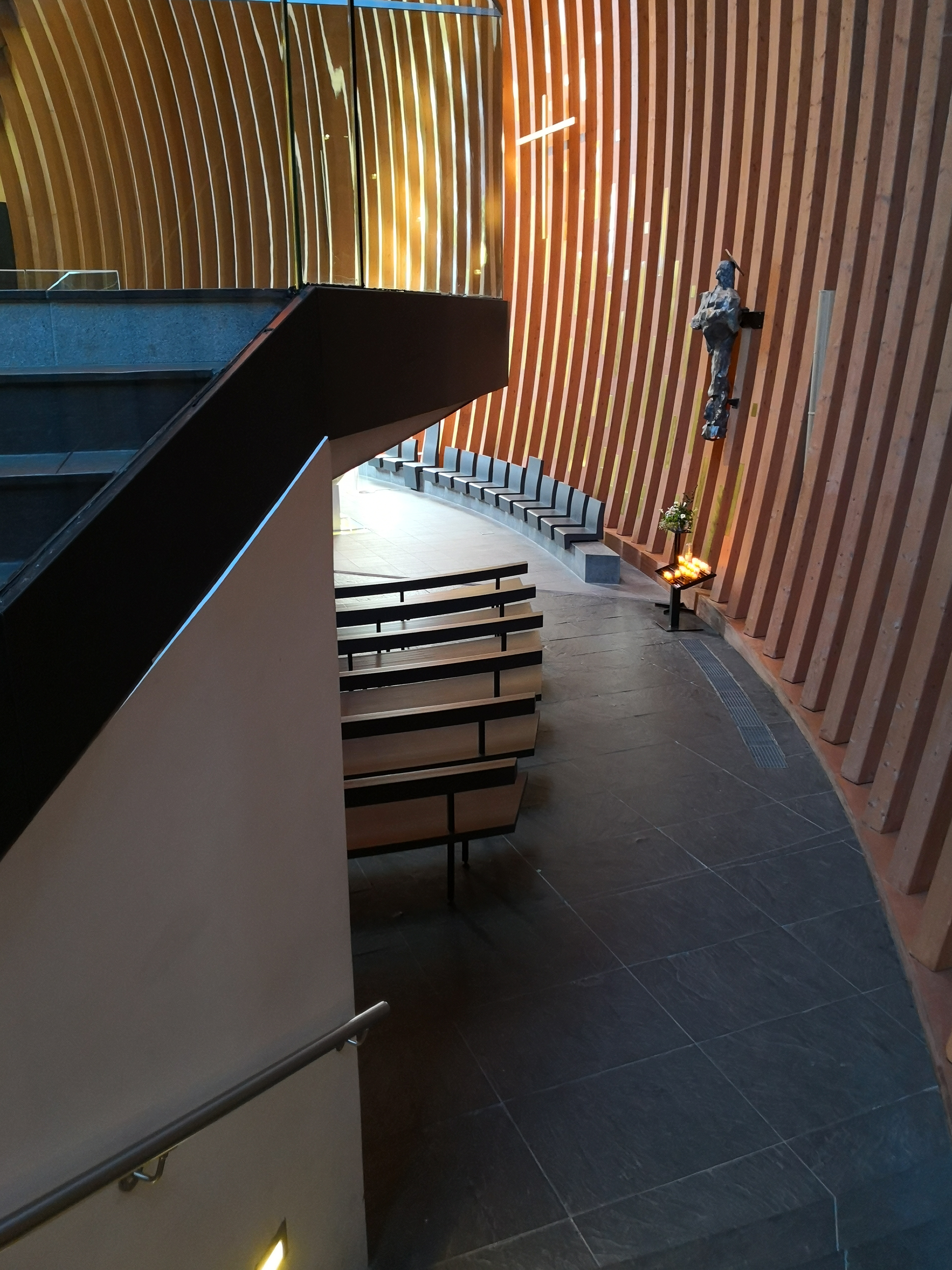 Un personnel très gentil sans parler de l’architecture incroyable. L’intérieur est d’une beauté et d’une précision à couper le souffle et cela donne un réel contraste avec les églises non modernes. C’était une découverte et j’ai été conquis tout à été respecté, c’est épuré et la proximité avec l’autel rend l’expérience inoubliable. Amen