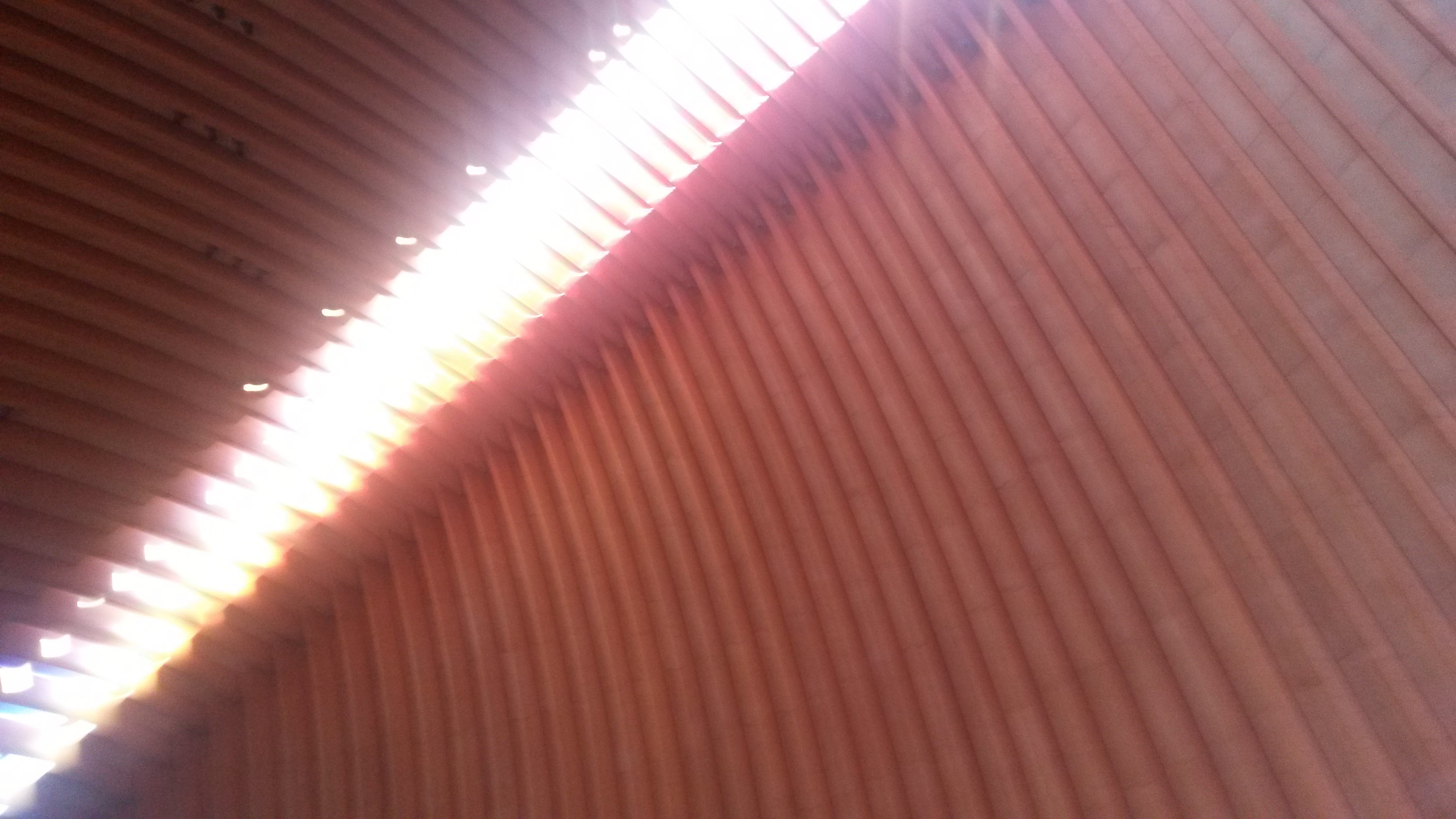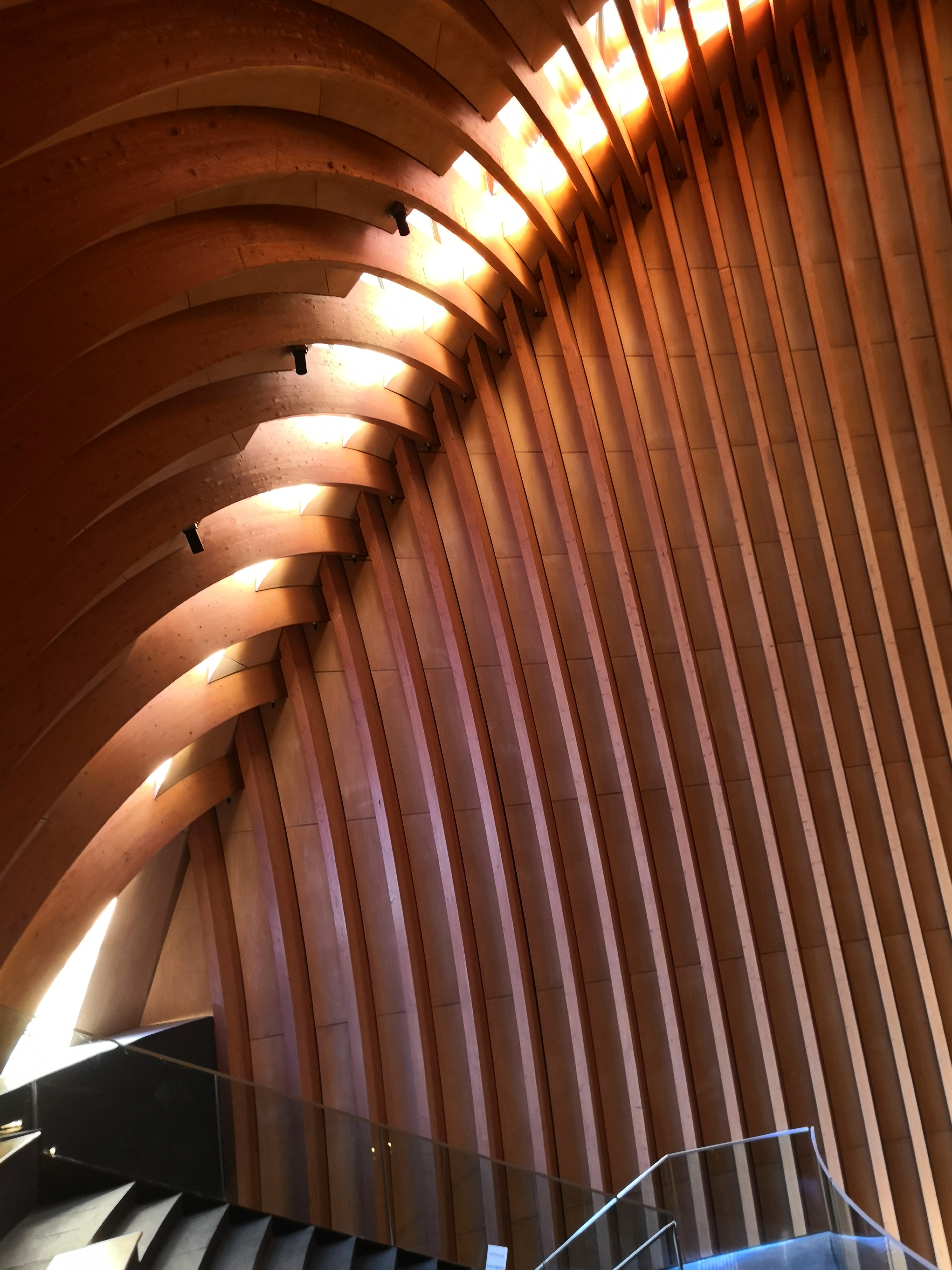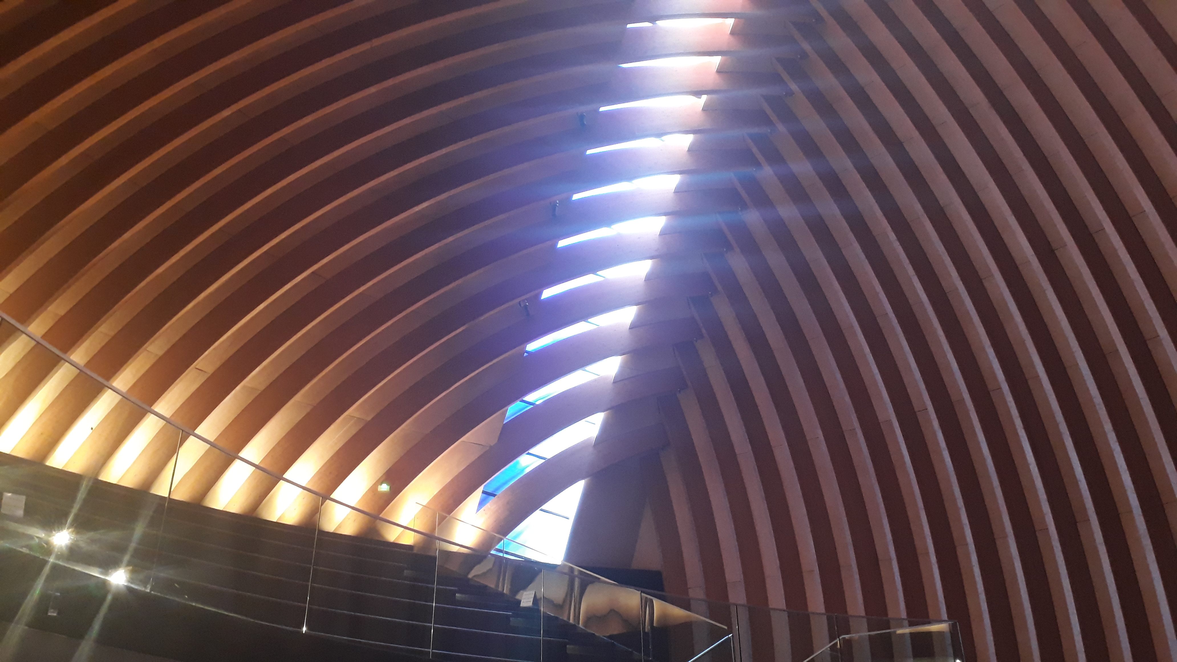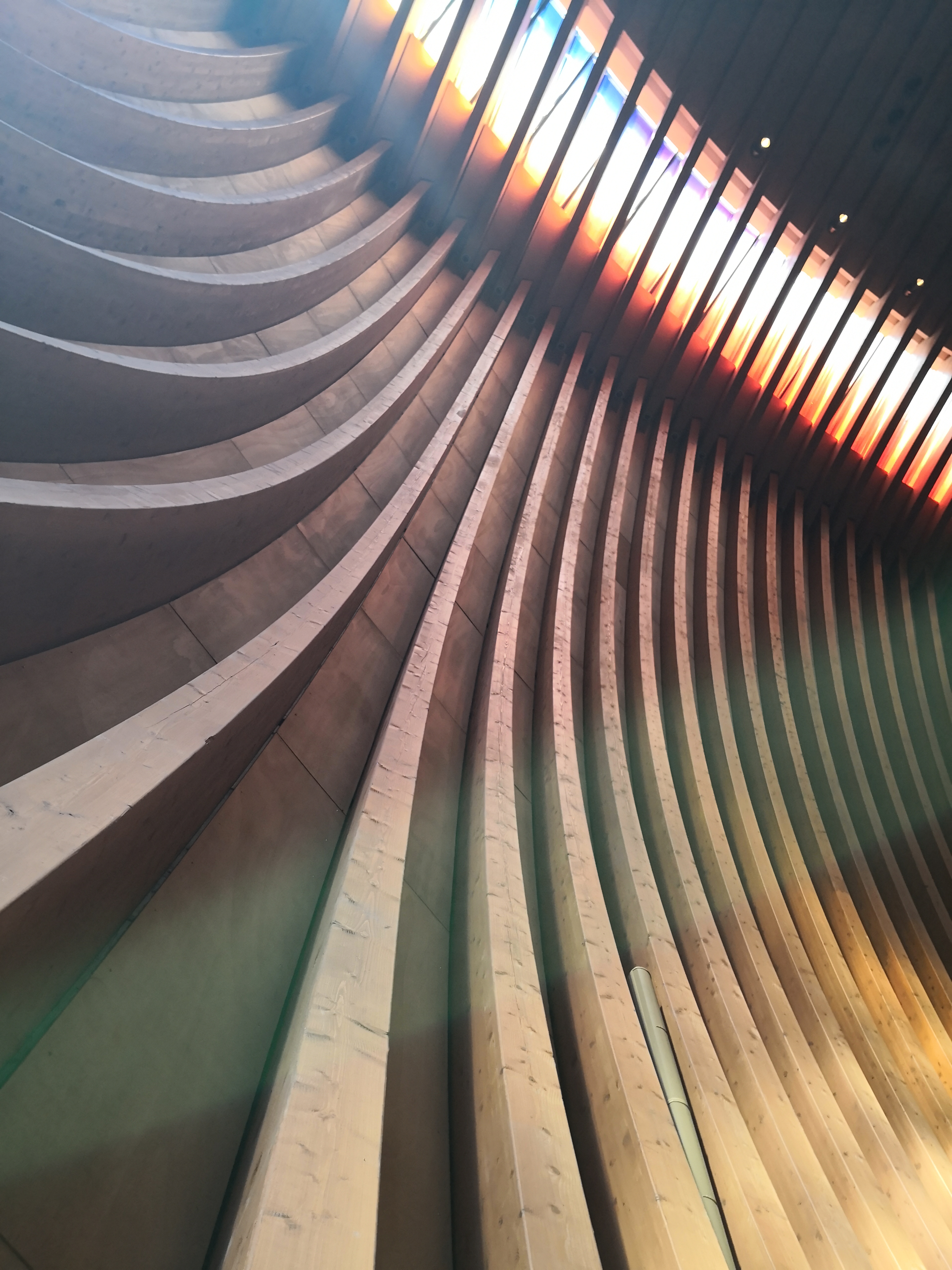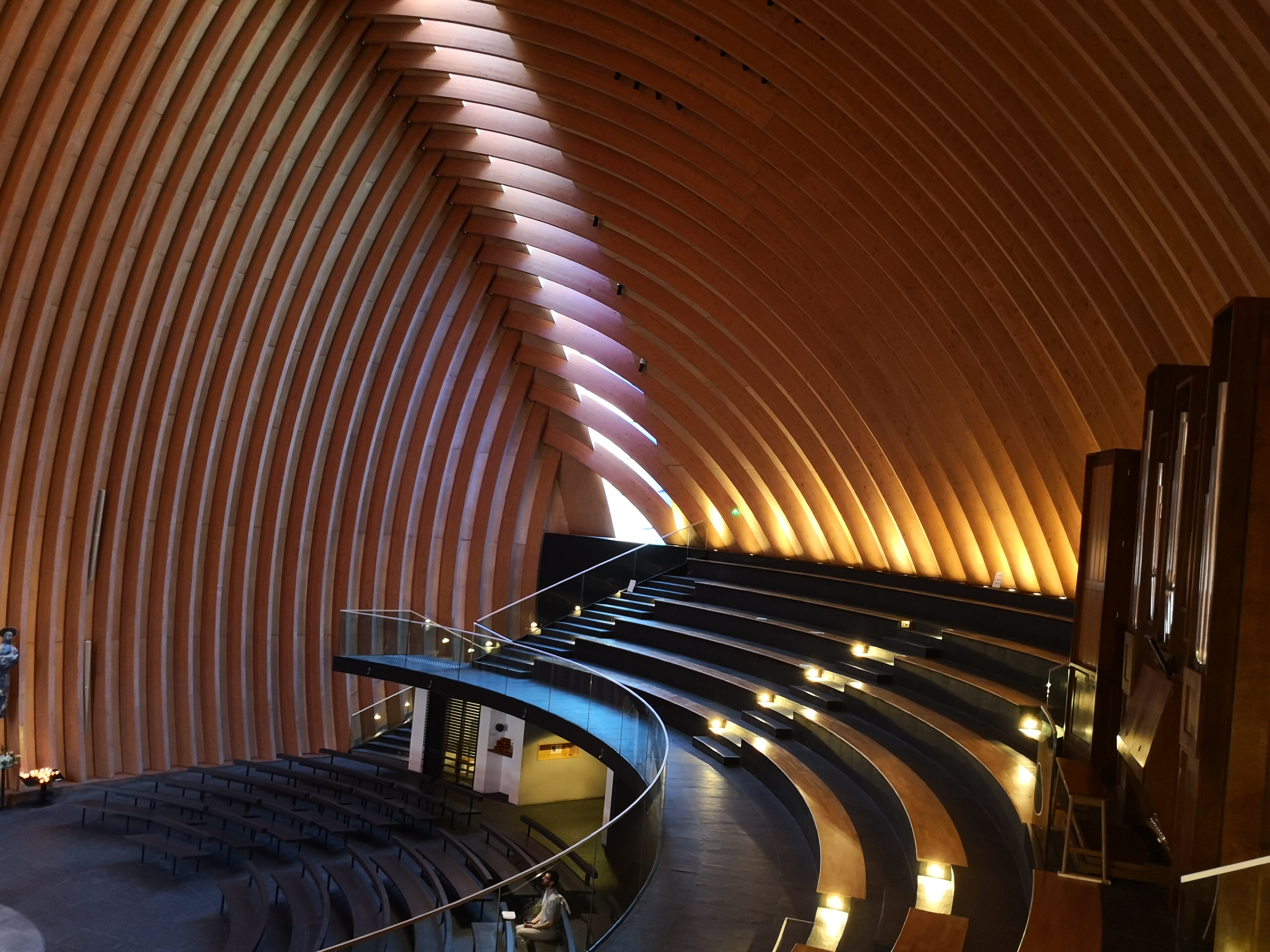 Architecture audacieuse pour la 1ere cathédrale du XXI siècle. Ces arches en bois se croisent tout en laissant passer la lumière pour nous inviter à la prière