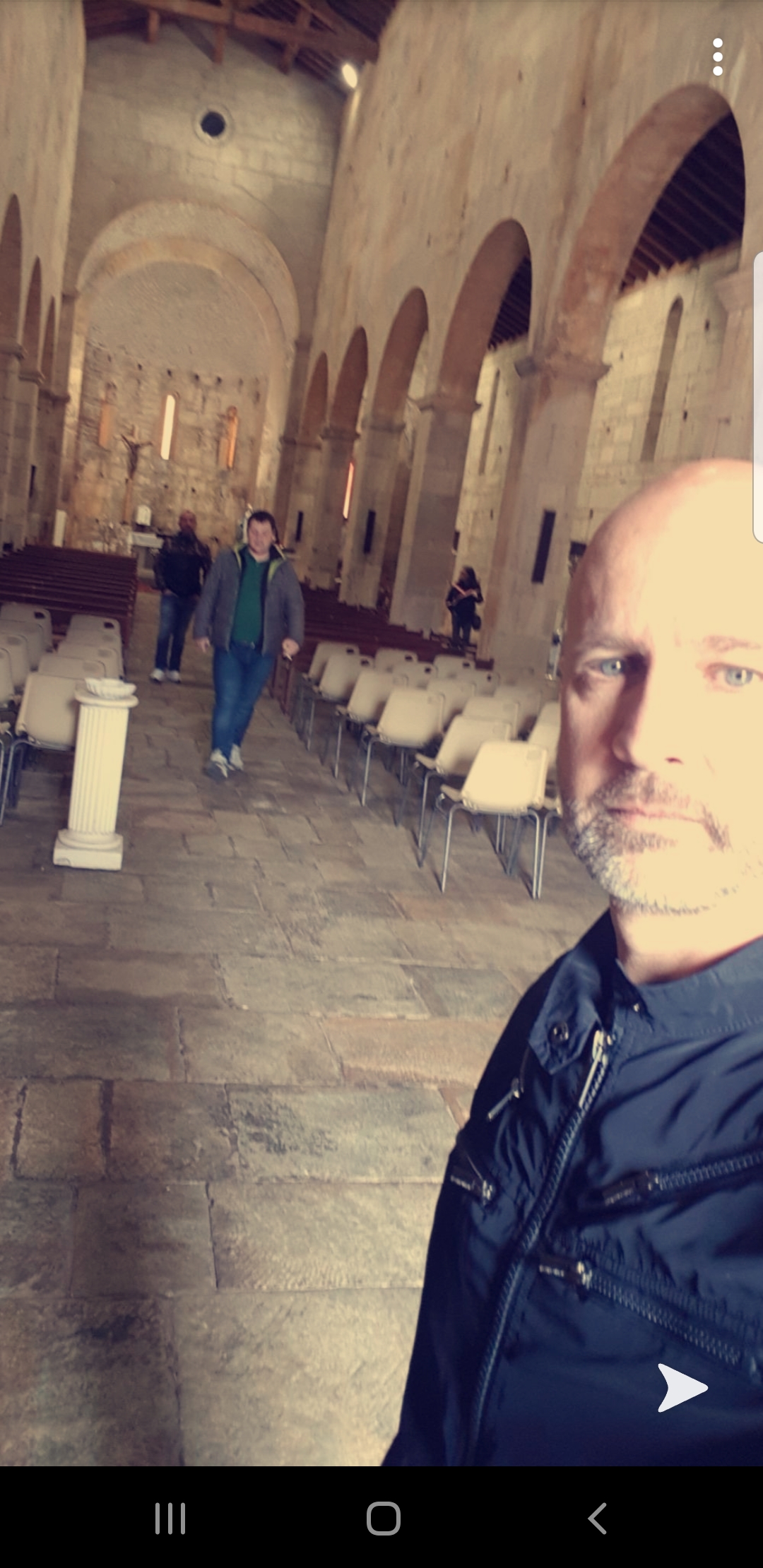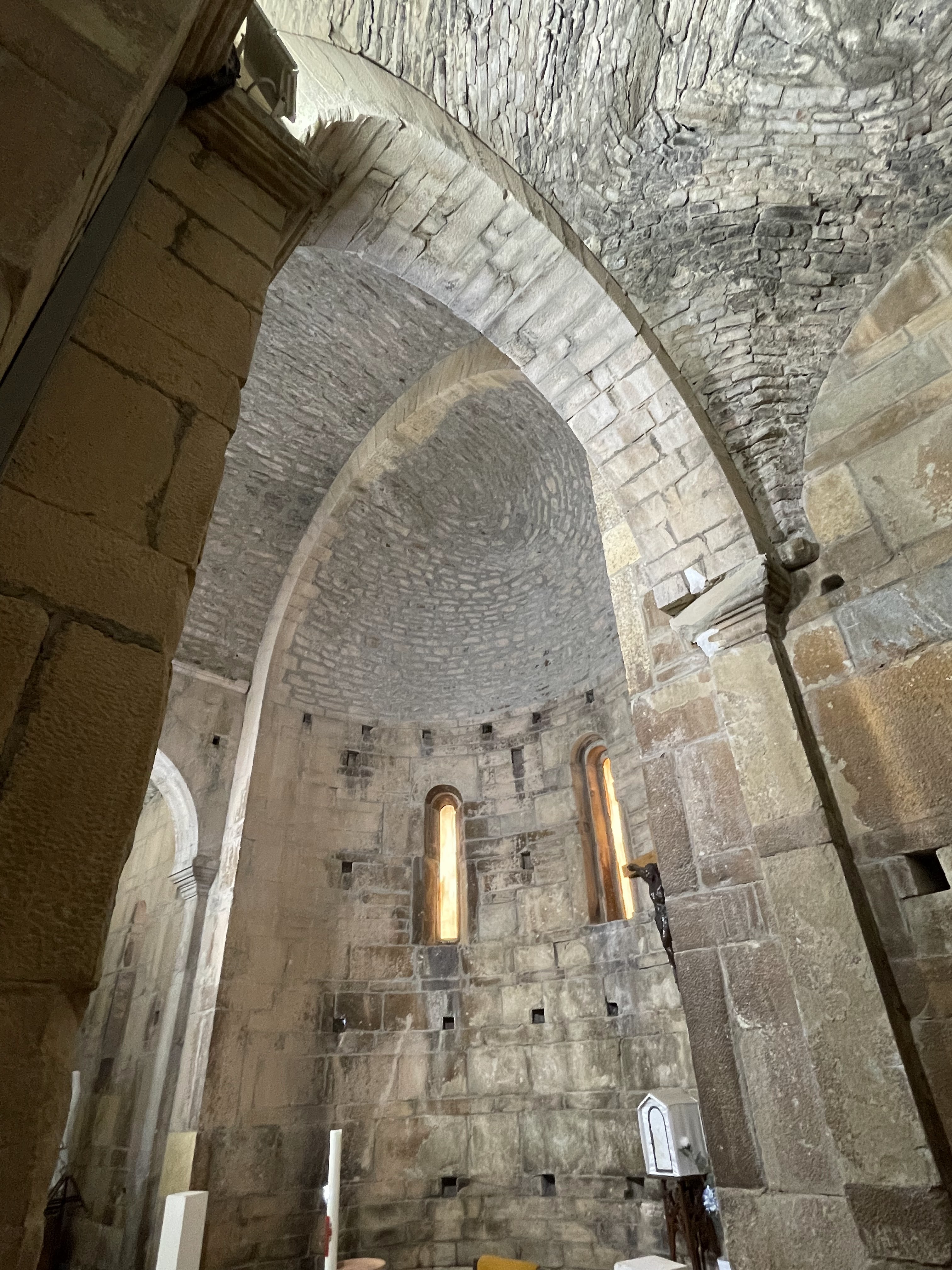 Une imposante bâtisse isolée sur la route T20, cette église romaine est bordée par un site archéologique. L'intérieur est lumineux comparé au gris vu de l'extérieur. 👍 了不起!