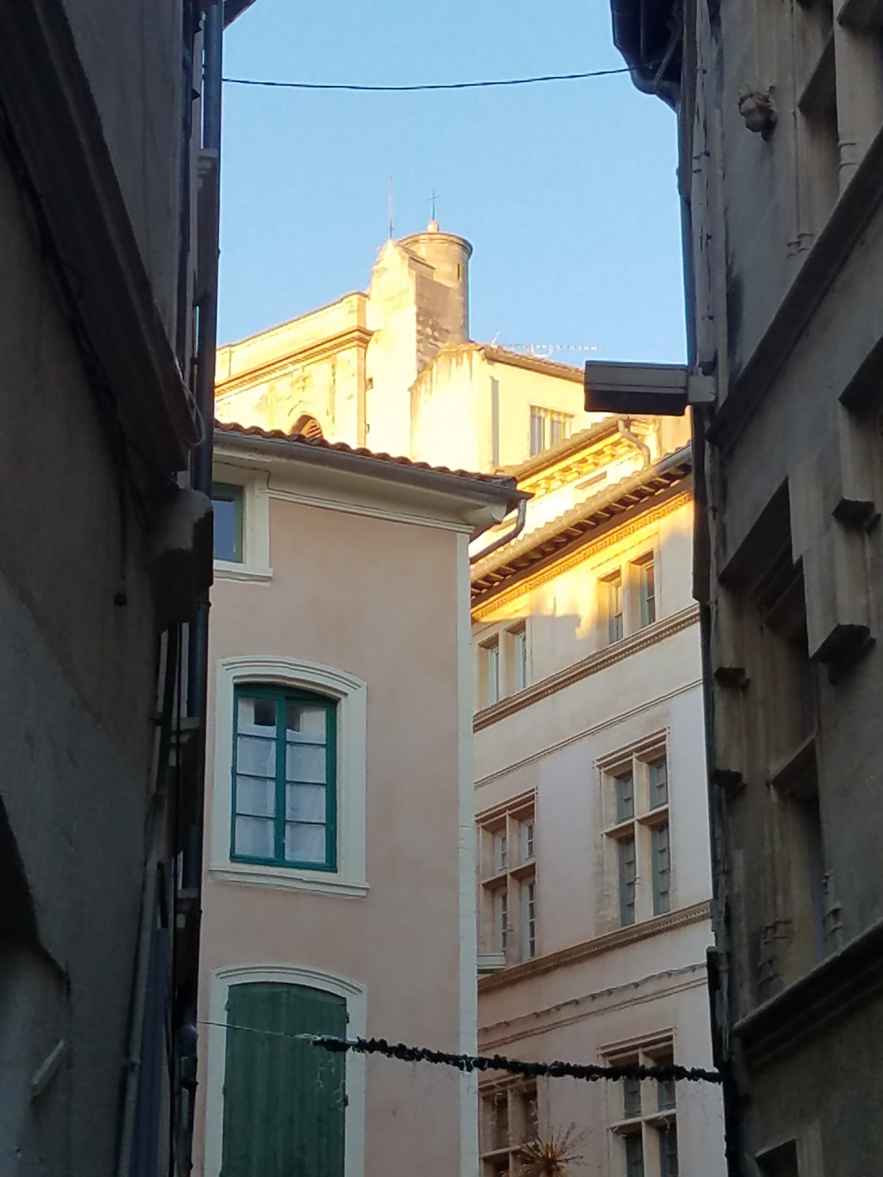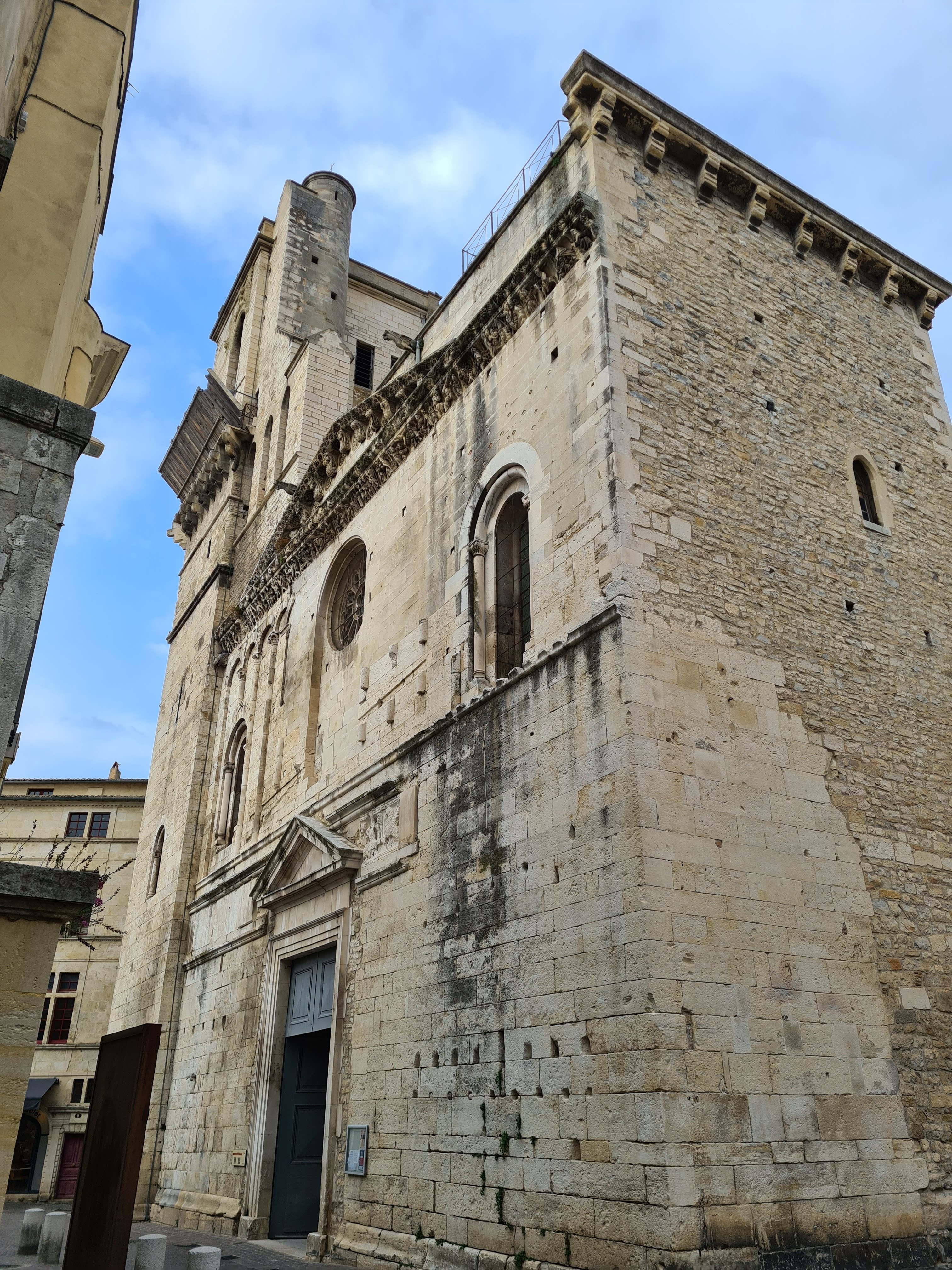 Dans les dédales des ruelles étroites du cœur de Nîmes, il faut vraiment faire attention pour découvrir cette Cathédrale dont la façade se confond presque au milieu des autres car l'étroitesse de cette ruelle ne nous fait pas imaginer qu'une telle église s'élève précisément là et visitable évidemment.
