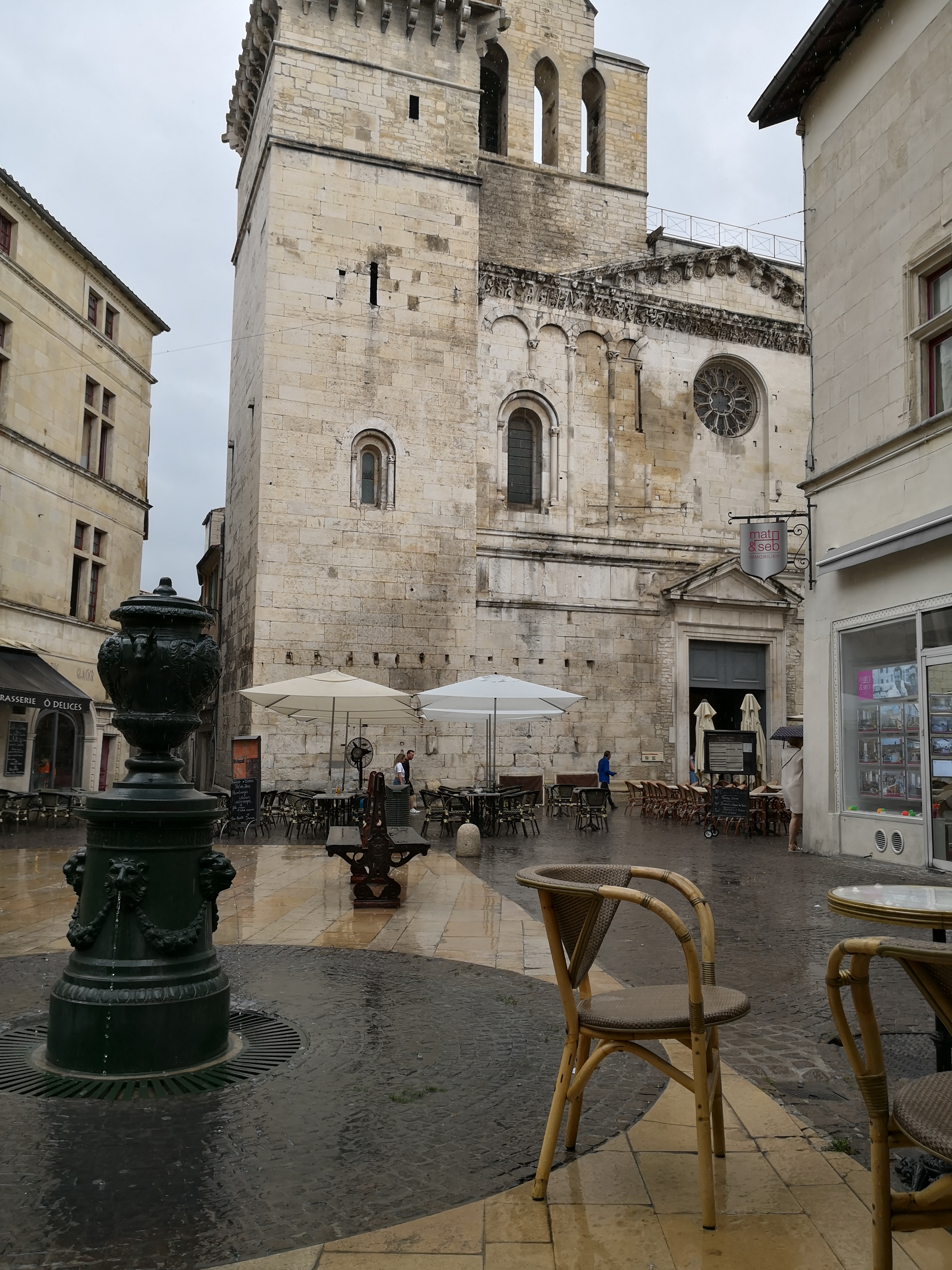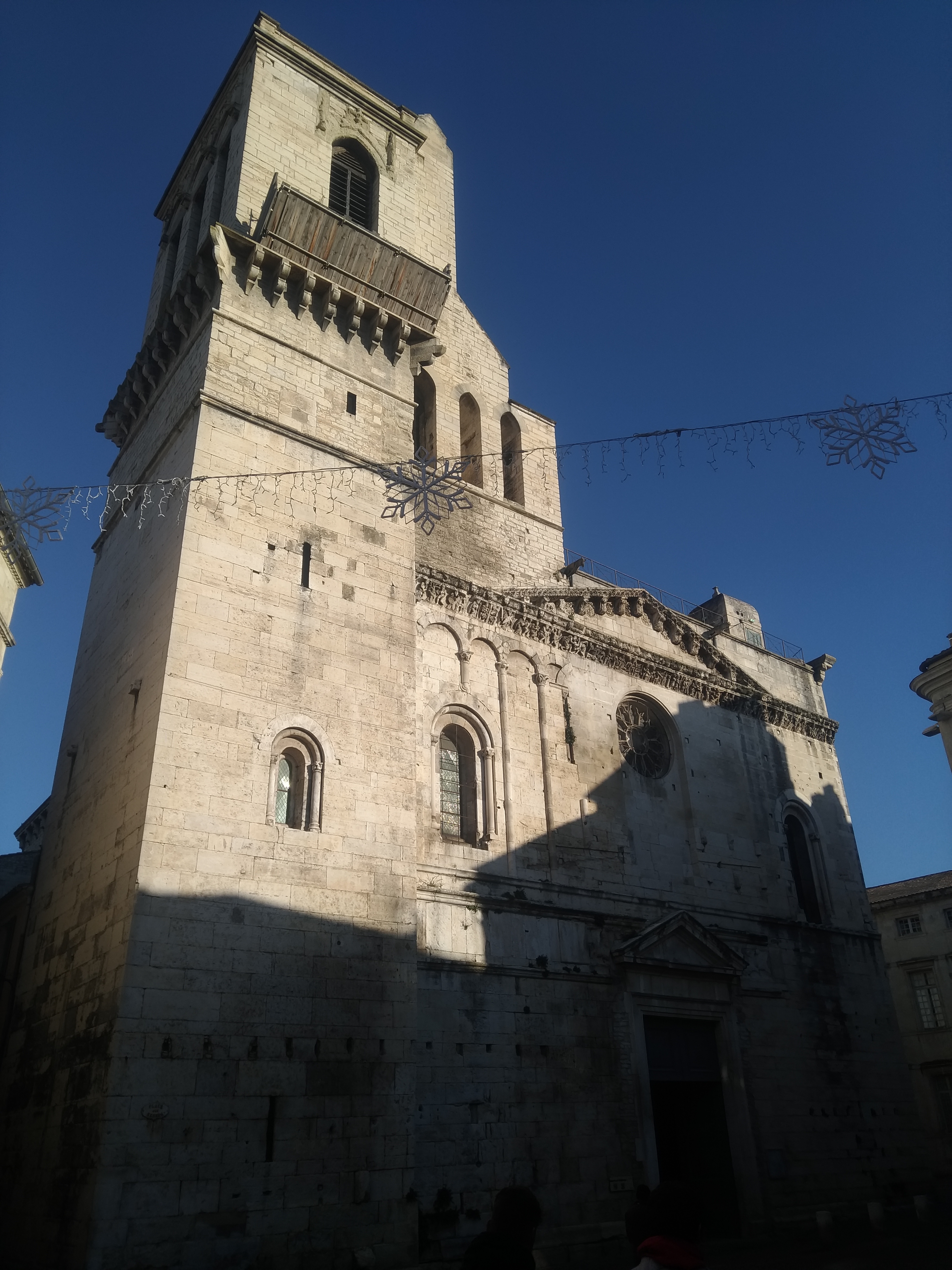Déjà cest la cathédrale de nimes place aux herbes très beau à toutes saisons