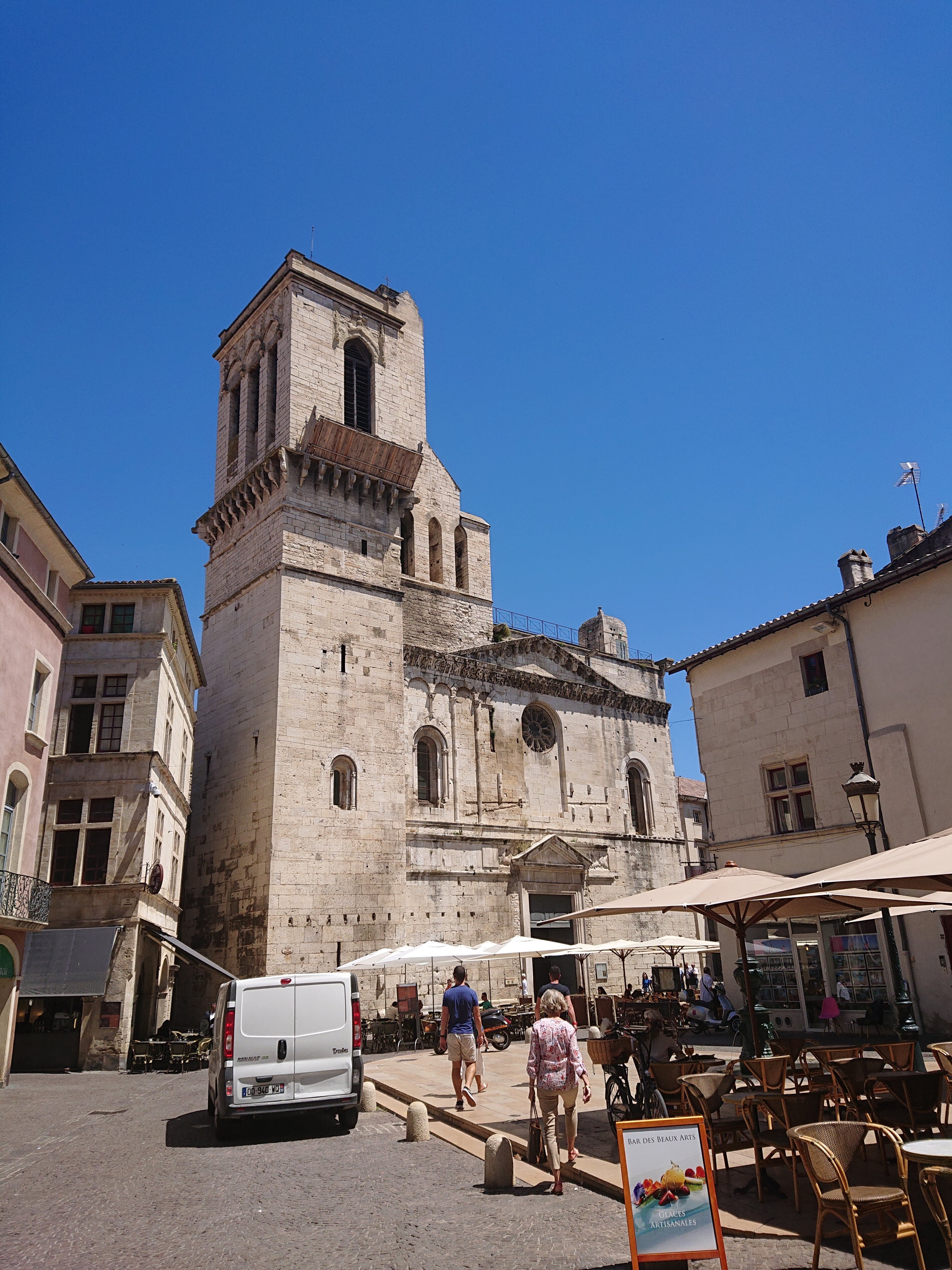 De l'extérieur, la Cathédrale ND est impressionnante, mais comme elle fermait à midi, nous n'avons pas pu entrer - ce qui était vraiment dommage. Nîmes est une petite ville compacte et c'est l'un des trois sites incontournables, il vaut donc la peine de s'assurer d'y arriver quand elle est réellement ouverte (et de vérifier qu'elle sera ouverte... car le site internet est mal conçu et pas très bien. utile!) Nous avons vraiment apprécié Nîmes. Si nous retournons dans le sud de la France, cette petite ville figurera sur notre liste de visites, ne serait-ce que pour essayer de nous assurer que nous arriverons lorsque la cathédrale sera ouverte à la visite !