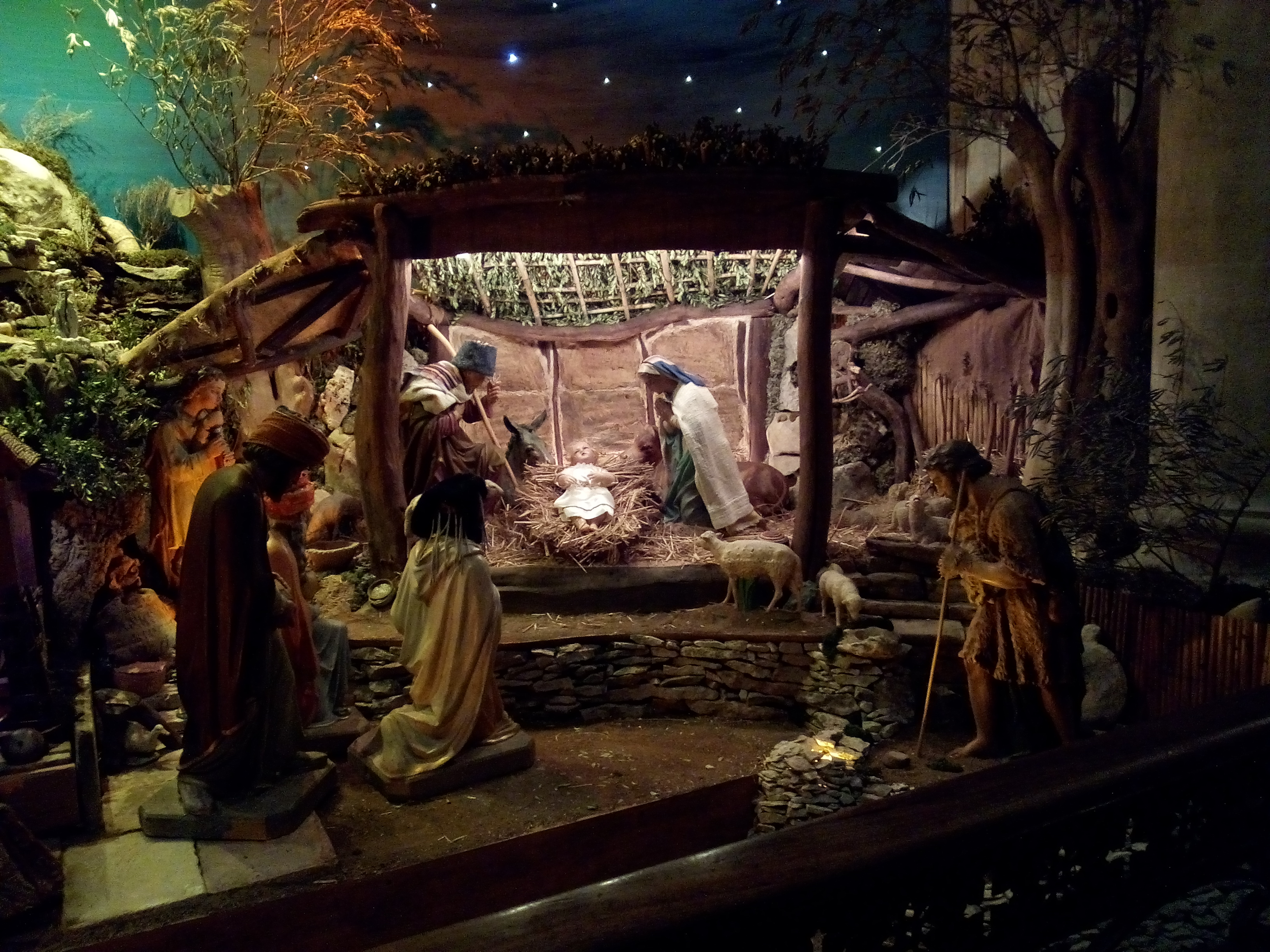 Magnifique église décorée avec beaucoup de soins...comme cette crèche réaliste avec les rois mages avant noël en train d'arriver de l'autre côté de l'allée centrale