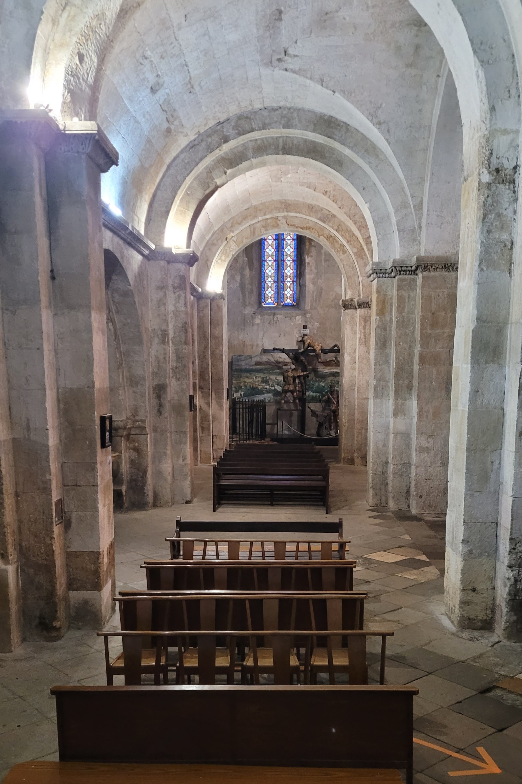 Elle mérite une bonne restauration car elle est belle. Imposant avec la partie romane primitive. La première crypte du VIIIe siècle avec des sculptures de l'époque mérovingienne. La crypte supérieure, du XIe siècle, est romane. Dans les deux cas, il y a, en guise d'autel, une pierre commémorative romaine. Le bel orgue est mélodieux. On y trouve également un beau tableau de la famille Bourbon et sur l'autel un magnifique sarcophage romain d'une facture remarquable.