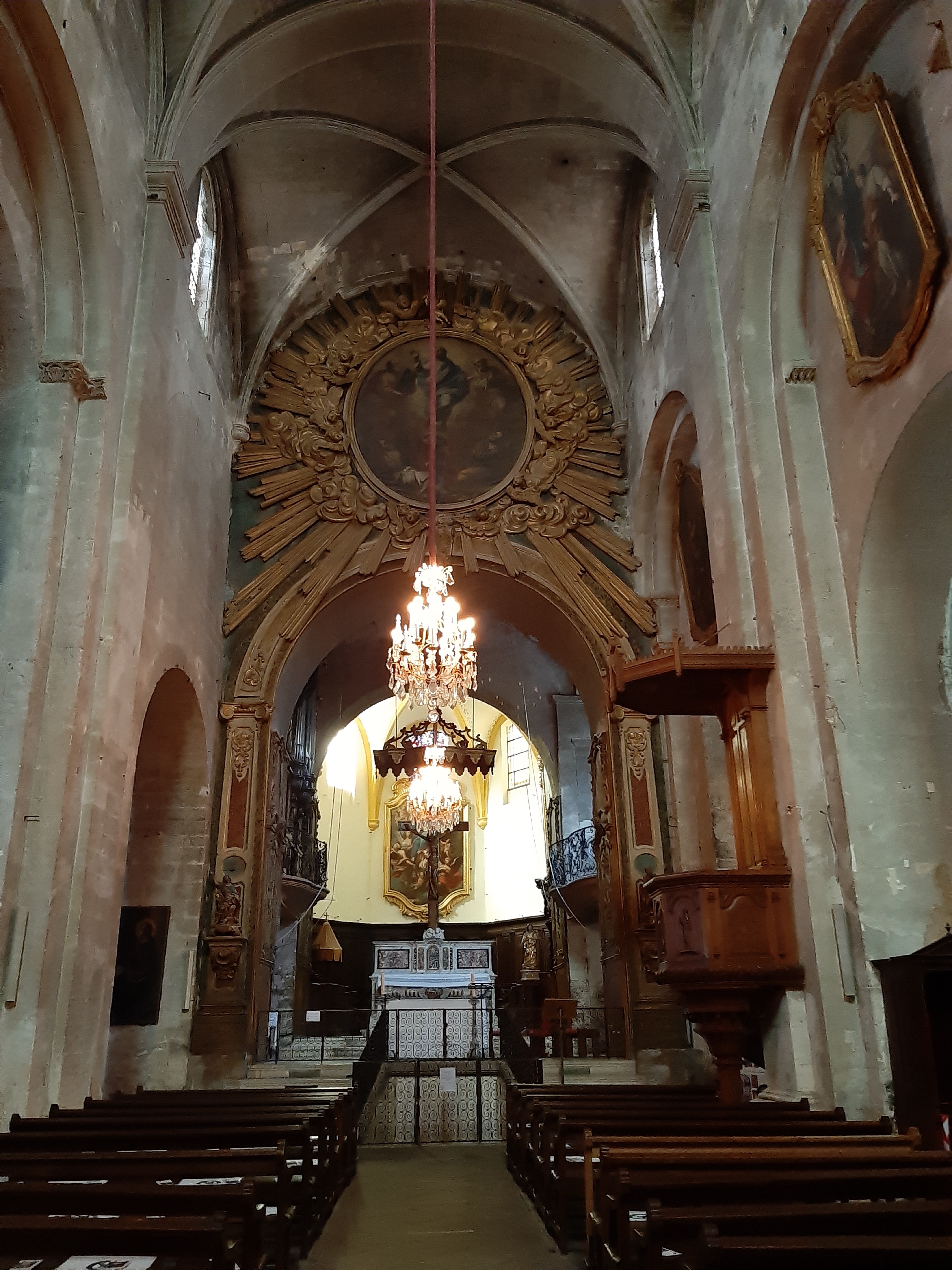 Intérieur d'église très harmonieux et vraiment ancien. De très beaux grands tableaux !