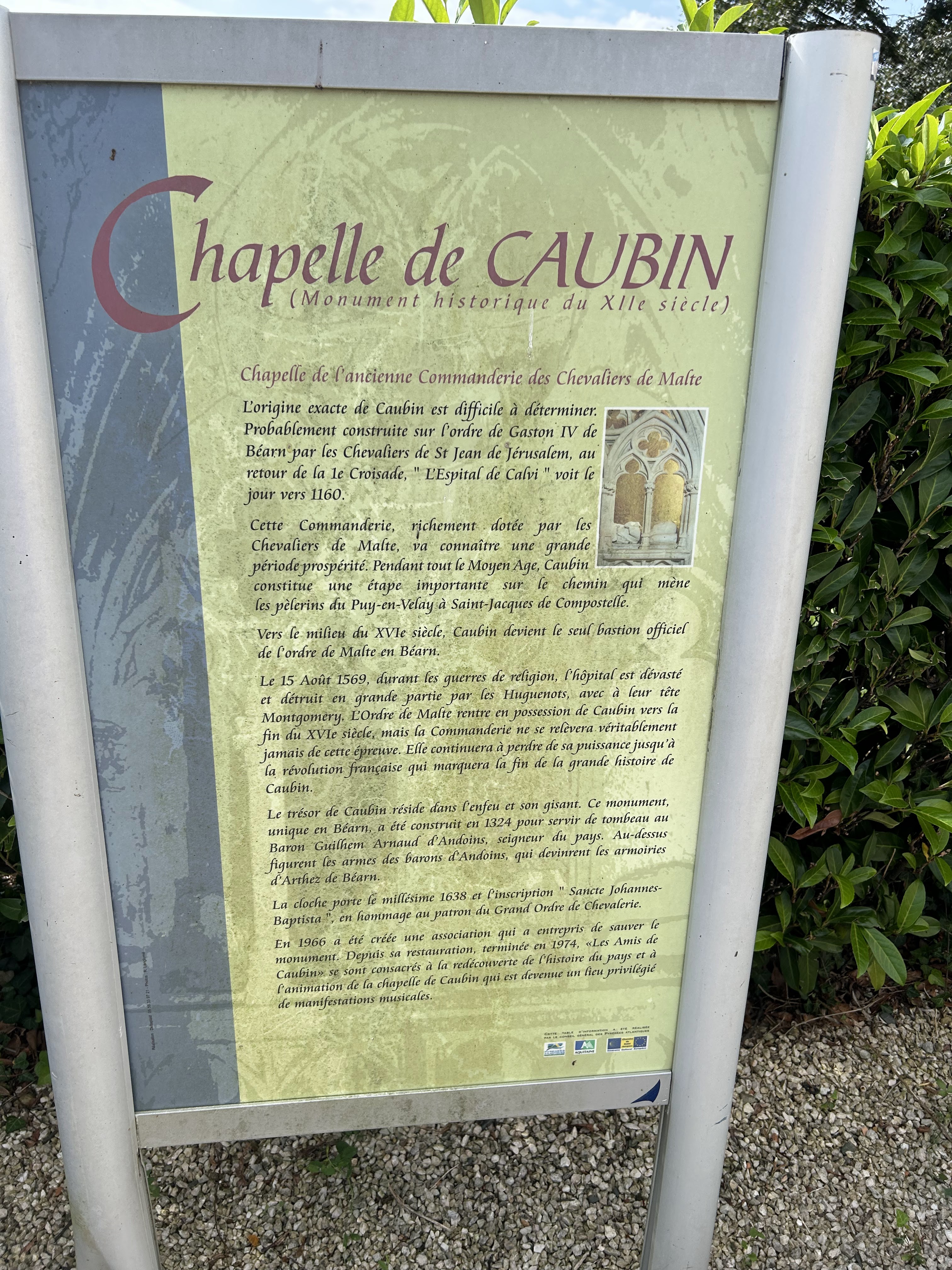 Chapelle de Caubin, Arthez de Béarn. Construite au XIIème siècle, la chapelle de Caubin fait partie d’un ancien hôpital situé sur les chemins de Compostelle. Classée au titre des monuments historiques, découvrez la chapelle de Caubin et Arthez de Béarn, lieu de passage de la voie du Puy.