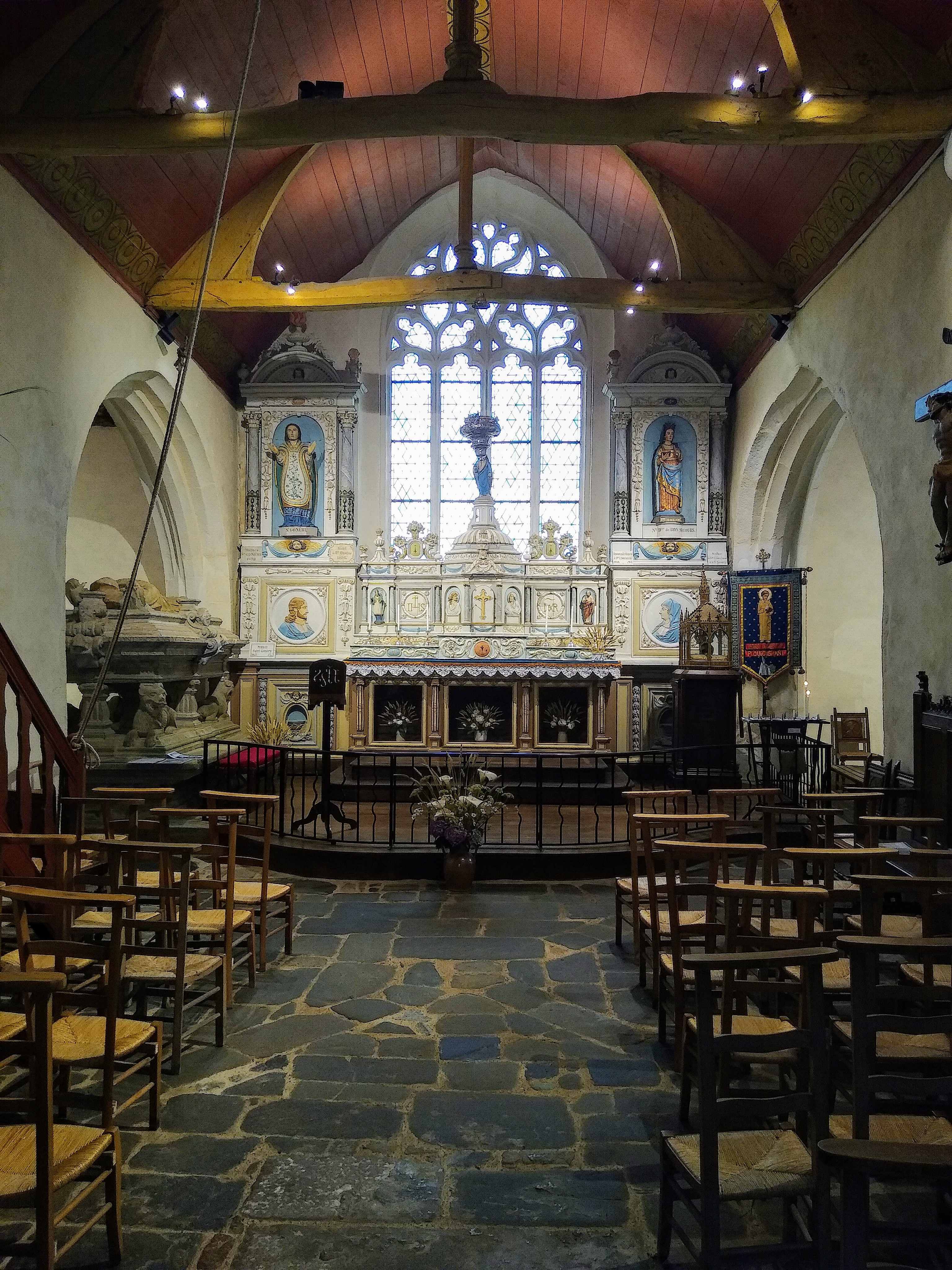 La chapelle Saint-Gonéry a été construite aux XIIe et XVe siècles et a récemment été largement rénovée. Elle est entourée d'une grande cour clôturée avec des arbres centenaires et un calvaire. Les entrées sont protégées par des murs bas ou des portes pour empêcher l'entrée du bétail autrefois en liberté. En tant que visiteur, vous êtes invités à escalader les murs. À l'intérieur de l'église, les peintures de la chaire, de l'autel et du plafond méritent particulièrement d'être vues. Nous avons beaucoup aimé les représentations de l’Ancien Testament avec leurs couleurs fortes et leur structure narrative serrée. Une visite de la chapelle est recommandée. Il est proposé par l'association Les Amis de la Chapelle Saint Gonéry sur demande. Les horaires d'ouverture réguliers et les informations sur les événements de la chapelle sont également disponibles sur leur site Internet.