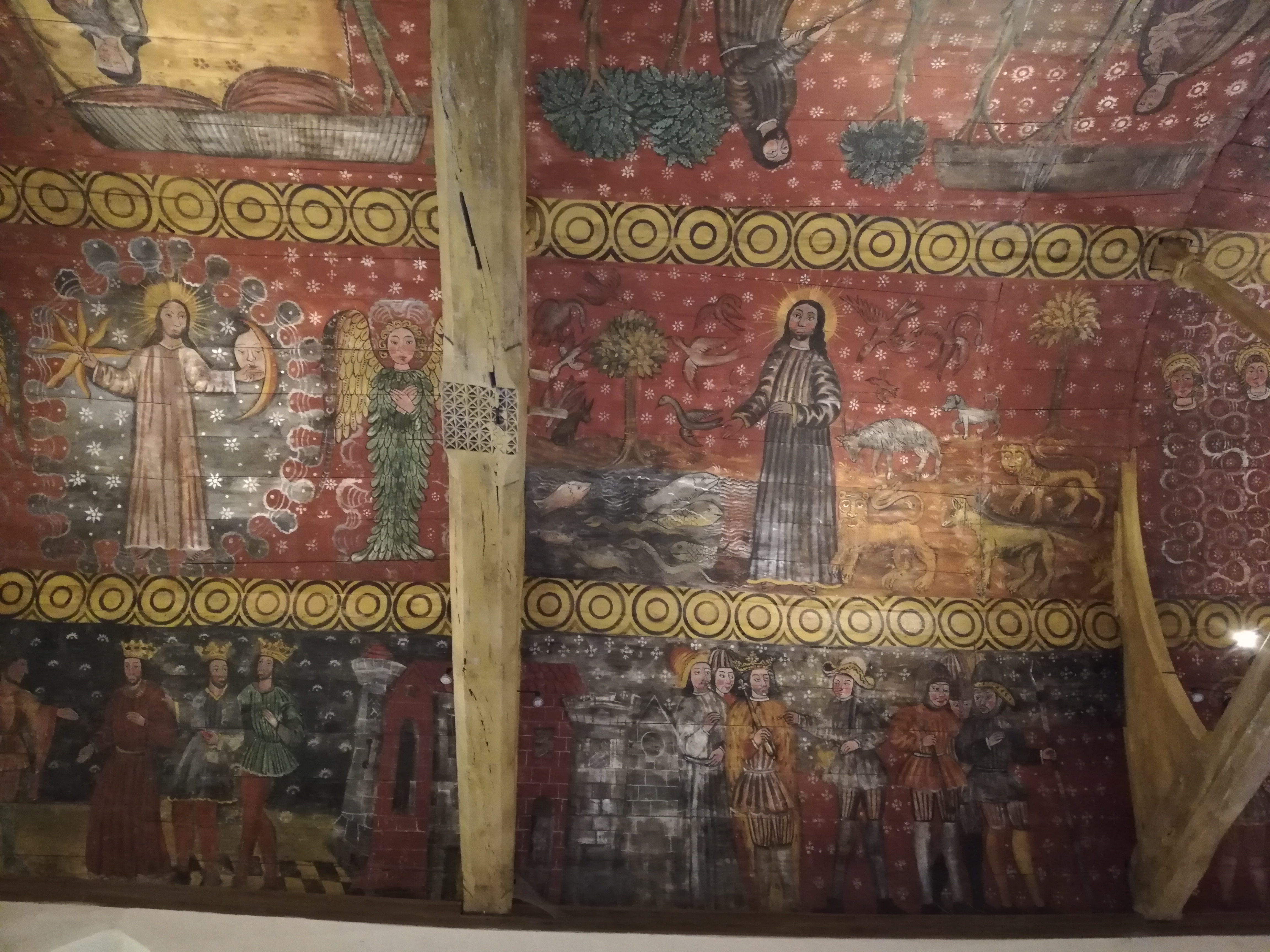 Surprenant et inattendu à la fois. Les fresques vous coupent le souffle, tant par les couleurs que par la simplicité d'exécution. Puis la forme de l'église et du petit clocher repliés sur lui-même. Vraiment spécial et beau.