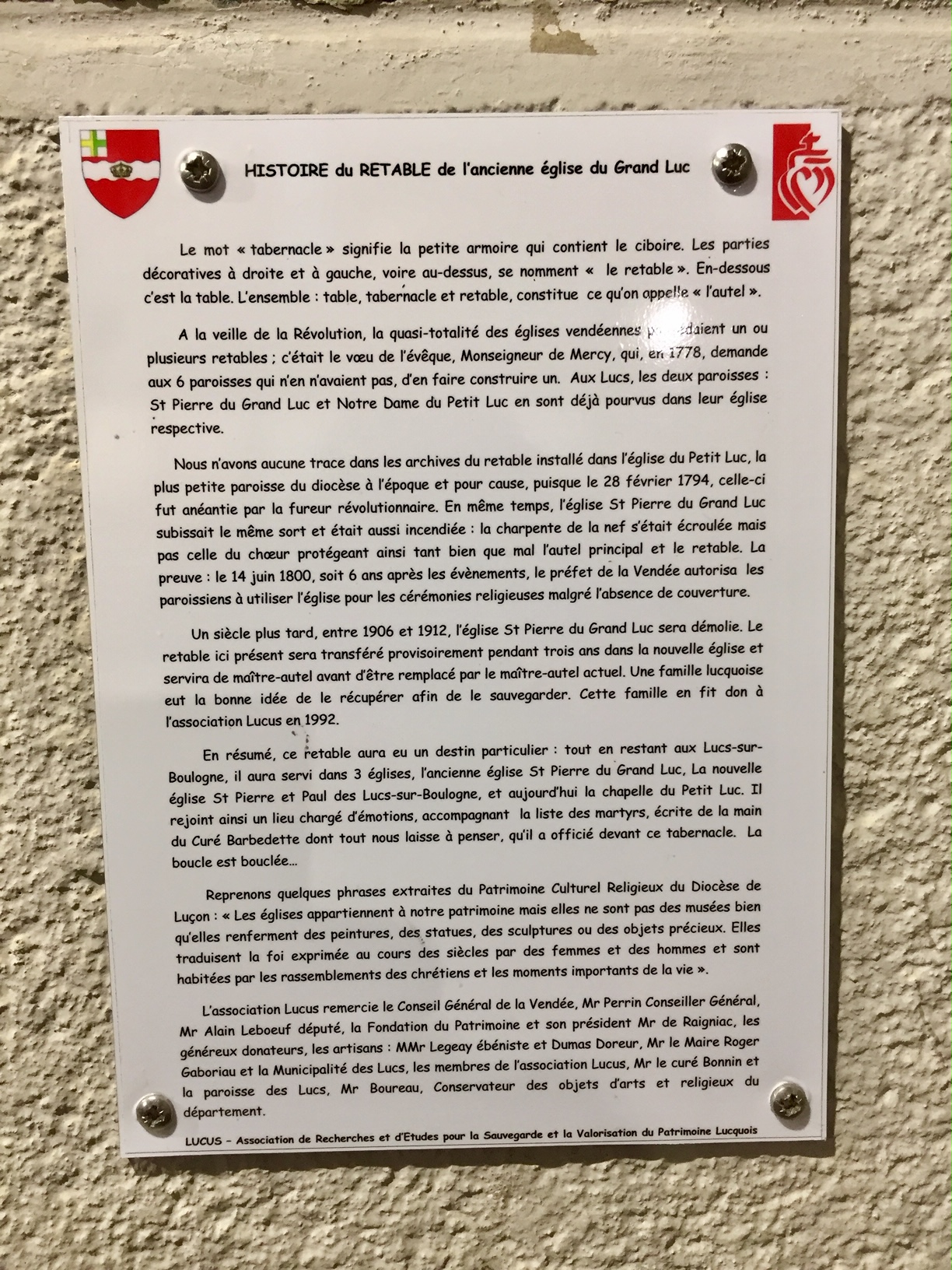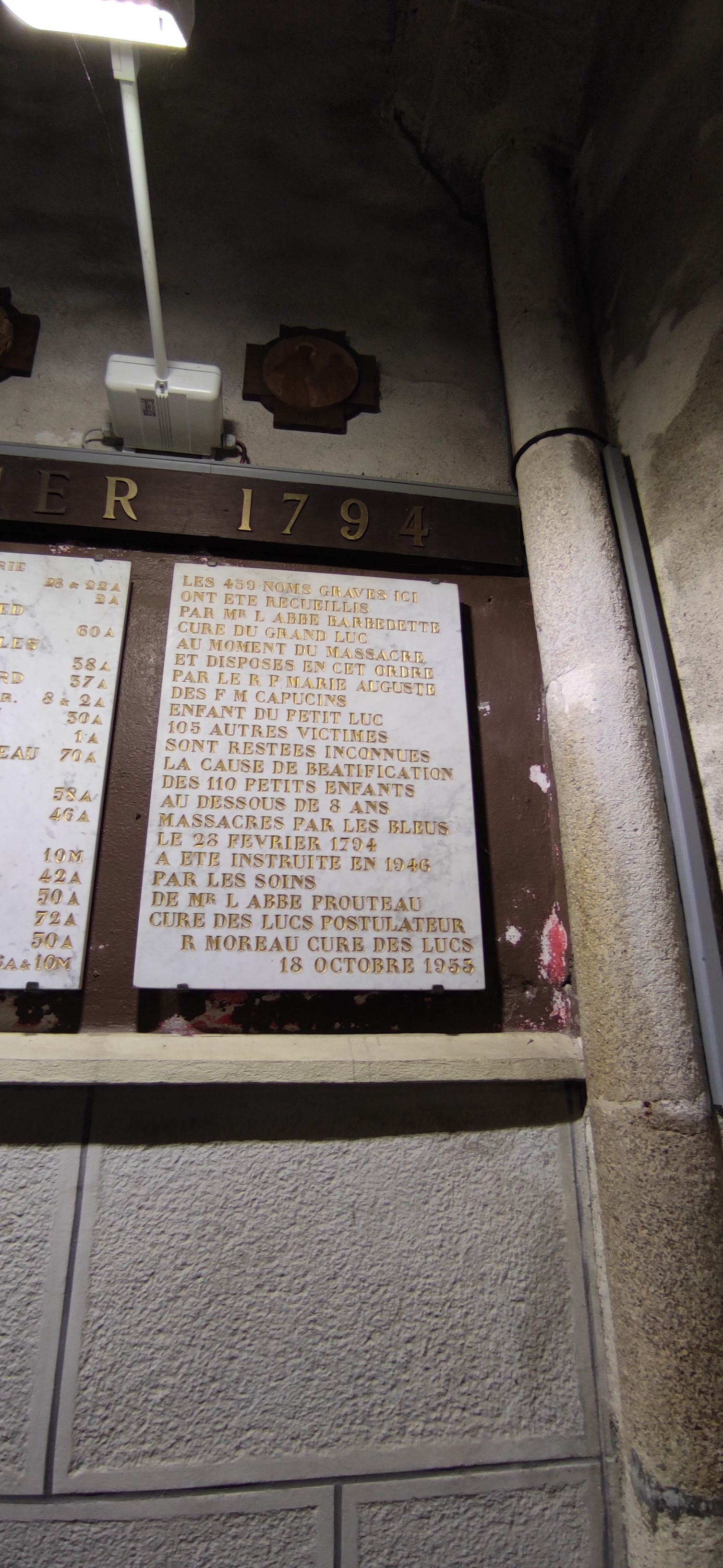 Belle petite chapelle qui contient les 563 noms des hommes, femmes et enfants de tout âge massacrés par les révolutionnaires !